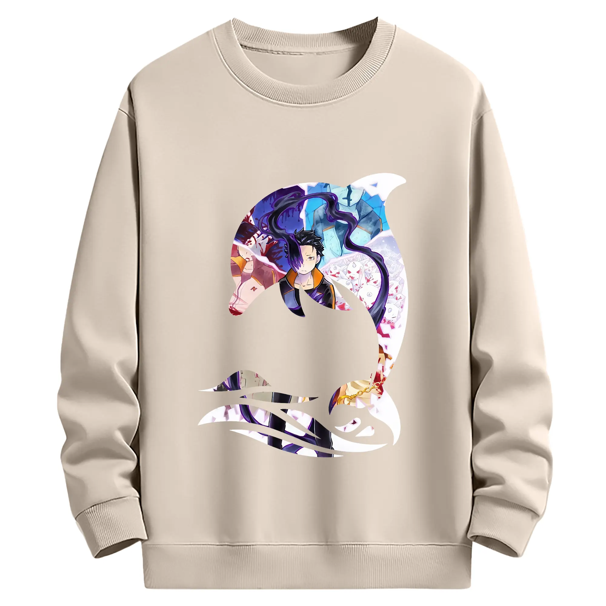 リゼロ グッズ ナツキ・スバル - 薄手 クルーネック スウェット 裏毛260g · ポリエステル 春秋向け カジュアル 男女兼用 · トレーナー デイリー スポーツ 散歩に最適