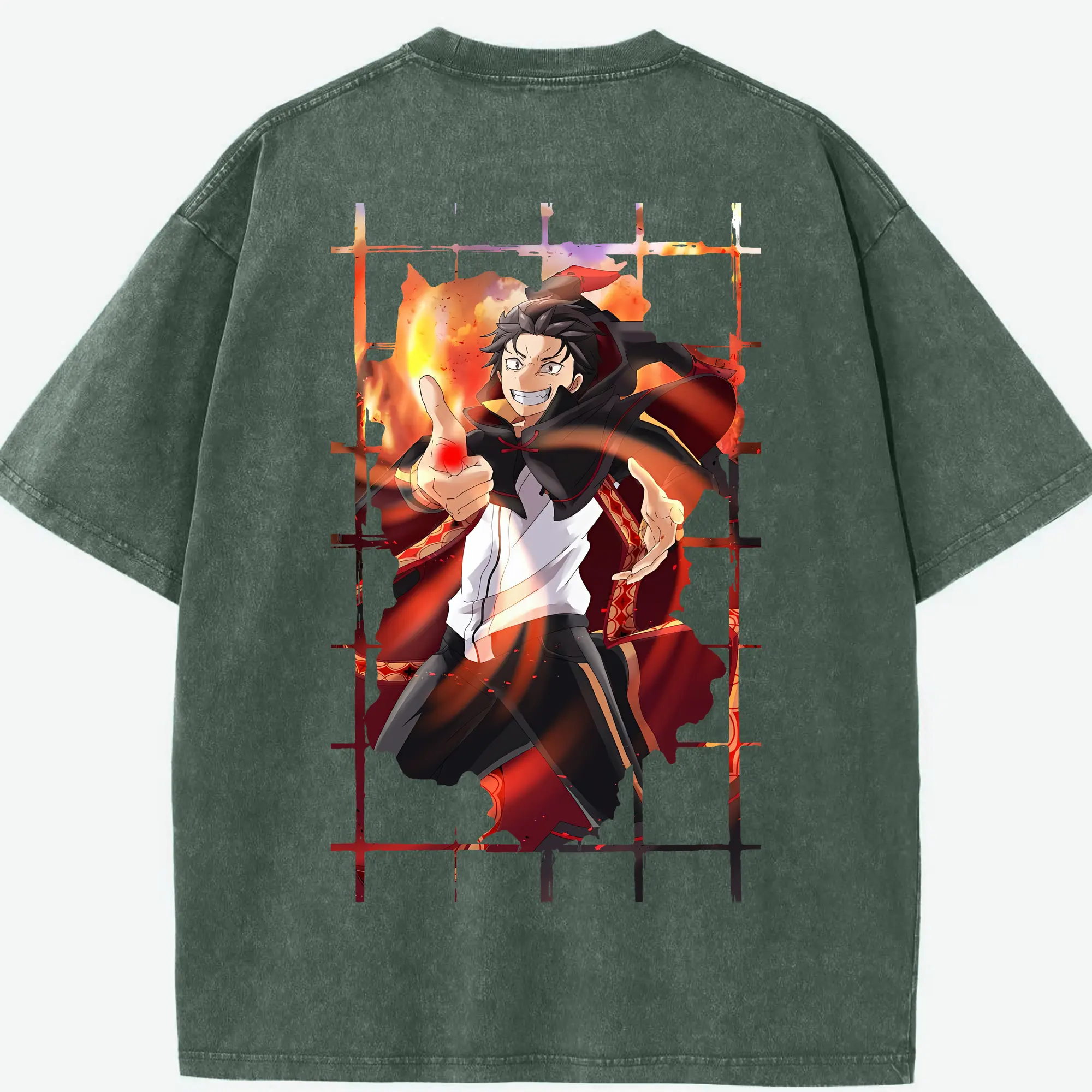 リゼロ グッズ ナツキ・スバル - 綿100% ヴィンテージ風 半袖Tシャツ ・ フロントプリント ・ 柔らか肌触り ・ 通気性 快適 ・ スポーツ カジュアル 外出用