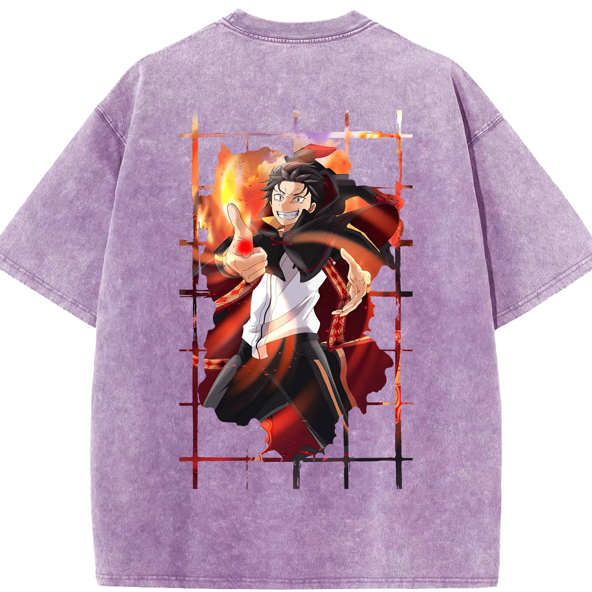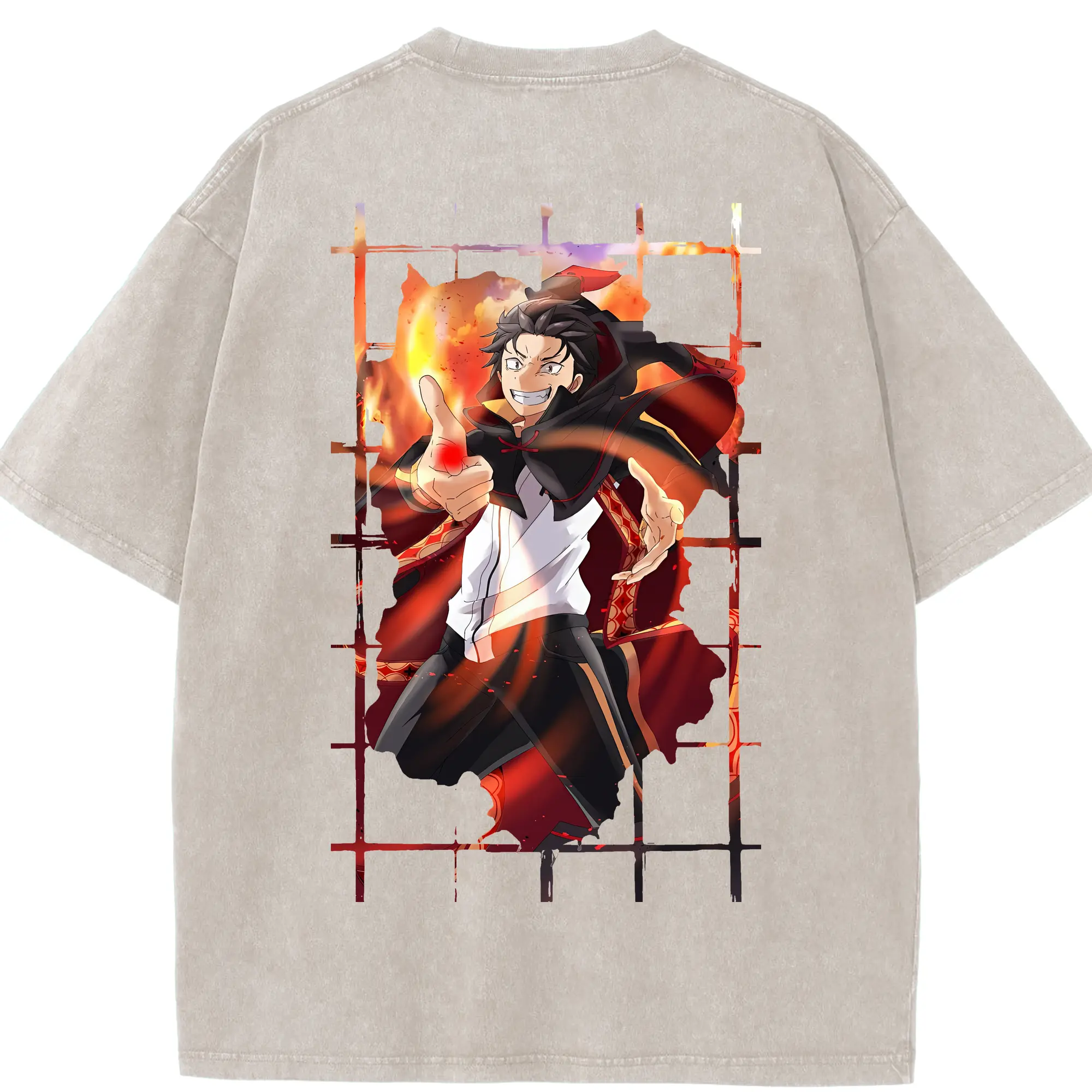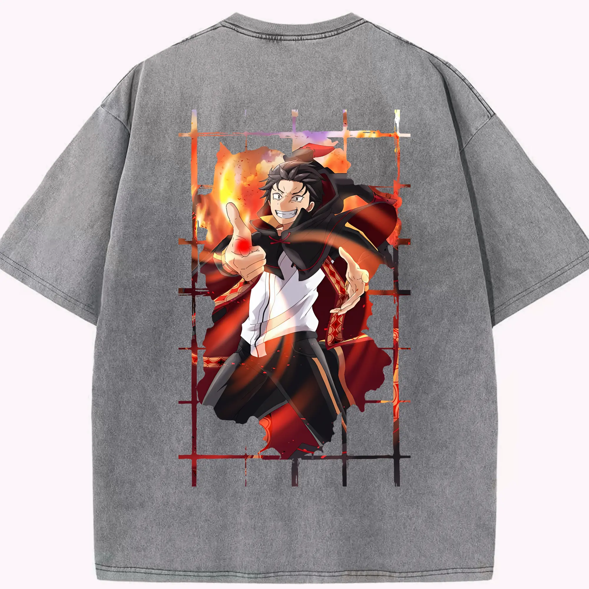 リゼロ グッズ ナツキ・スバル - 綿100% 半袖Tシャツ ・ バックプリント ・ 快適 通気性 ・ 日常使い 散歩 スポーツ用