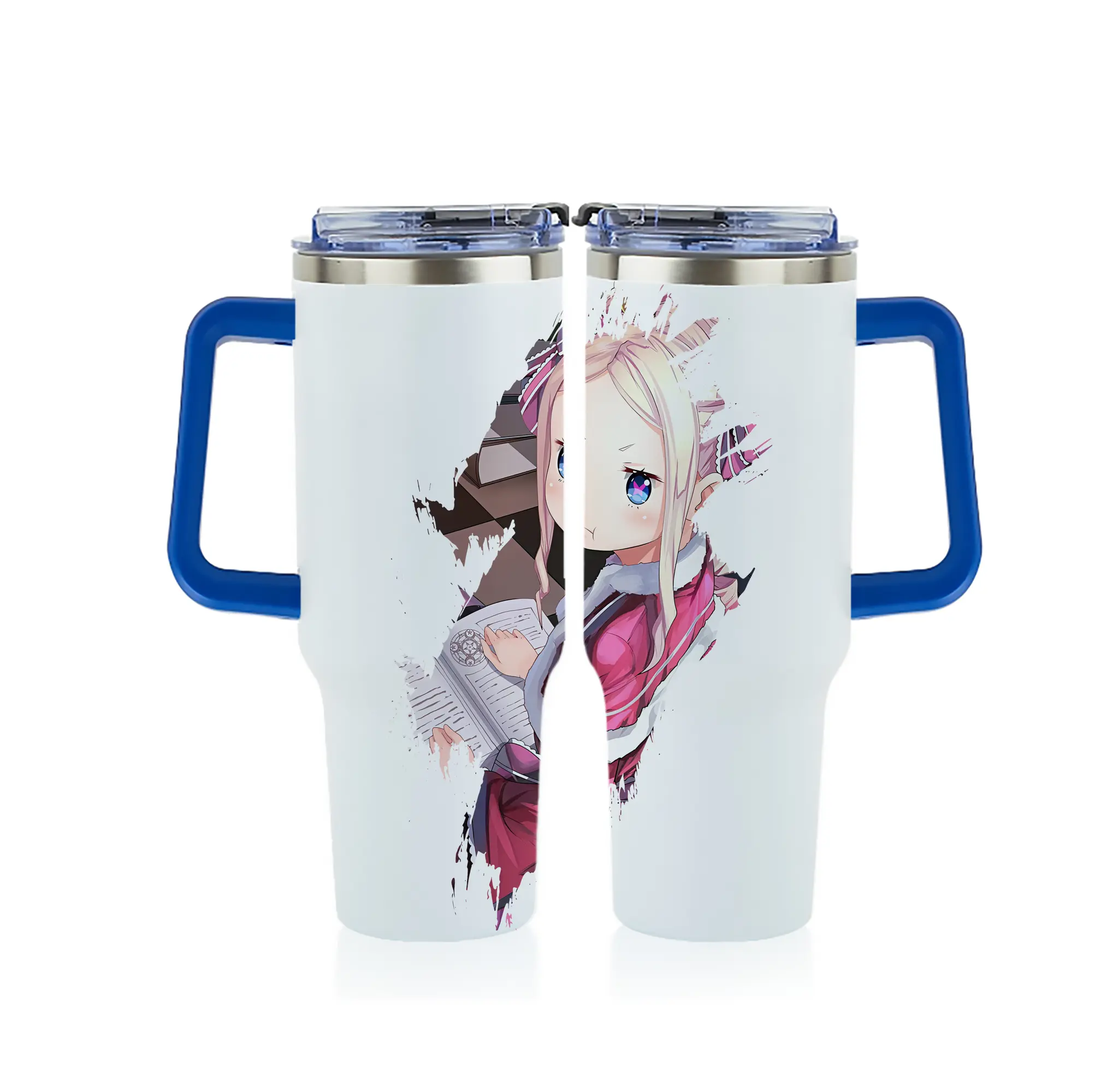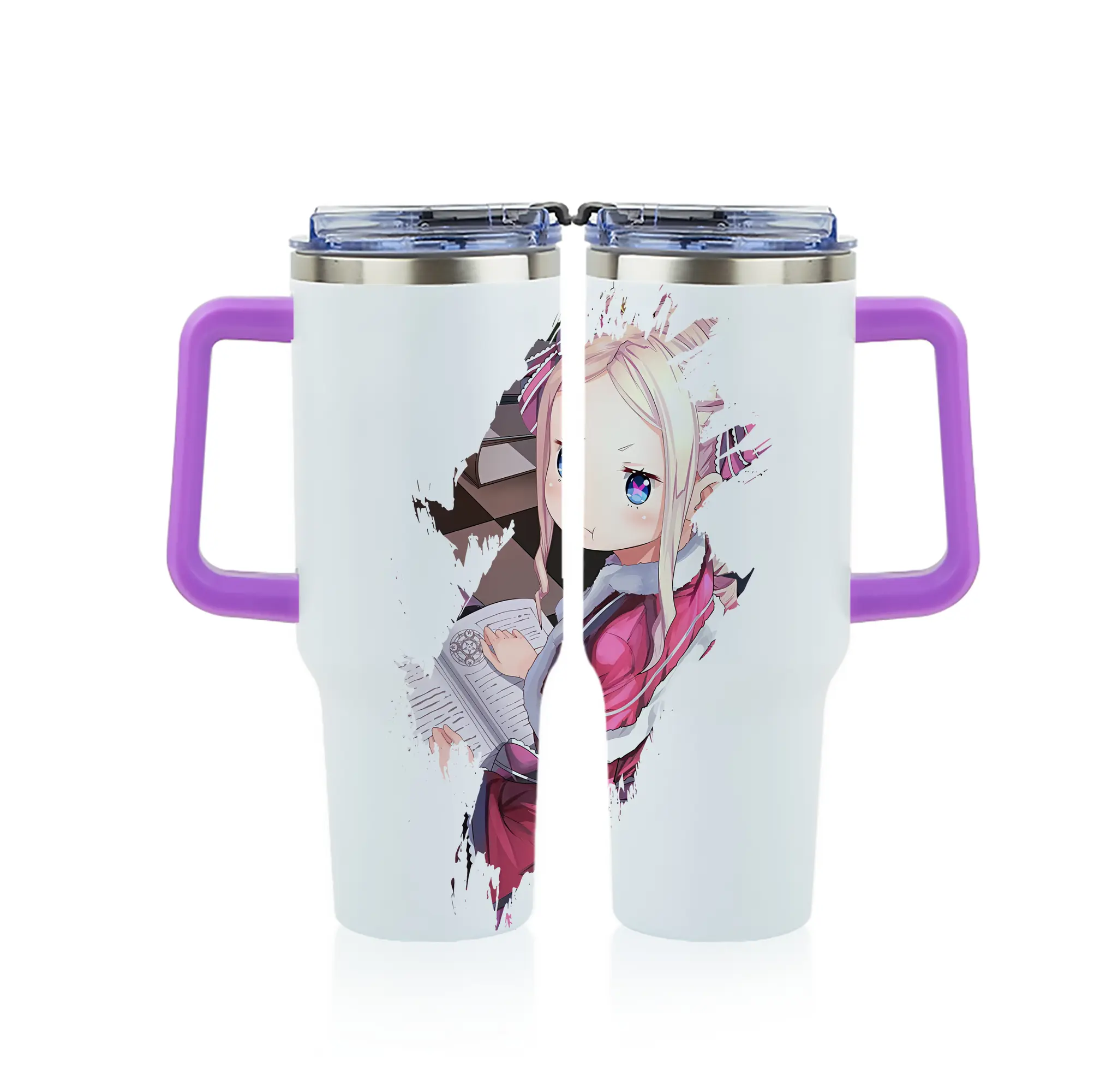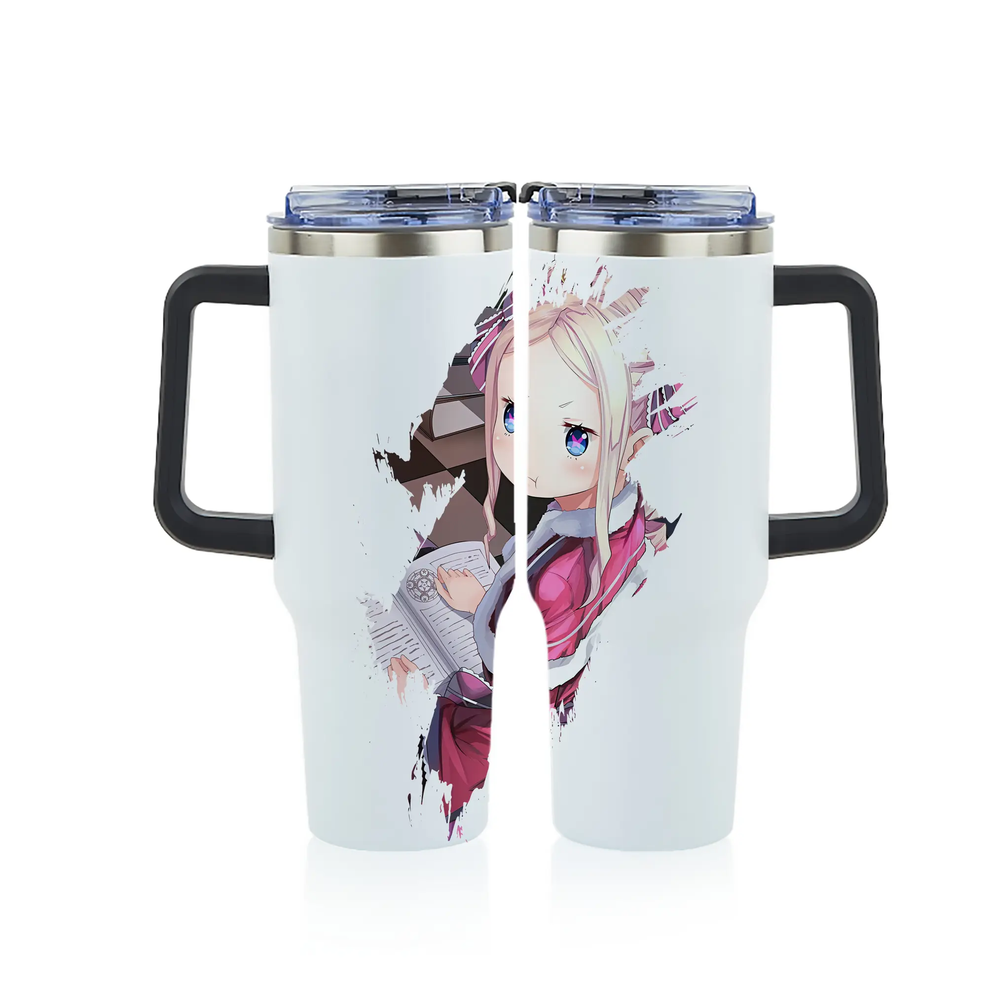 リゼロ グッズ ベアトリス - 1200mL フルプリント車用タンブラー ・ 304ステンレス 内側 ・ 201ステンレス 外側 ・ 保温 保冷 ・ 通勤 ドライブ アウトドア用