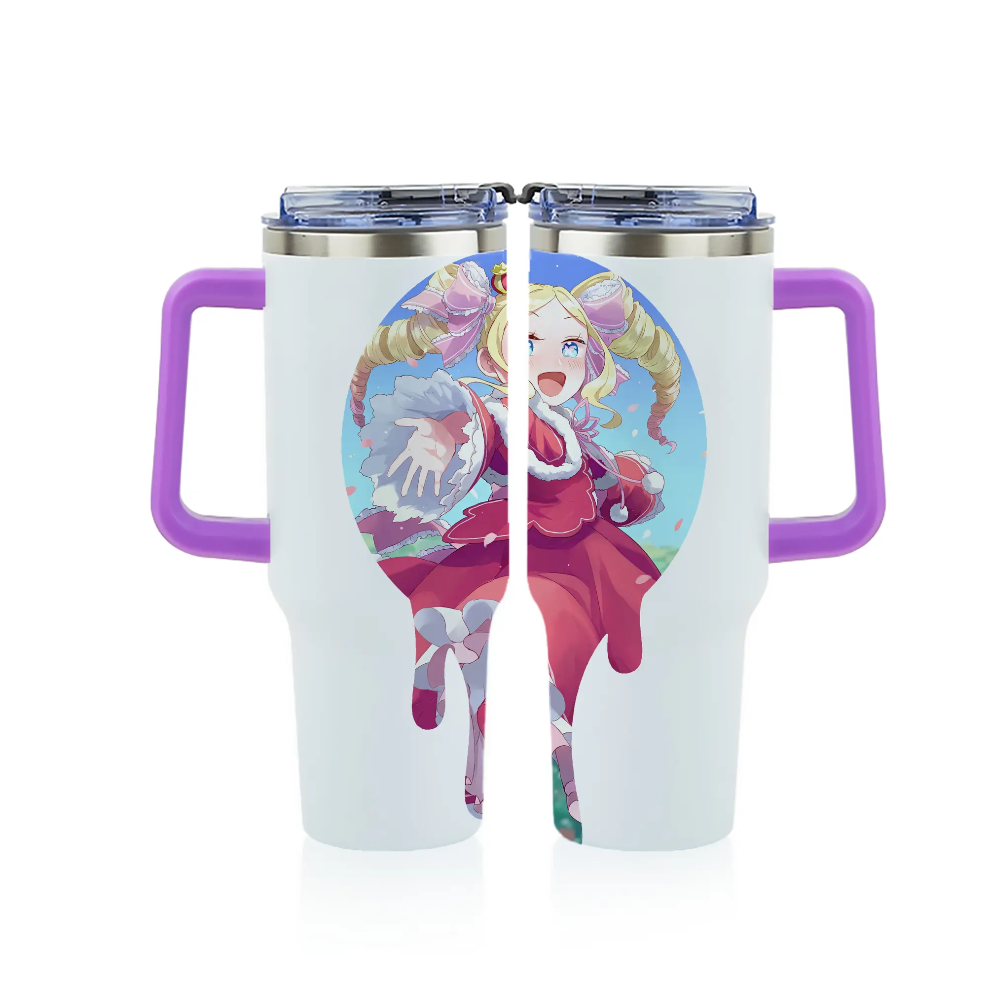 リゼロ グッズ ベアトリス - 1200mL フルプリント車用タンブラー ・ 304ステンレス 内側 ・ 201ステンレス 外側 ・ 保温 保冷 ・ 通勤 ドライブ アウトドア用
