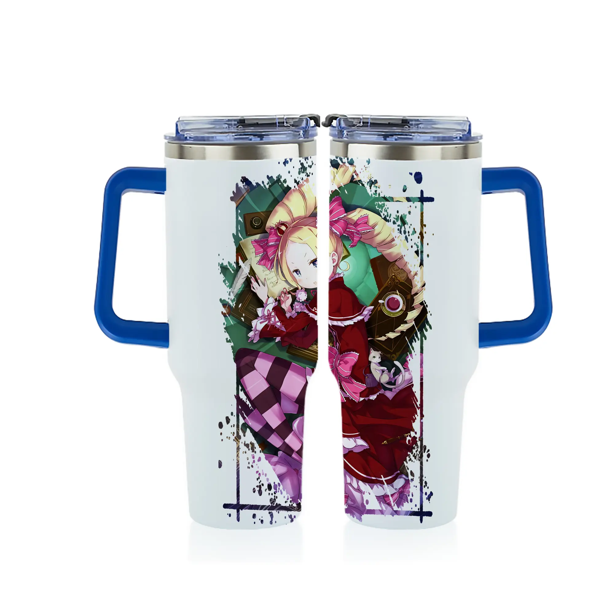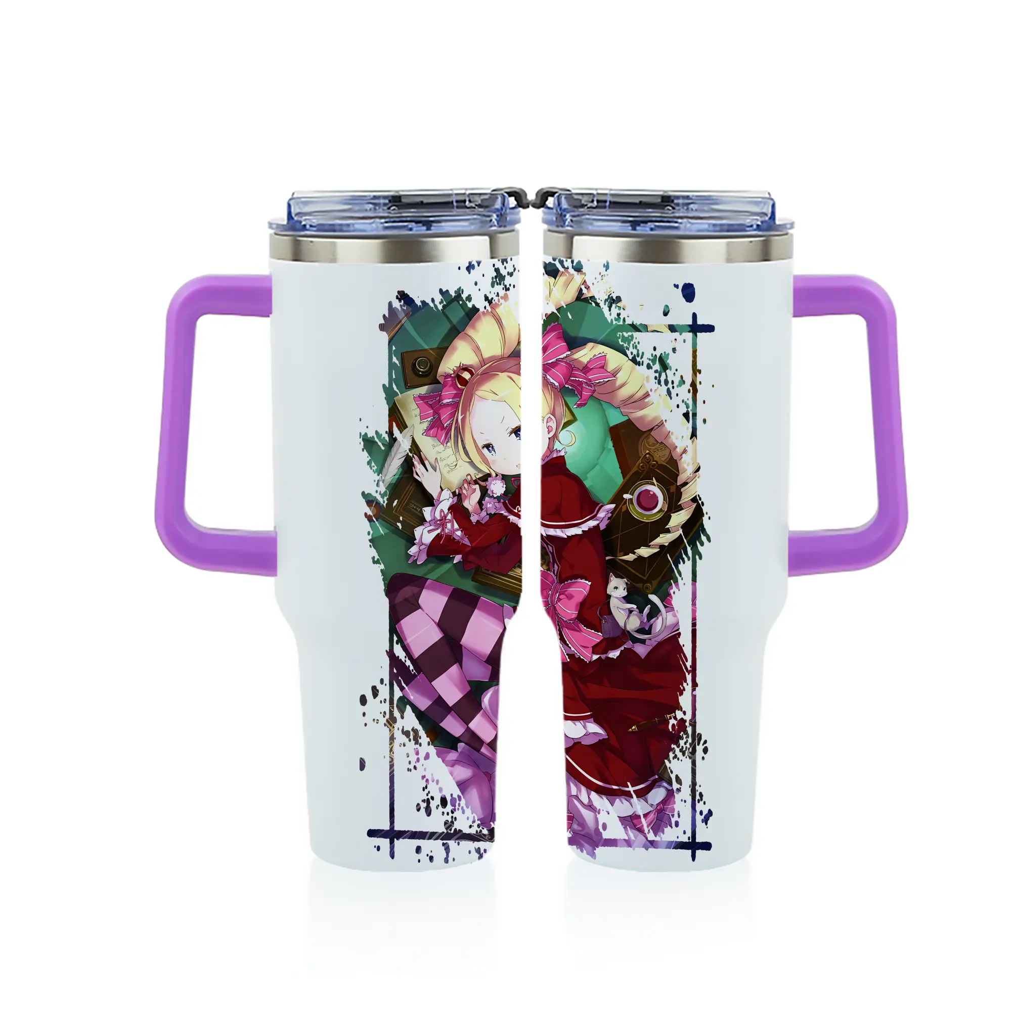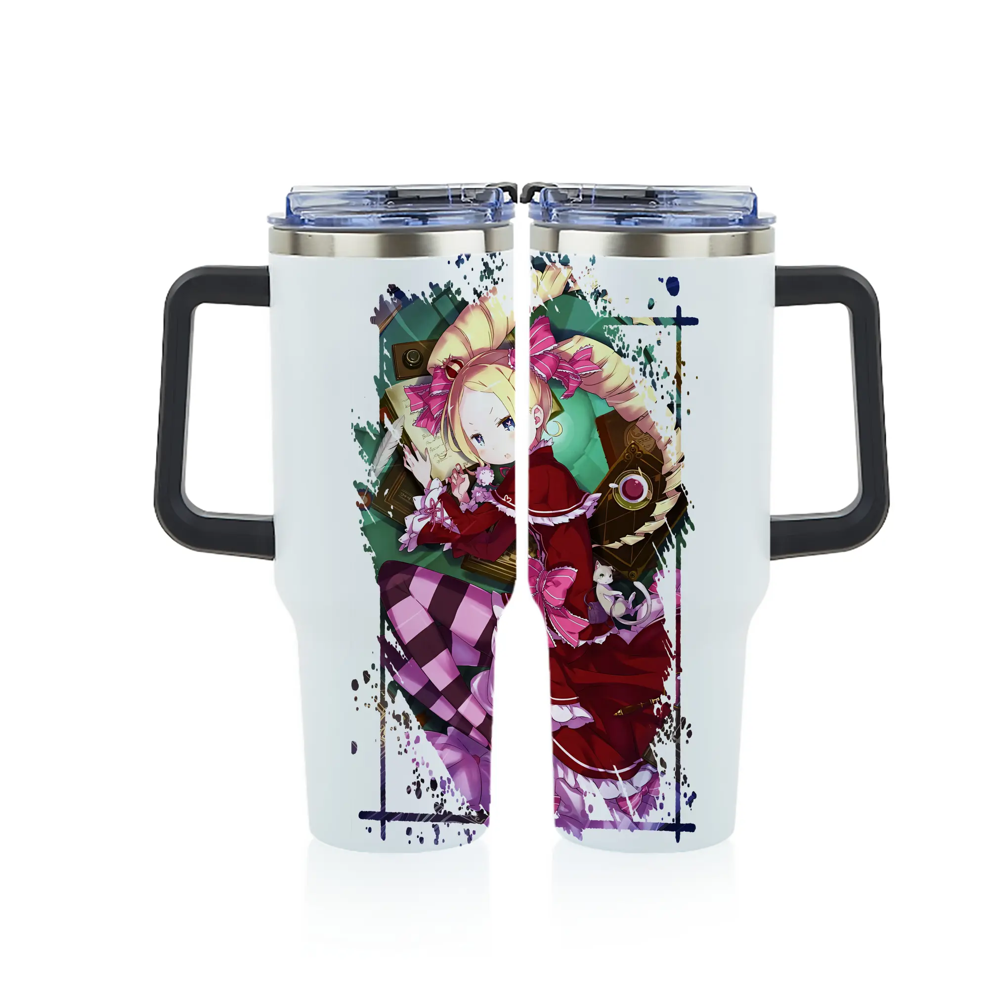 リゼロ グッズ ベアトリス - 1200mL フルプリント車用タンブラー ・ 304ステンレス 内側 ・ 201ステンレス 外側 ・ 保温 保冷 ・ 通勤 ドライブ アウトドア用