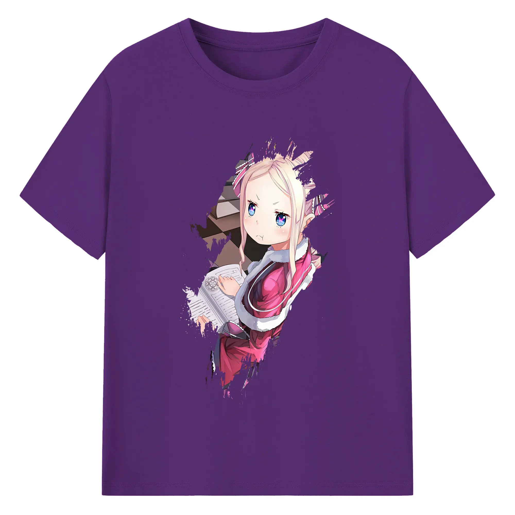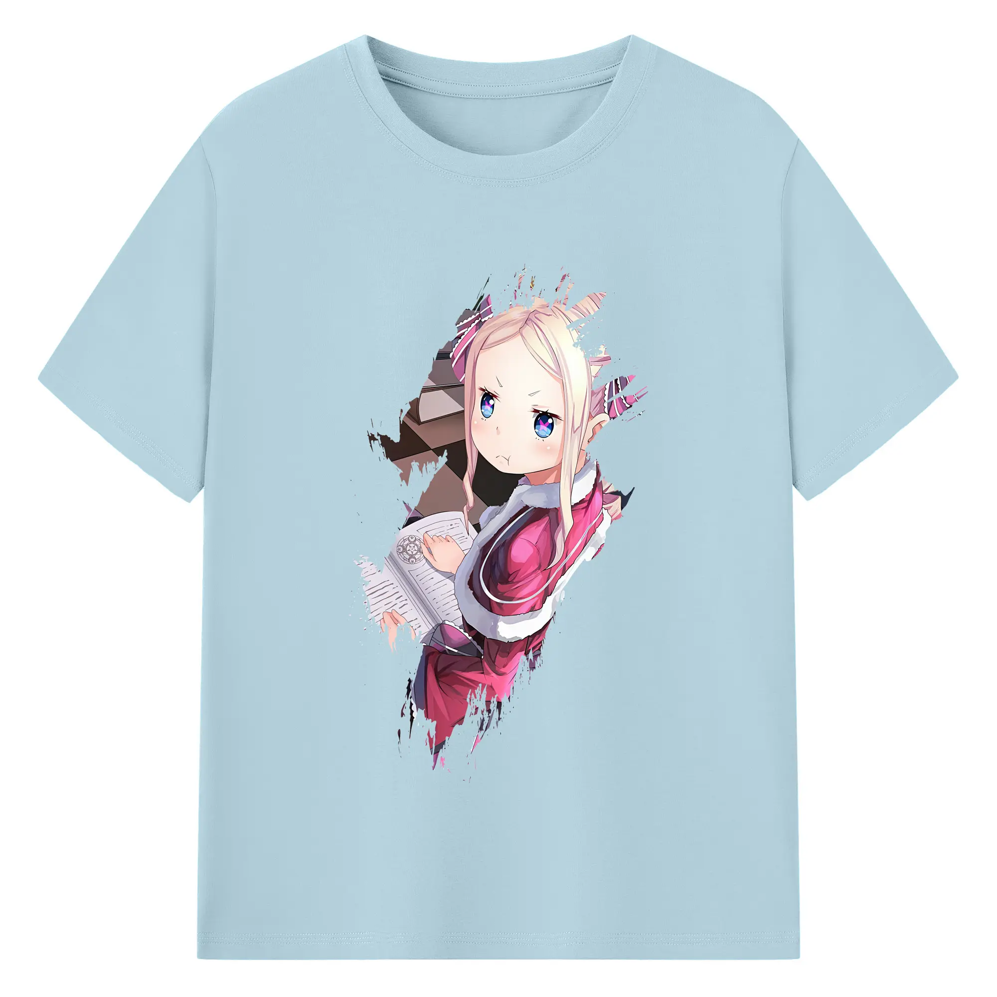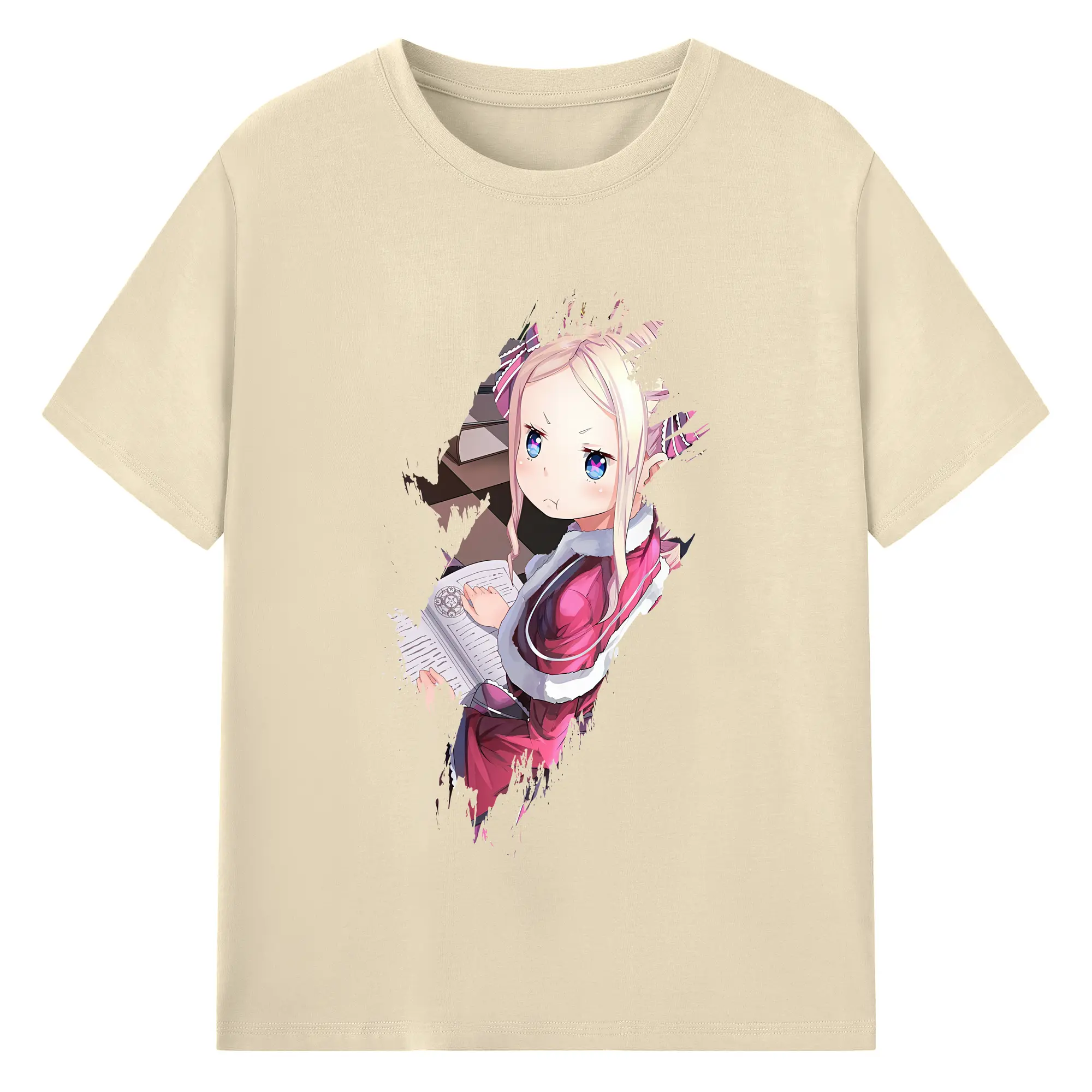 リゼロ グッズ ベアトリス - 綿100% 半袖Tシャツ ・ バックプリント ・ 快適 通気性 ・ 日常使い 散歩 スポーツ用