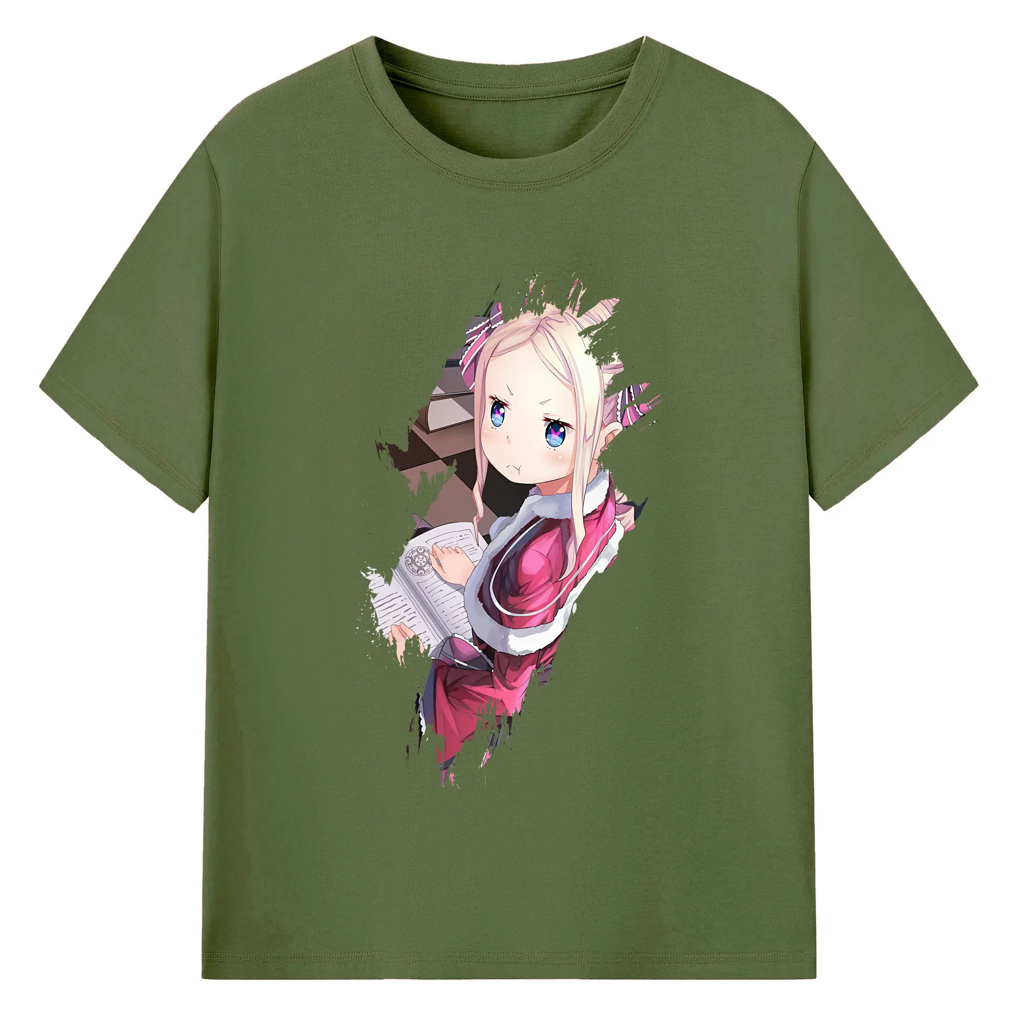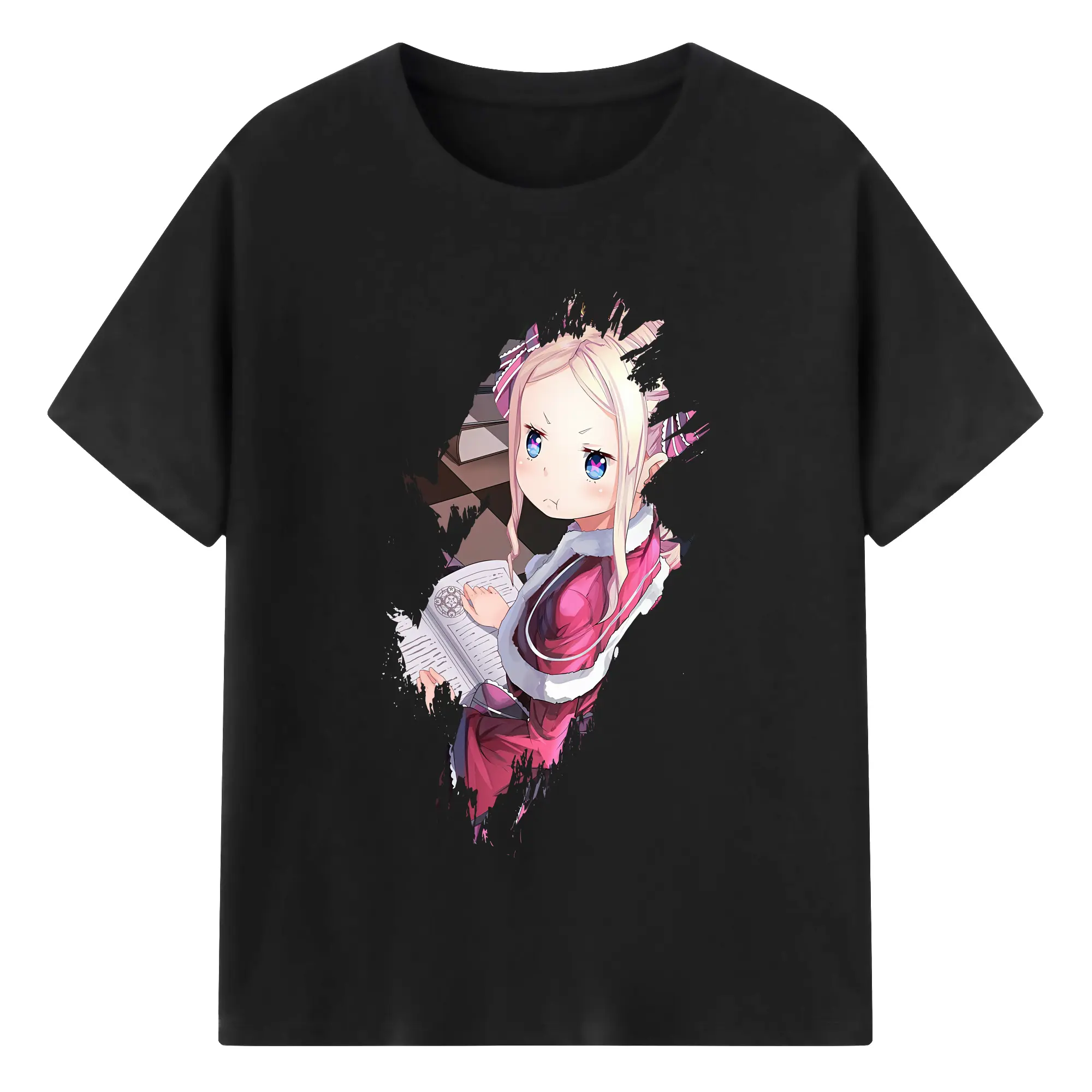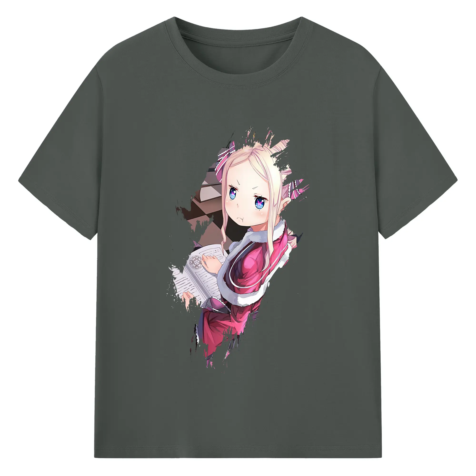 リゼロ グッズ ベアトリス - 綿100% 半袖Tシャツ ・ バックプリント ・ 快適 通気性 ・ 日常使い 散歩 スポーツ用