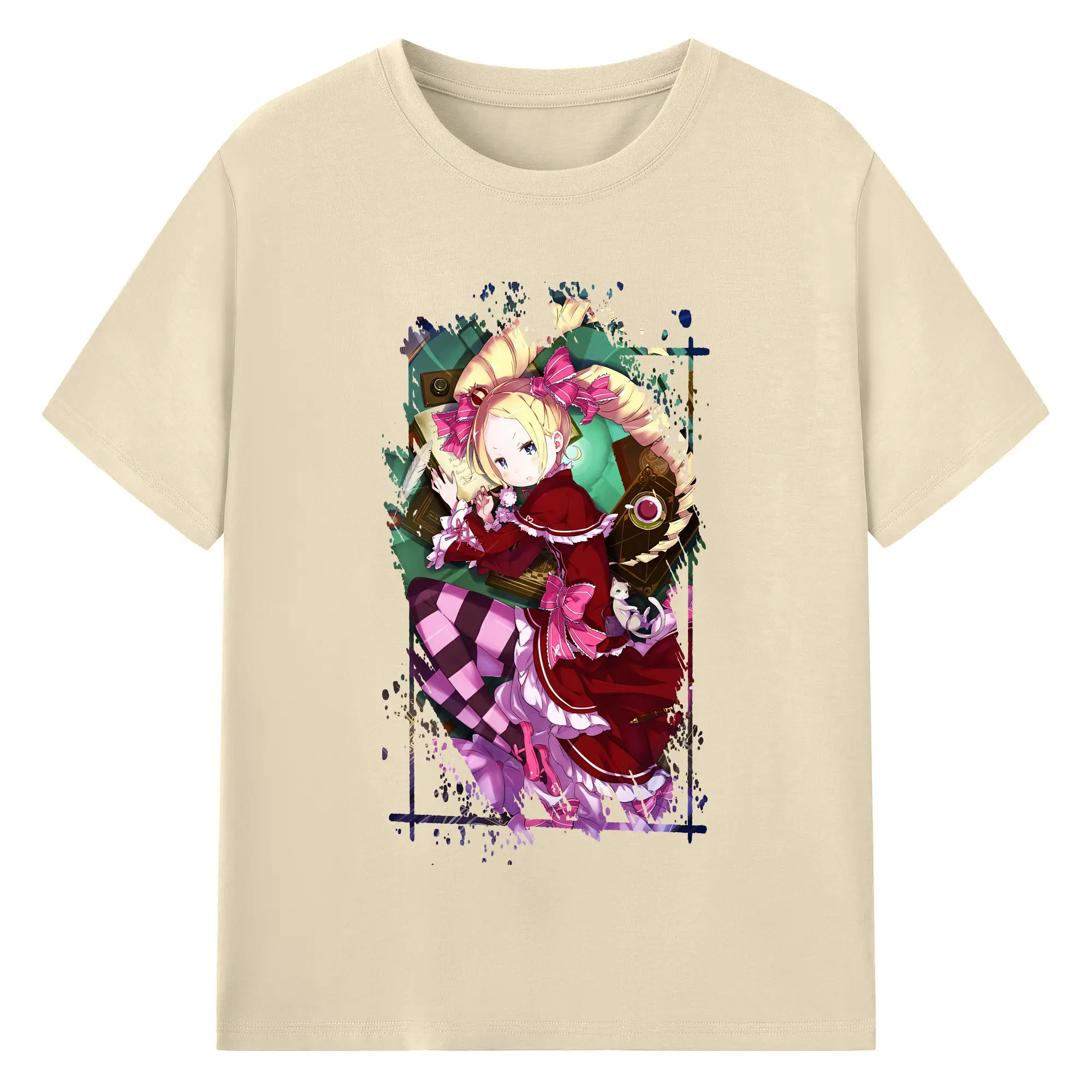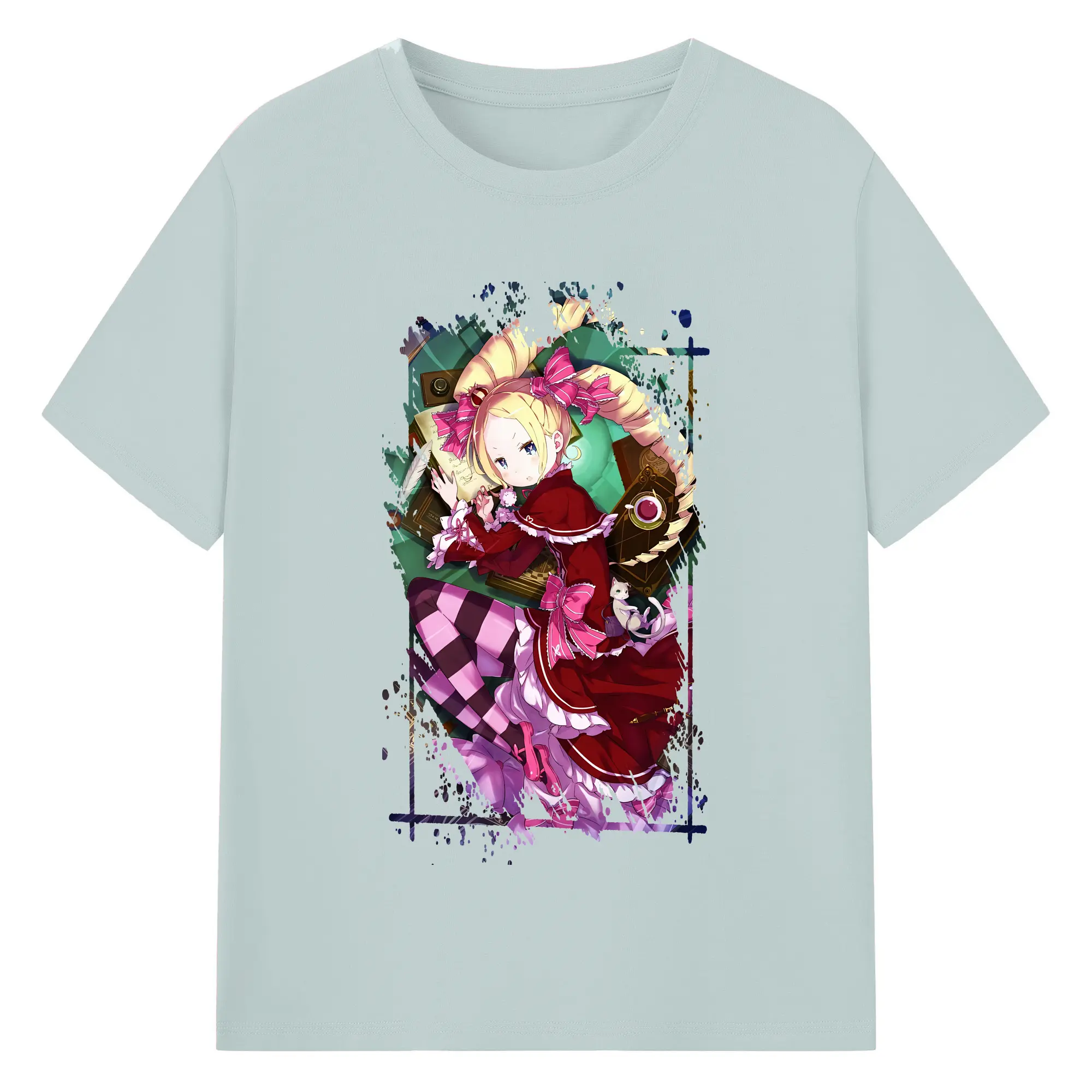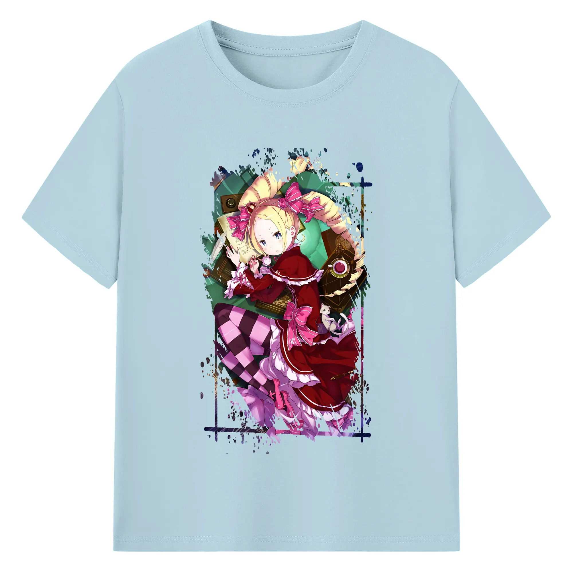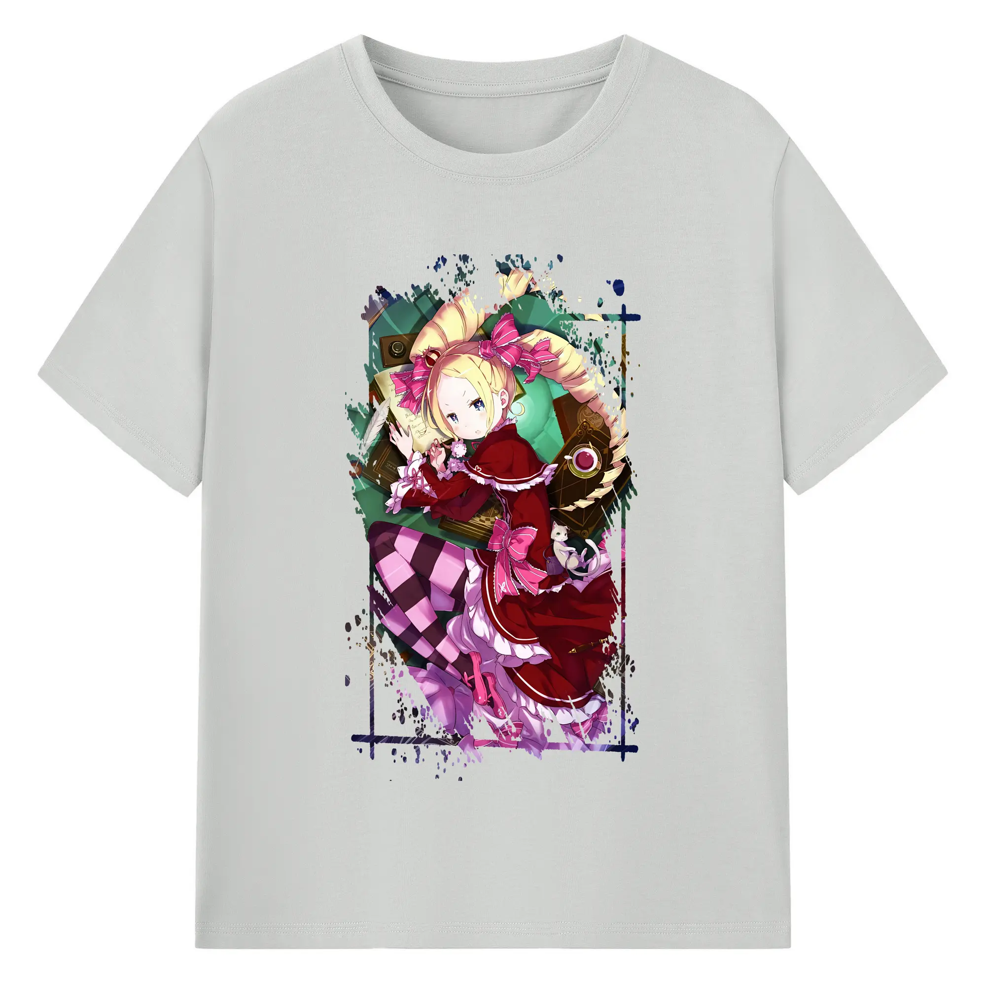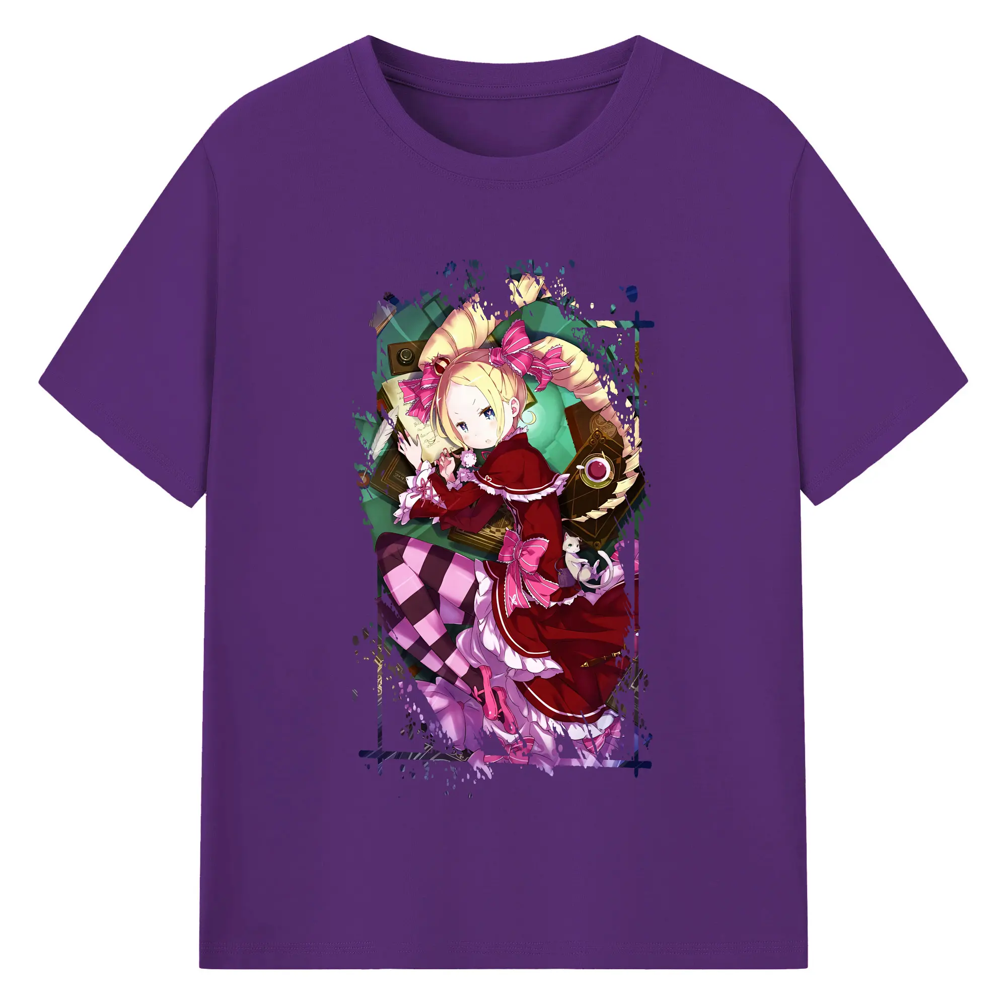 リゼロ グッズ ベアトリス - 綿100% 半袖Tシャツ ・ バックプリント ・ 快適 通気性 ・ 日常使い 散歩 スポーツ用