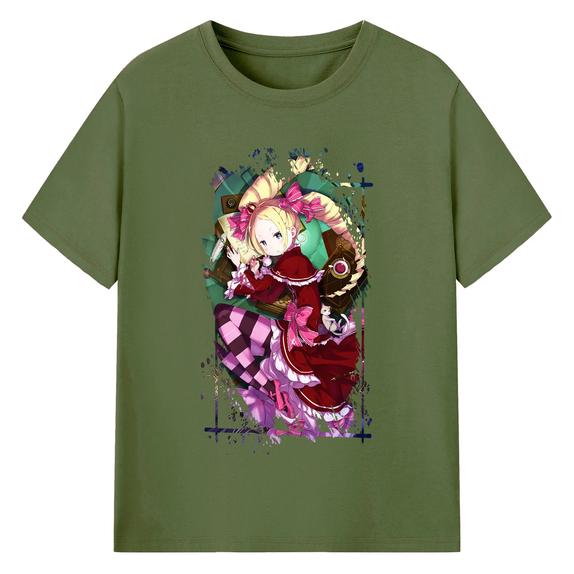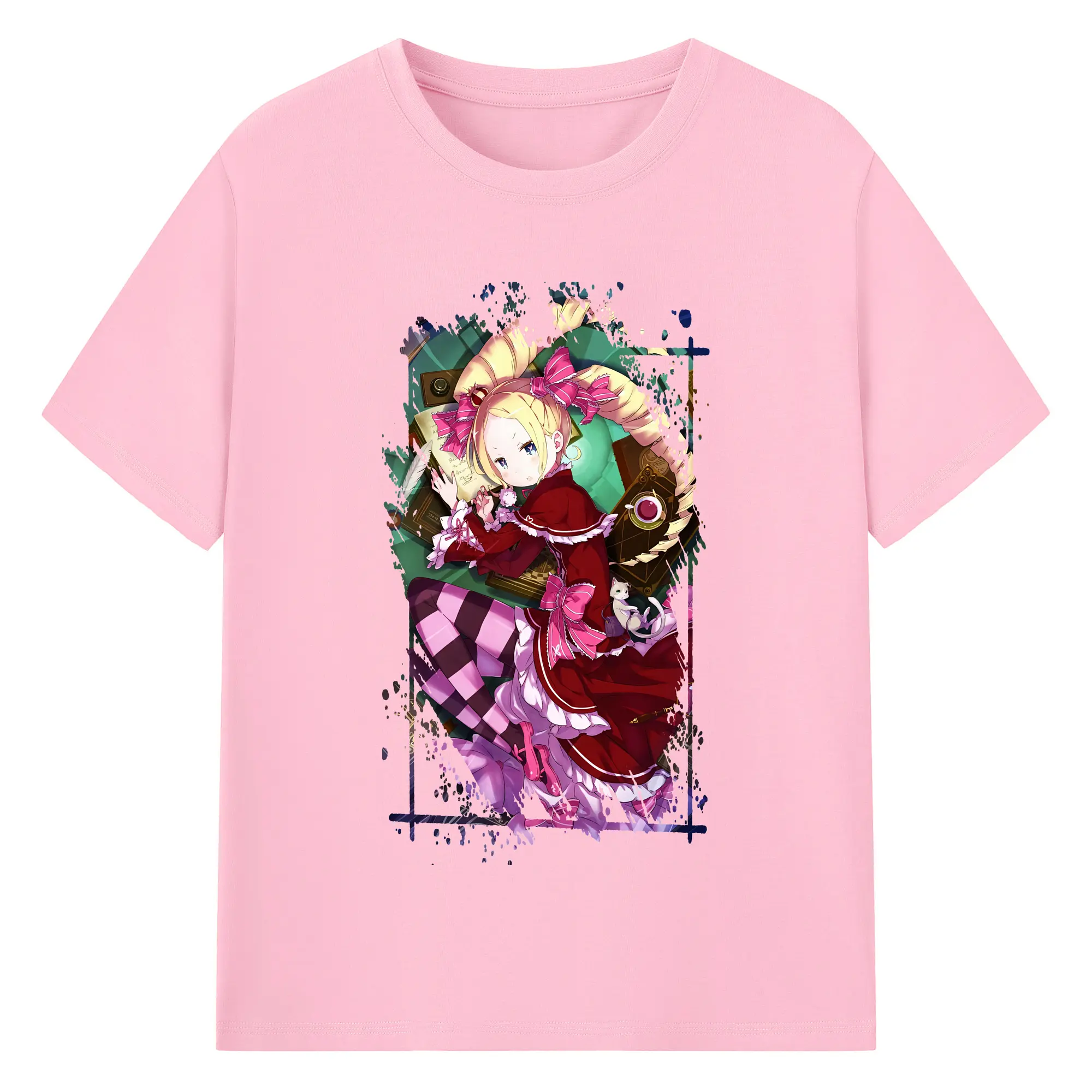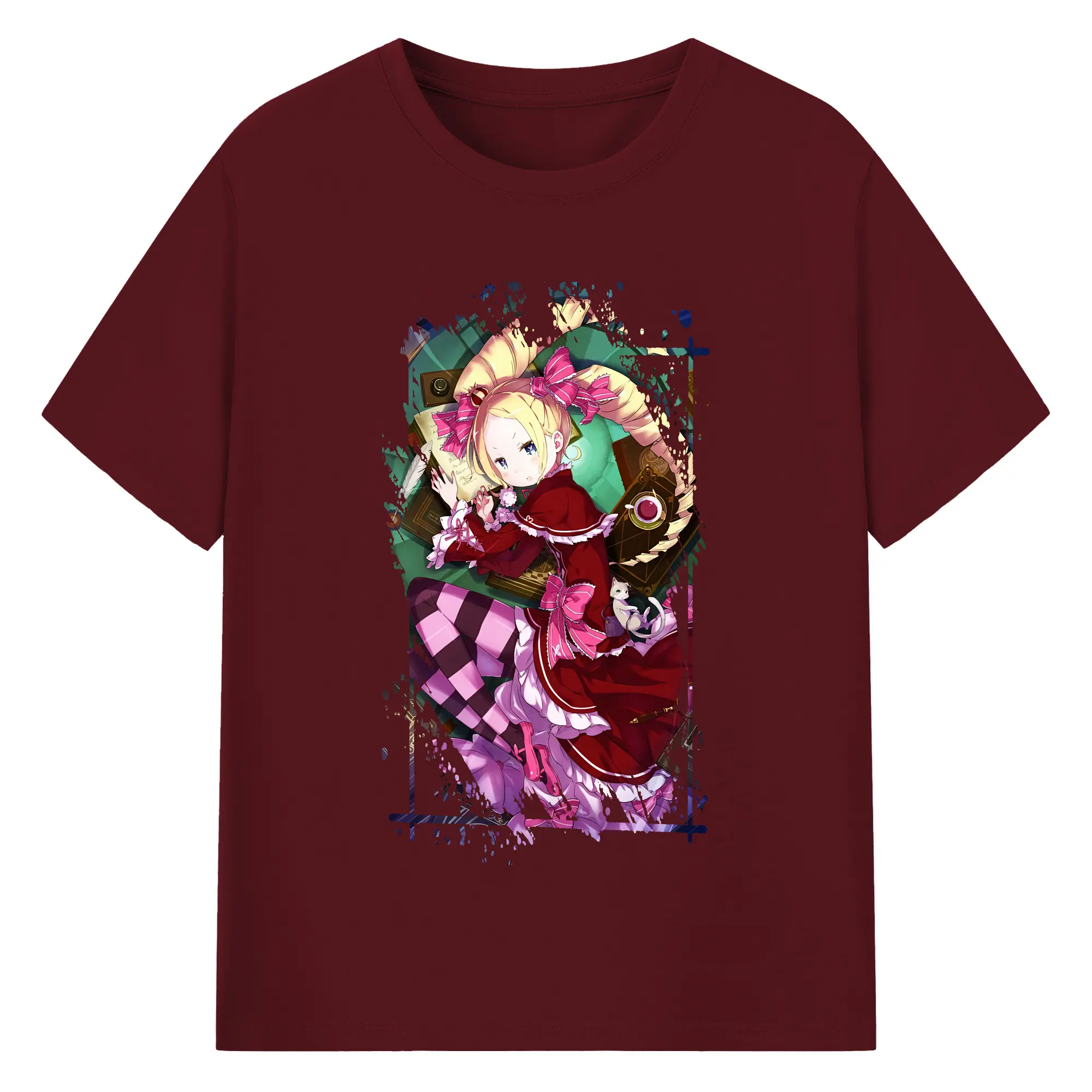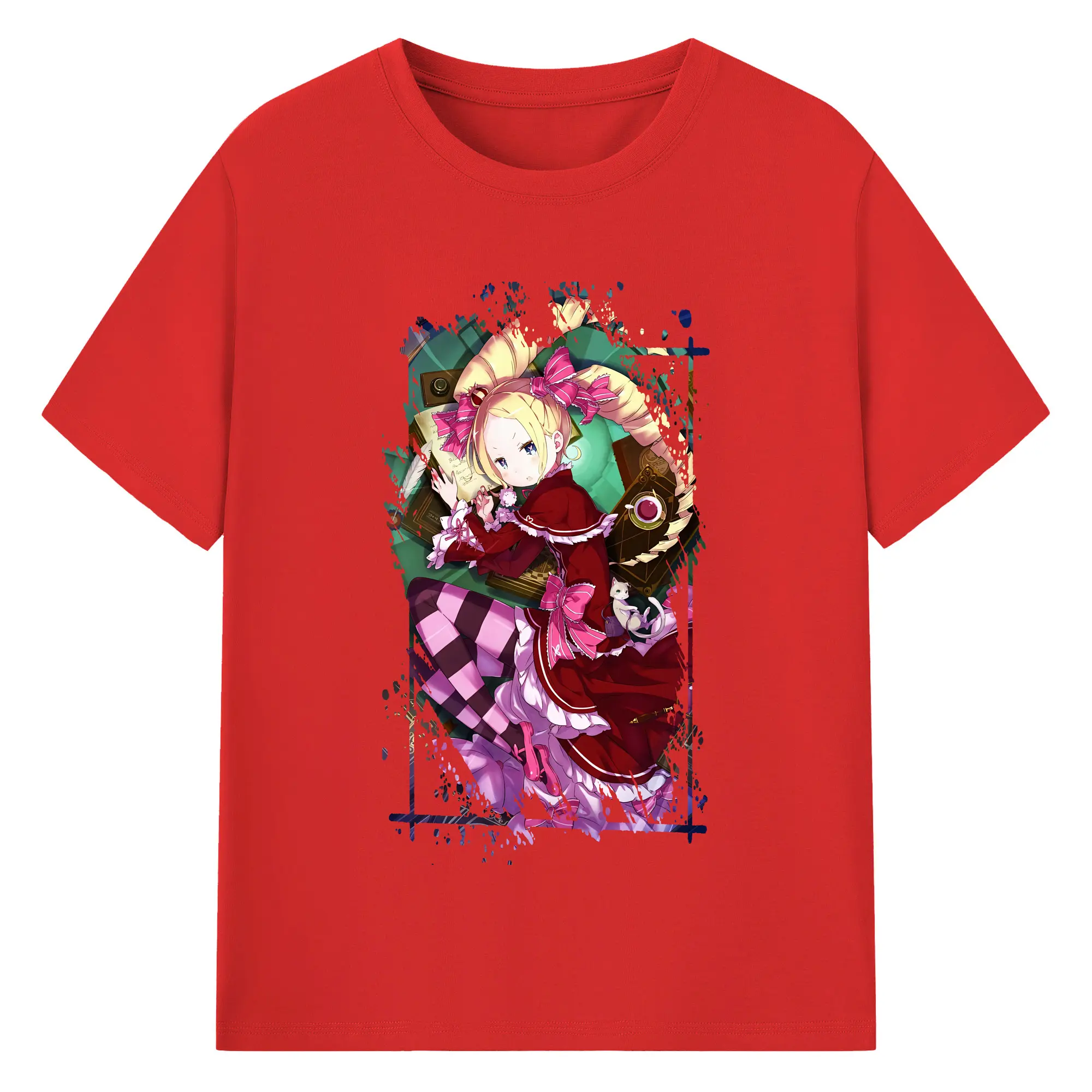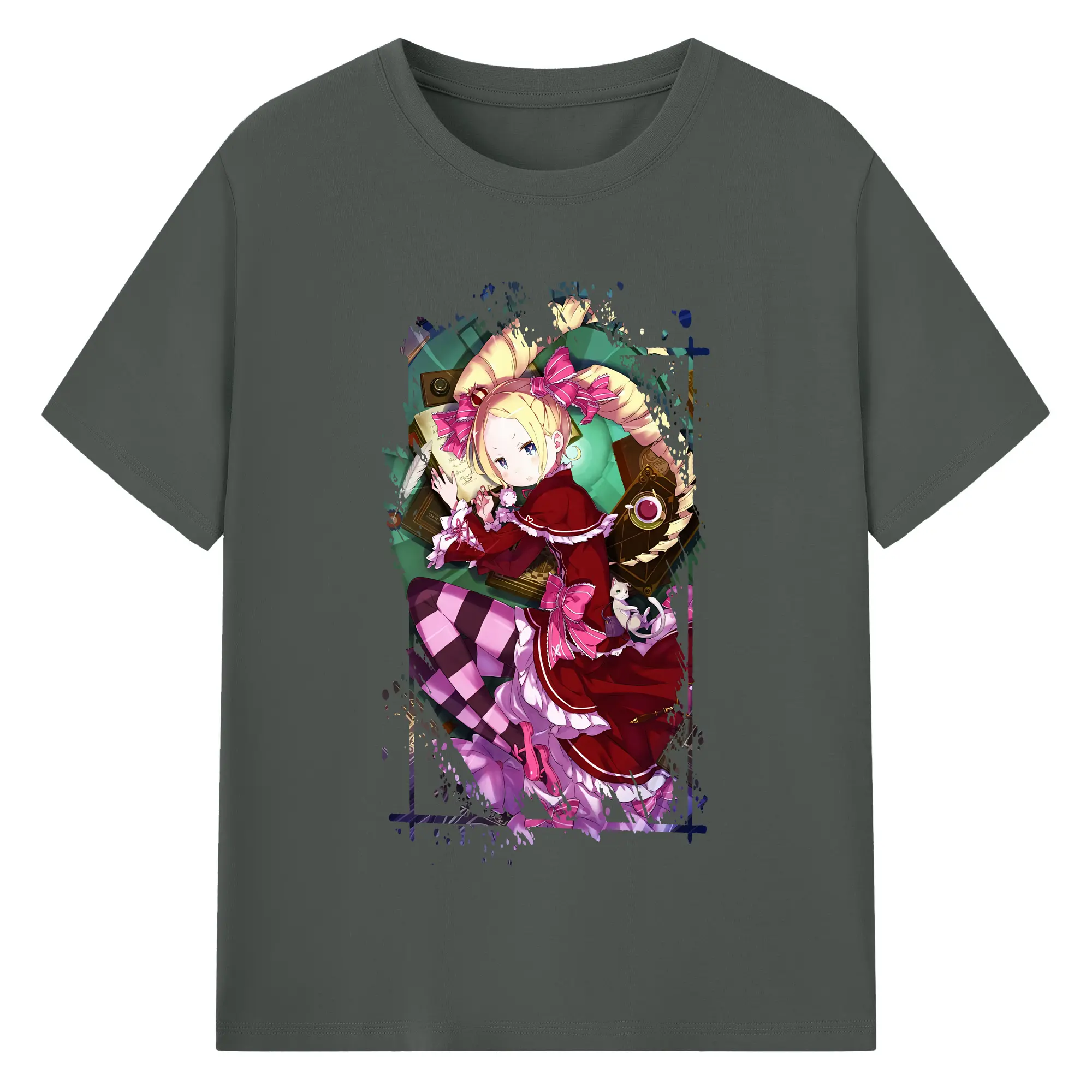 リゼロ グッズ ベアトリス - 綿100% 半袖Tシャツ ・ バックプリント ・ 快適 通気性 ・ 日常使い 散歩 スポーツ用