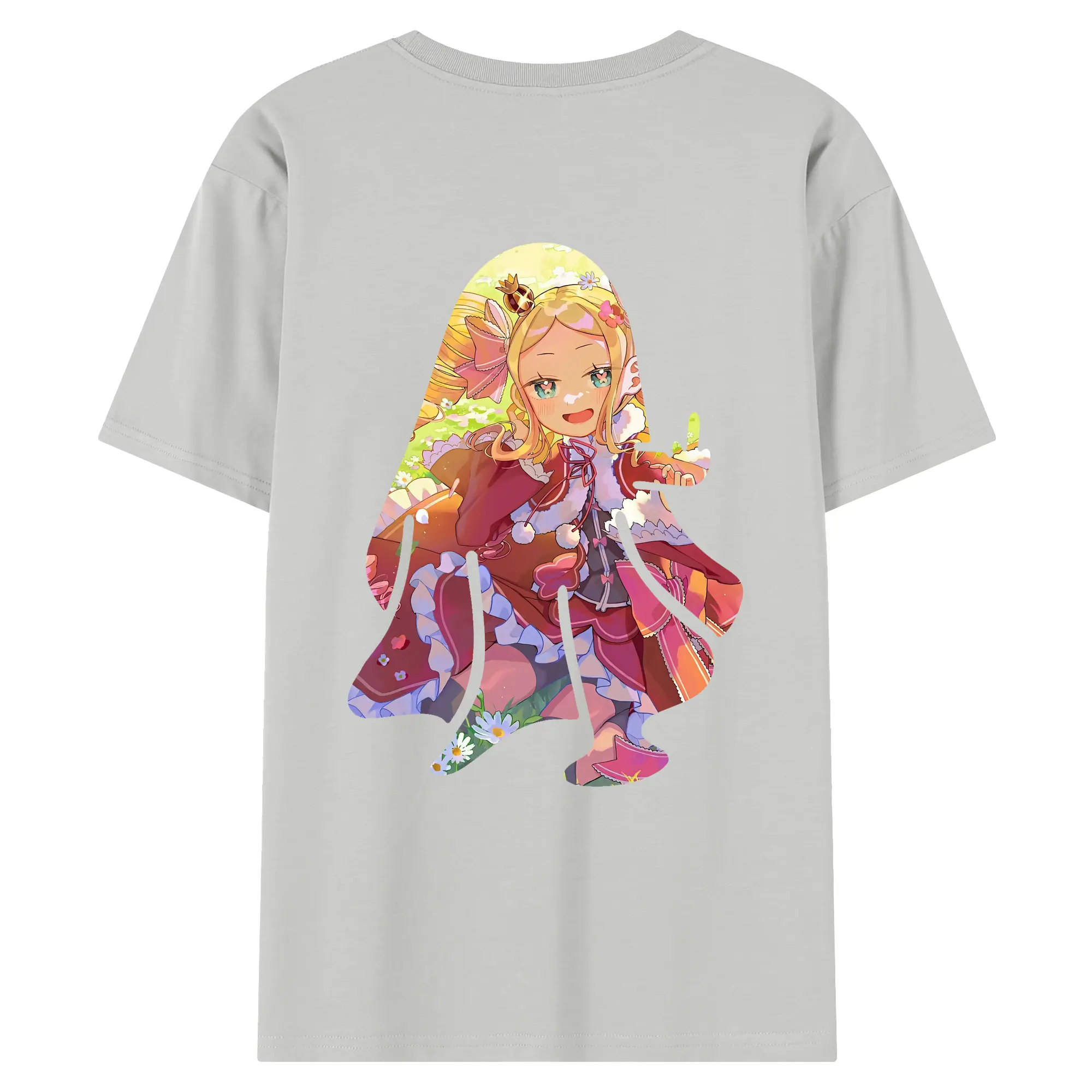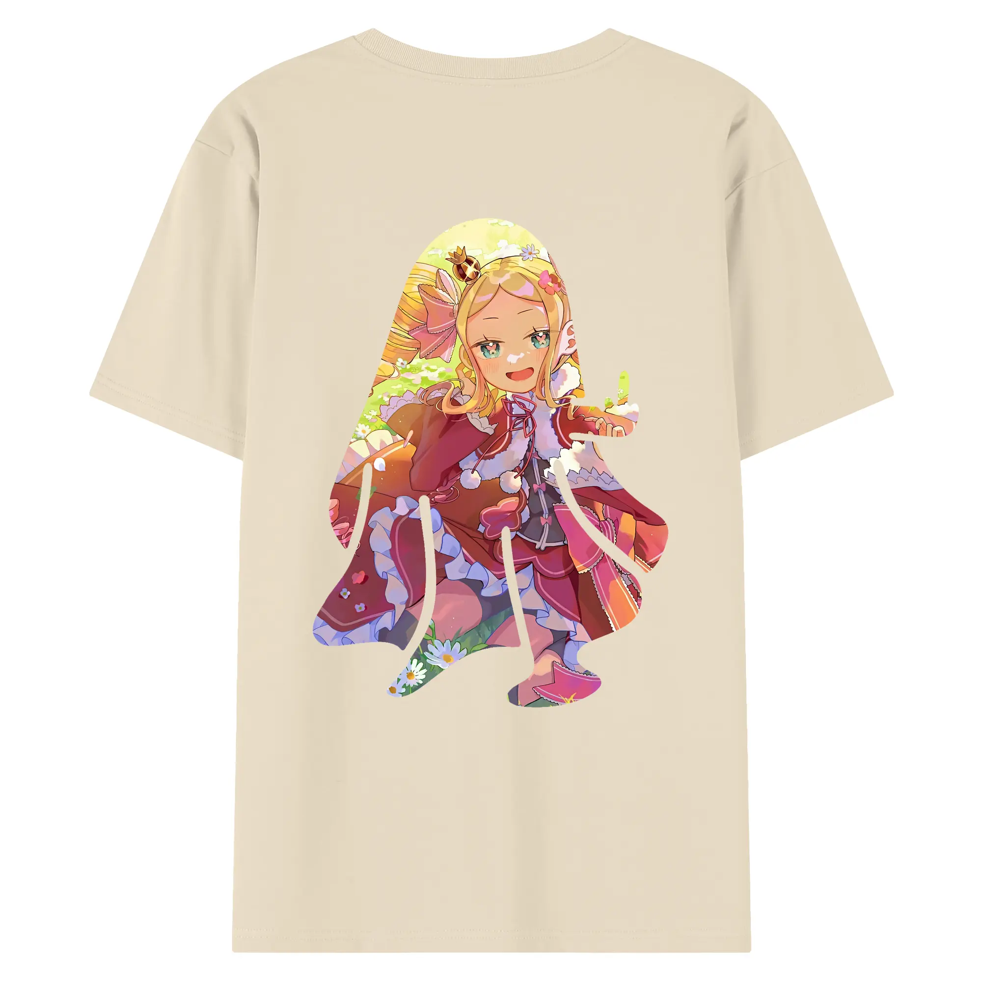 リゼロ グッズ ベアトリス - 綿100% ヴィンテージ風 半袖Tシャツ ・ 背面プリント ・ 柔らか肌触り ・ 通気性 快適 ・ スポーツ カジュアル 外出用