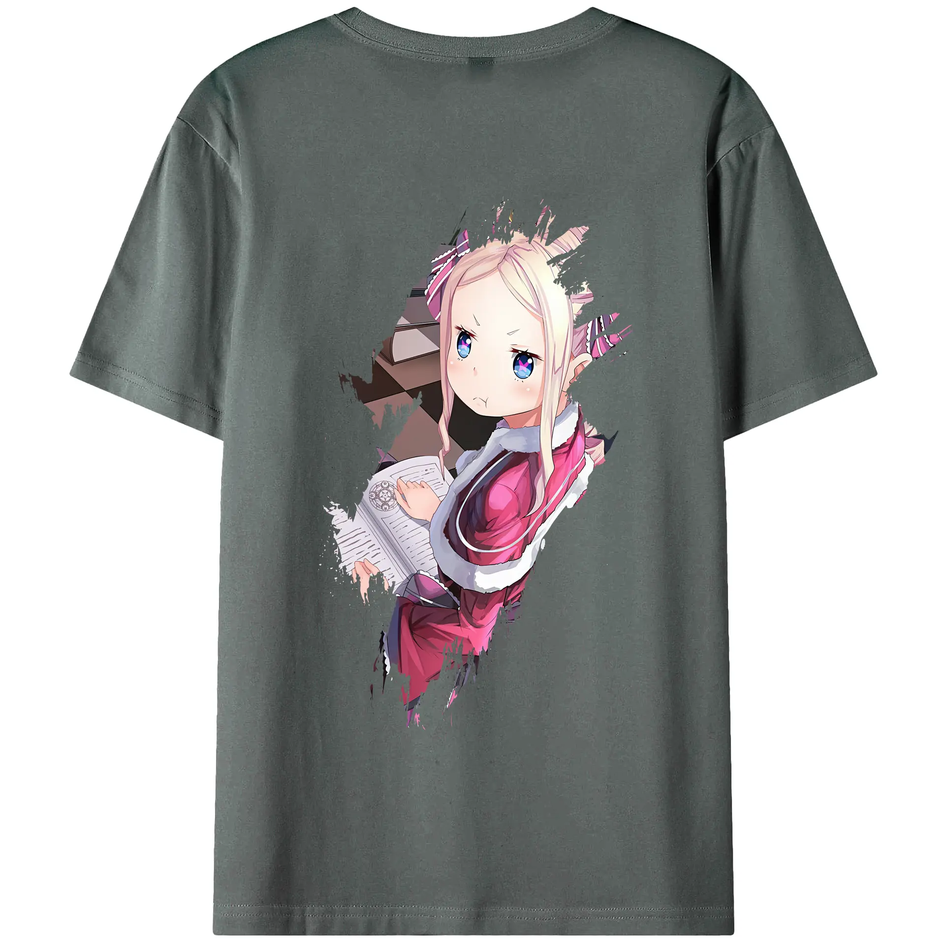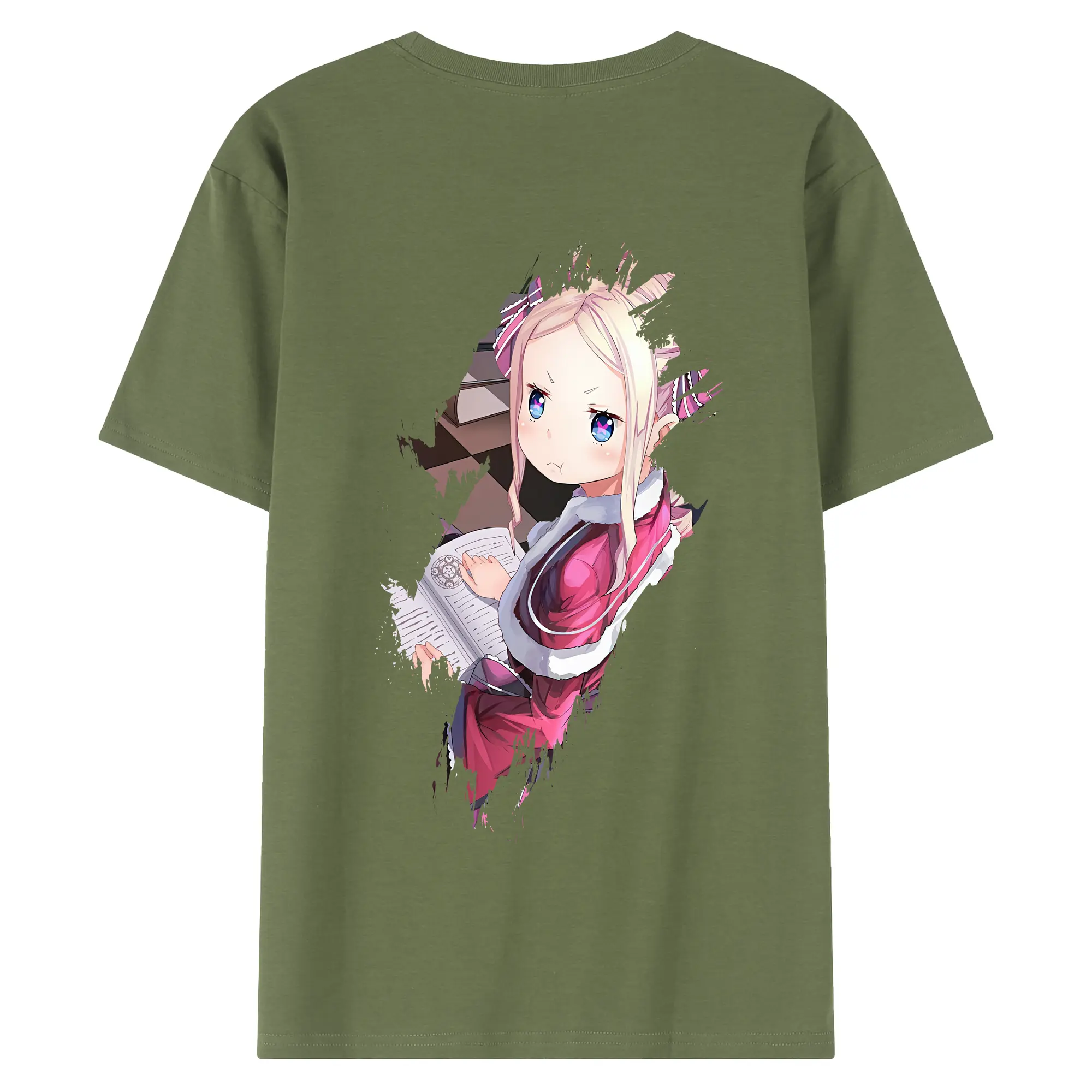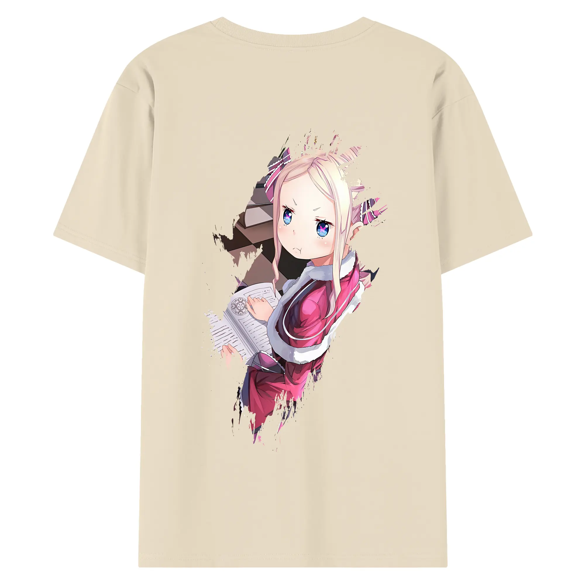 リゼロ グッズ ベアトリス - 綿100% ヴィンテージ風 半袖Tシャツ ・ 背面プリント ・ 柔らか肌触り ・ 通気性 快適 ・ スポーツ カジュアル 外出用
