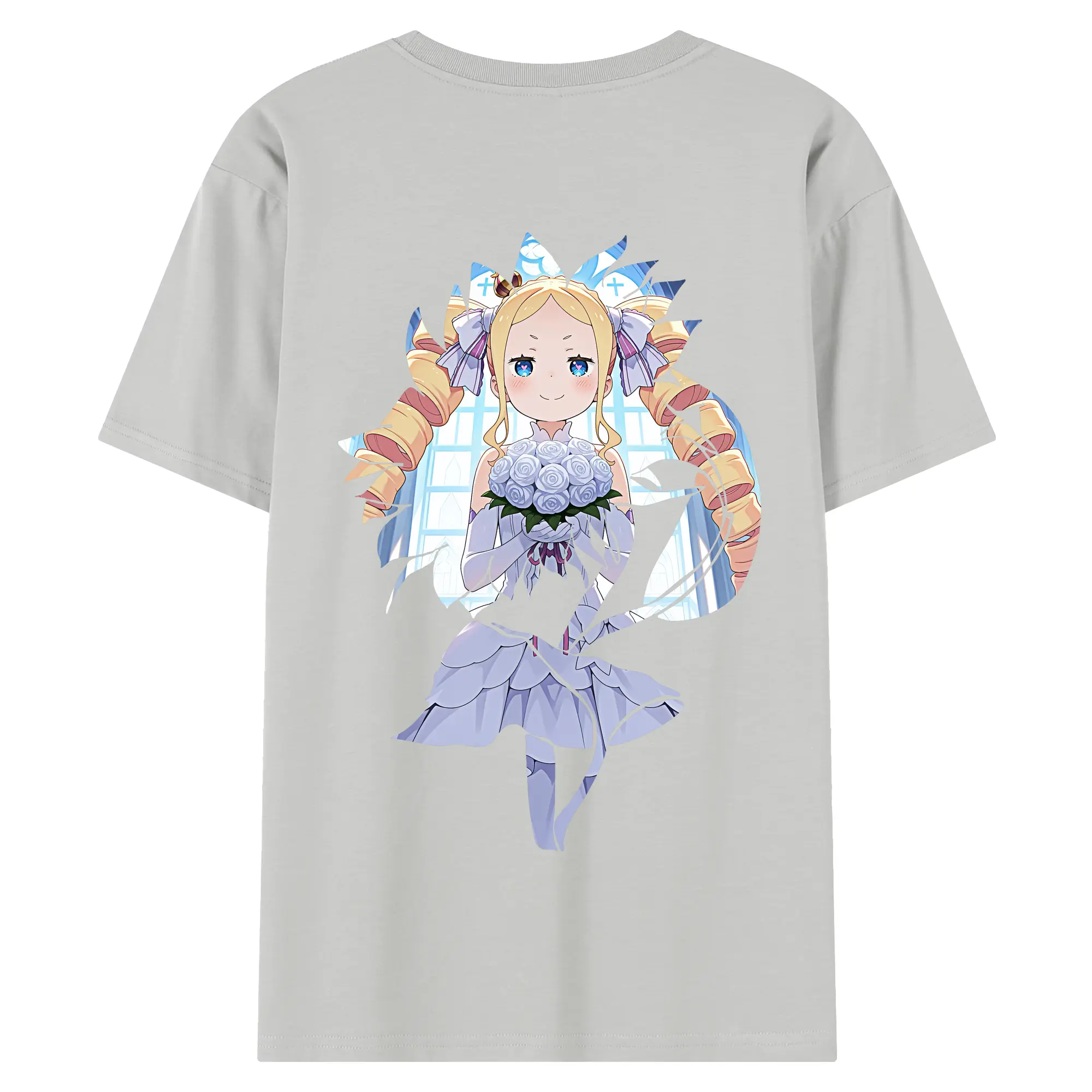 リゼロ グッズ ベアトリス - 綿100% ヴィンテージ風 半袖Tシャツ ・ 背面プリント ・ 柔らか肌触り ・ 通気性 快適 ・ スポーツ カジュアル 外出用