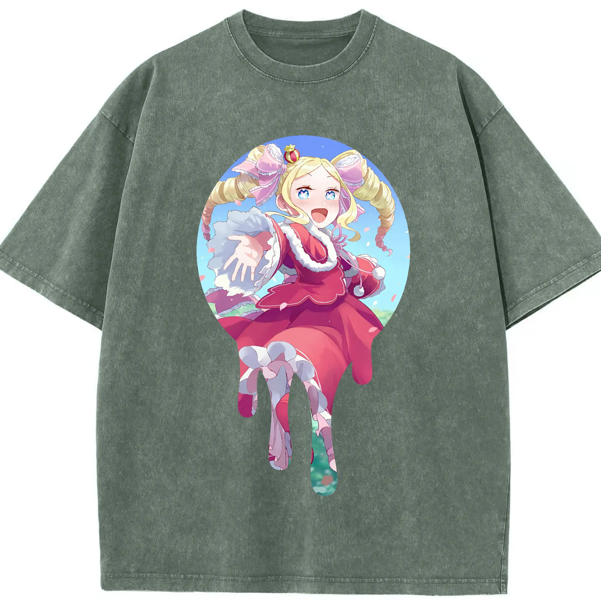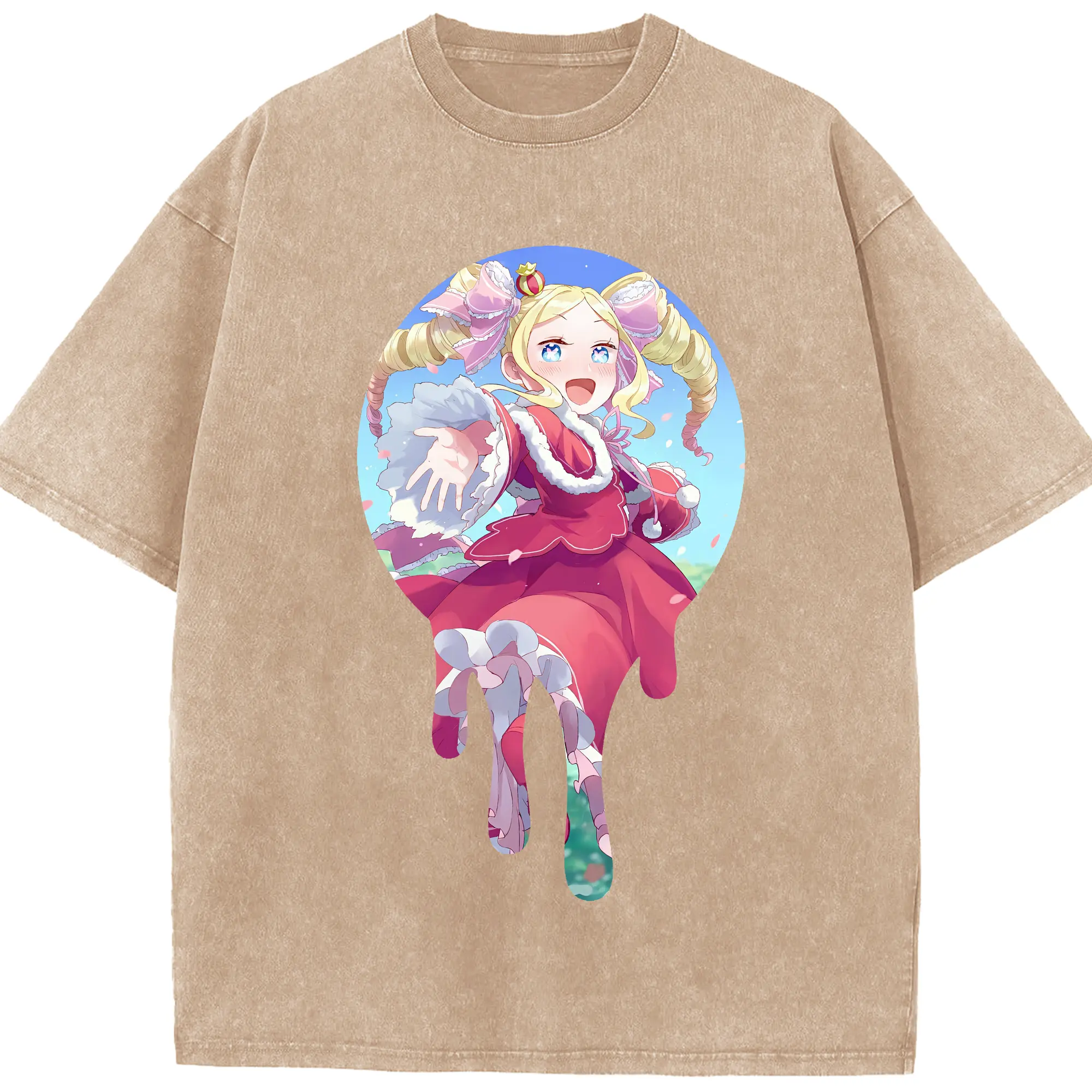 リゼロ グッズ ベアトリス - 綿100% ヴィンテージ風 半袖Tシャツ ・ 背面プリント ・ 柔らか肌触り ・ 通気性 快適 ・ スポーツ カジュアル 外出用
