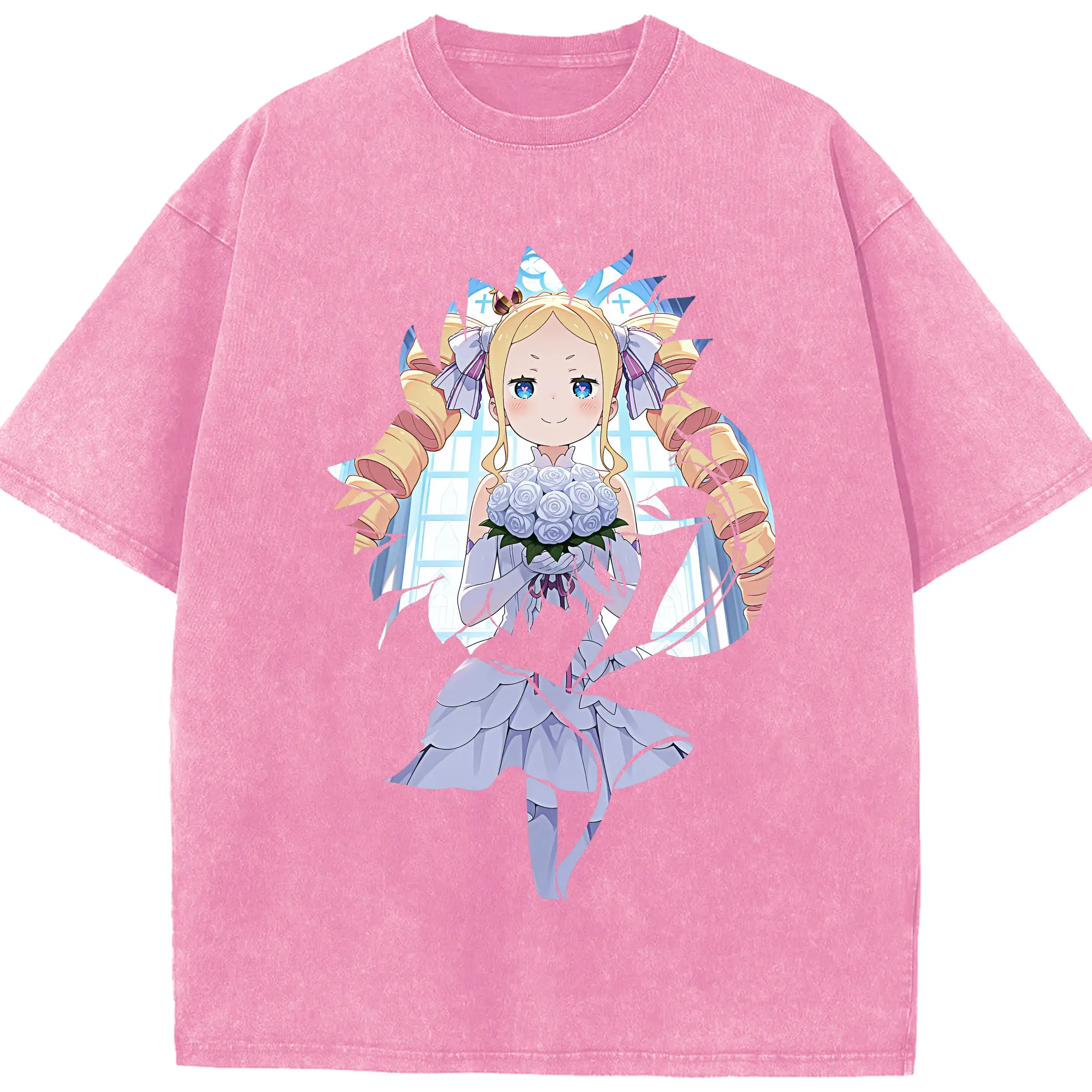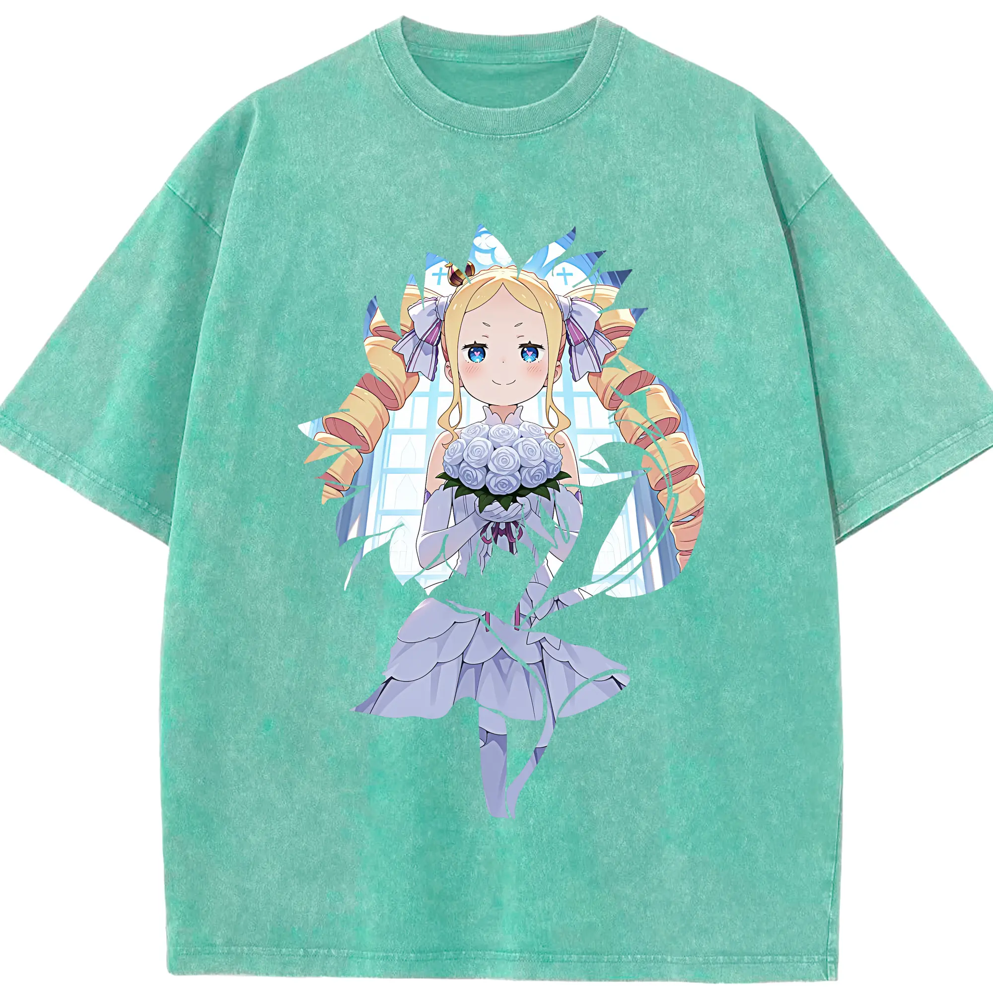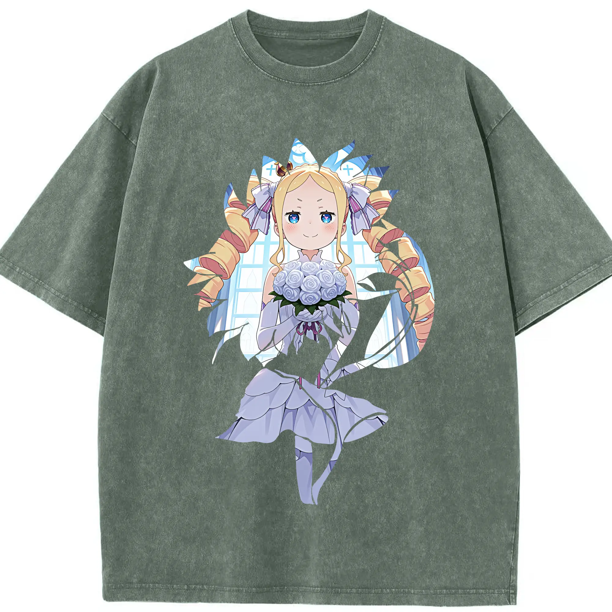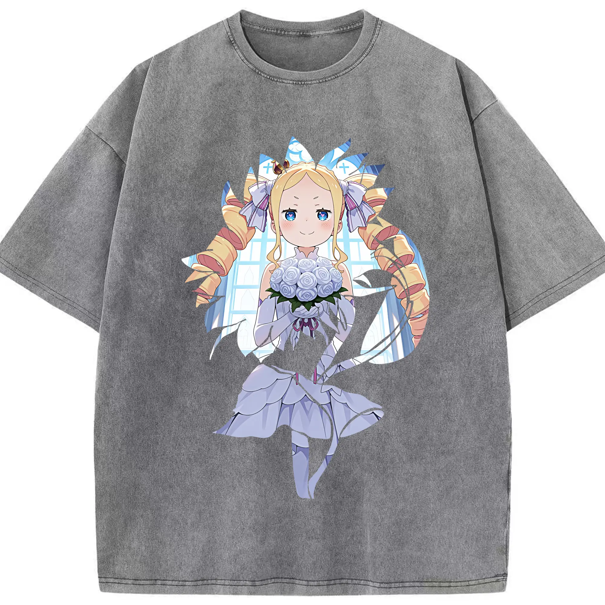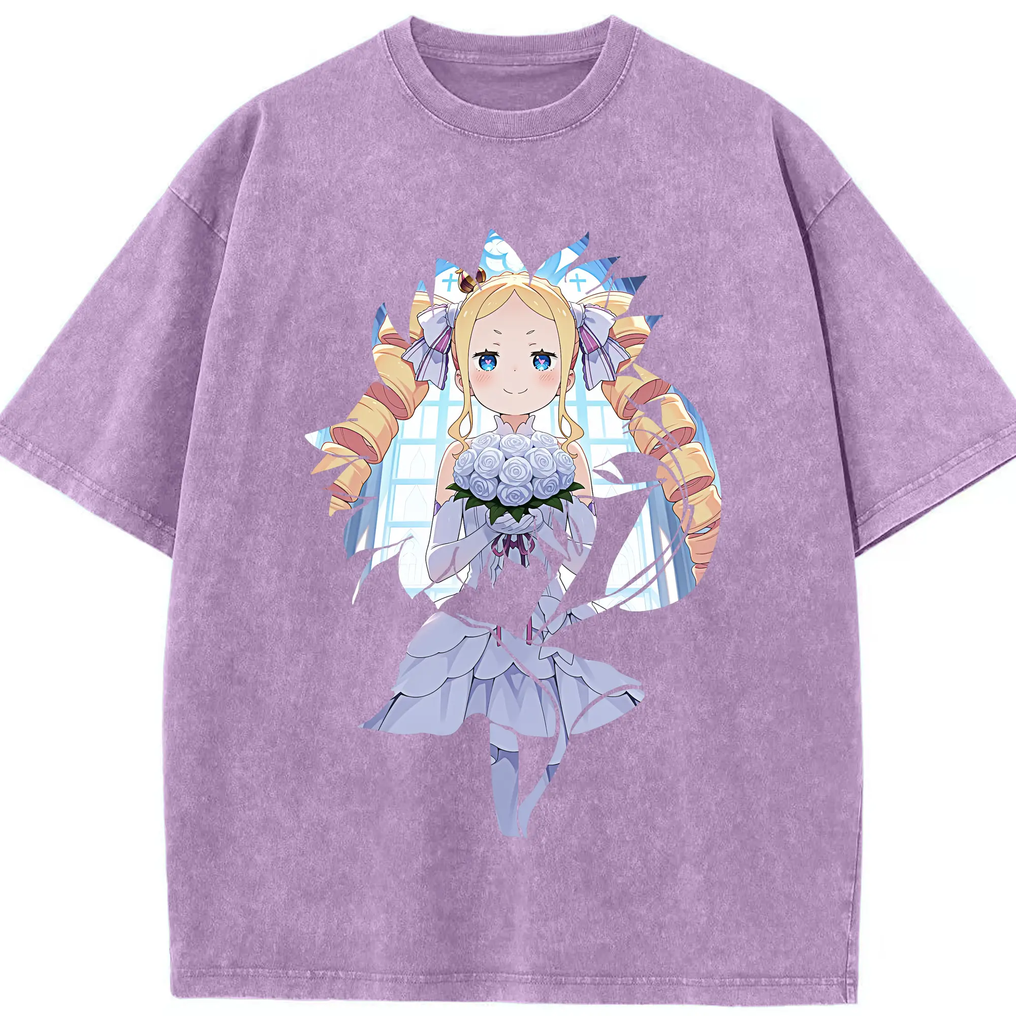 リゼロ グッズ ベアトリス - 綿100% ヴィンテージ風 半袖Tシャツ ・ 背面プリント ・ 柔らか肌触り ・ 通気性 快適 ・ スポーツ カジュアル 外出用
