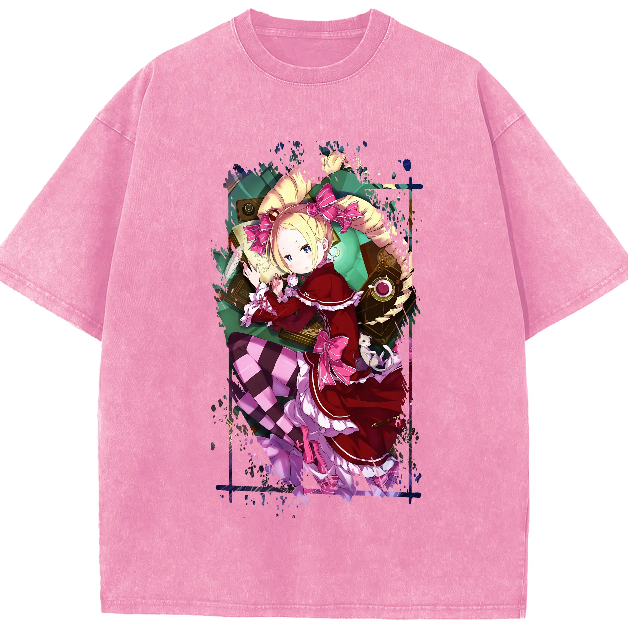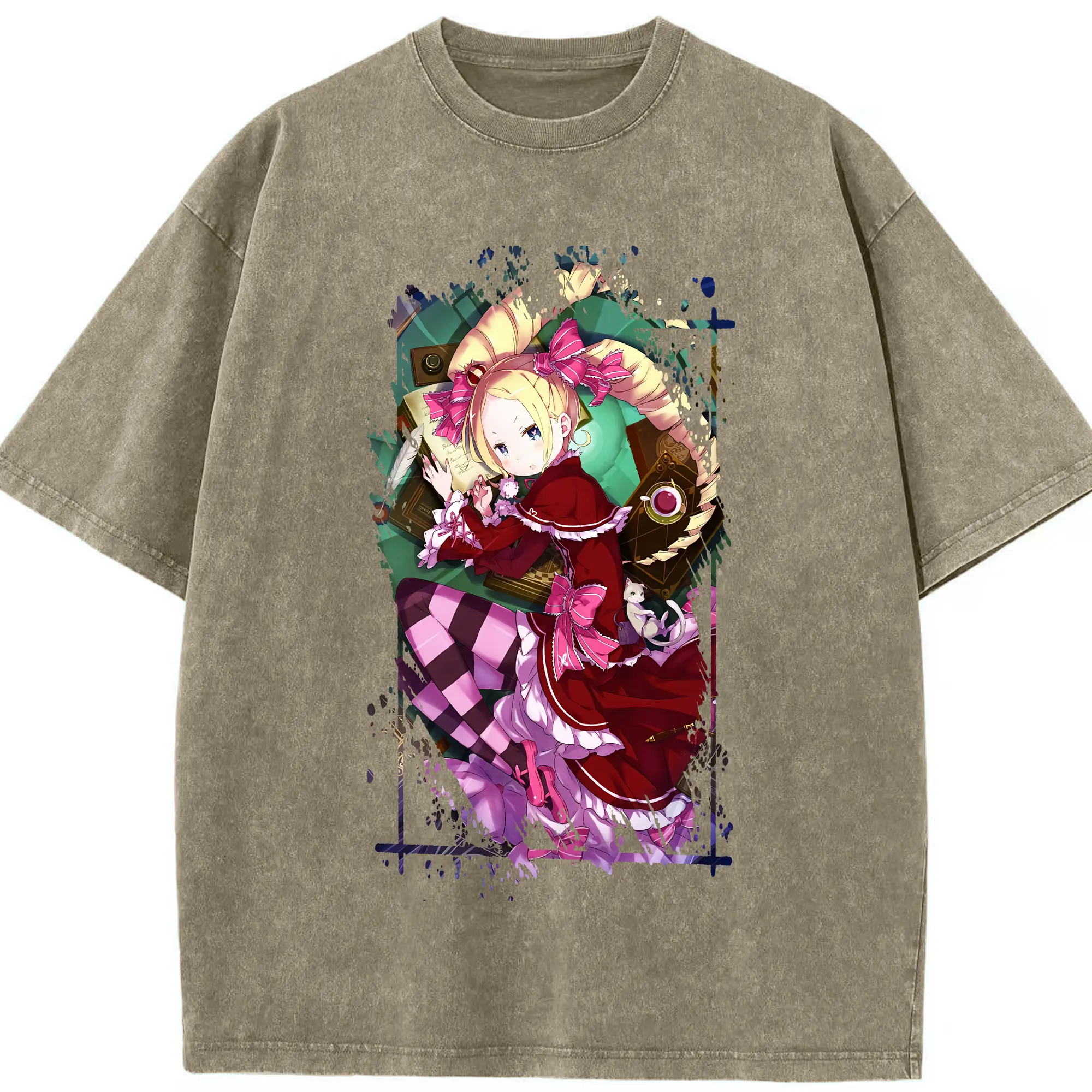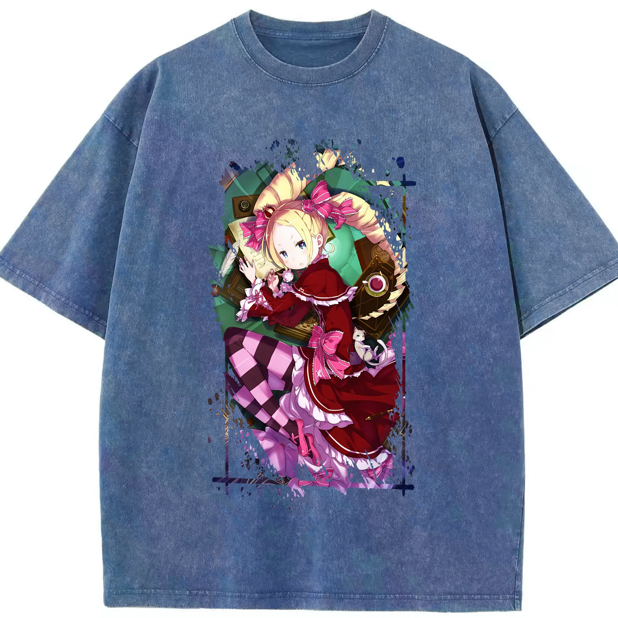 リゼロ グッズ ベアトリス - 綿100% ヴィンテージ風 半袖Tシャツ ・ 背面プリント ・ 柔らか肌触り ・ 通気性 快適 ・ スポーツ カジュアル 外出用