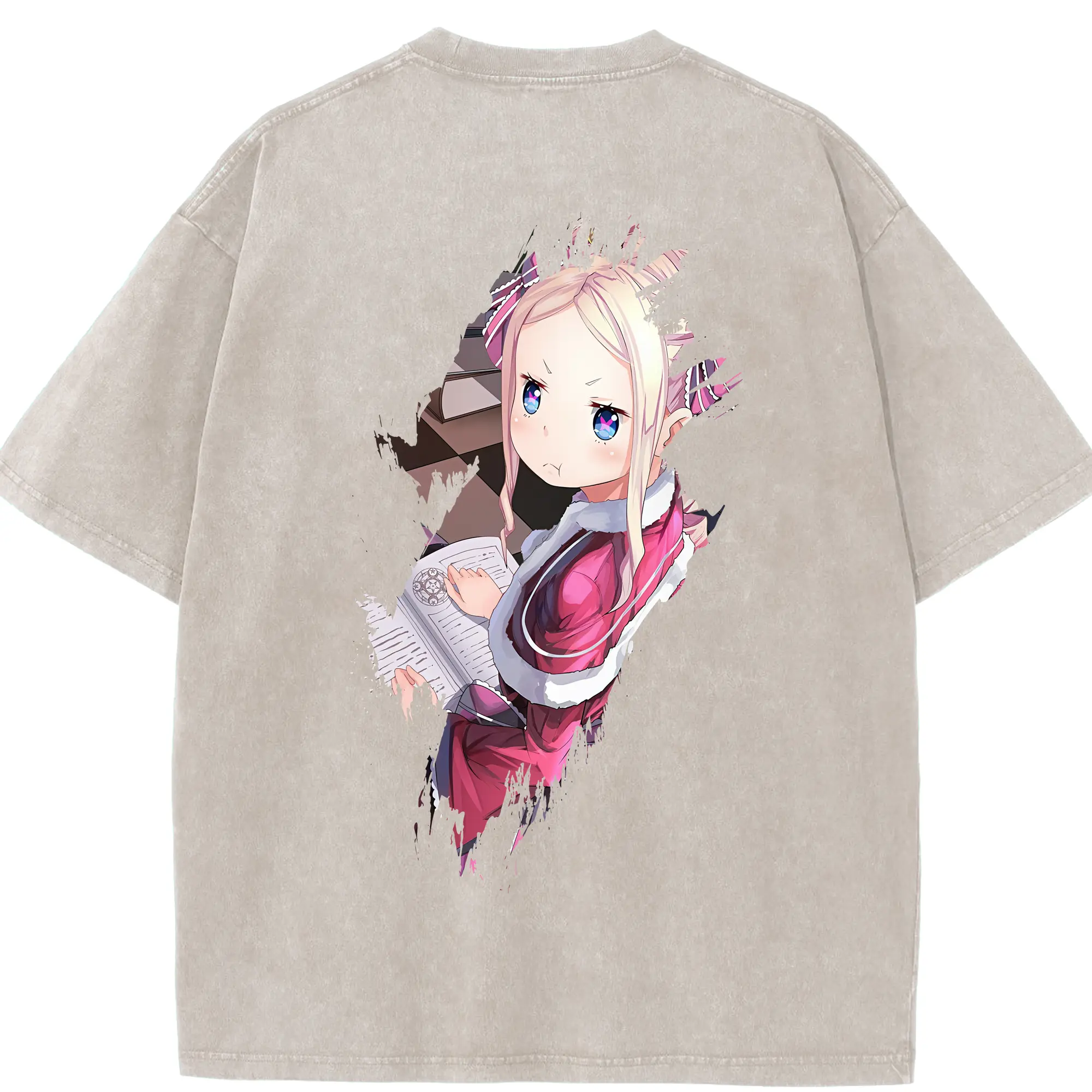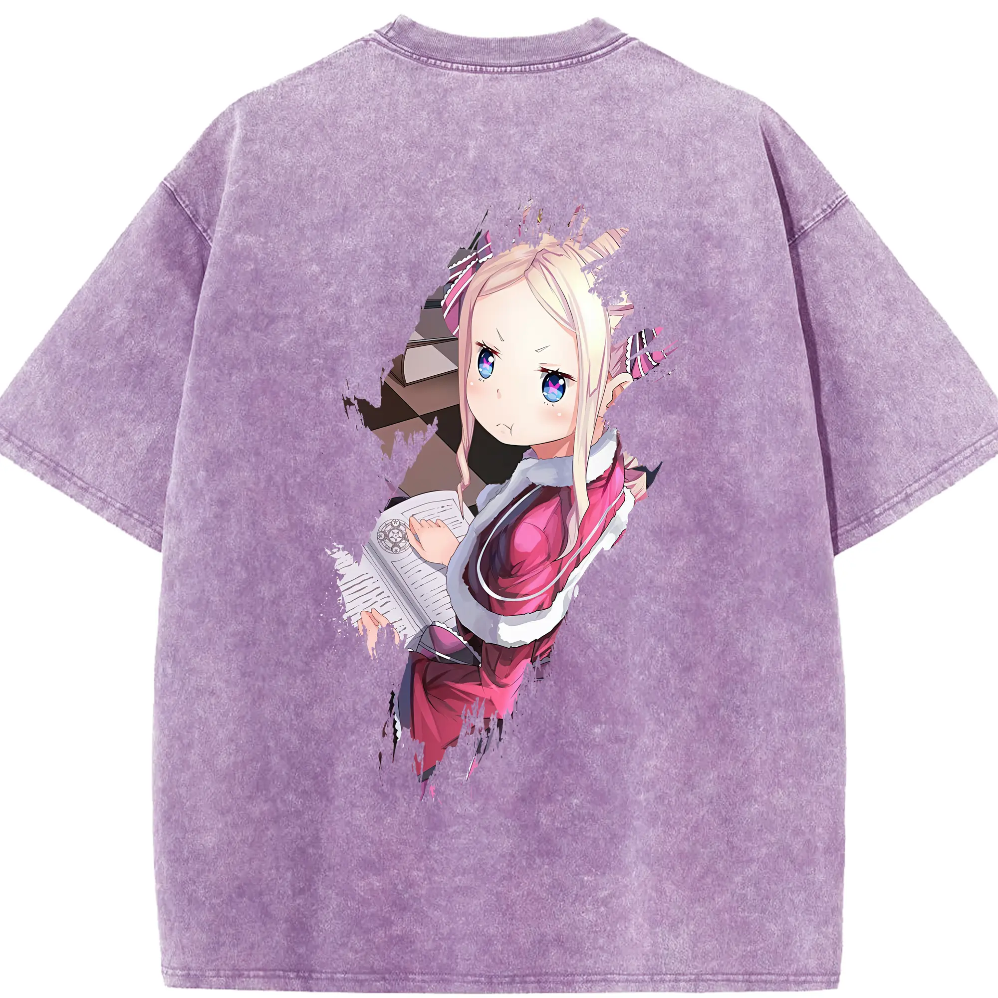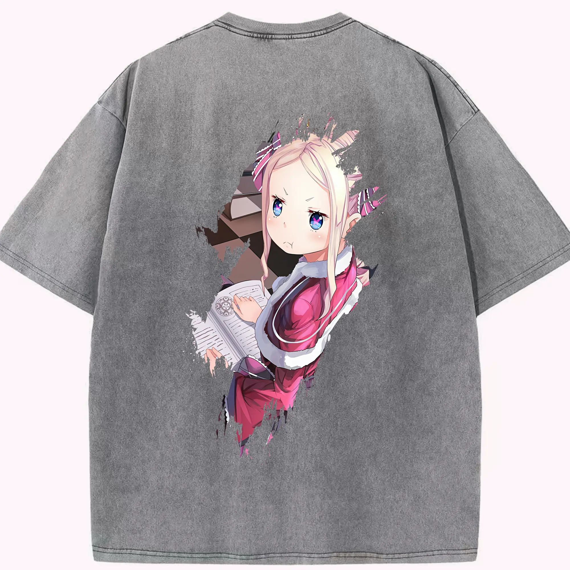 リゼロ グッズ ベアトリス - 綿100% ヴィンテージ風 半袖Tシャツ ・ フロントプリント ・ 柔らか肌触り ・ 通気性 快適 ・ スポーツ カジュアル 外出用