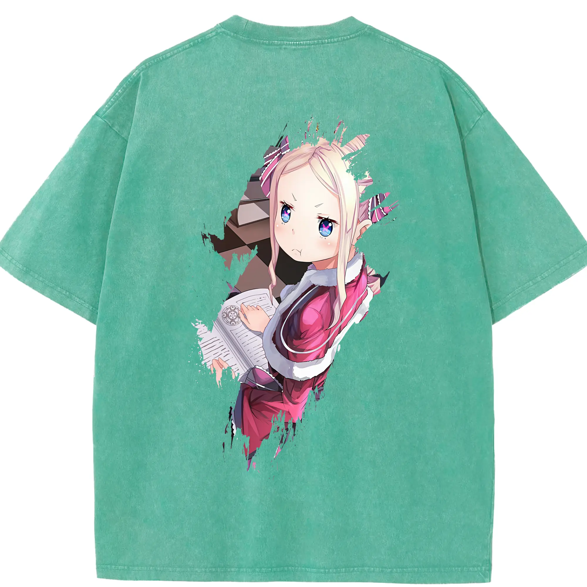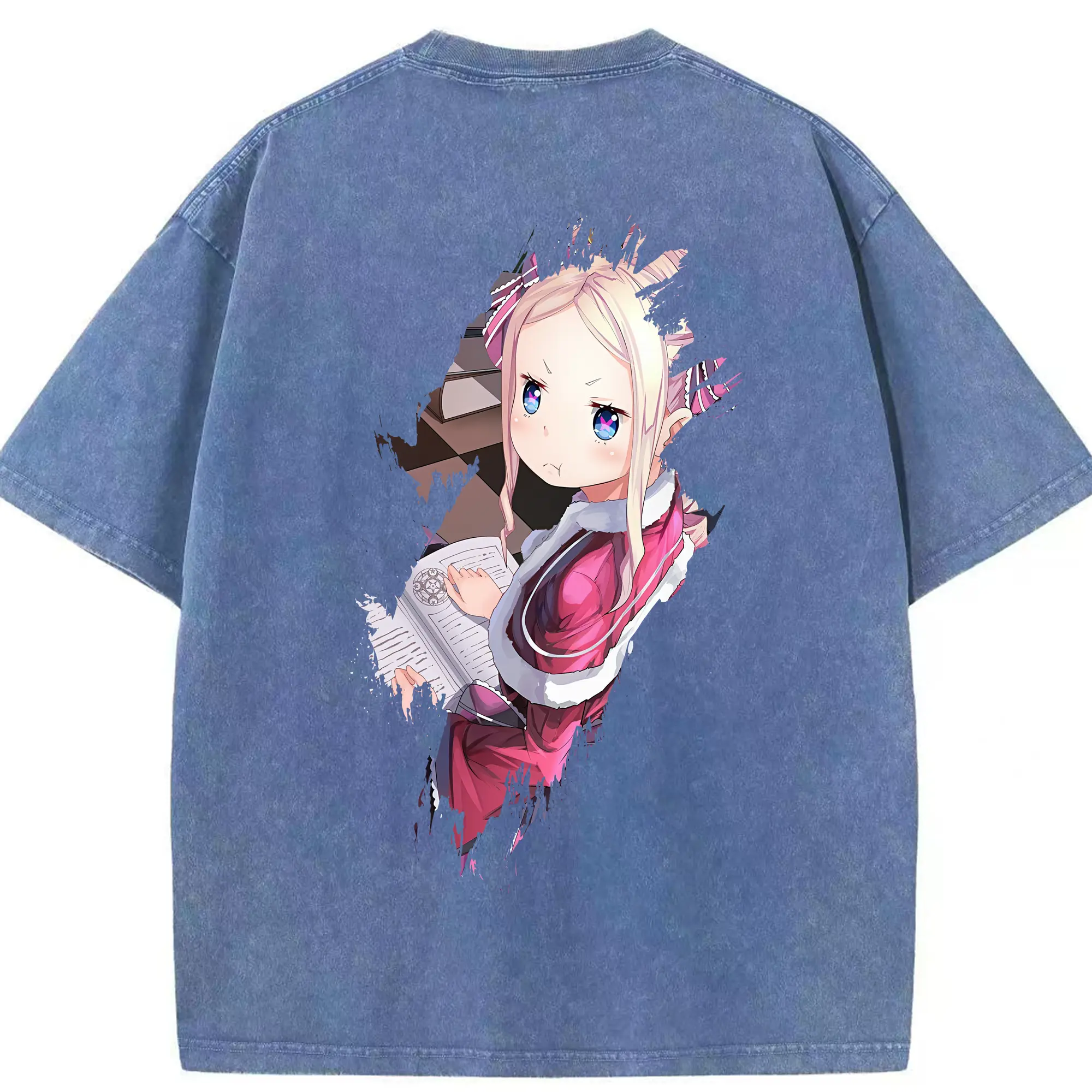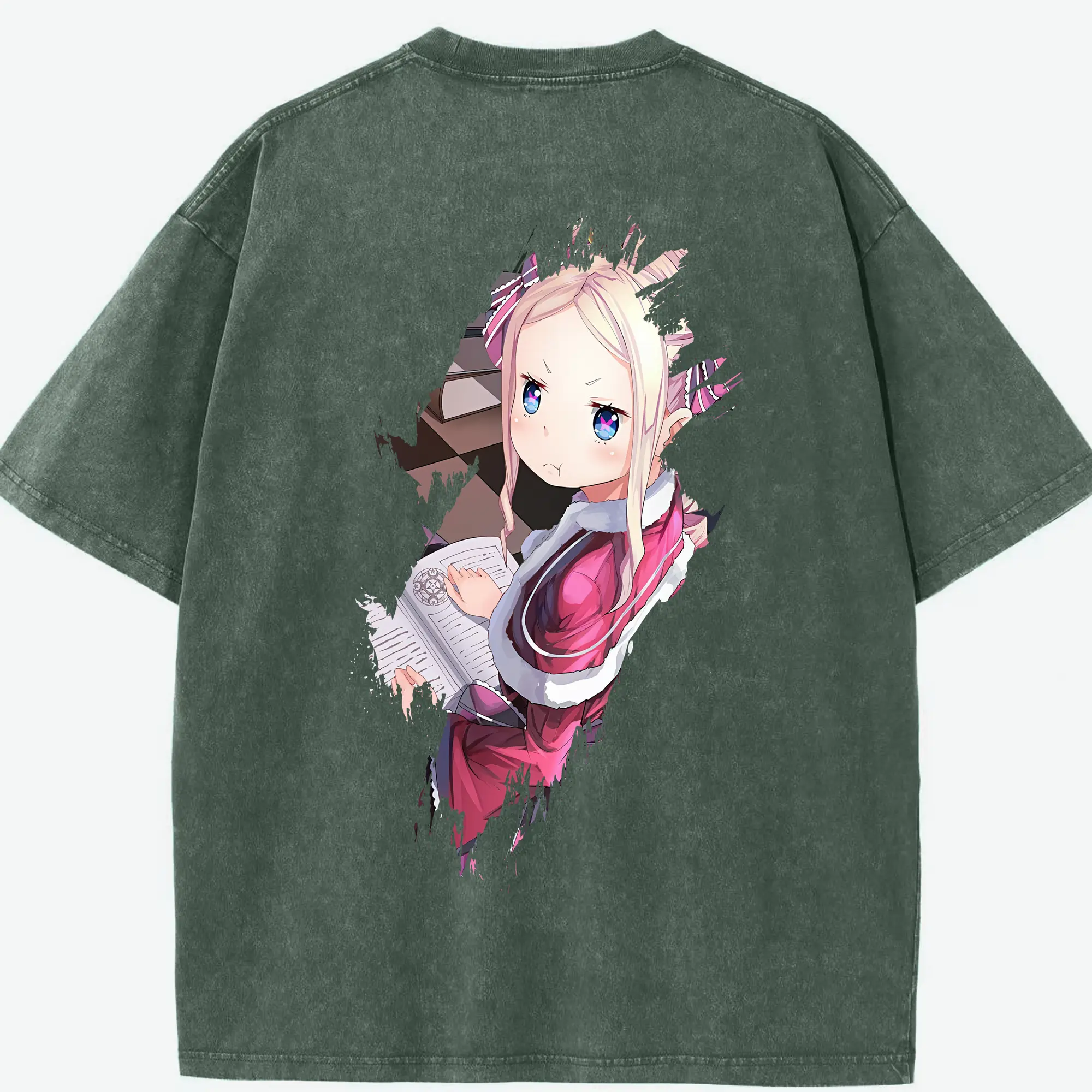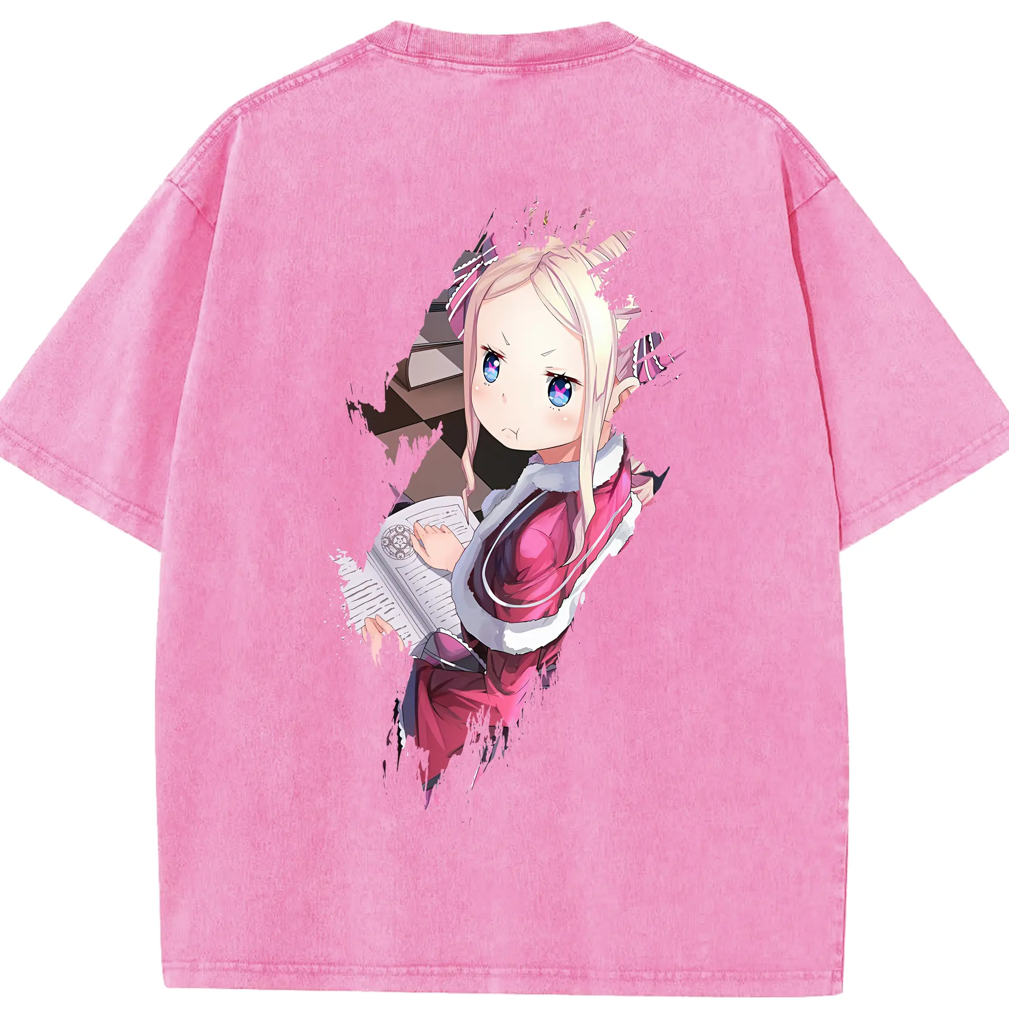 リゼロ グッズ ベアトリス - 綿100% ヴィンテージ風 半袖Tシャツ ・ フロントプリント ・ 柔らか肌触り ・ 通気性 快適 ・ スポーツ カジュアル 外出用