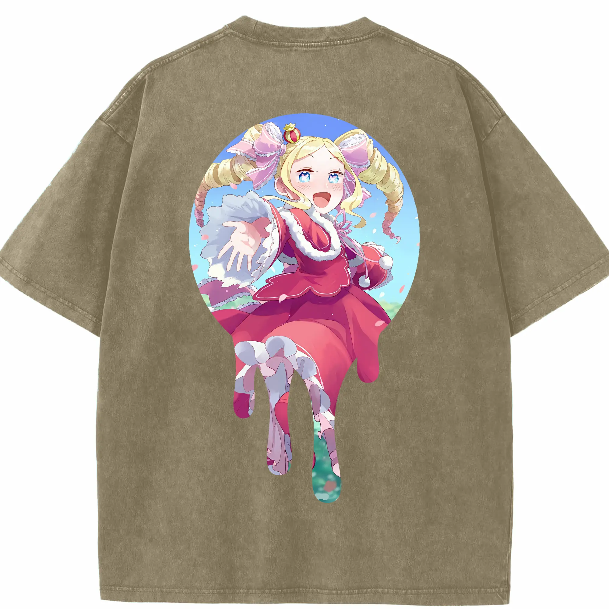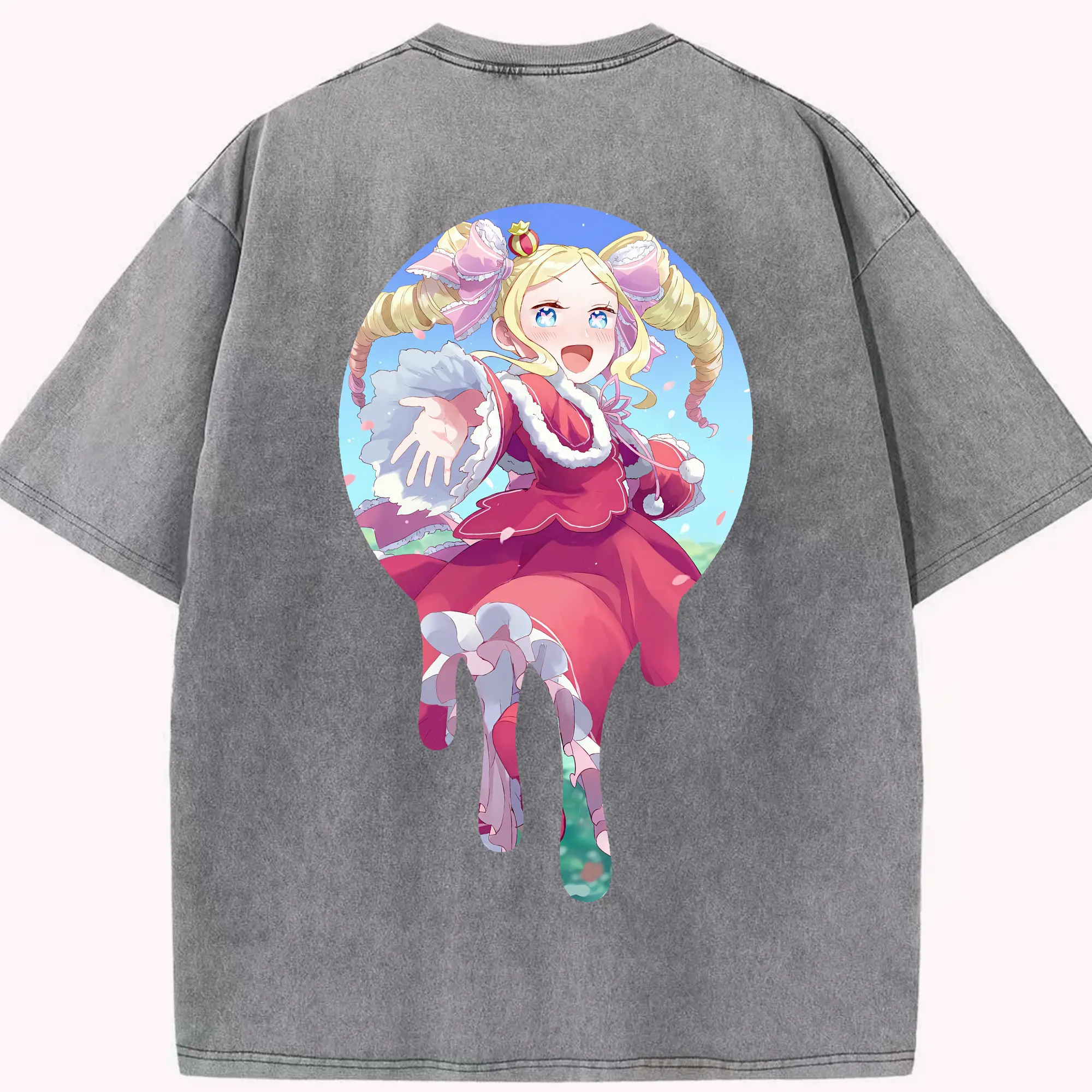 リゼロ グッズ ベアトリス - 綿100% ヴィンテージ風 半袖Tシャツ ・ フロントプリント ・ 柔らか肌触り ・ 通気性 快適 ・ スポーツ カジュアル 外出用