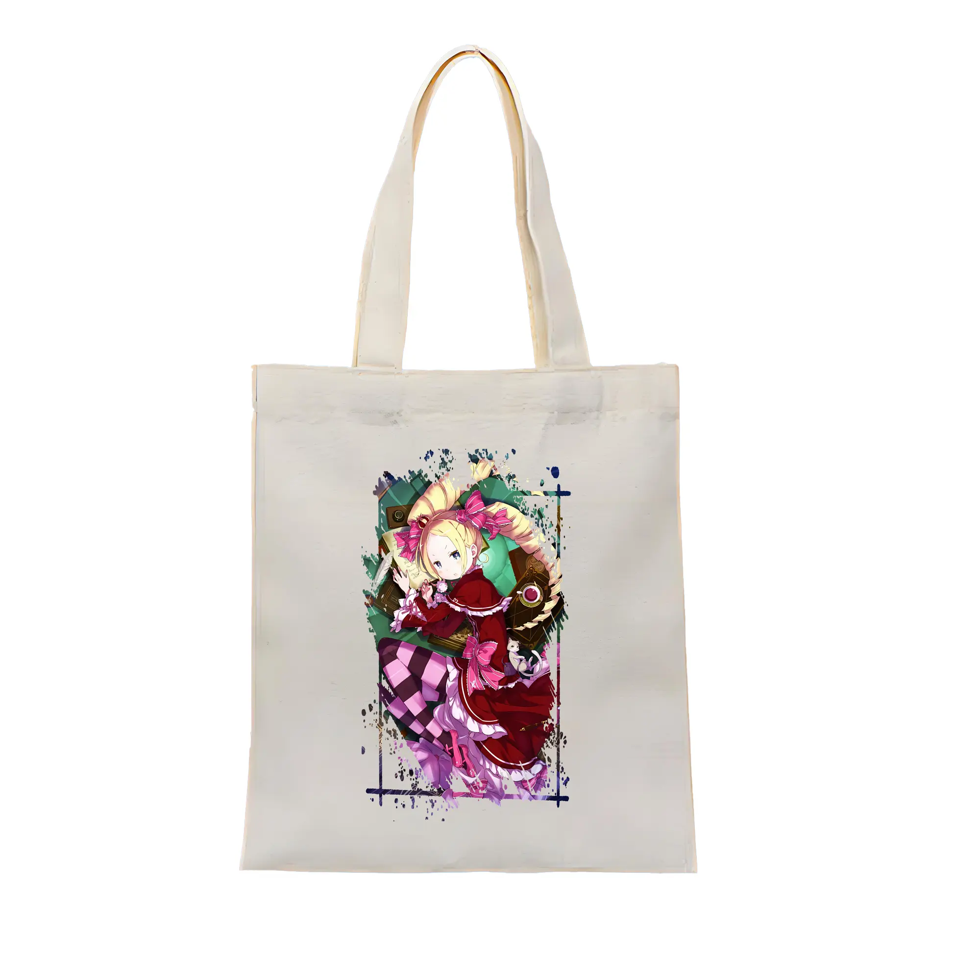 リゼロ グッズ ベアトリス - 縦型キャンバス手提げバッグ(トートバッグ) ・ キャンバス素材 ・ ショッピング用 ・ 軽量 丈夫 お手入れ簡単
