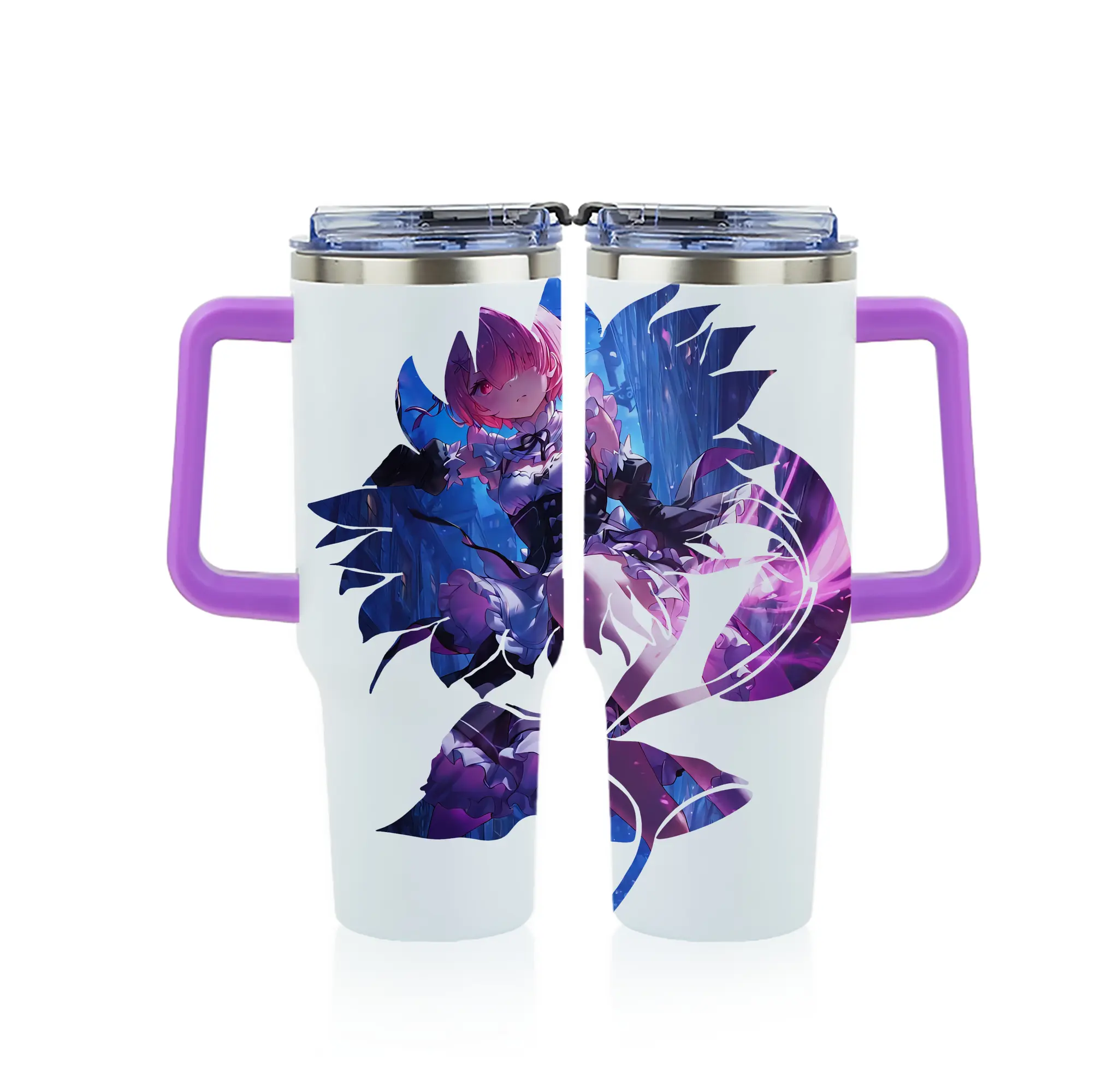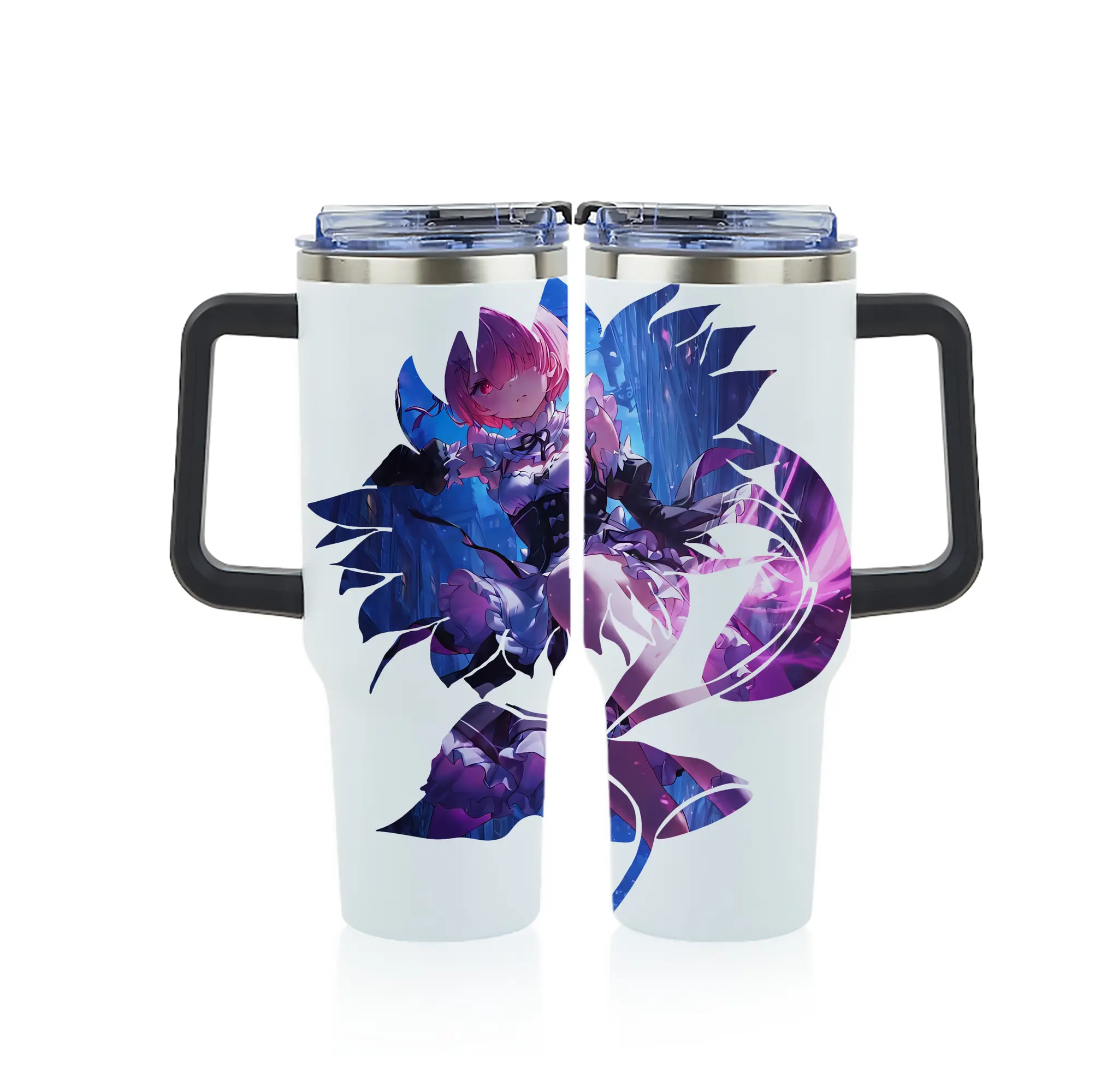 リゼロ グッズ ラム - 1200mL フルプリント車用タンブラー ・ 304ステンレス 内側 ・ 201ステンレス 外側 ・ 保温 保冷 ・ 通勤 ドライブ アウトドア用