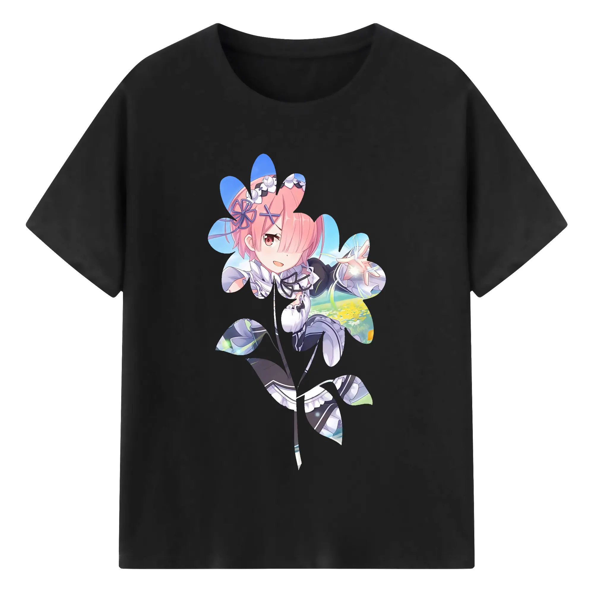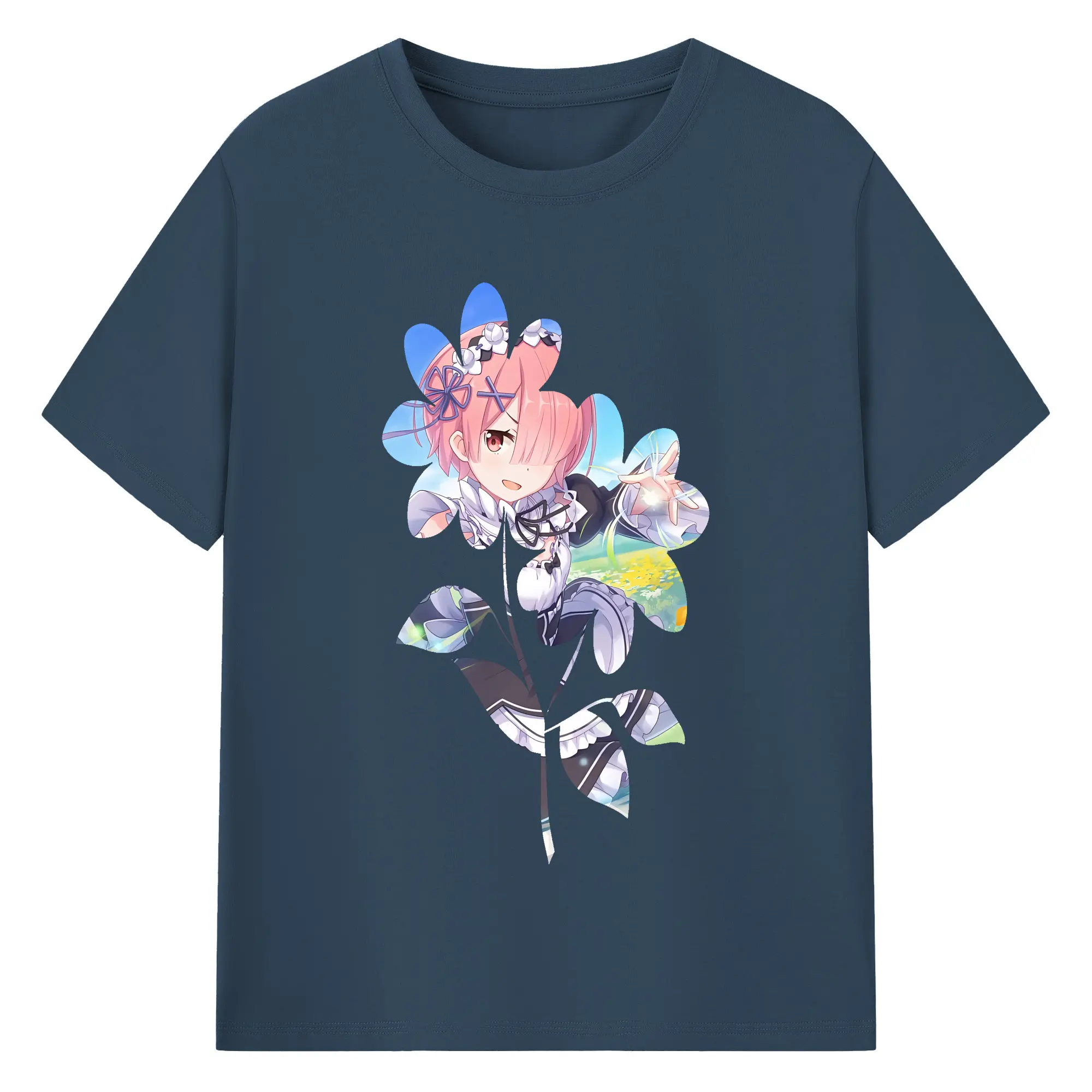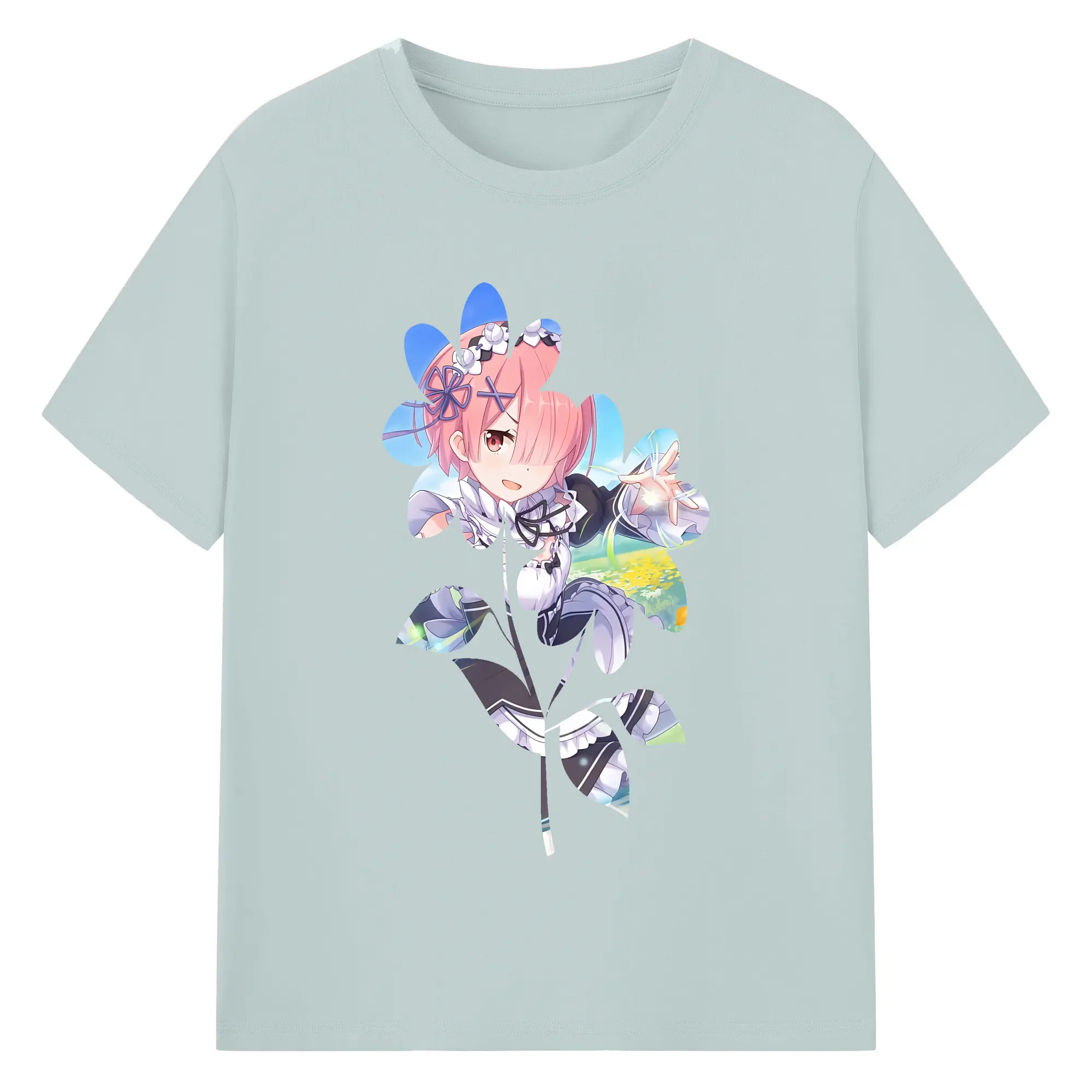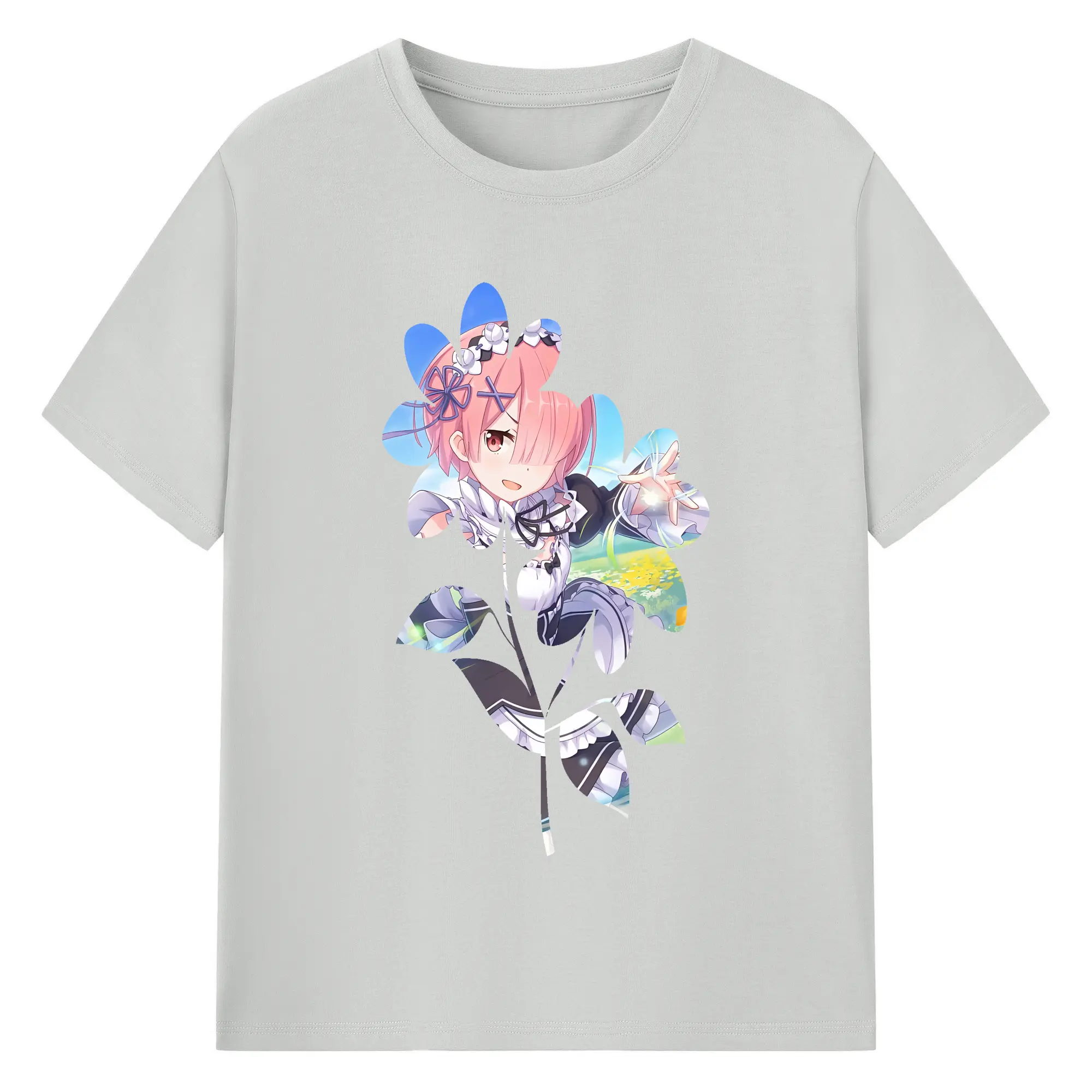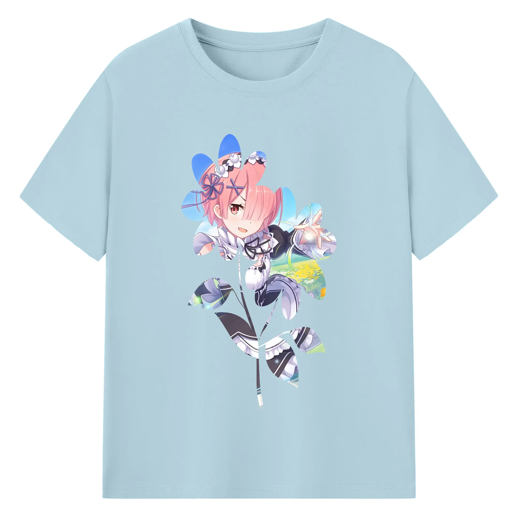 リゼロ グッズ ラム - 綿100% 半袖Tシャツ ・ バックプリント ・ 快適 通気性 ・ 日常使い 散歩 スポーツ用