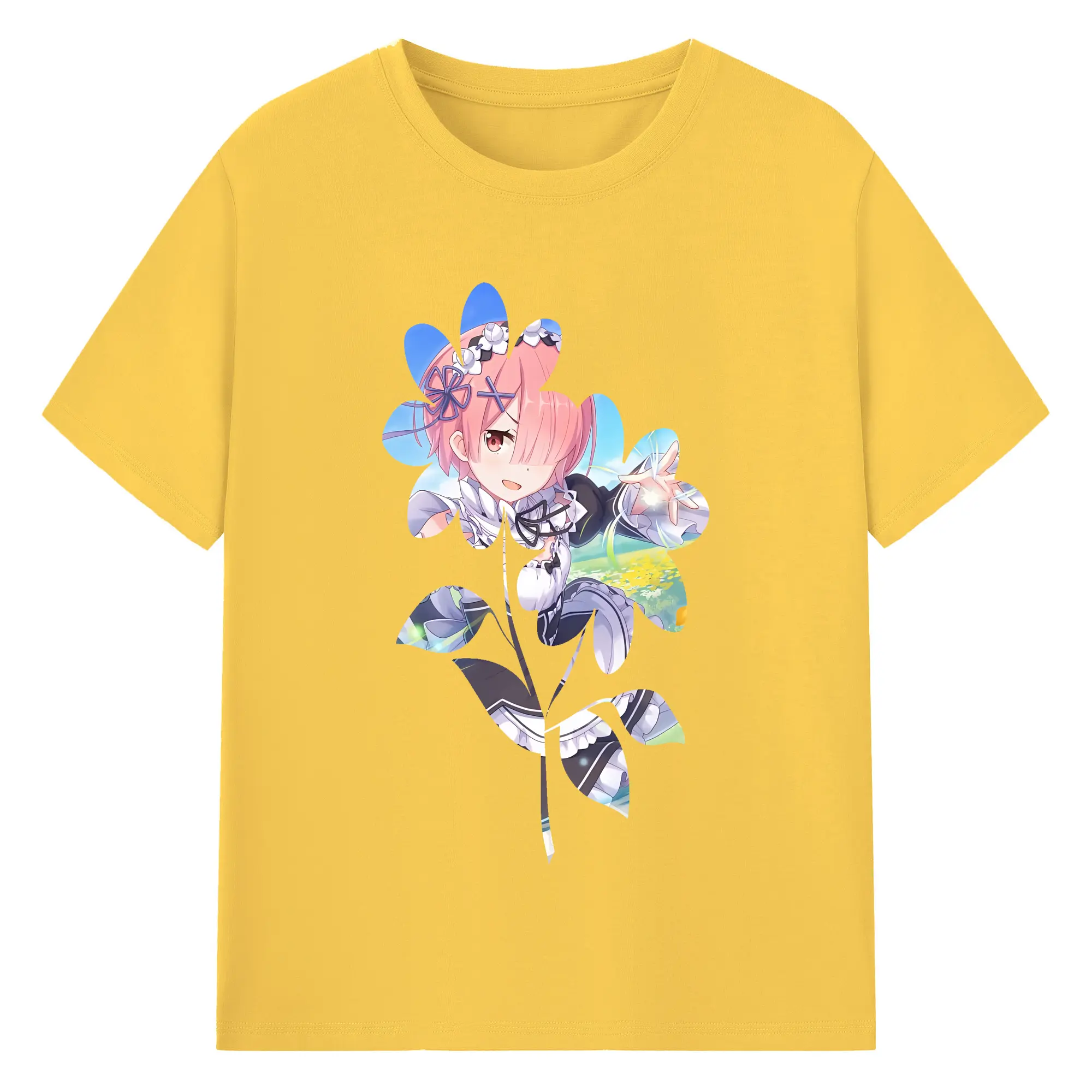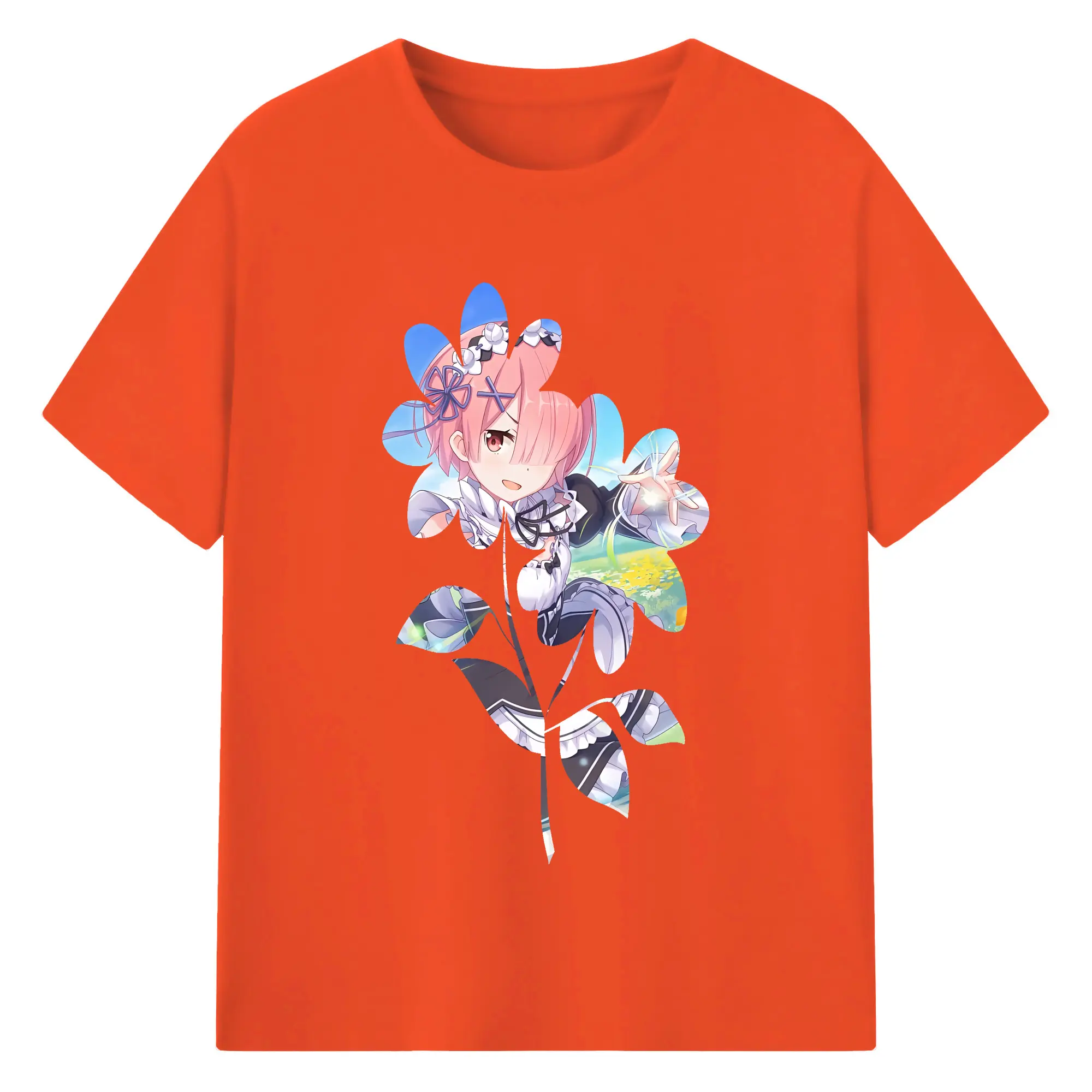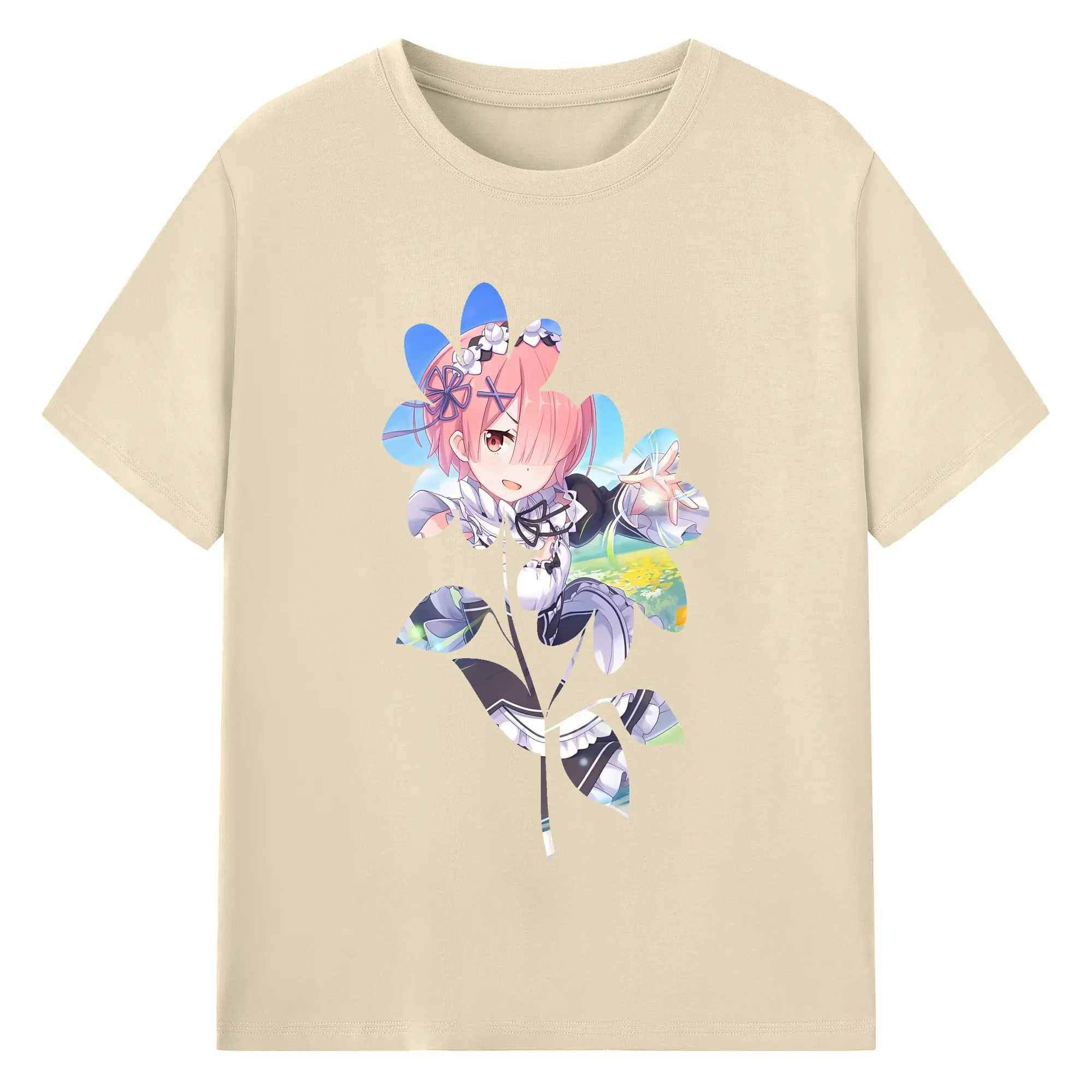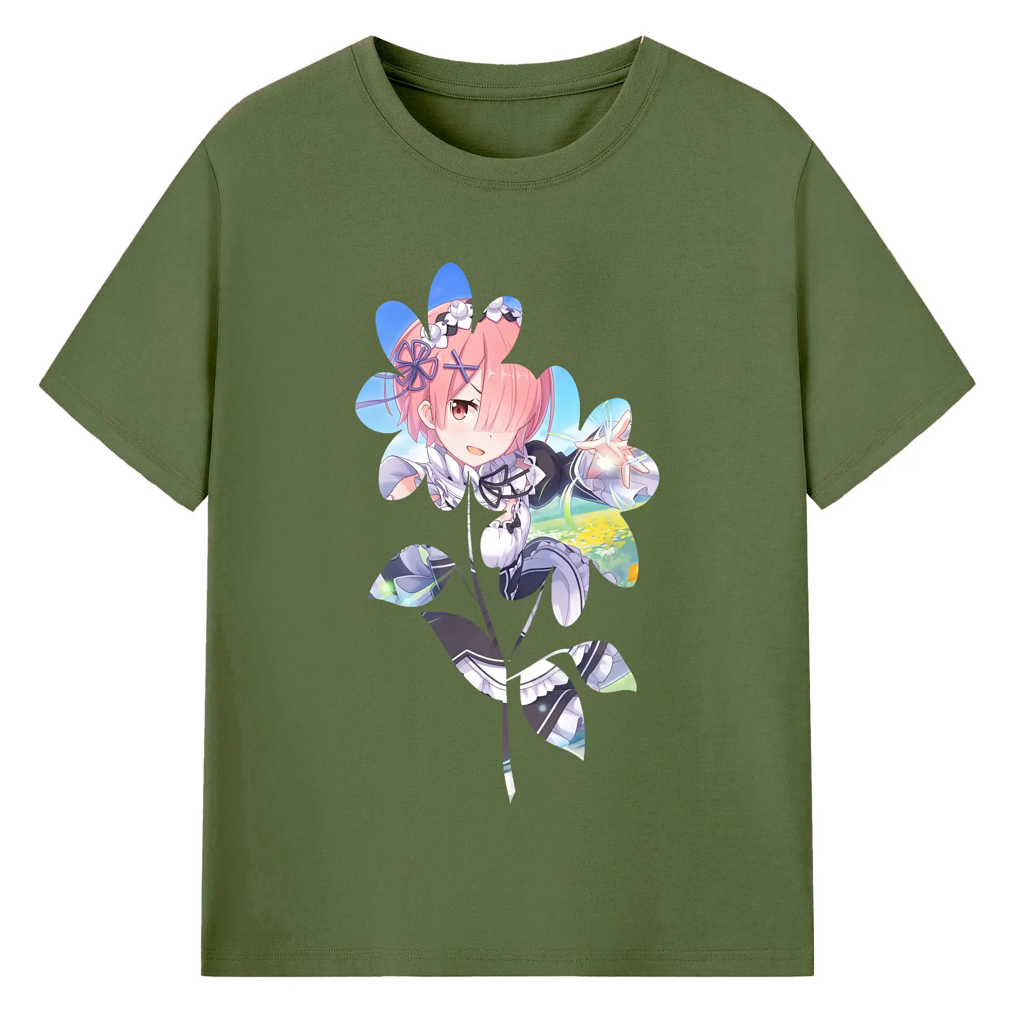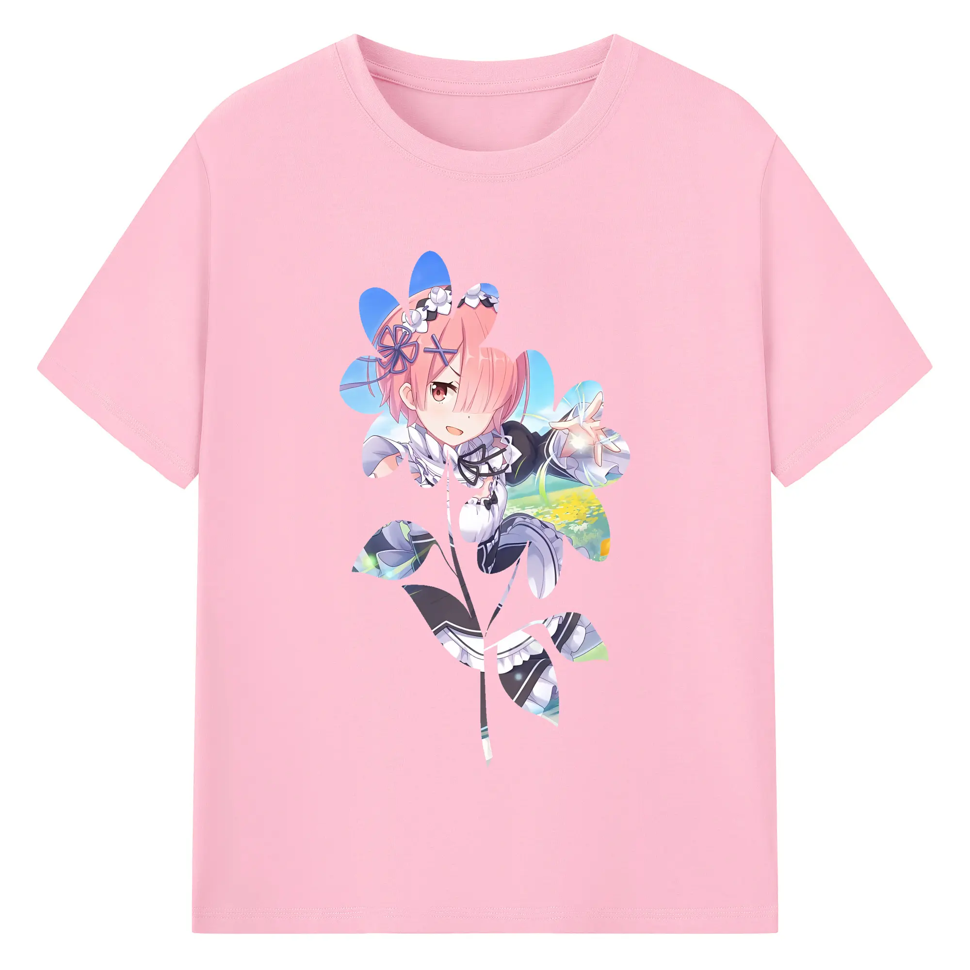 リゼロ グッズ ラム - 綿100% 半袖Tシャツ ・ バックプリント ・ 快適 通気性 ・ 日常使い 散歩 スポーツ用
