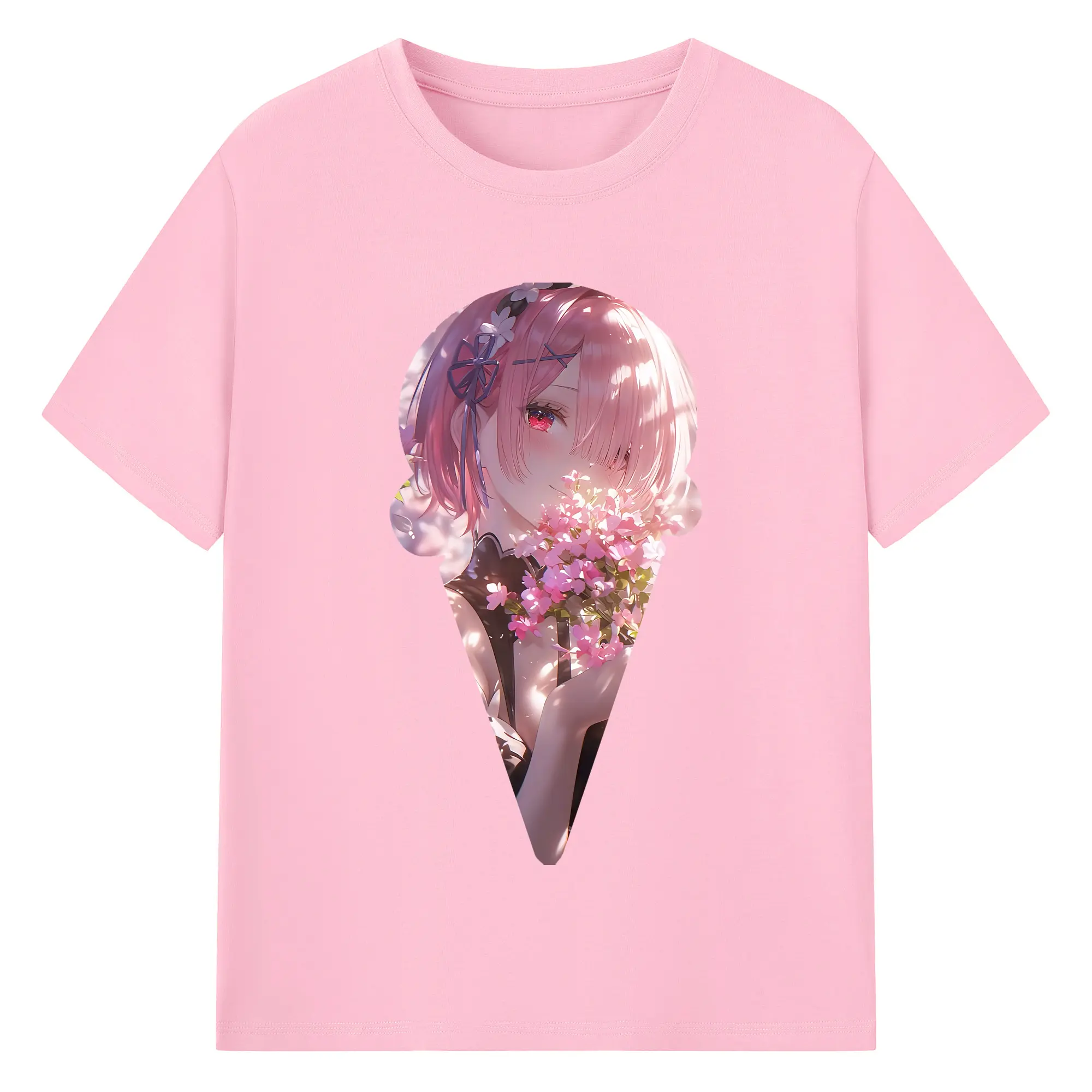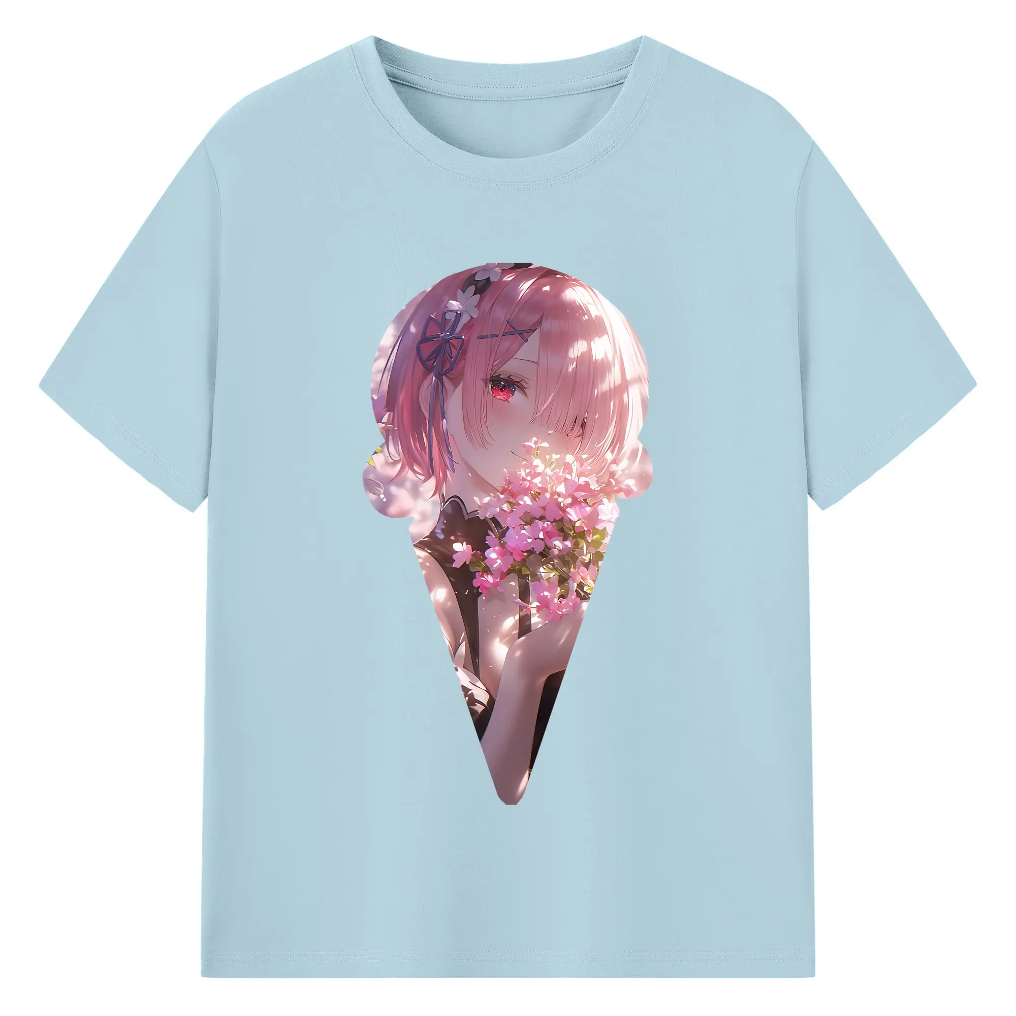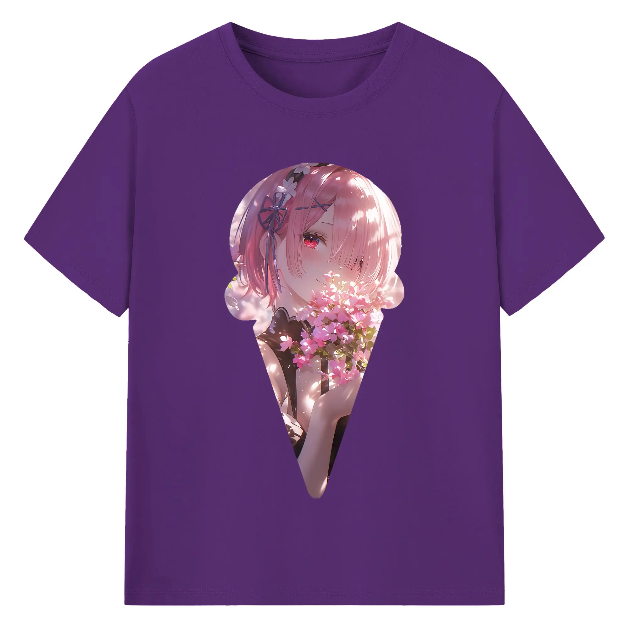 リゼロ グッズ ラム - 綿100% 半袖Tシャツ ・ バックプリント ・ 快適 通気性 ・ 日常使い 散歩 スポーツ用
