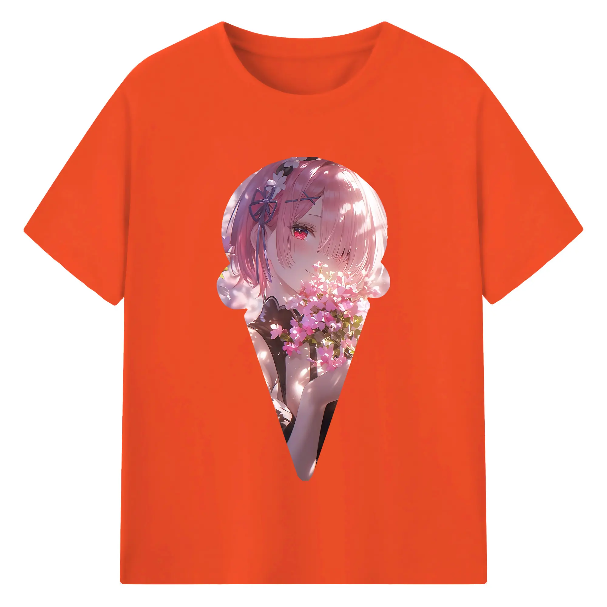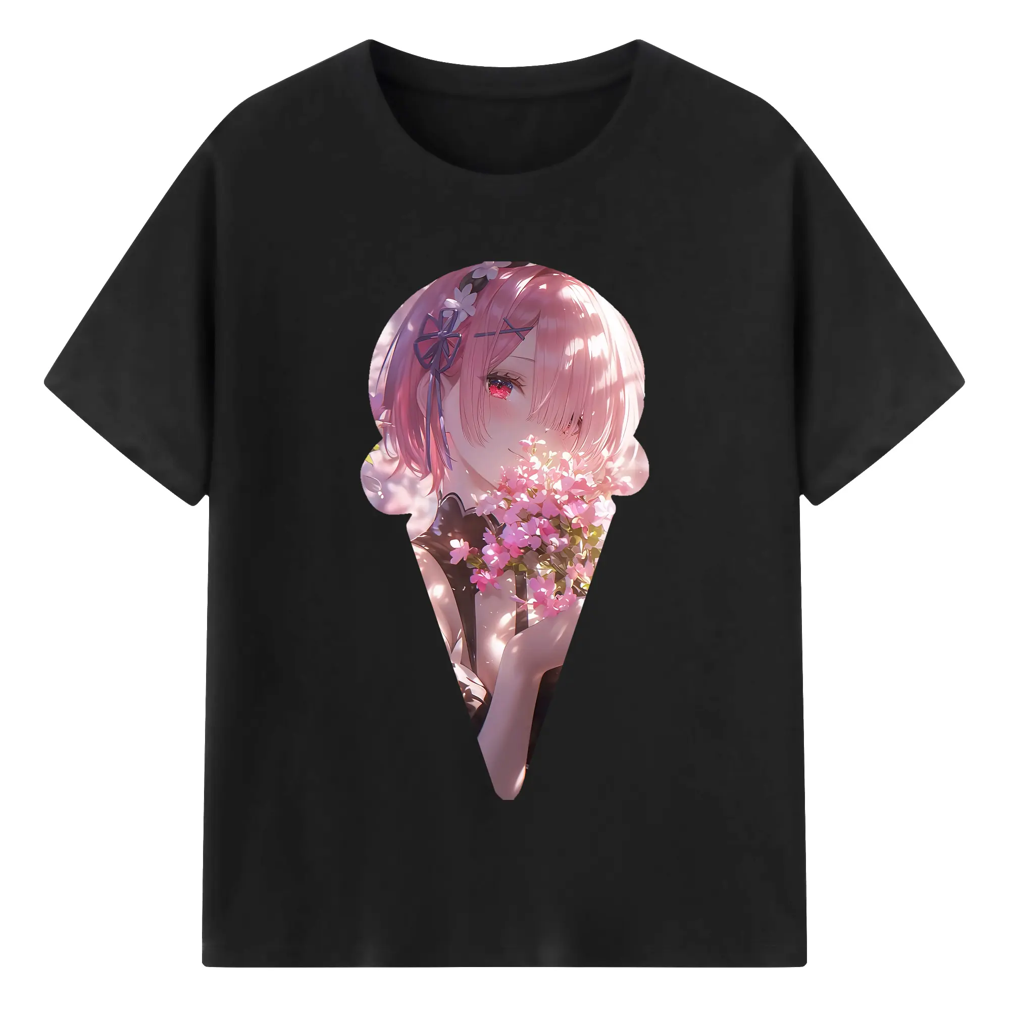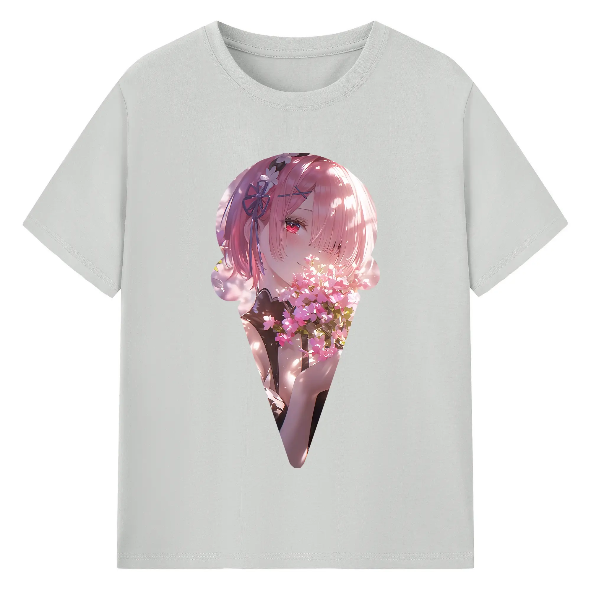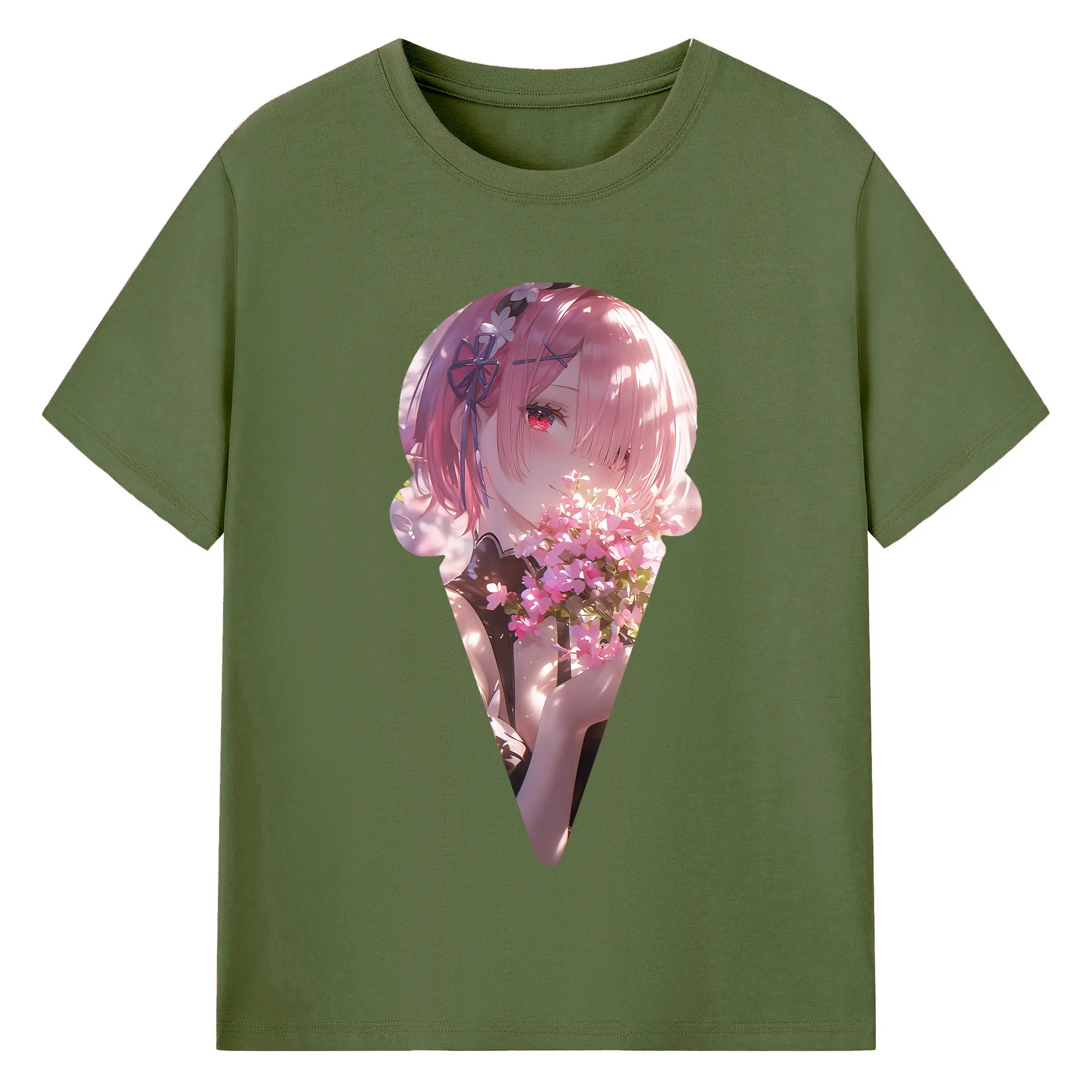 リゼロ グッズ ラム - 綿100% 半袖Tシャツ ・ バックプリント ・ 快適 通気性 ・ 日常使い 散歩 スポーツ用