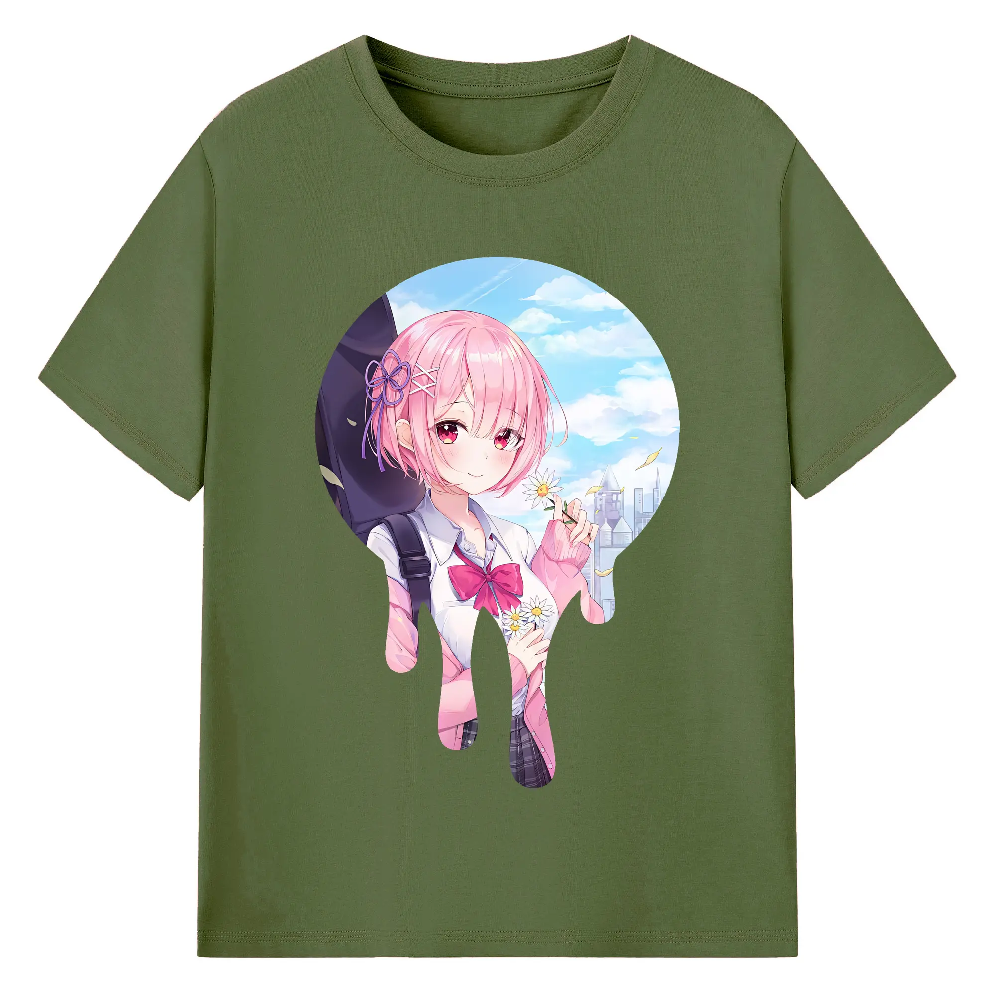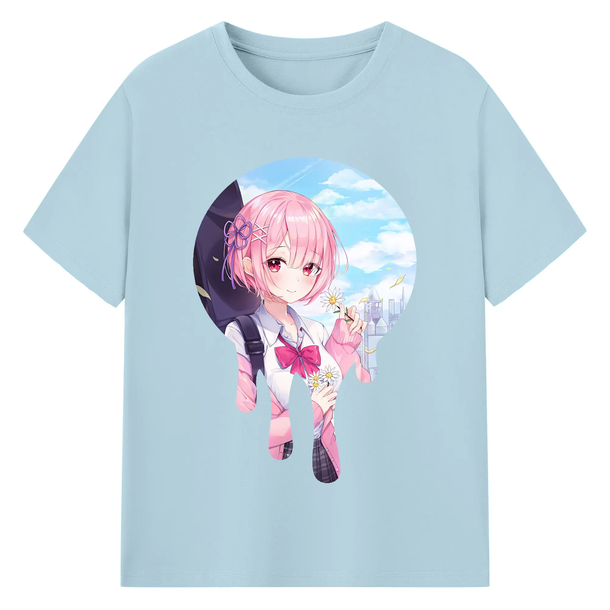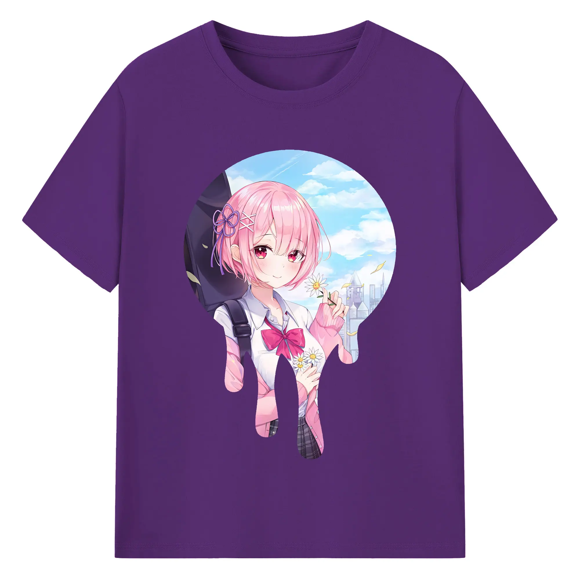 リゼロ グッズ ラム - 綿100% 半袖Tシャツ ・ バックプリント ・ 快適 通気性 ・ 日常使い 散歩 スポーツ用