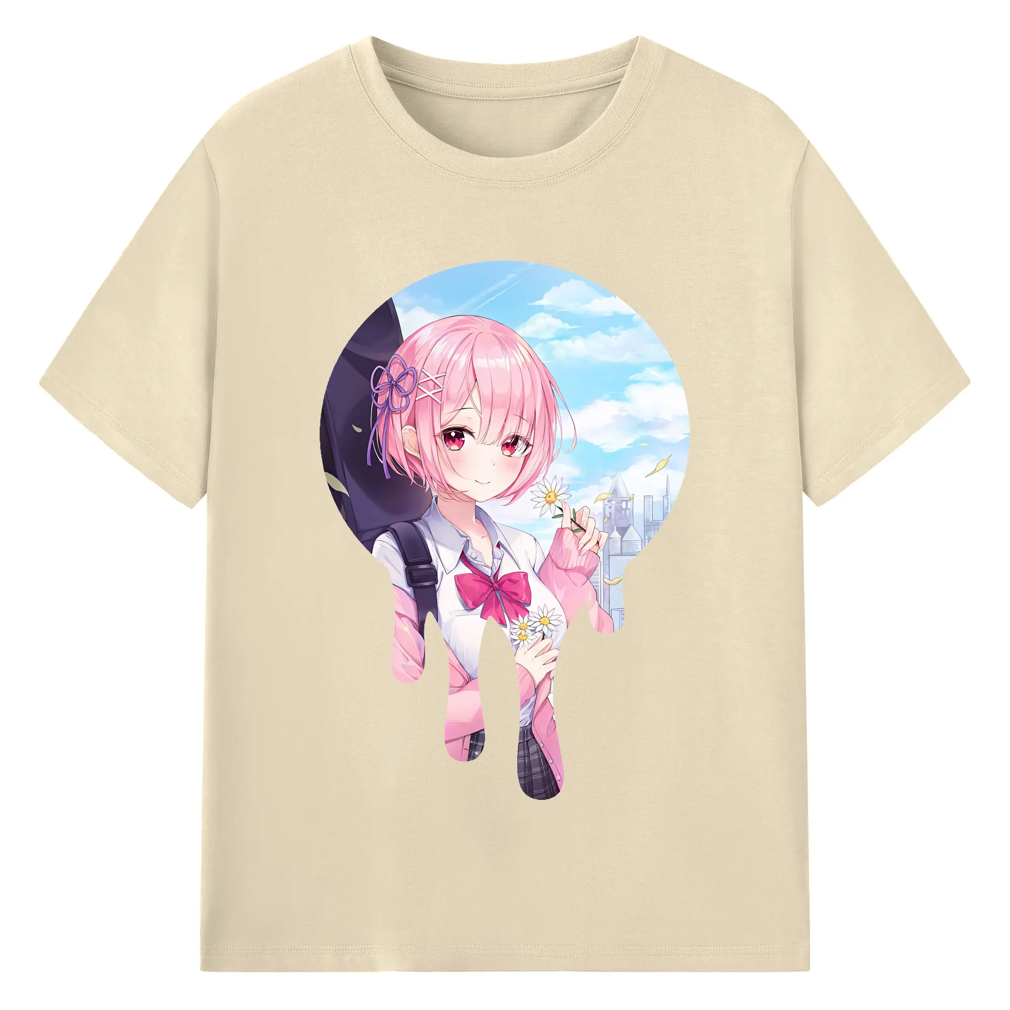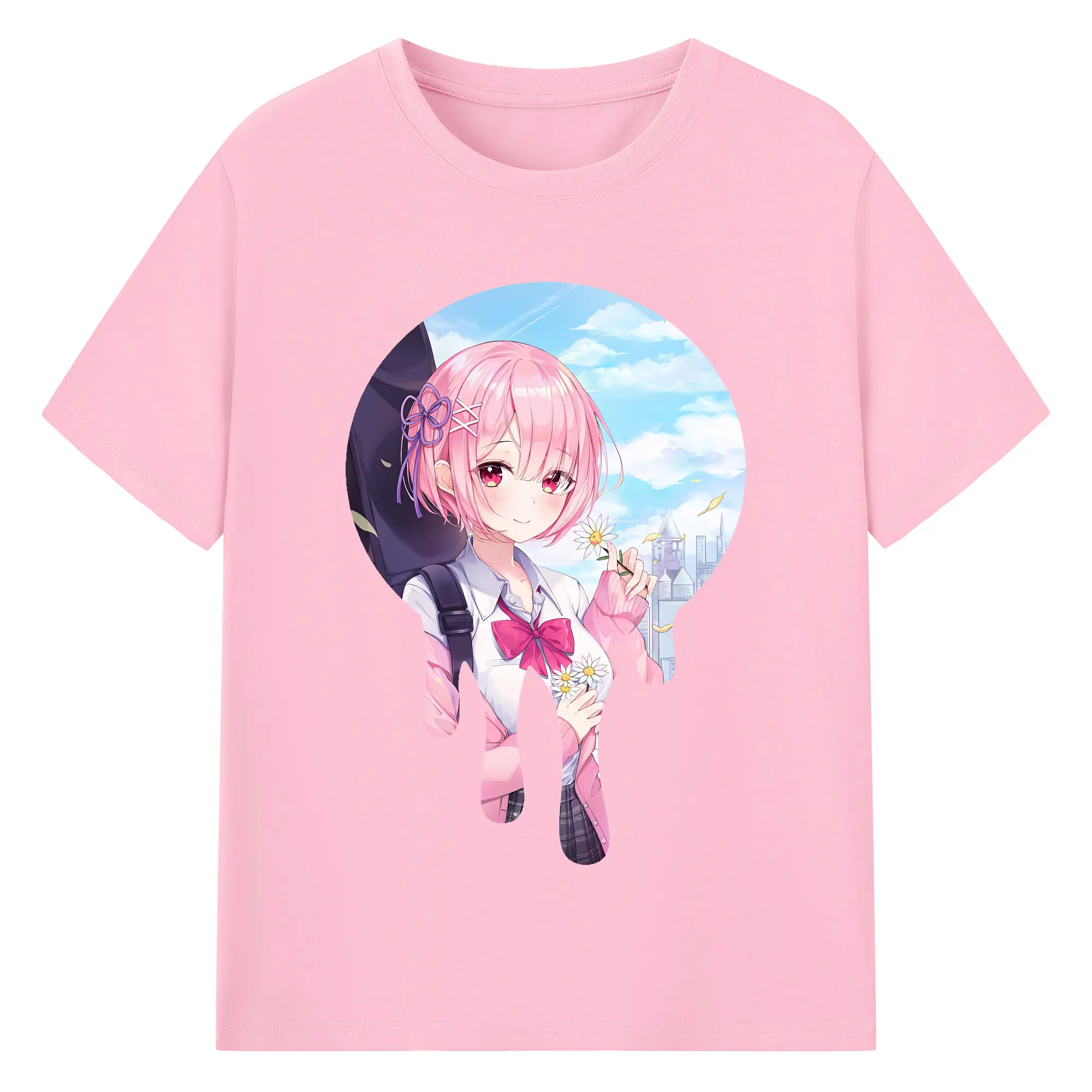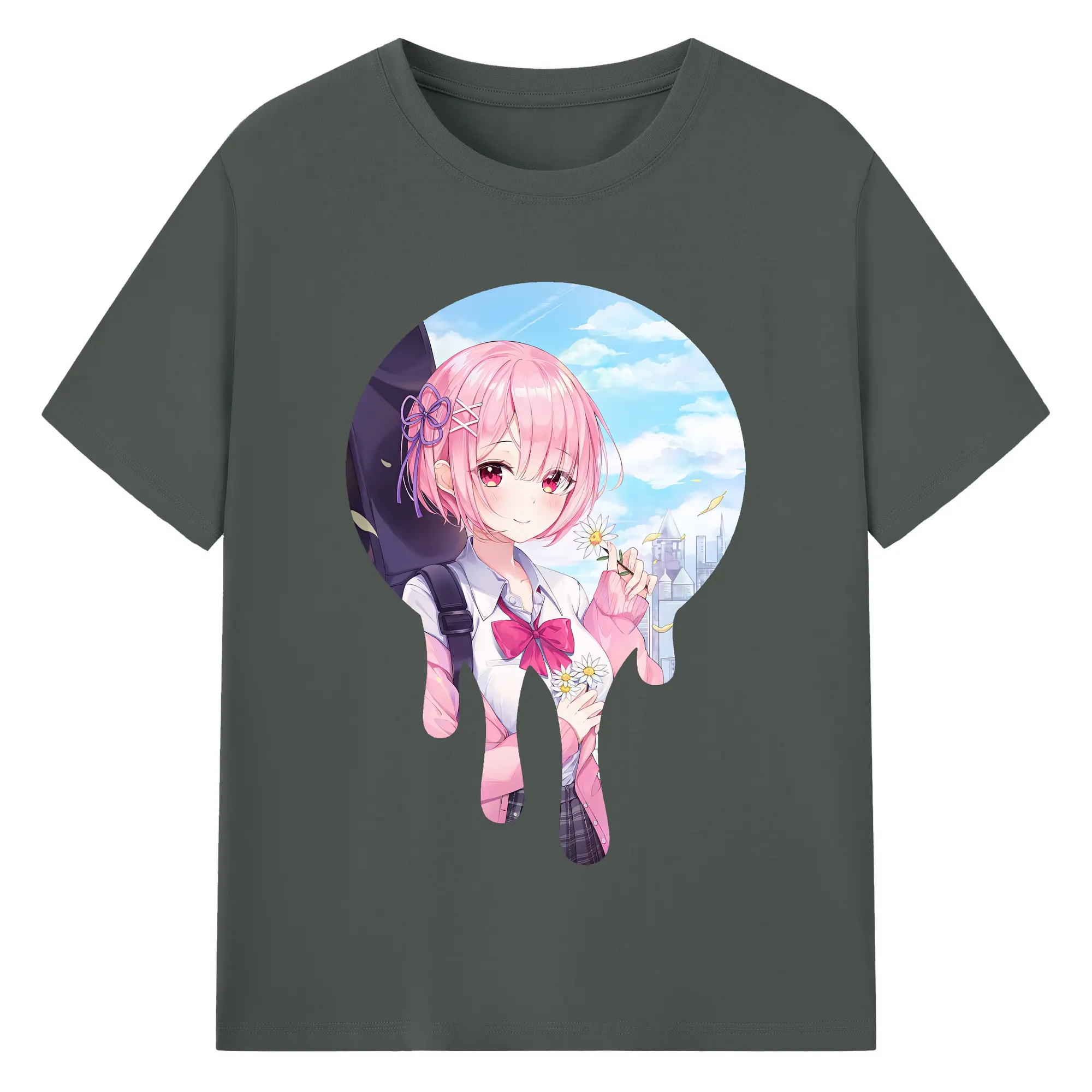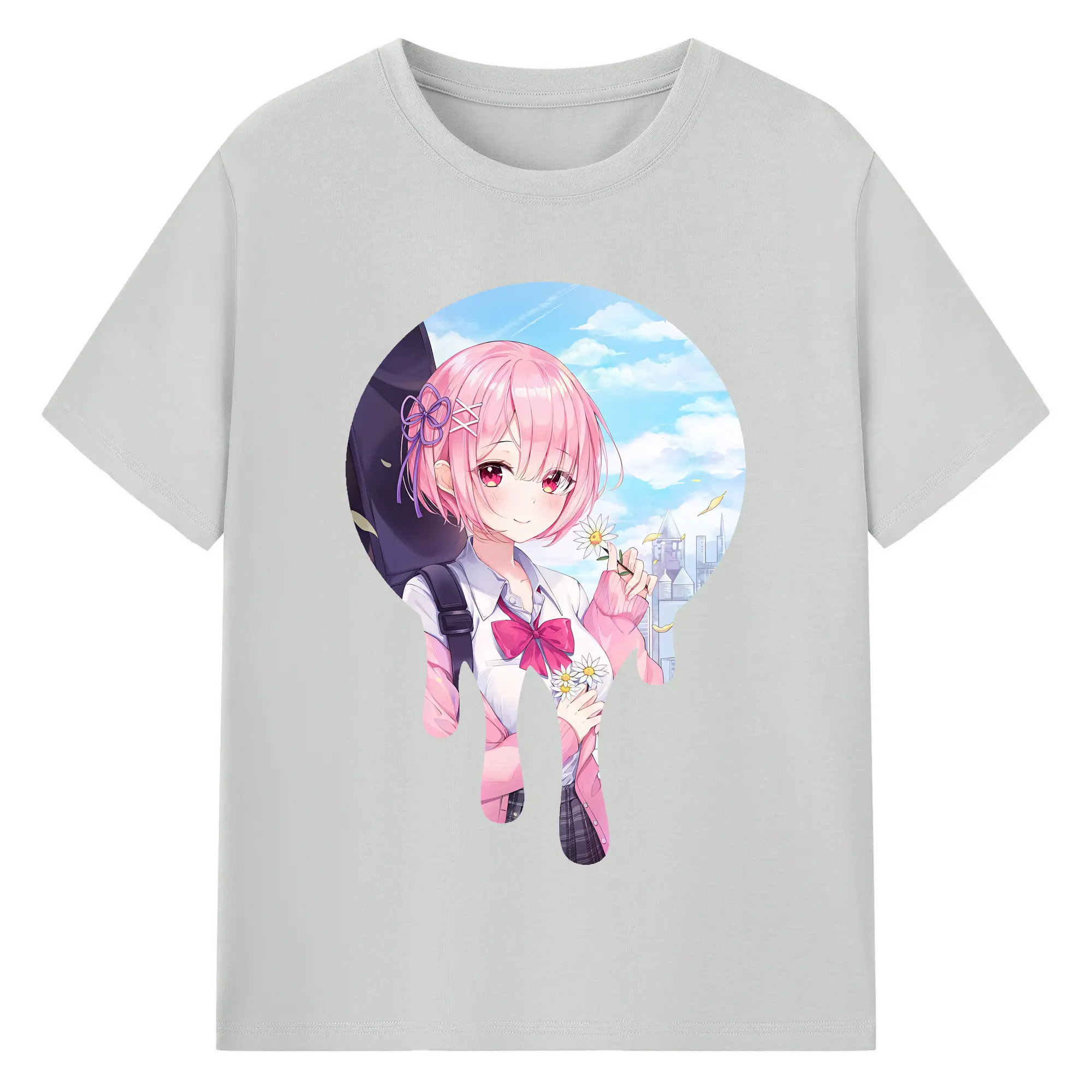 リゼロ グッズ ラム - 綿100% 半袖Tシャツ ・ バックプリント ・ 快適 通気性 ・ 日常使い 散歩 スポーツ用
