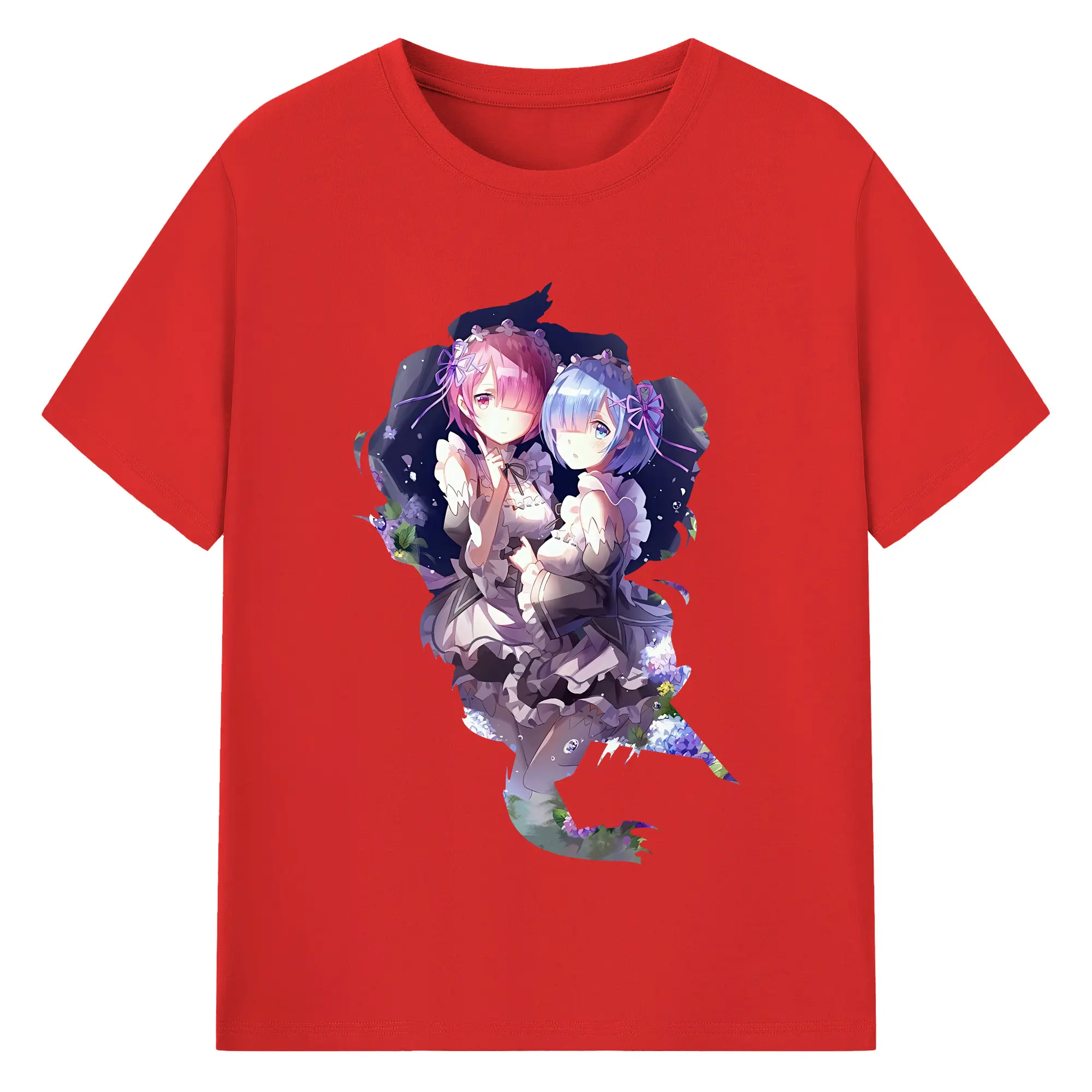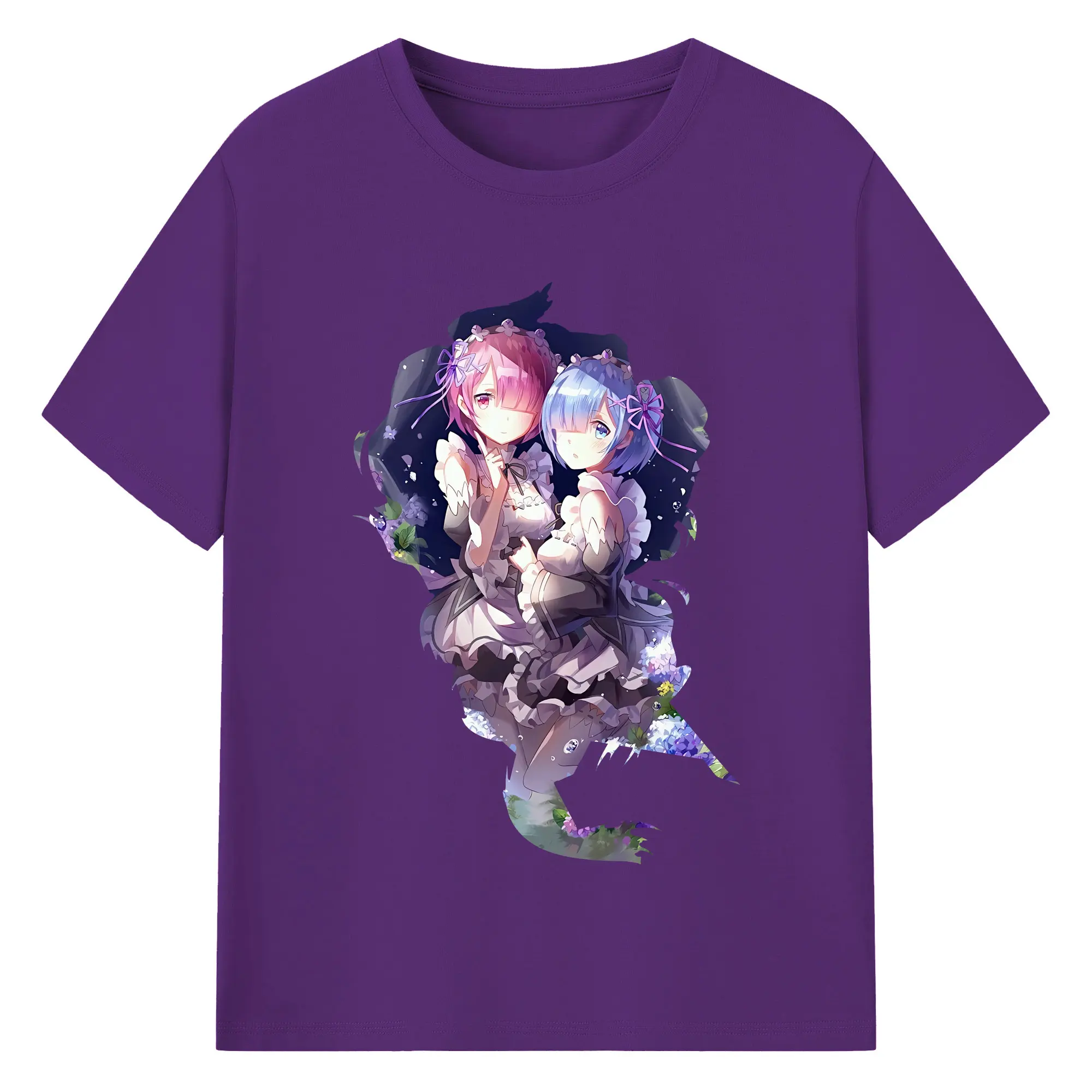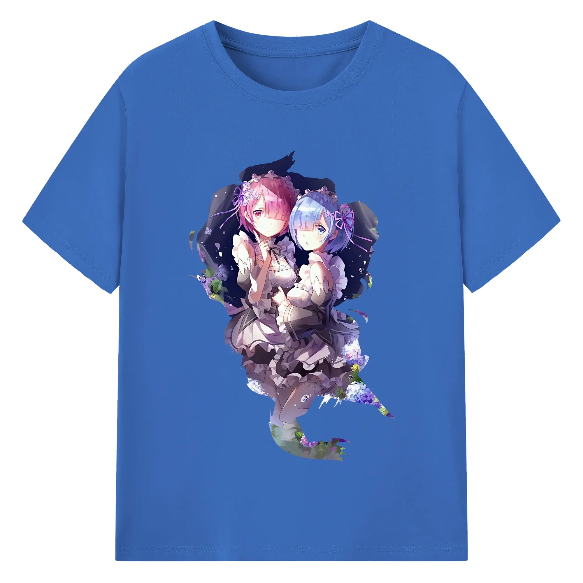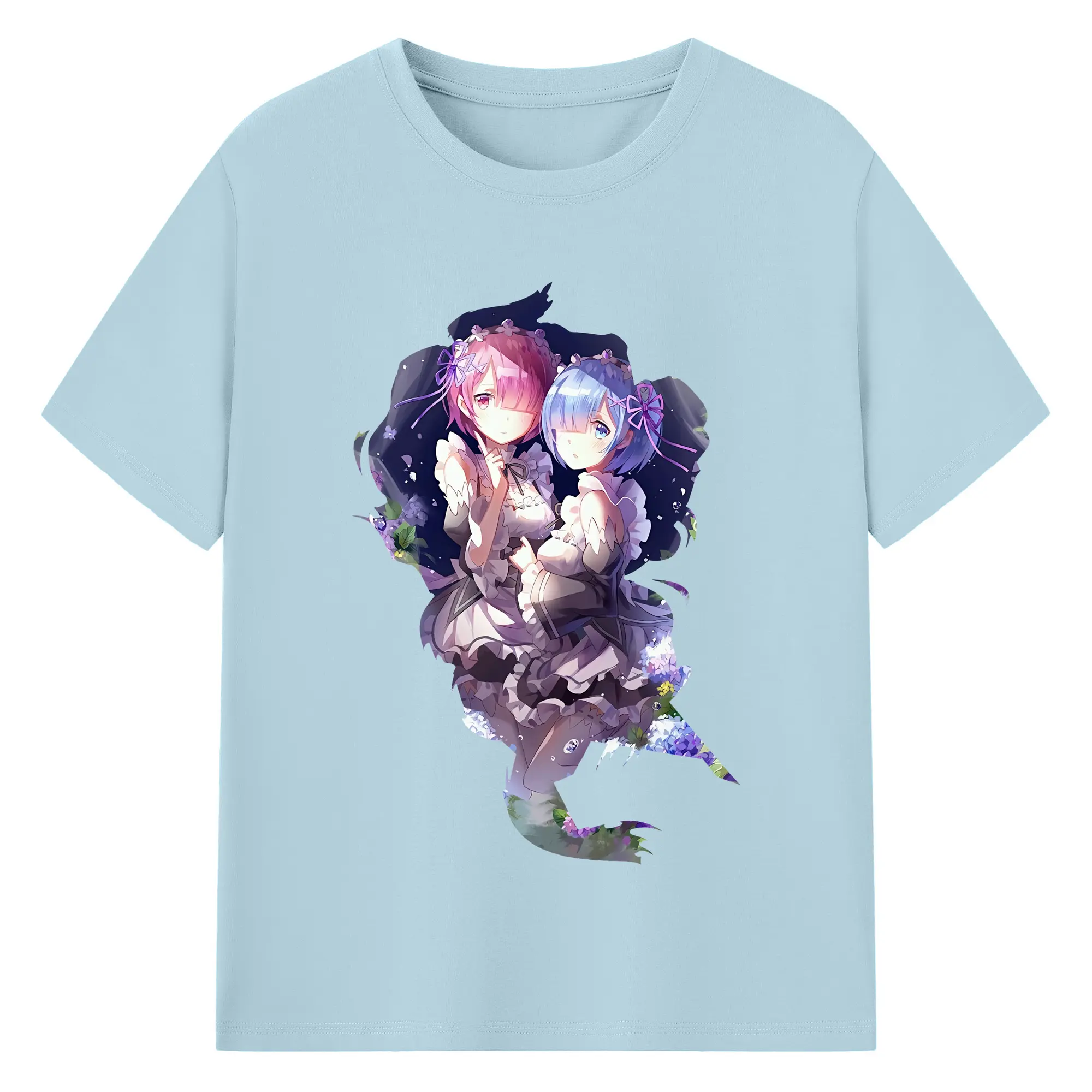 リゼロ グッズ ラム - 綿100% 半袖Tシャツ ・ フロントプリント ・ 快適 通気性 ・ 日常使い 散歩 スポーツ用
