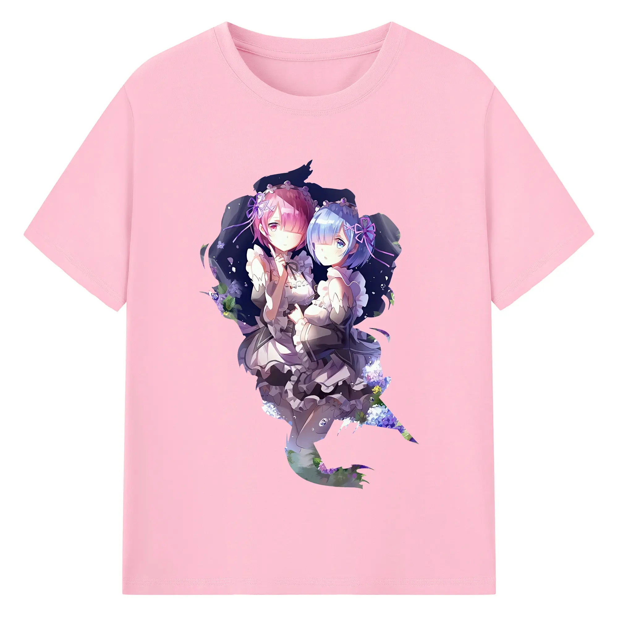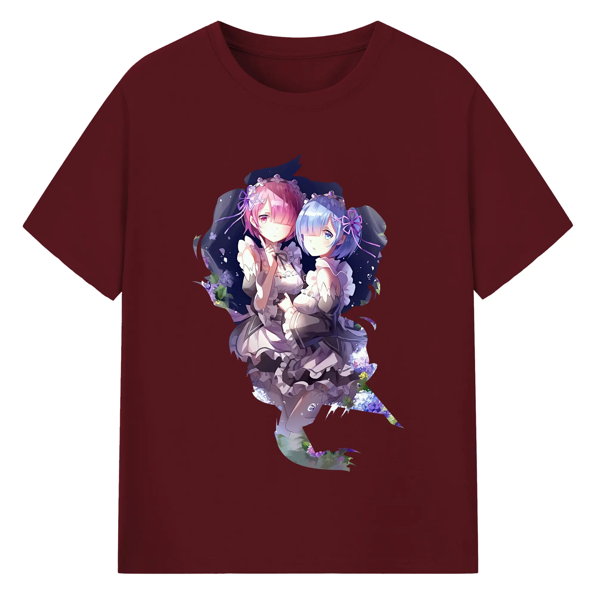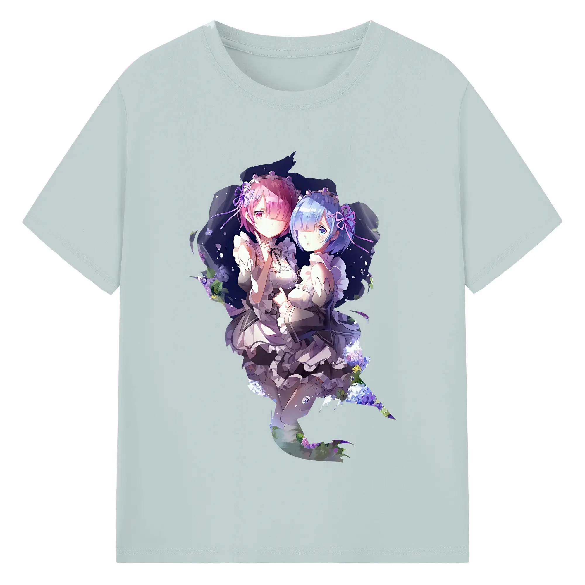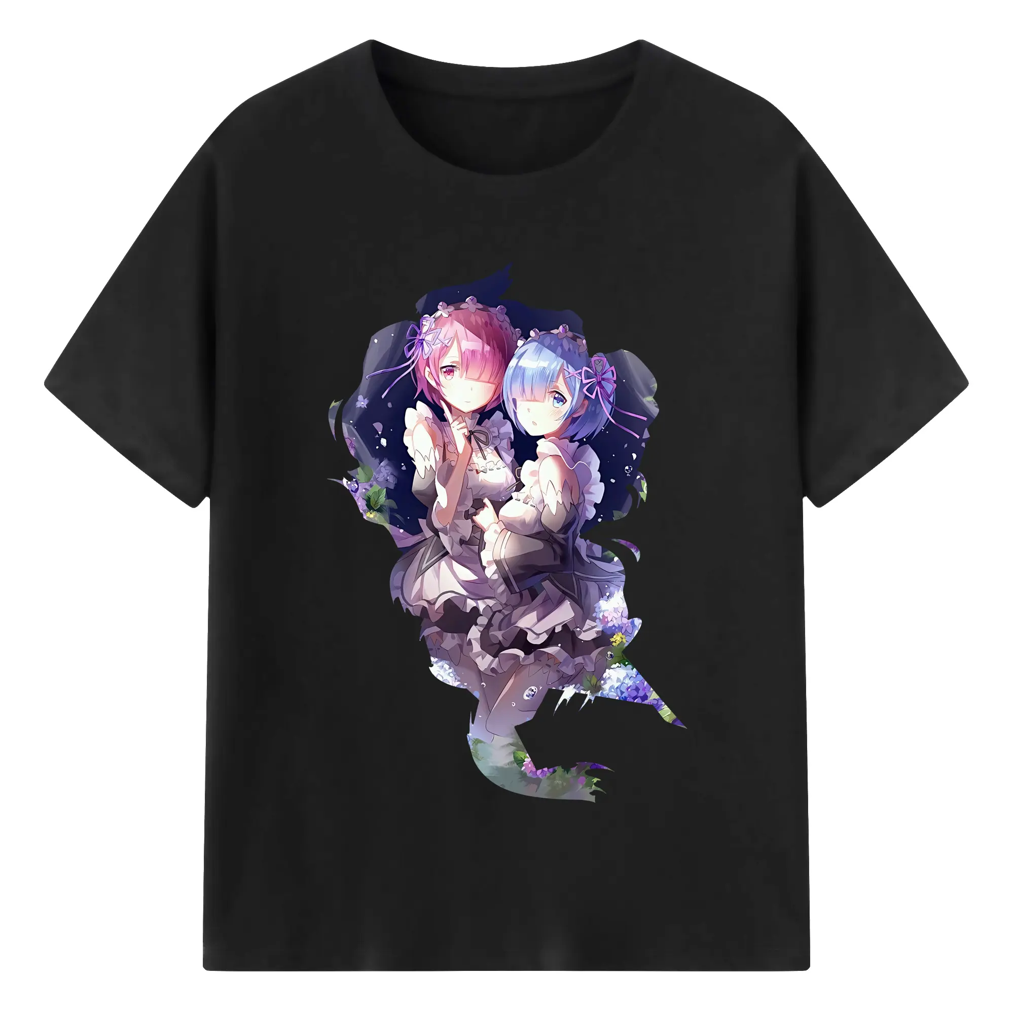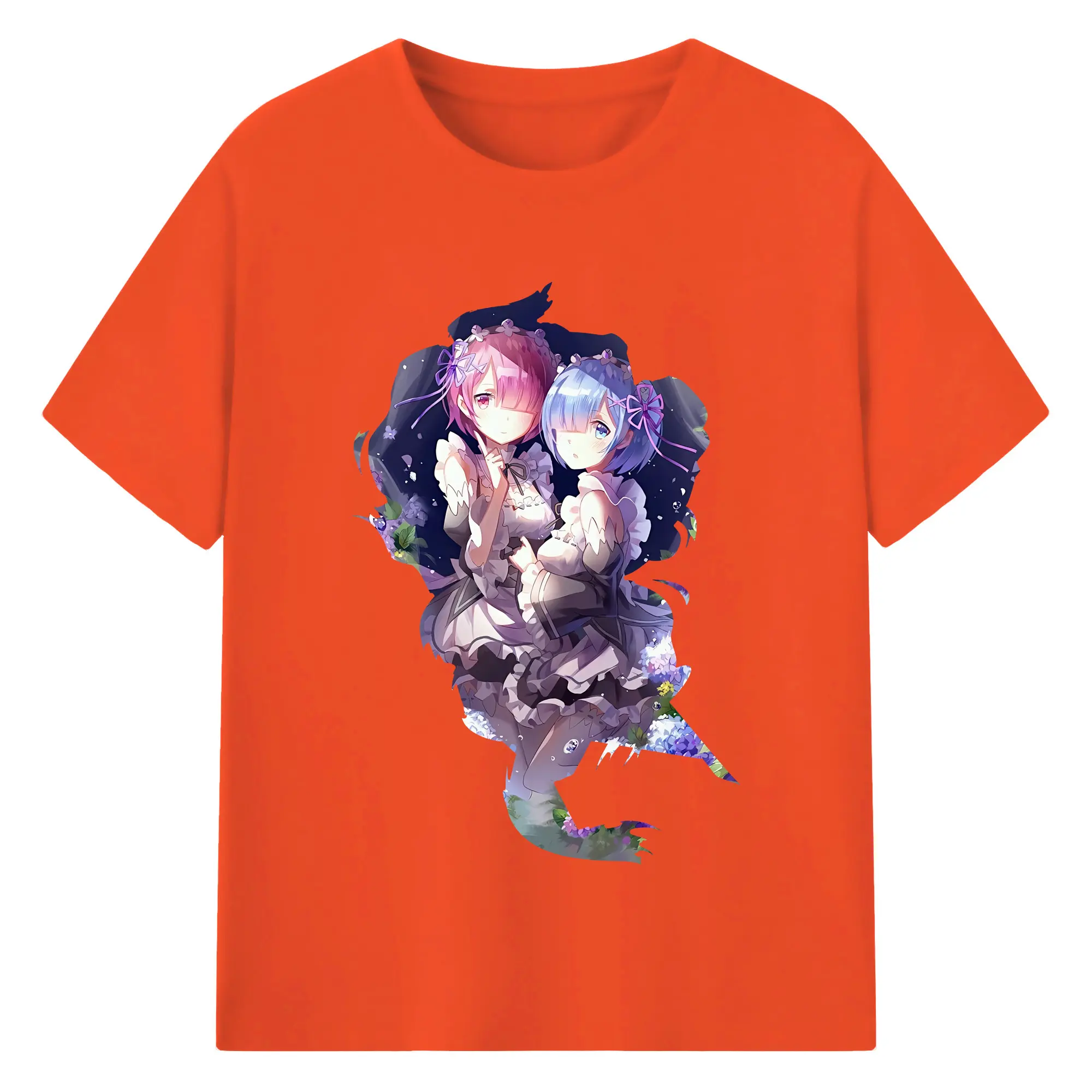 リゼロ グッズ ラム - 綿100% 半袖Tシャツ ・ フロントプリント ・ 快適 通気性 ・ 日常使い 散歩 スポーツ用