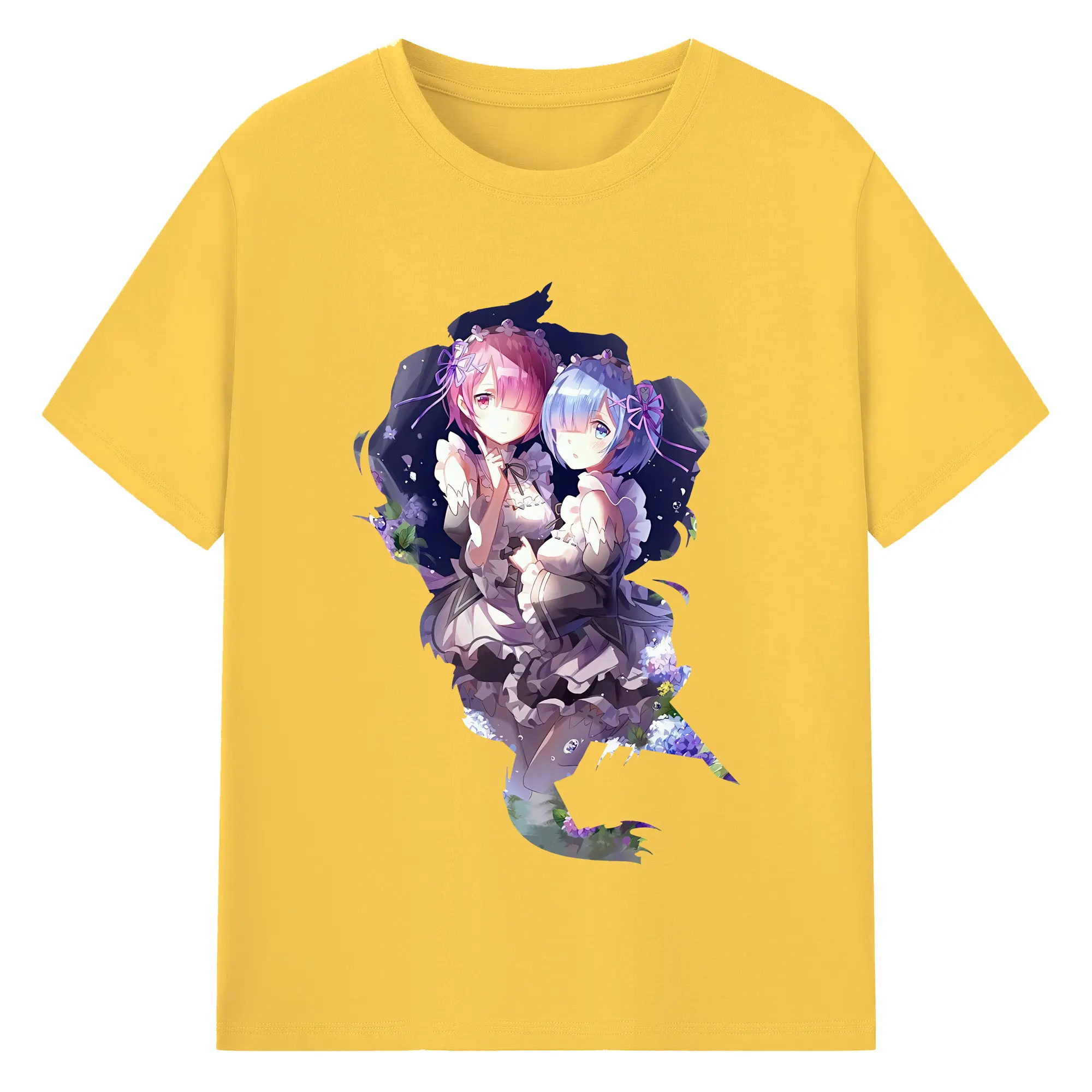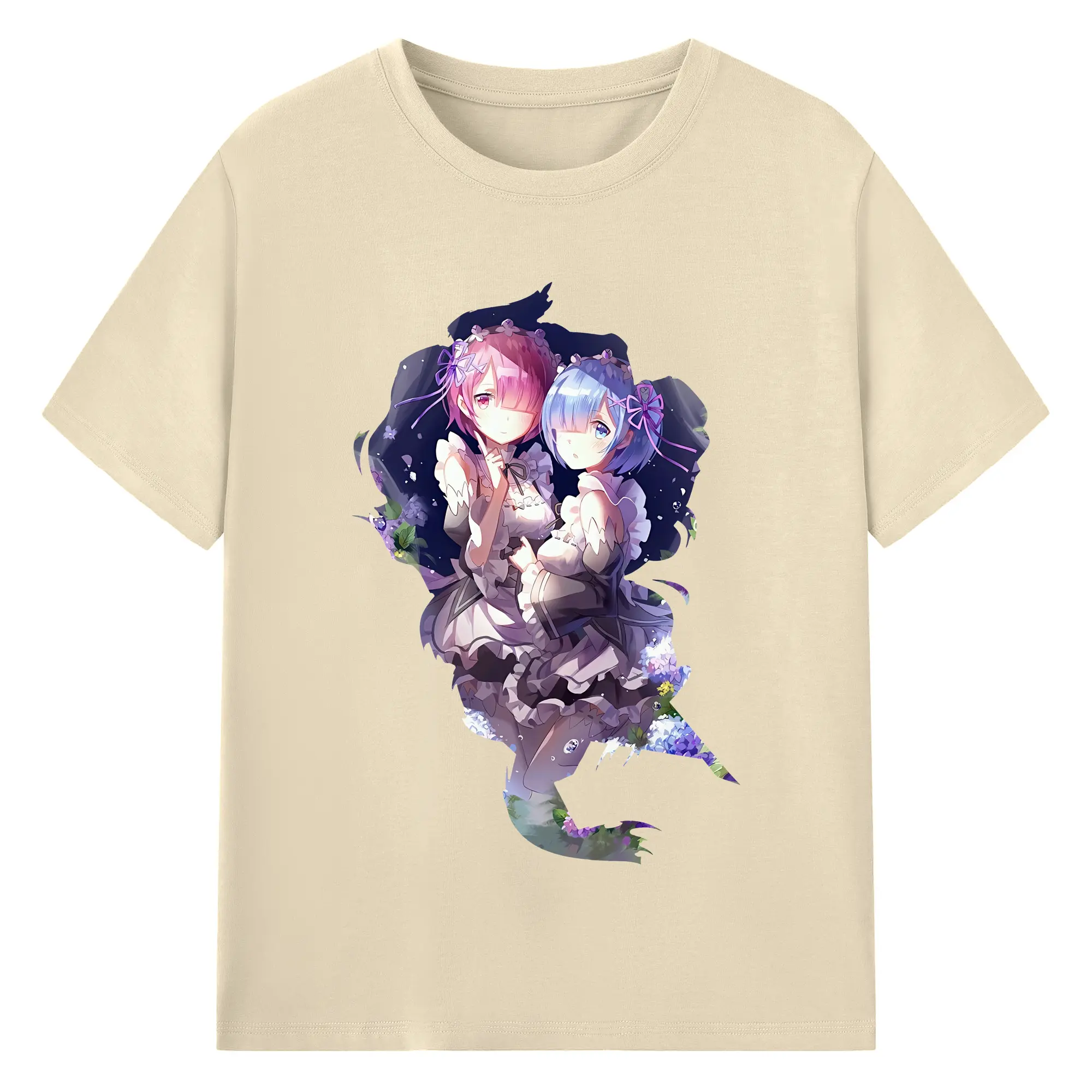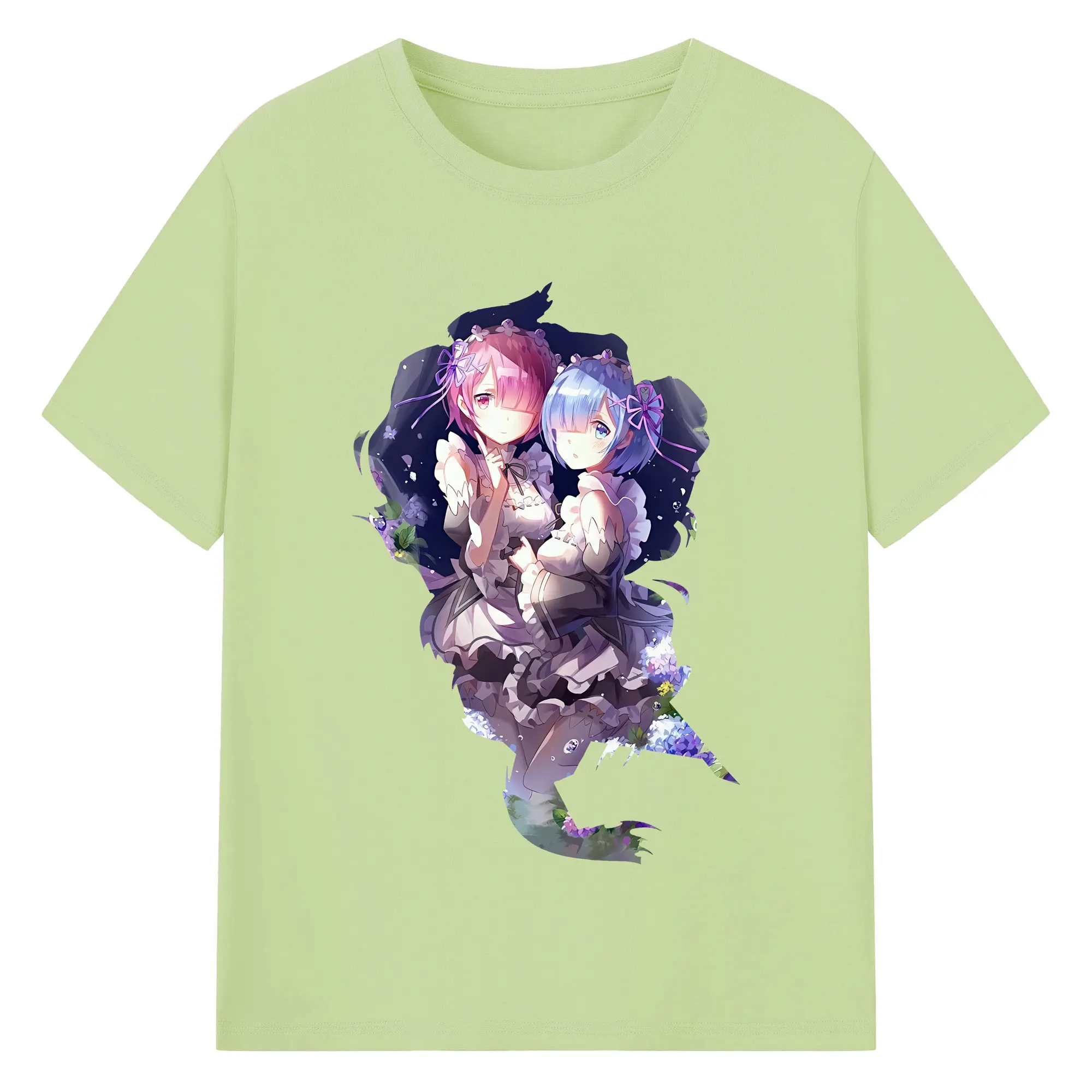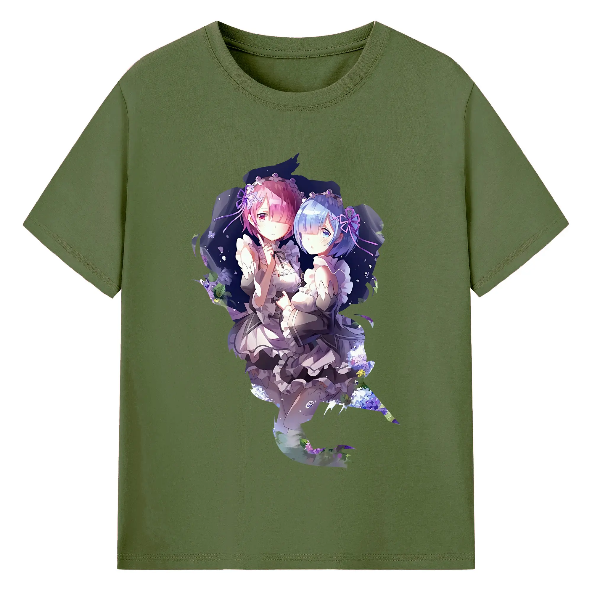 リゼロ グッズ ラム - 綿100% 半袖Tシャツ ・ フロントプリント ・ 快適 通気性 ・ 日常使い 散歩 スポーツ用