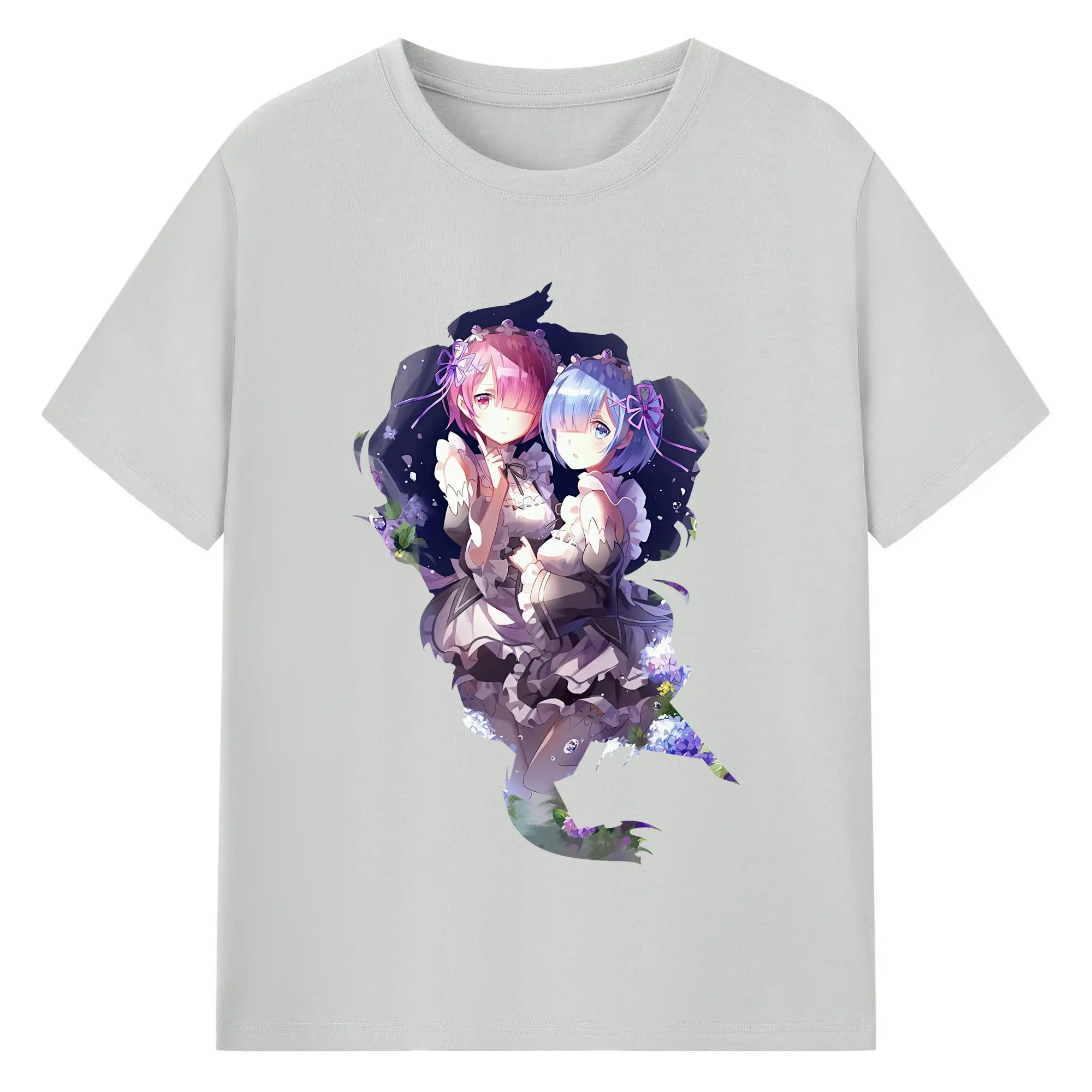 リゼロ グッズ ラム - 綿100% 半袖Tシャツ ・ バックプリント ・ 快適 通気性 ・ 日常使い 散歩 スポーツ用