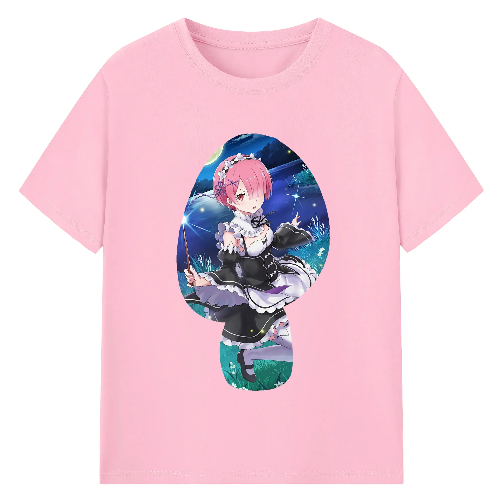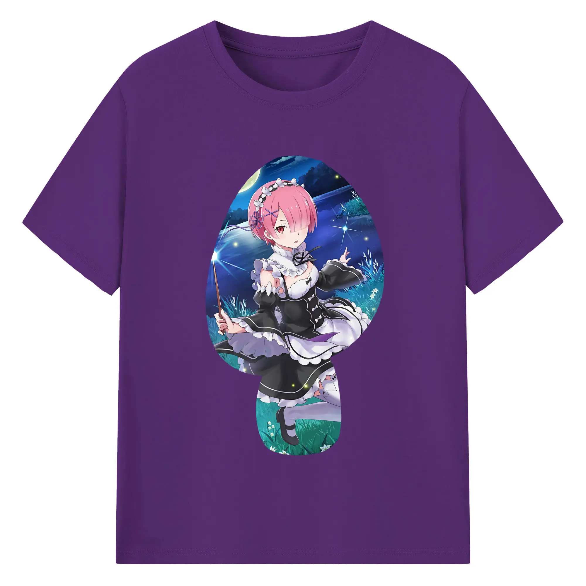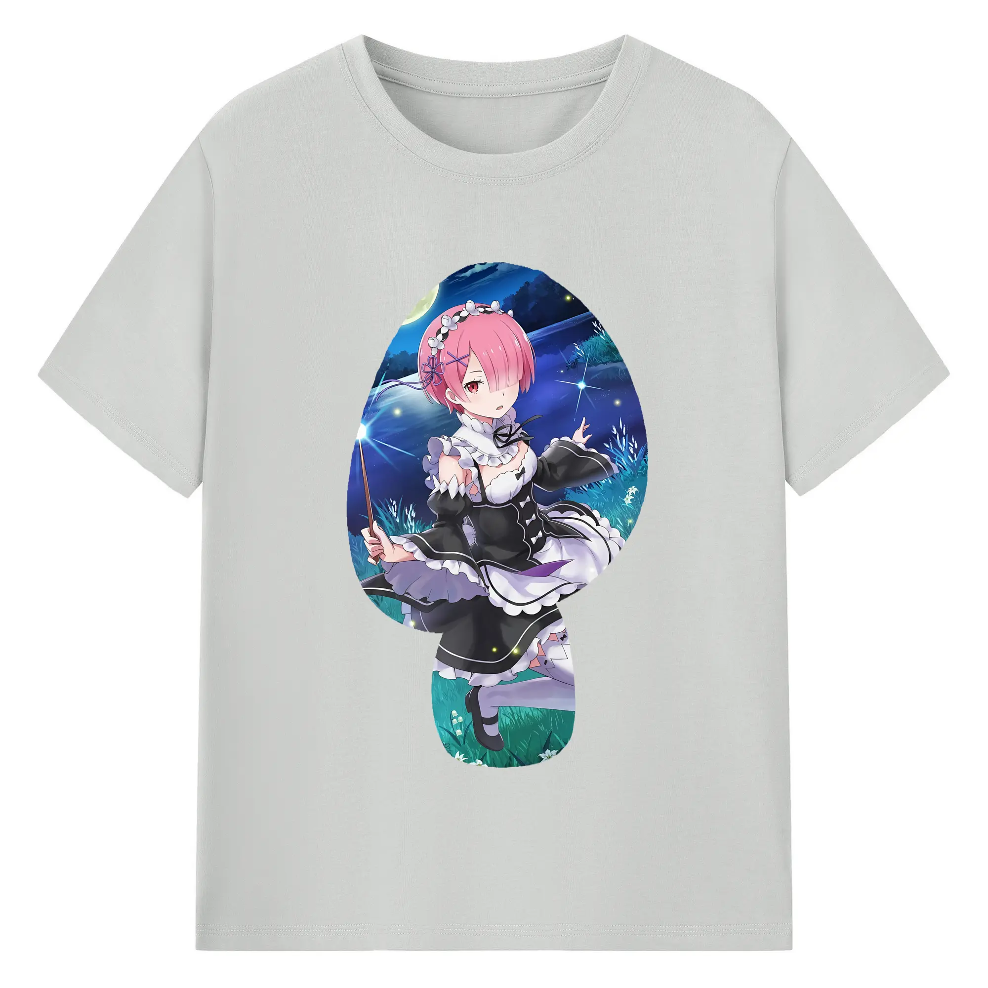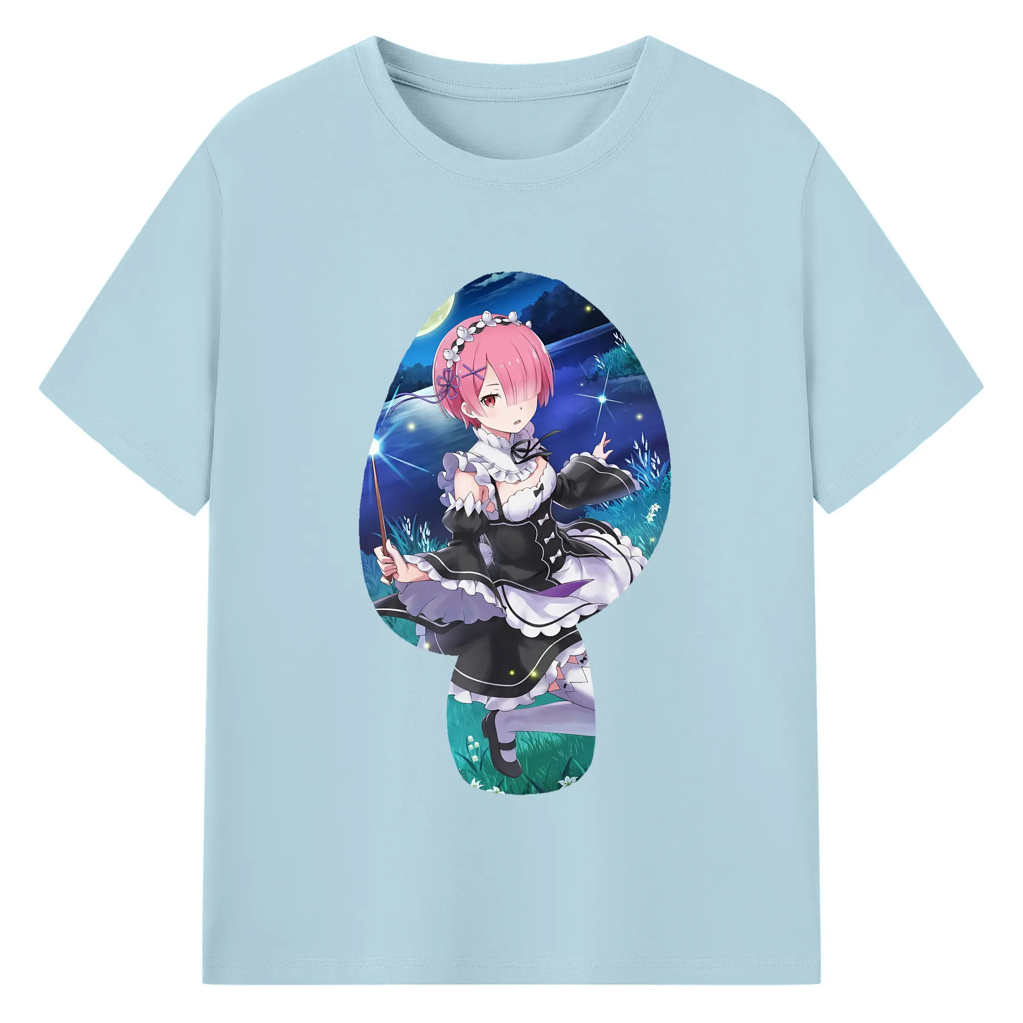 リゼロ グッズ ラム - 綿100% 半袖Tシャツ ・ フロントプリント ・ 快適 通気性 ・ 日常使い 散歩 スポーツ用