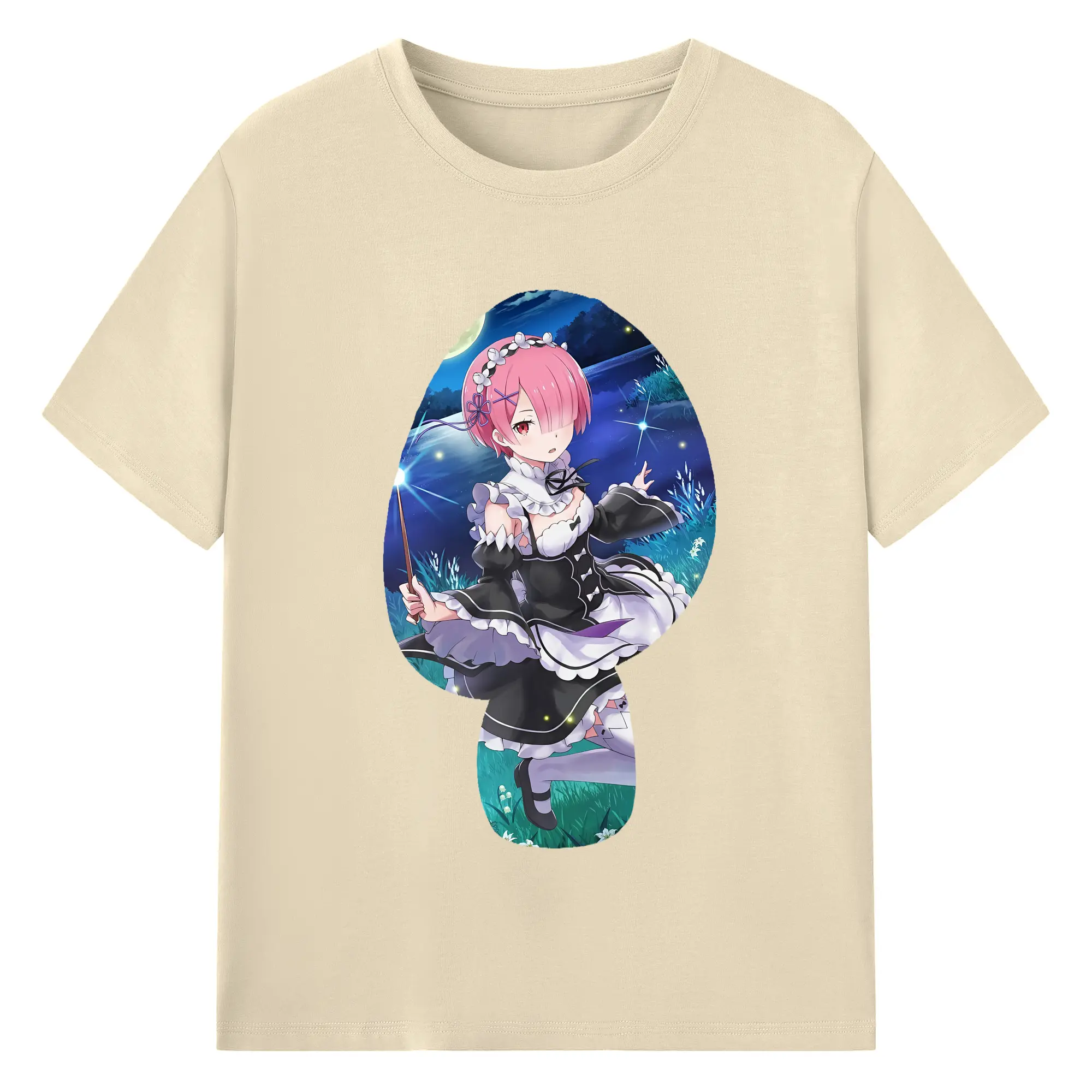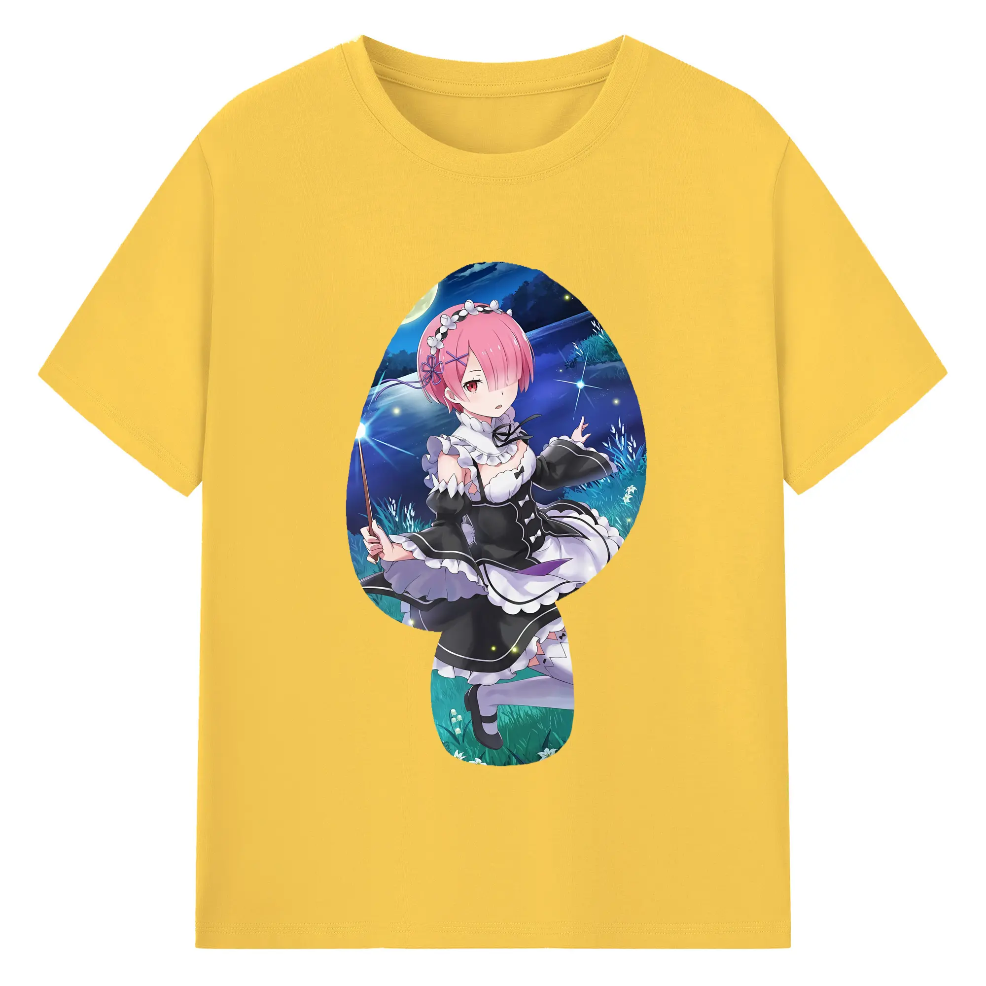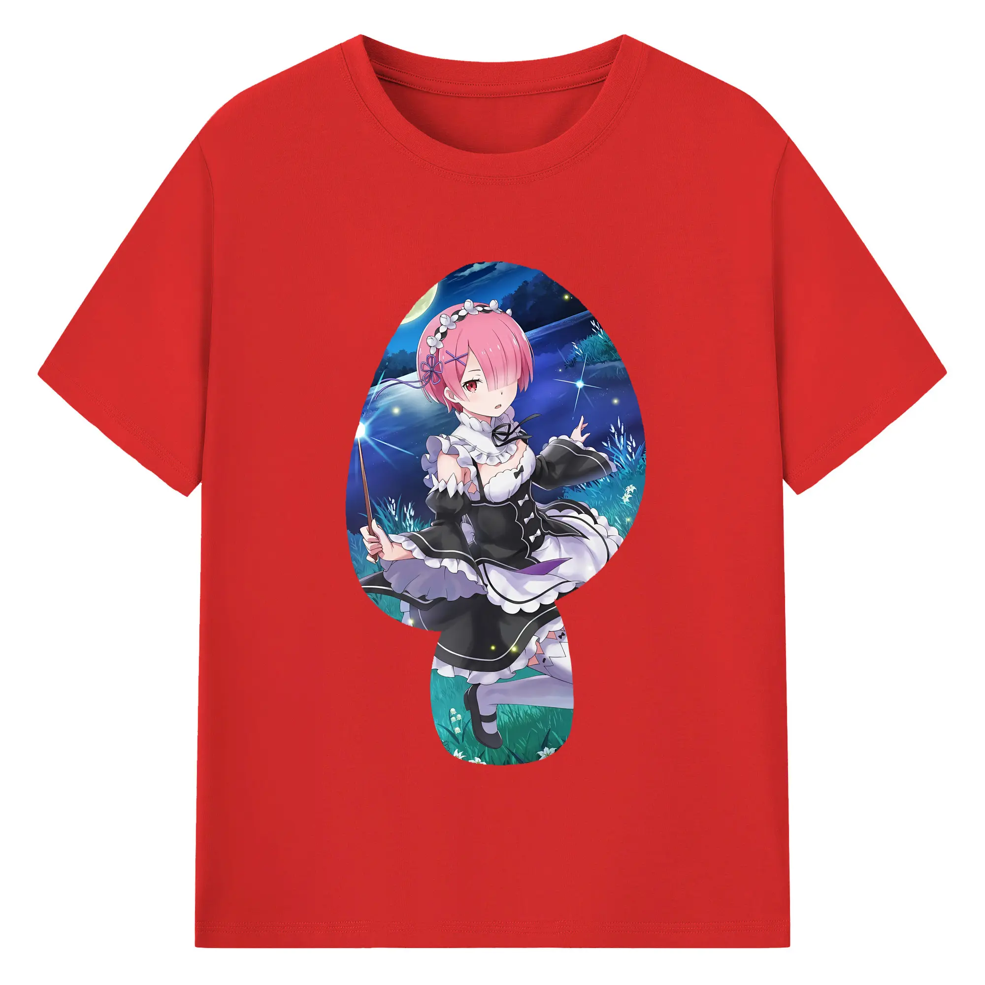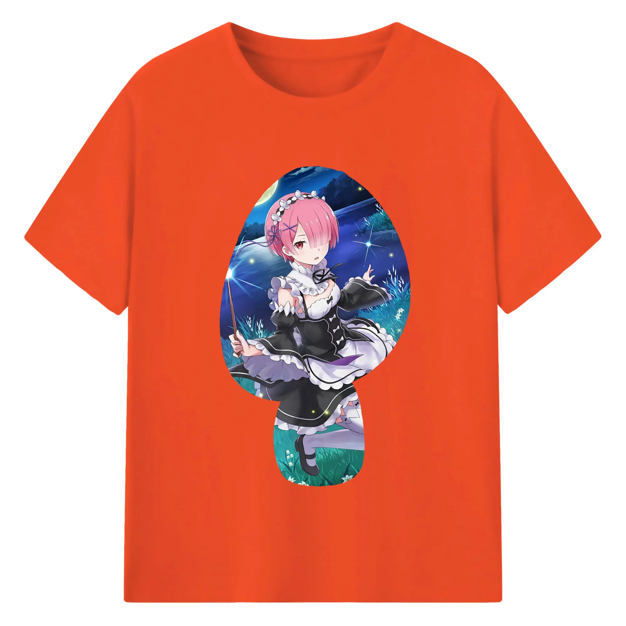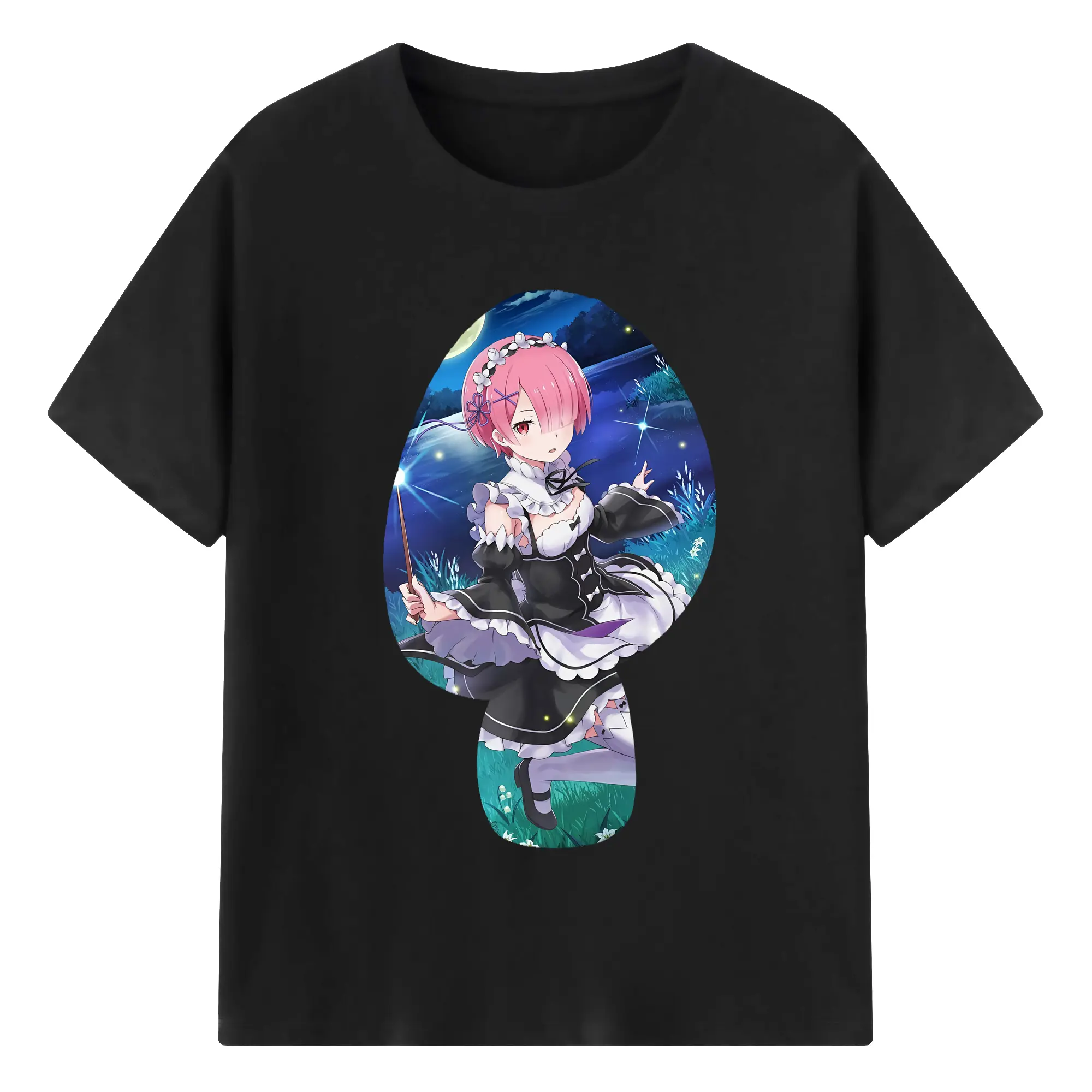 リゼロ グッズ ラム - 綿100% 半袖Tシャツ ・ フロントプリント ・ 快適 通気性 ・ 日常使い 散歩 スポーツ用