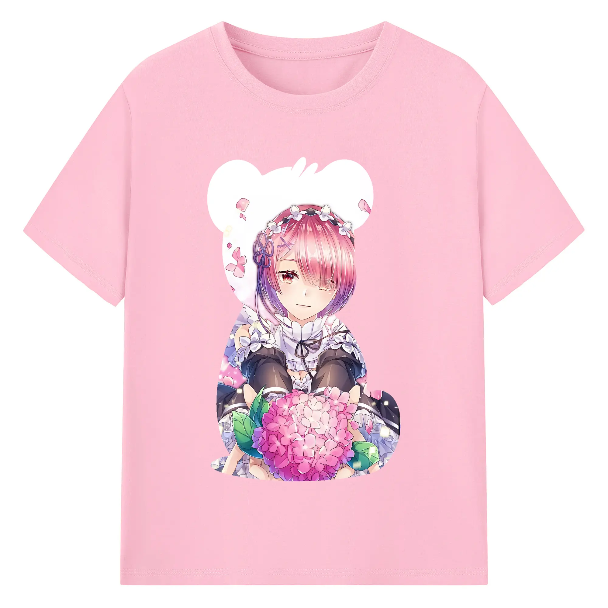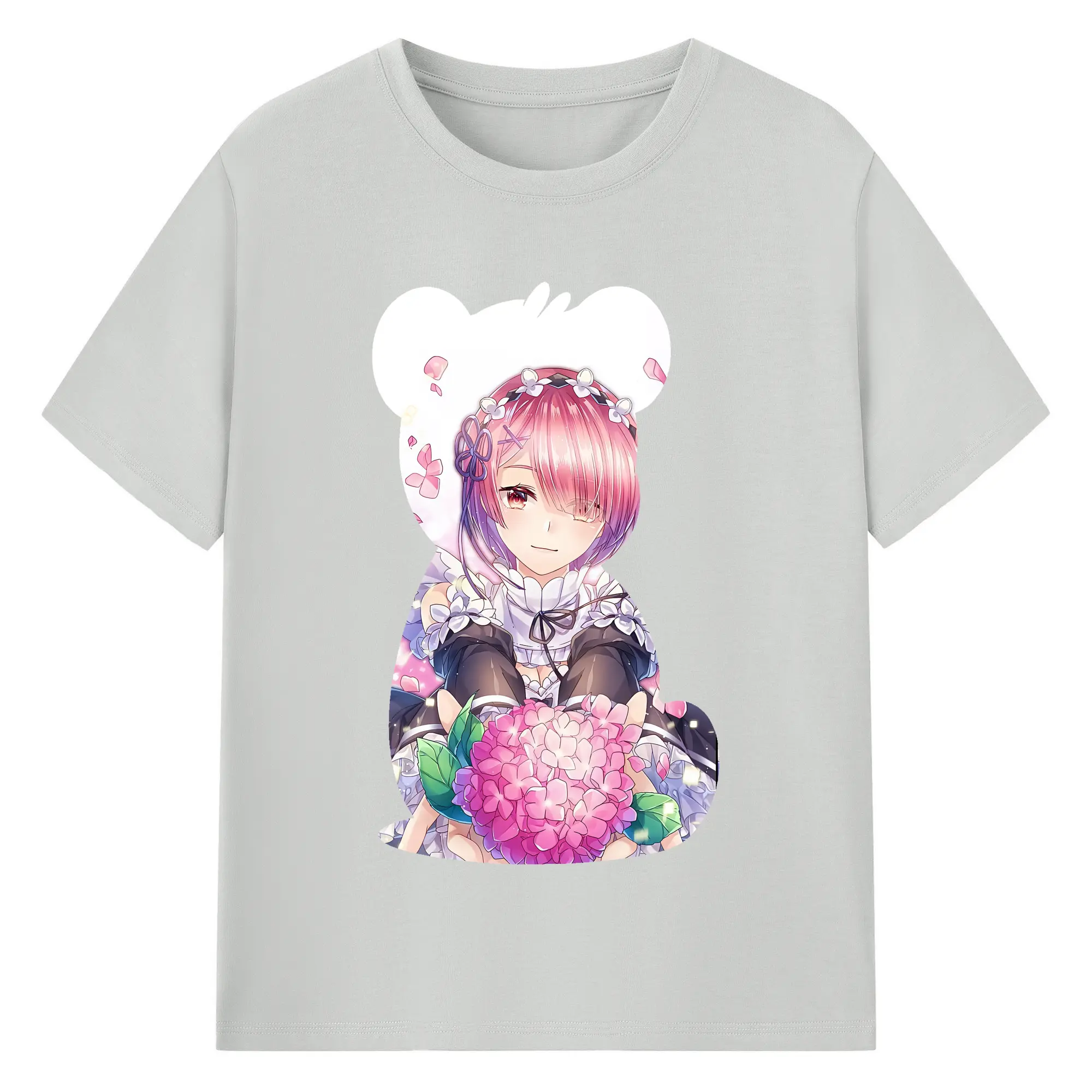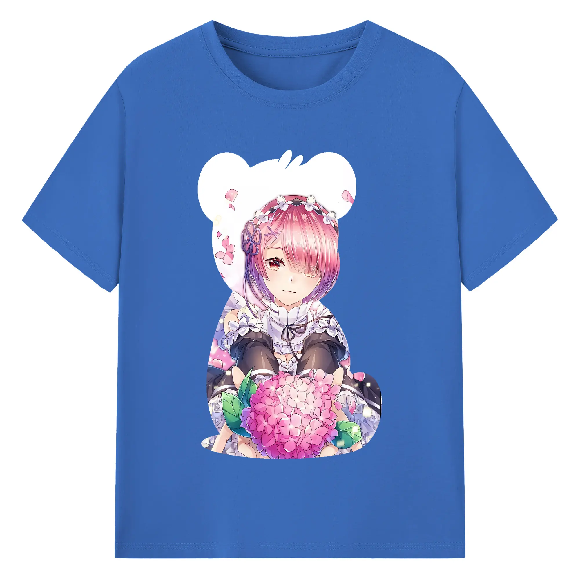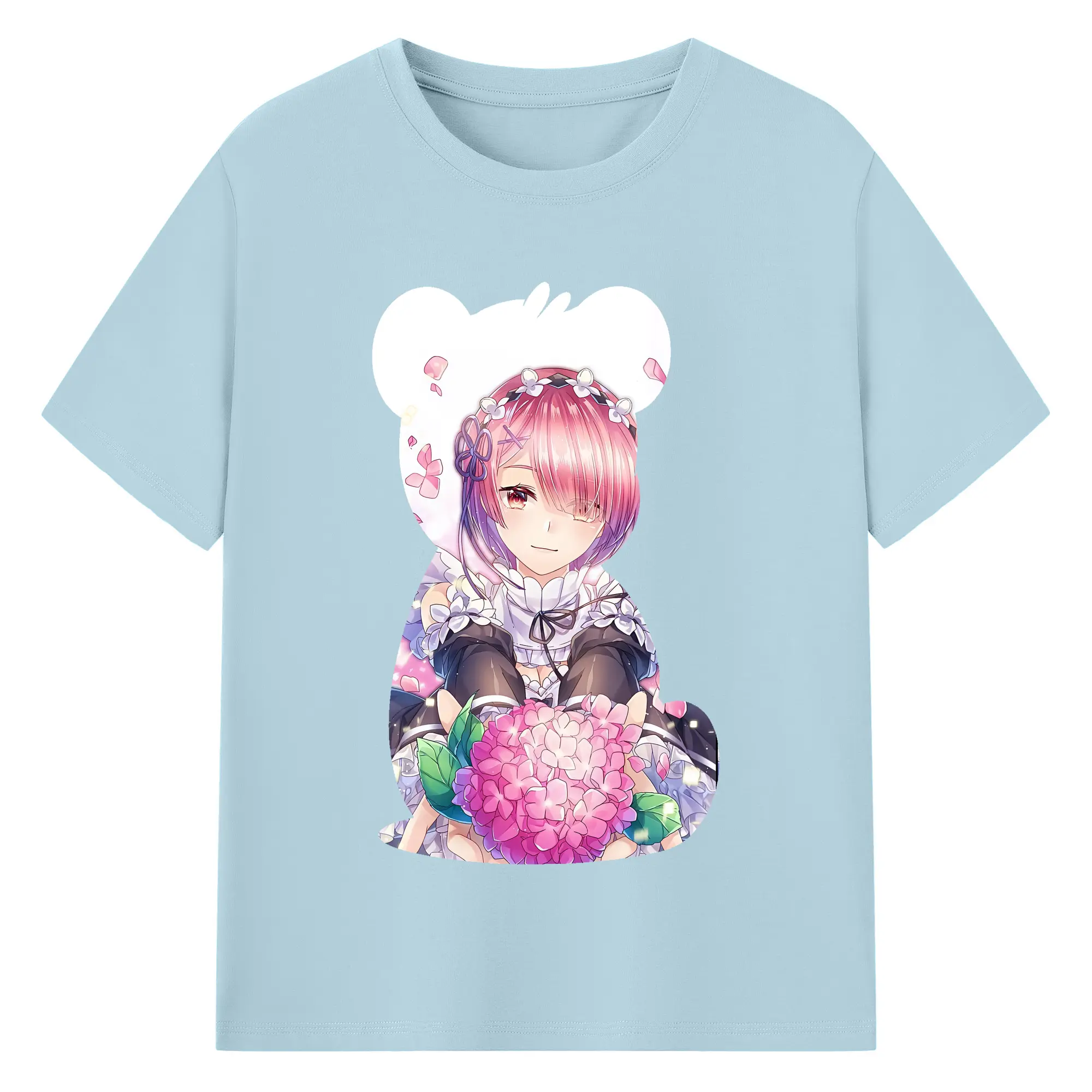 リゼロ グッズ ラム - 綿100% 半袖Tシャツ ・ バックプリント ・ 快適 通気性 ・ 日常使い 散歩 スポーツ用