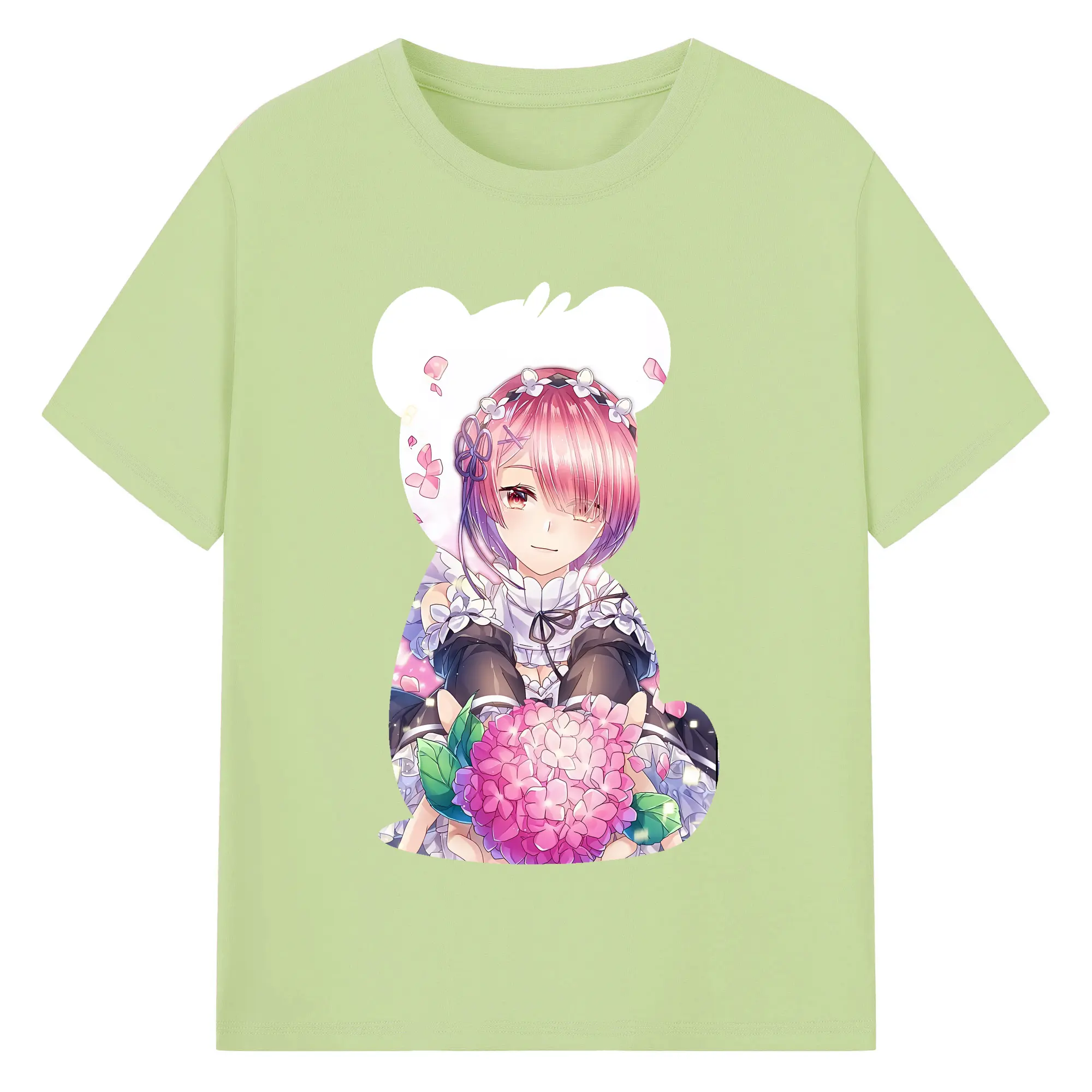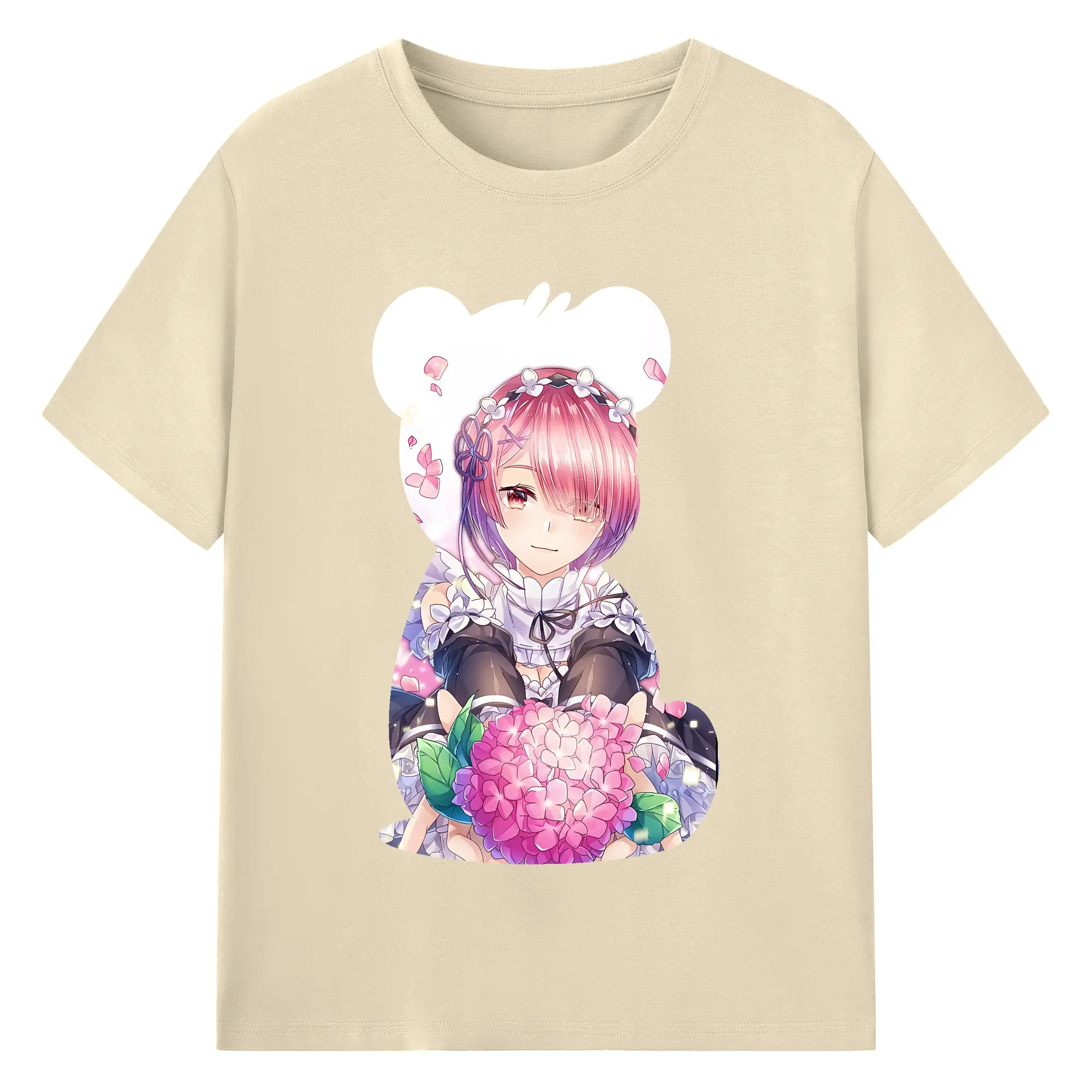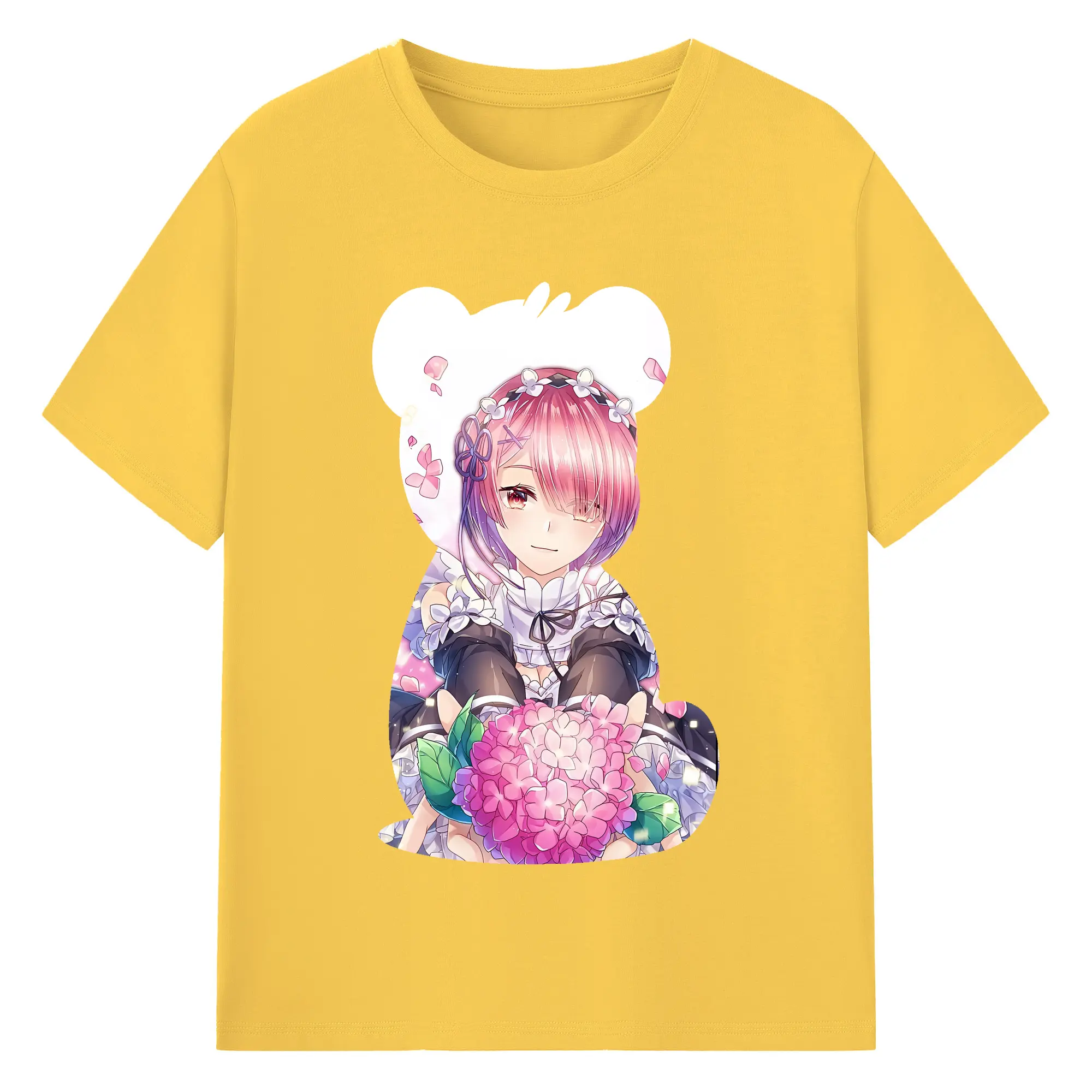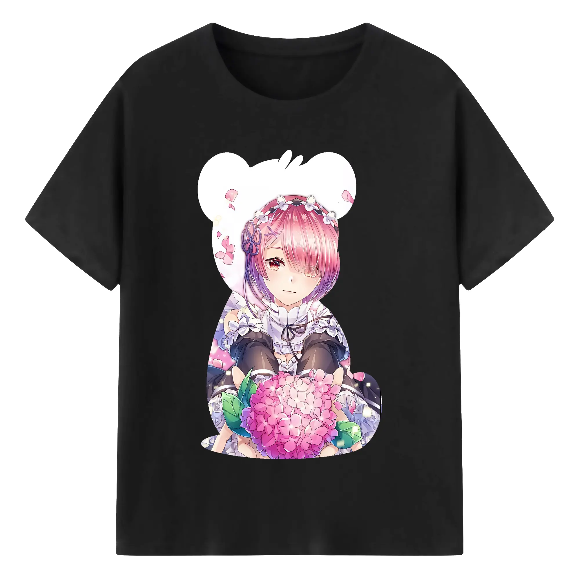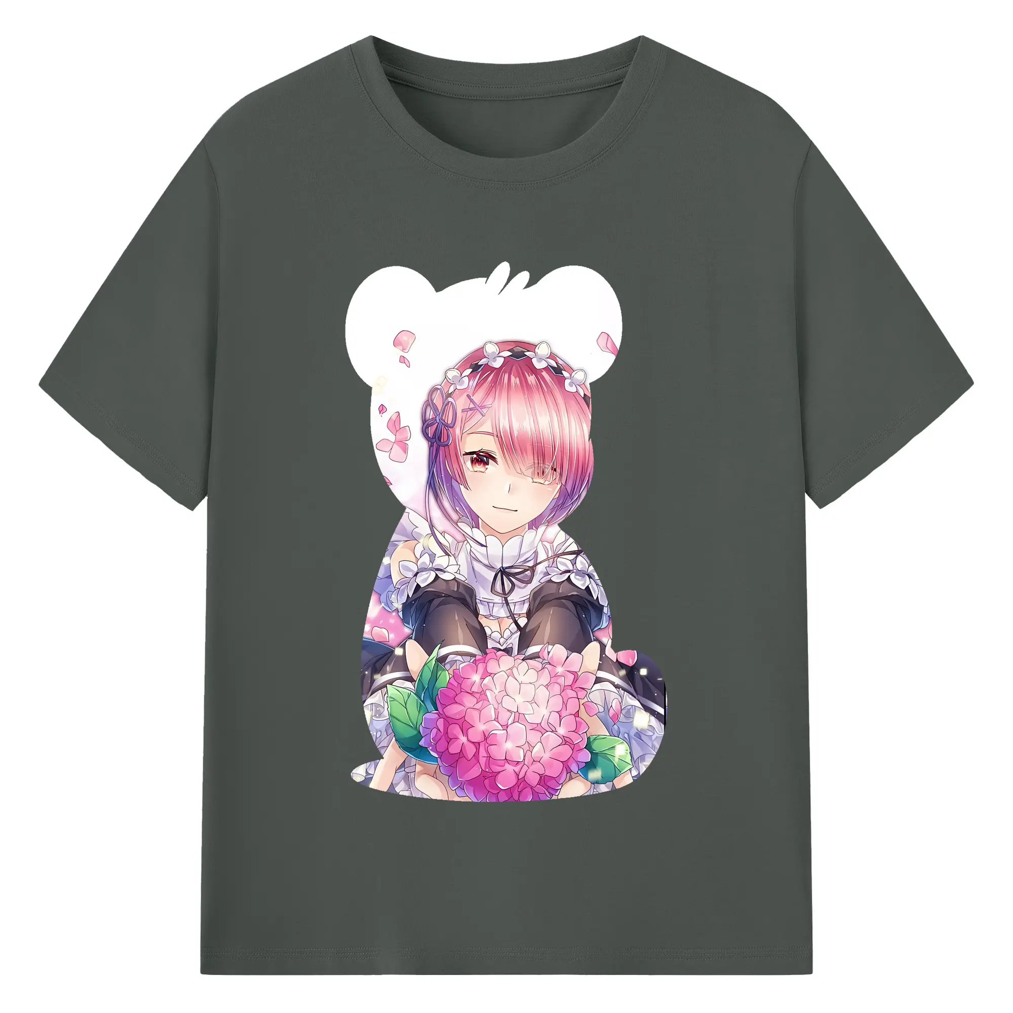 リゼロ グッズ ラム - 綿100% 半袖Tシャツ ・ バックプリント ・ 快適 通気性 ・ 日常使い 散歩 スポーツ用