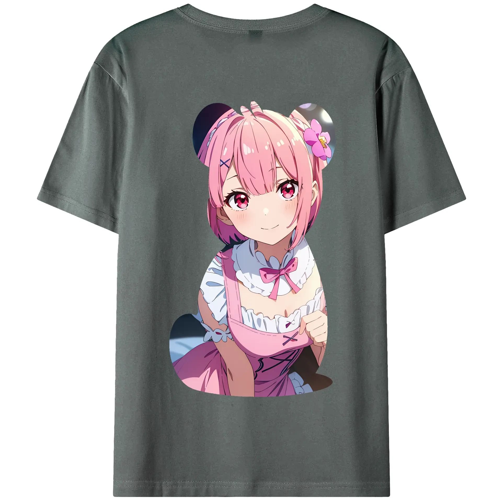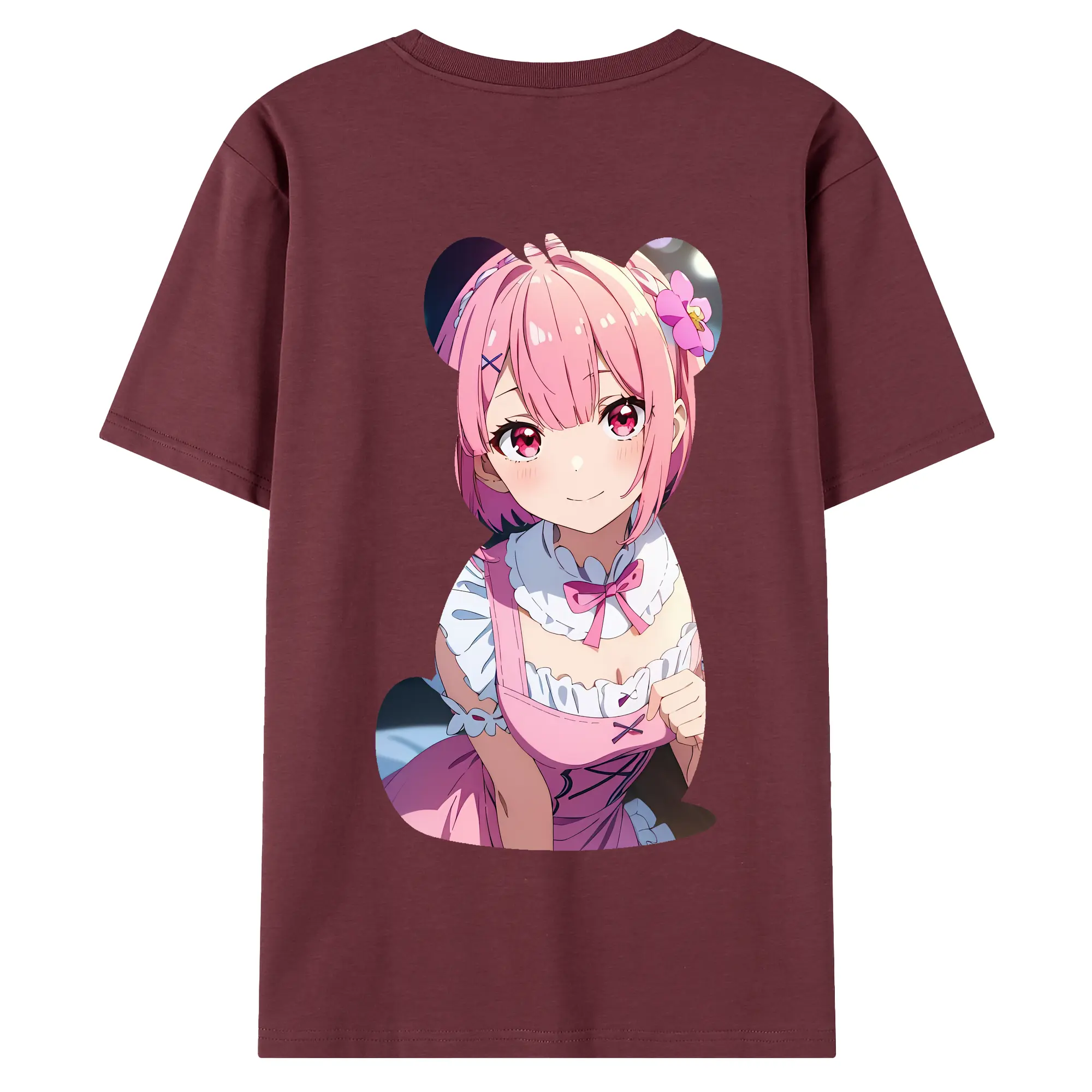 リゼロ グッズ ラム - 綿100% ヴィンテージ風 半袖Tシャツ ・ 背面プリント ・ 柔らか肌触り ・ 通気性 快適 ・ スポーツ カジュアル 外出用