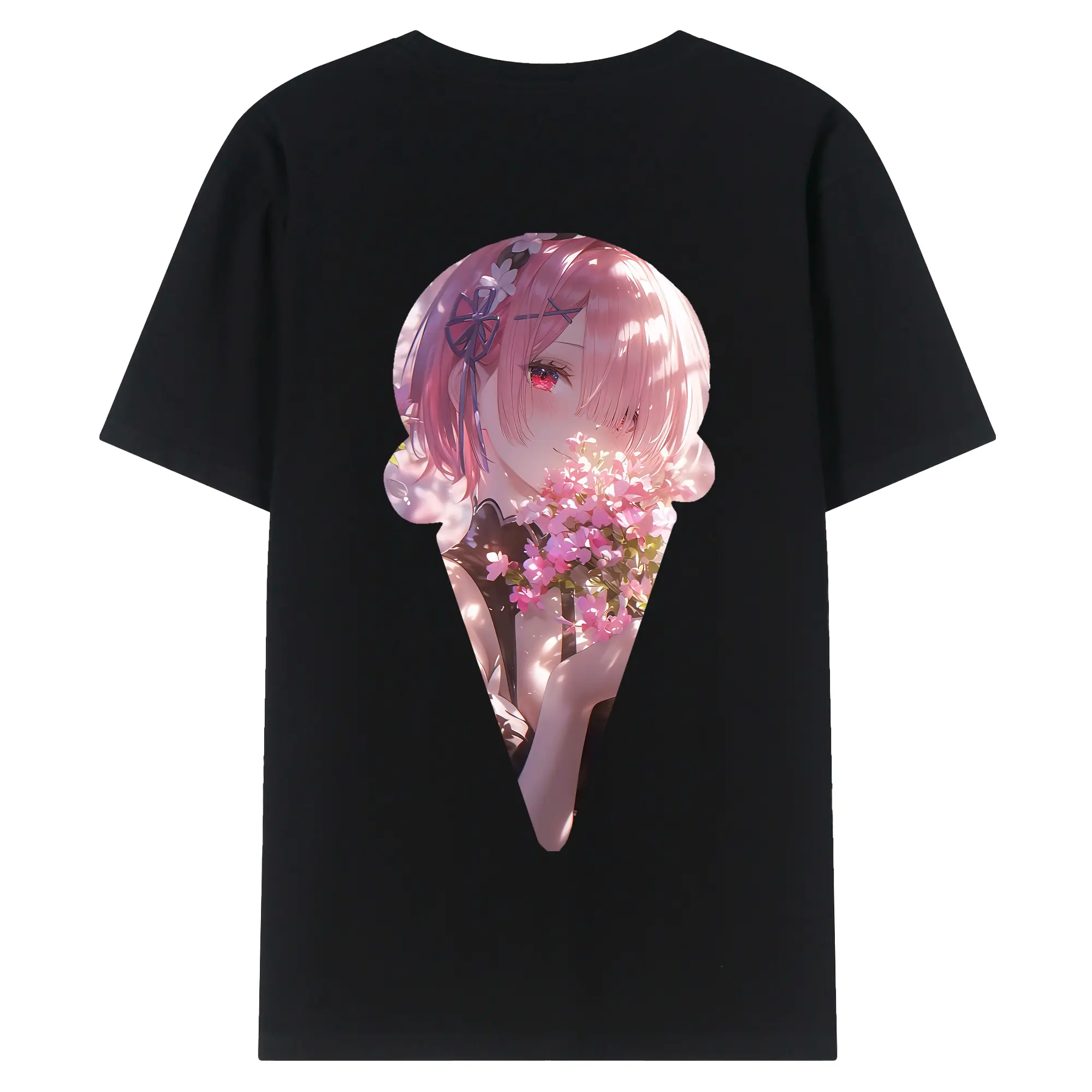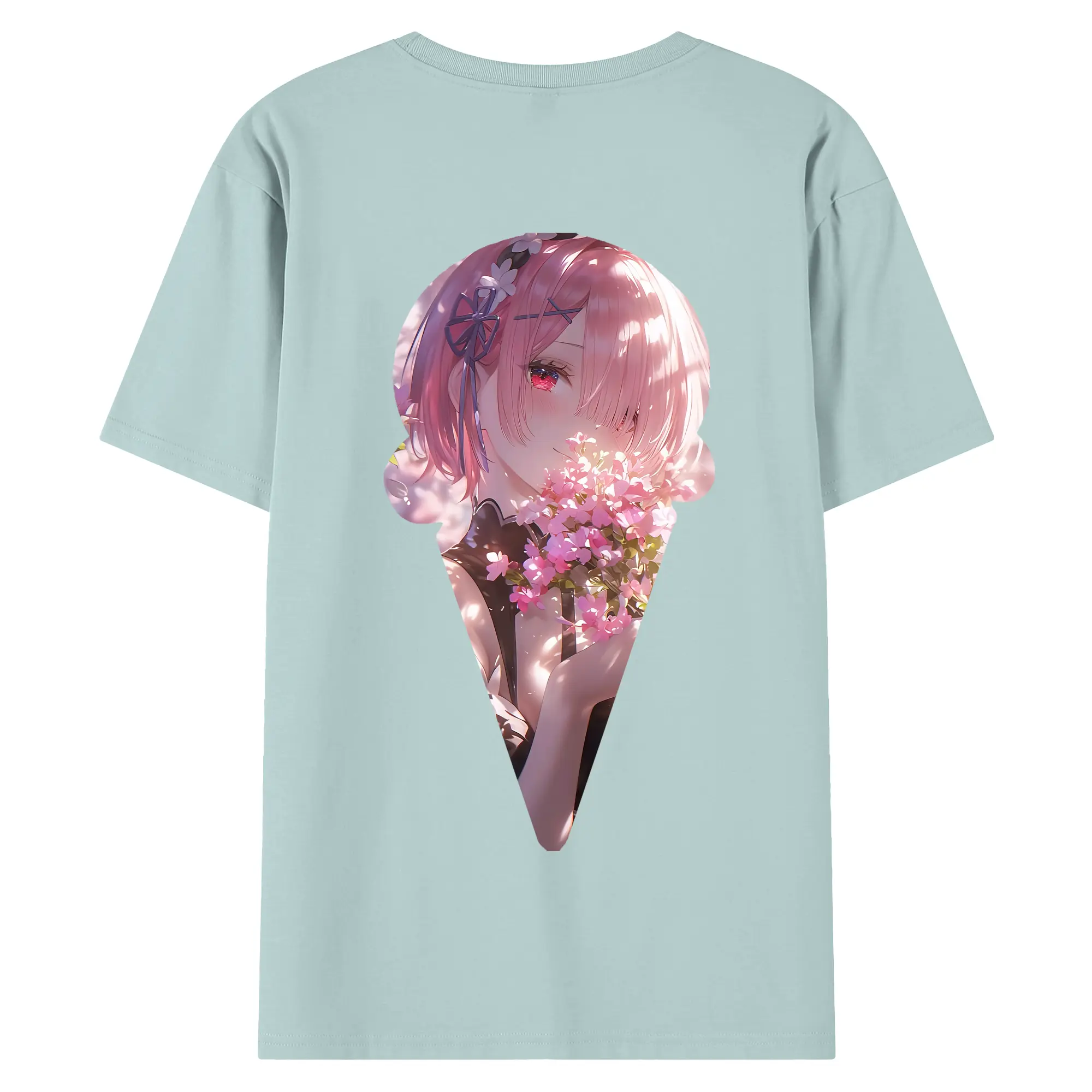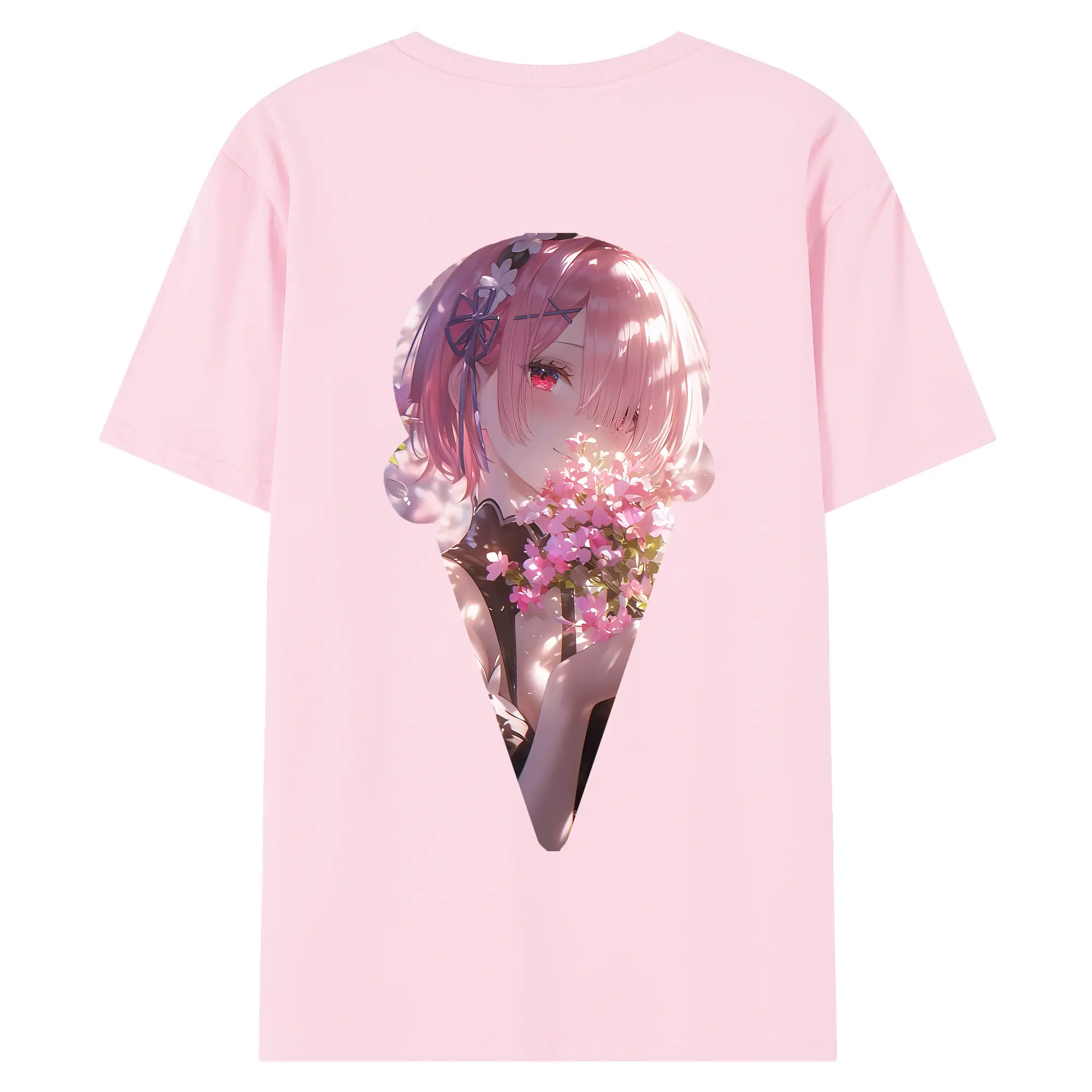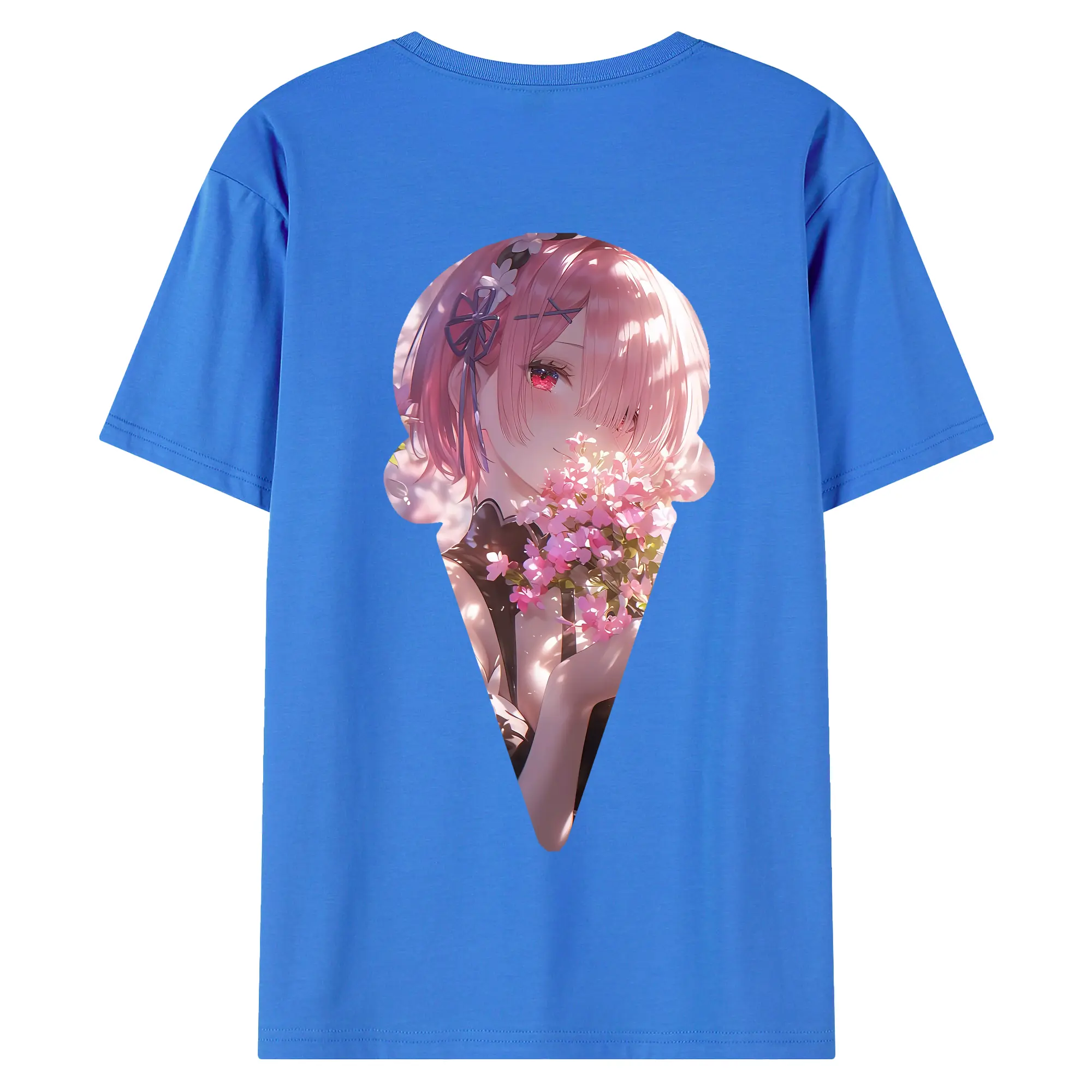 リゼロ グッズ ラム - 綿100% 半袖Tシャツ ・ フロントプリント ・ 快適 通気性 ・ 日常使い 散歩 スポーツ用