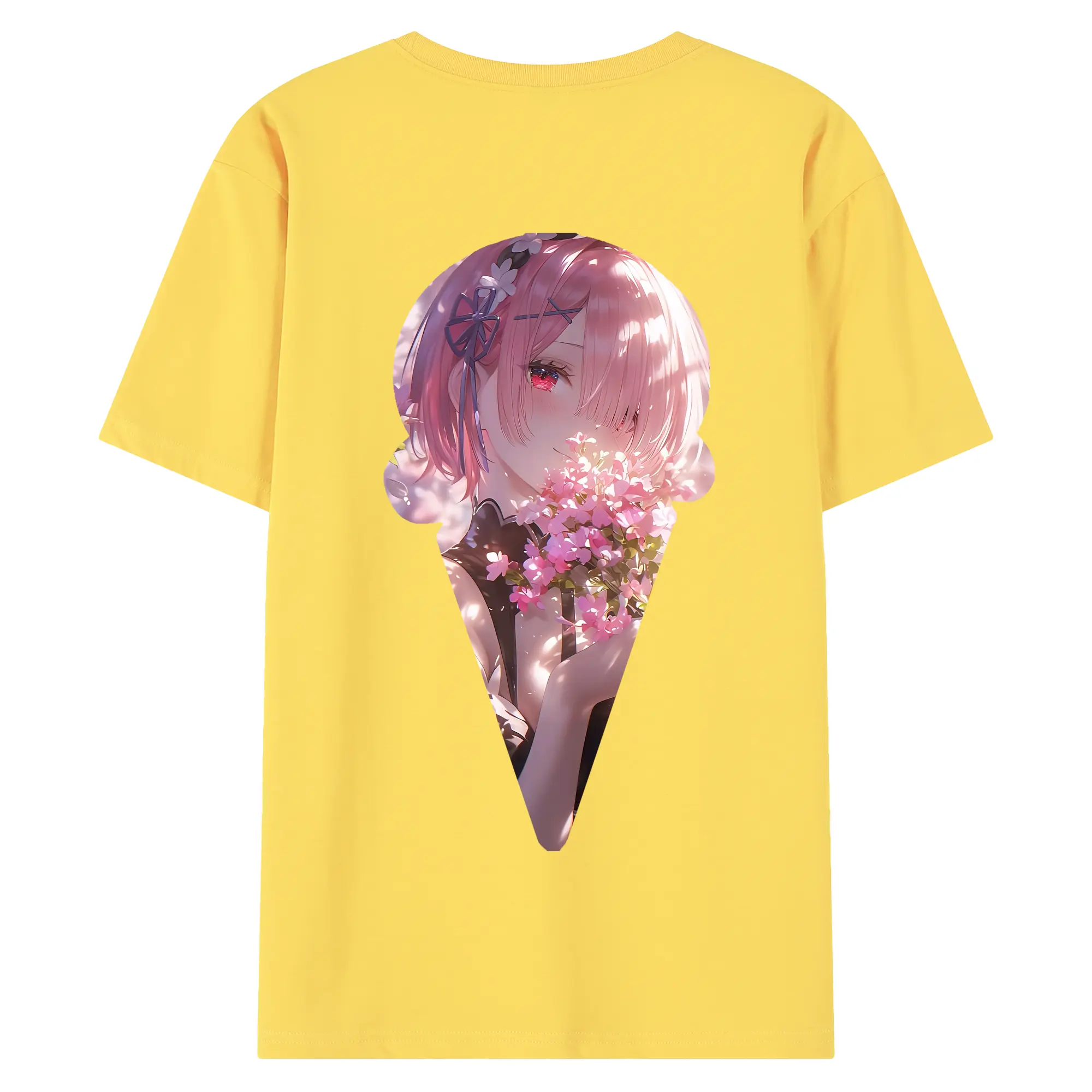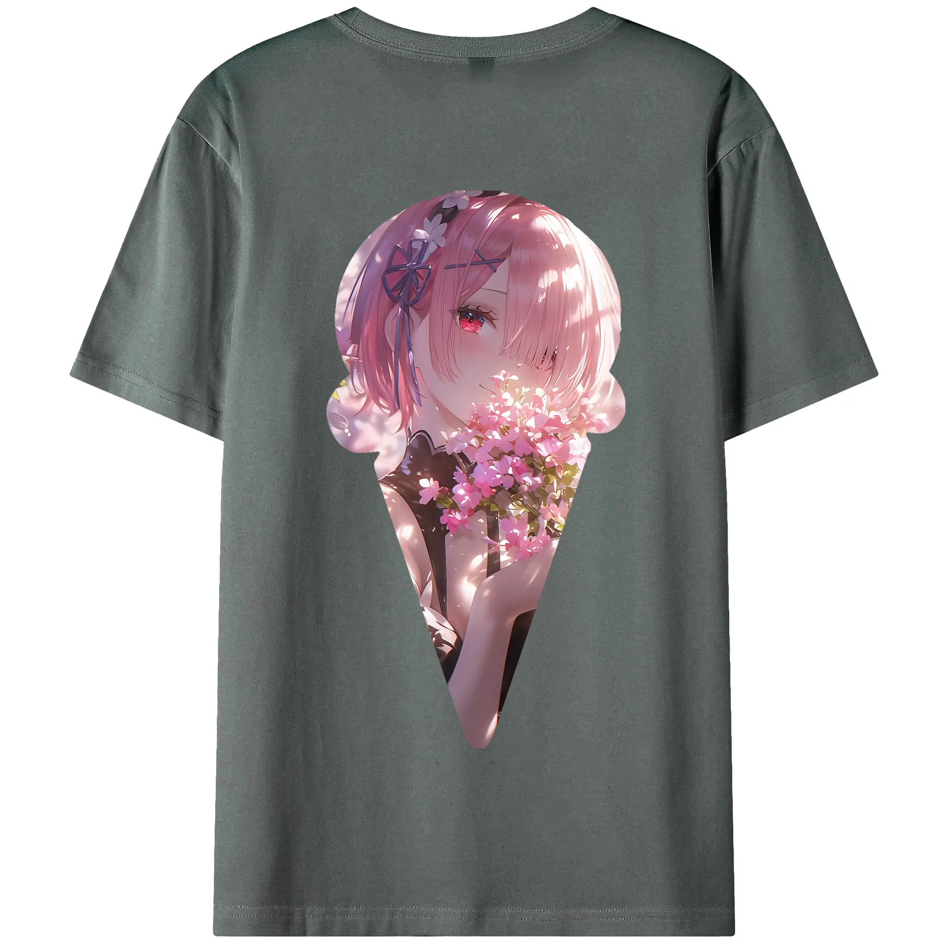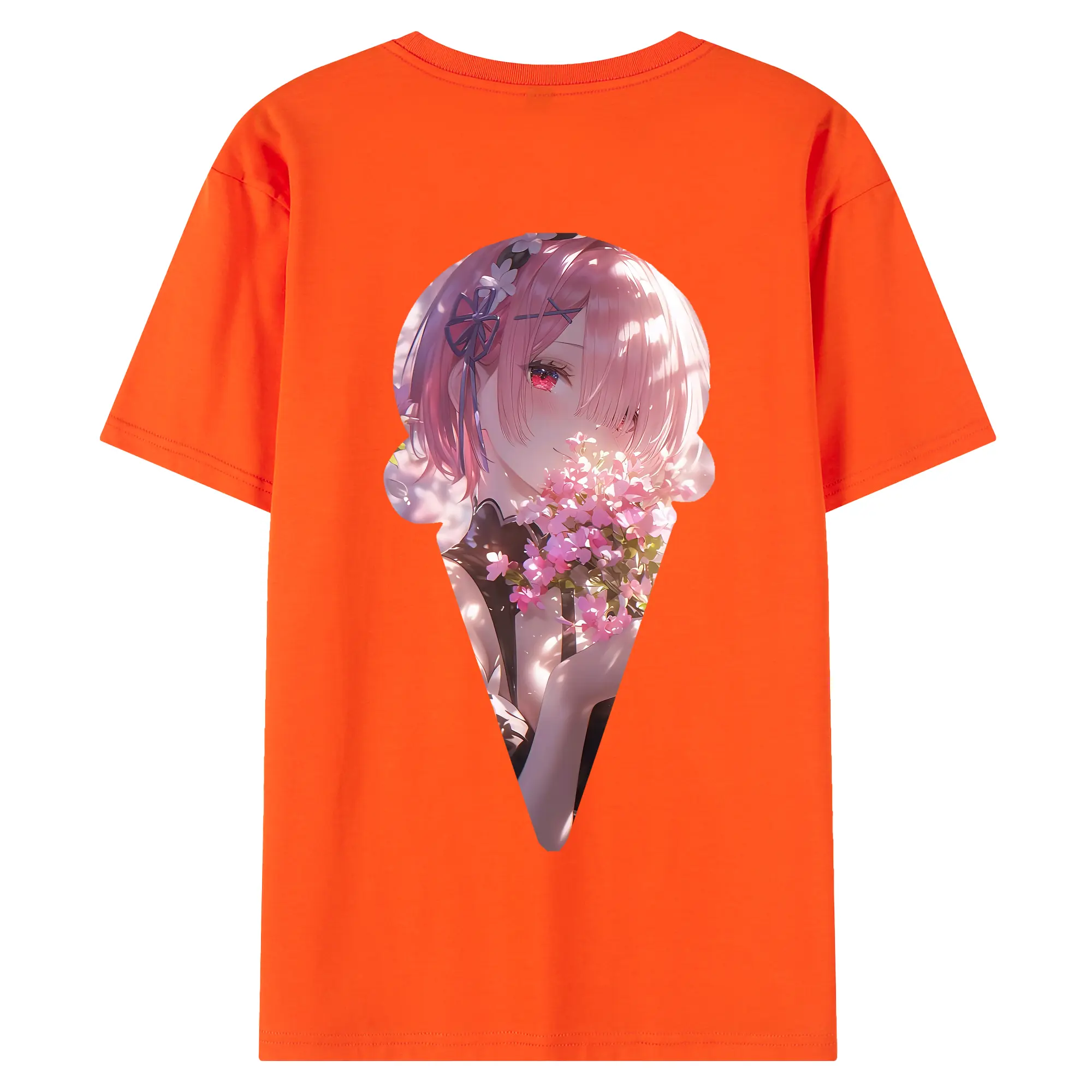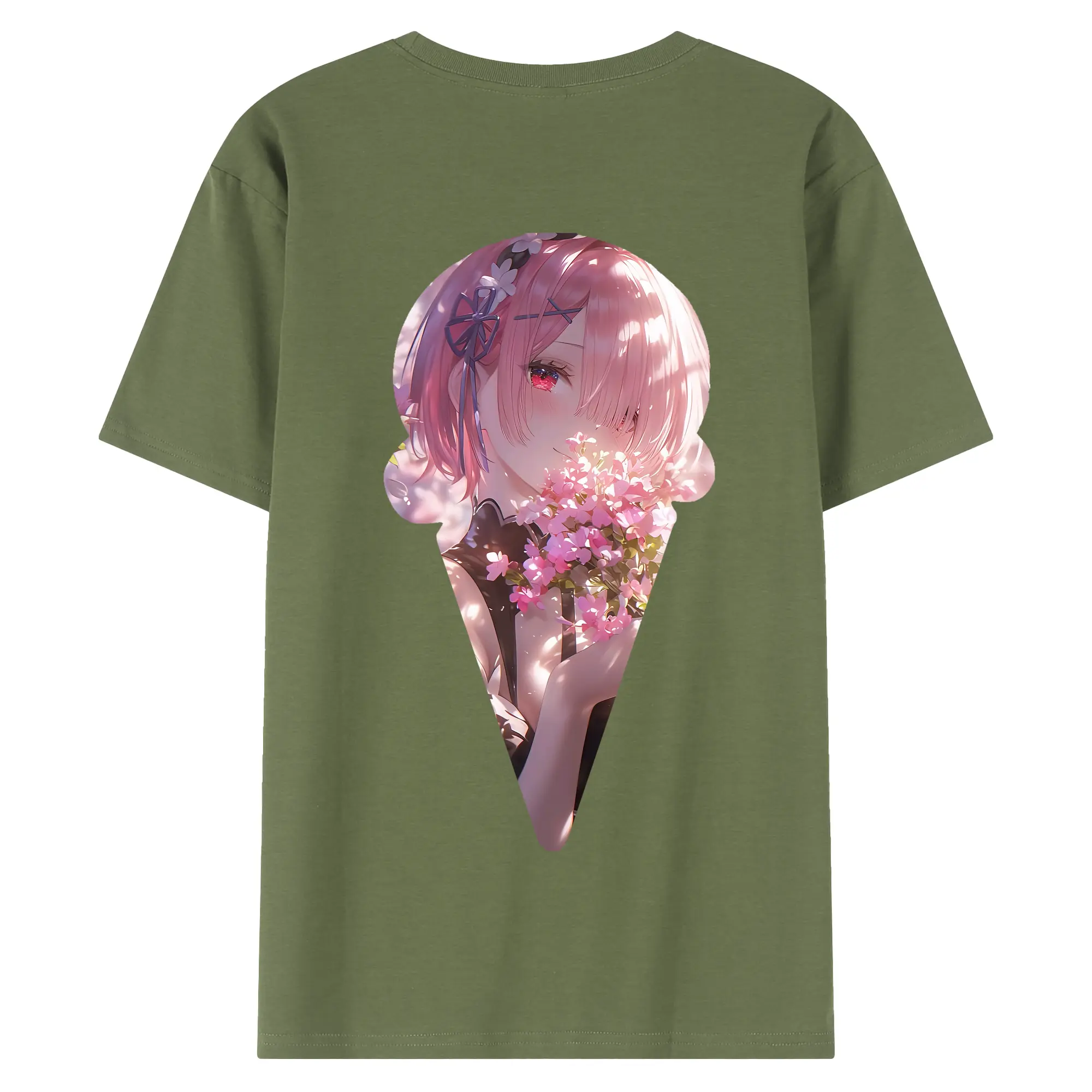 リゼロ グッズ ラム - 綿100% 半袖Tシャツ ・ フロントプリント ・ 快適 通気性 ・ 日常使い 散歩 スポーツ用