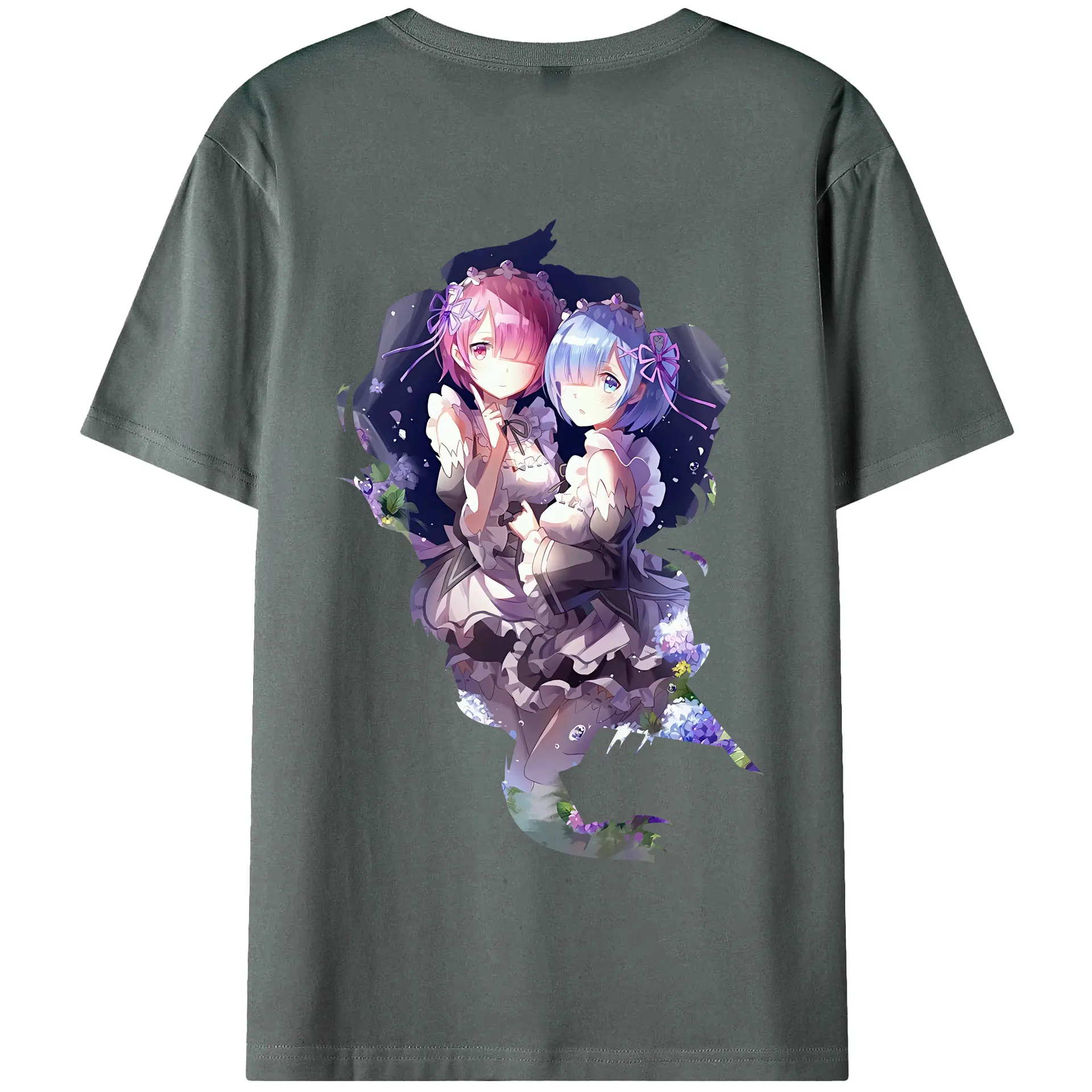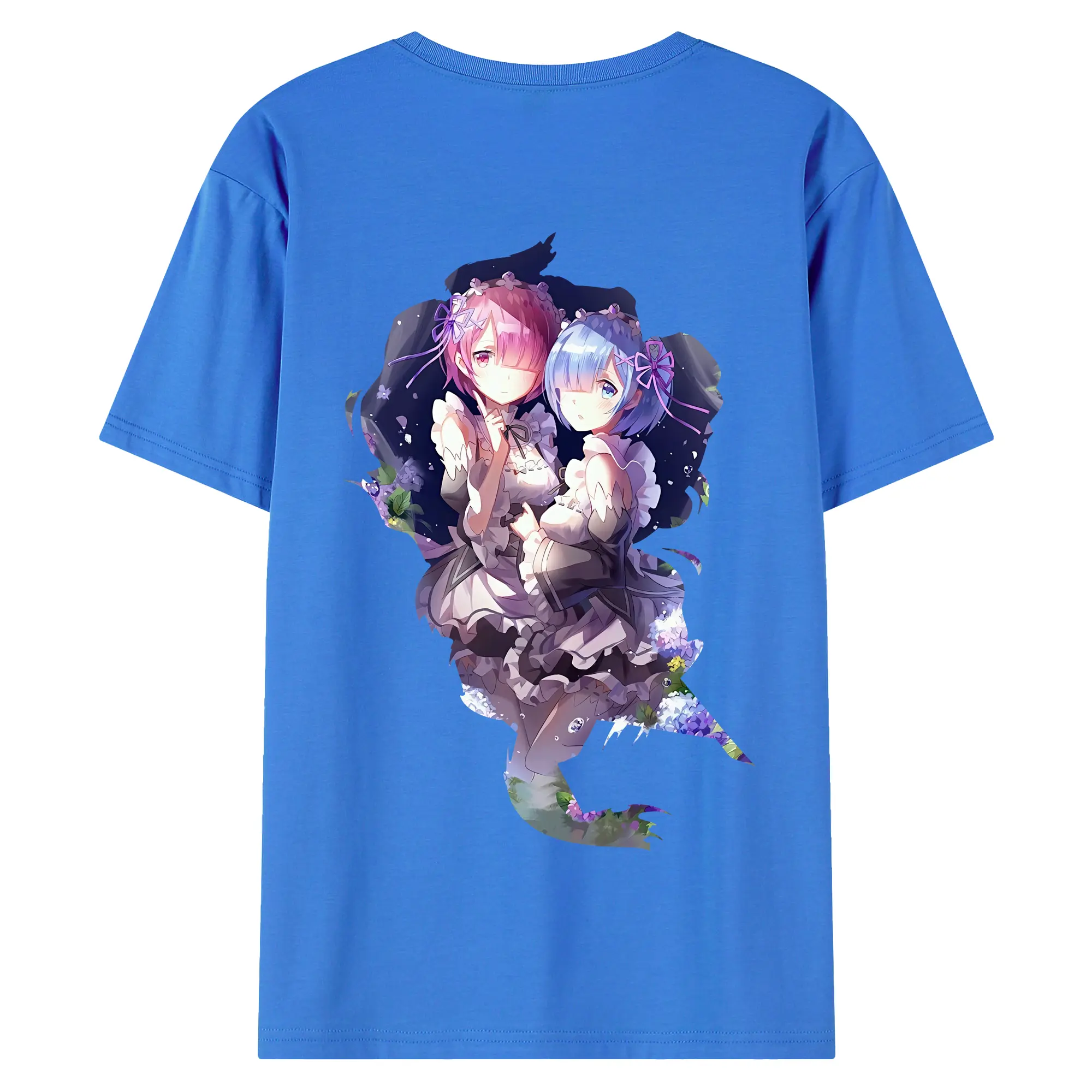 リゼロ グッズ ラム - 綿100% 半袖Tシャツ ・ フロントプリント ・ 快適 通気性 ・ 日常使い 散歩 スポーツ用