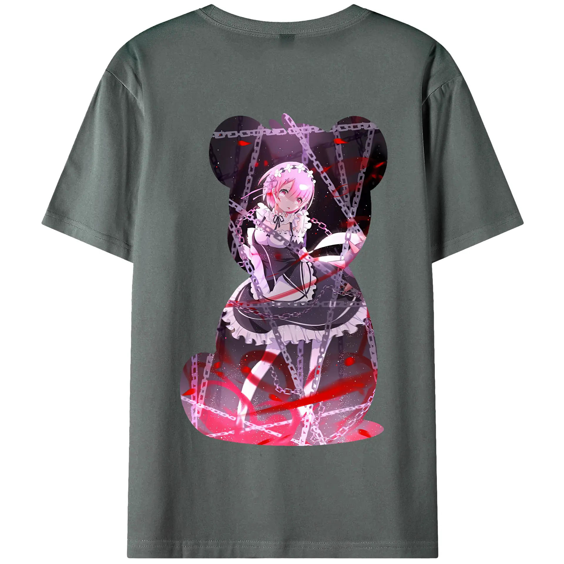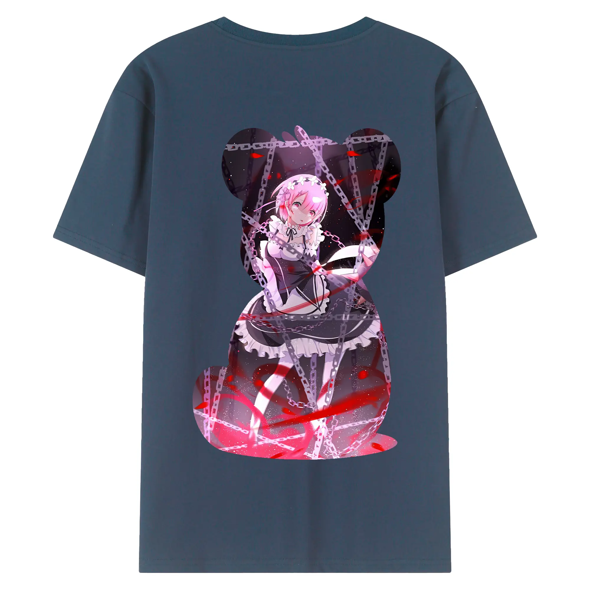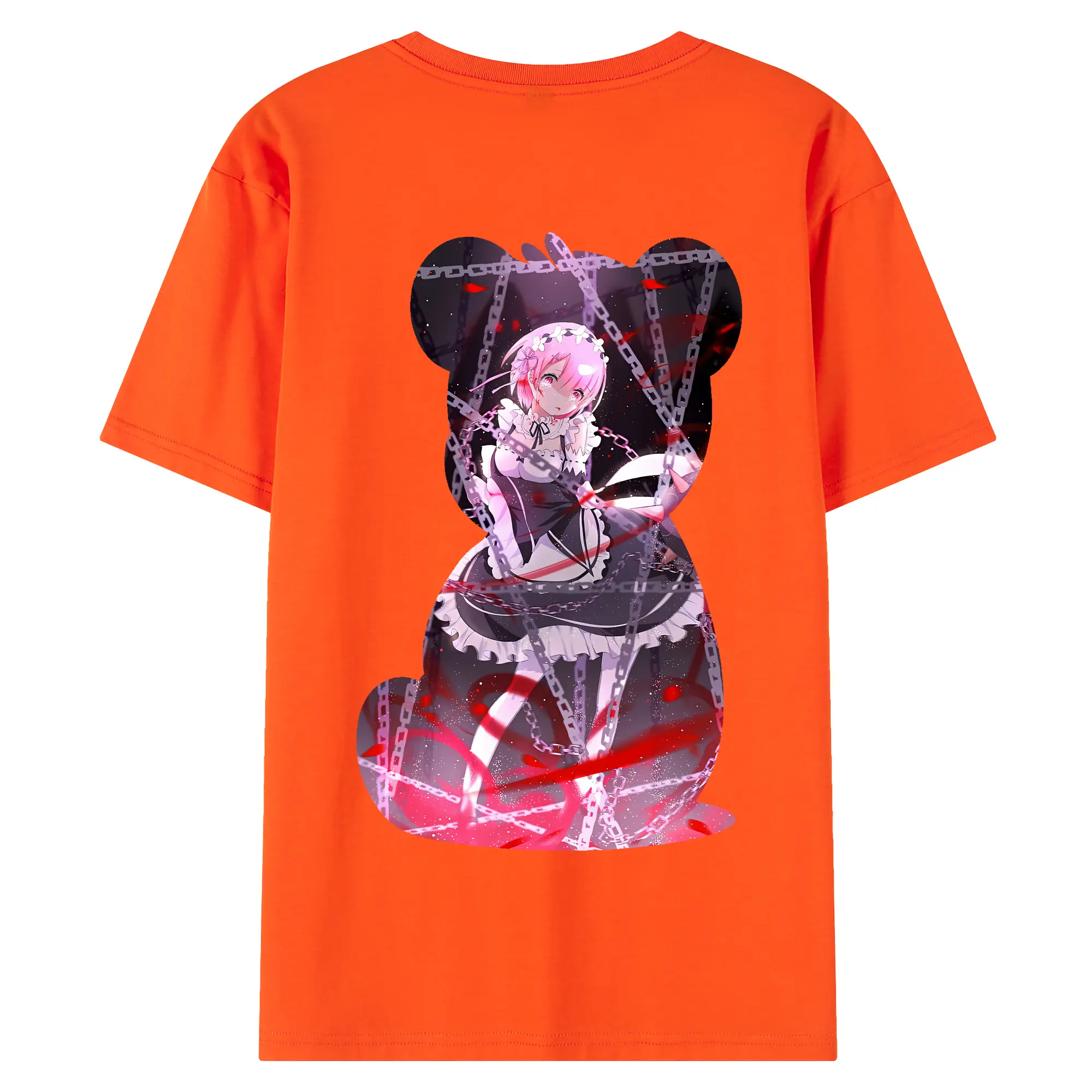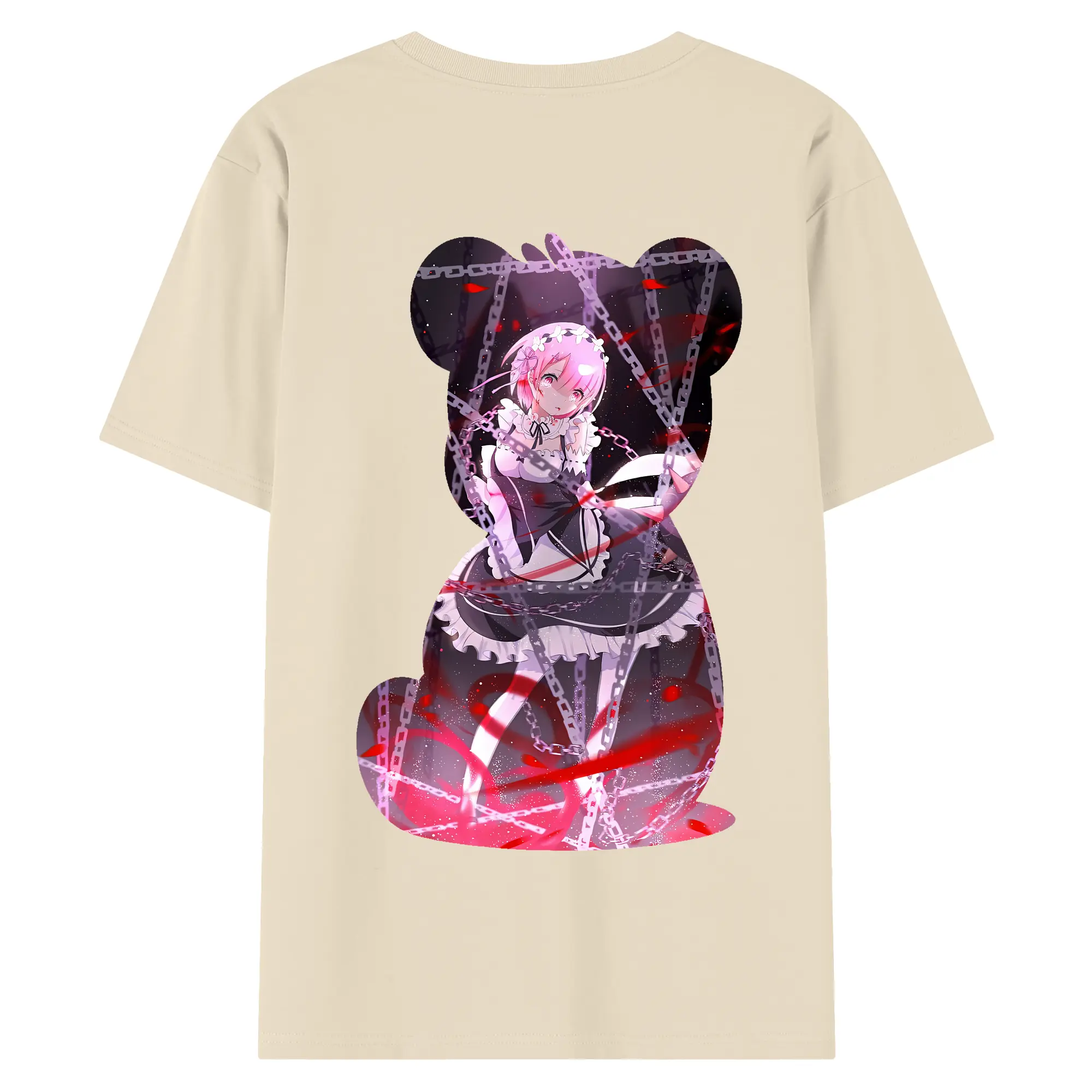 リゼロ グッズ ラム - 綿100% ヴィンテージ風 半袖Tシャツ ・ 背面プリント ・ 柔らか肌触り ・ 通気性 快適 ・ スポーツ カジュアル 外出用