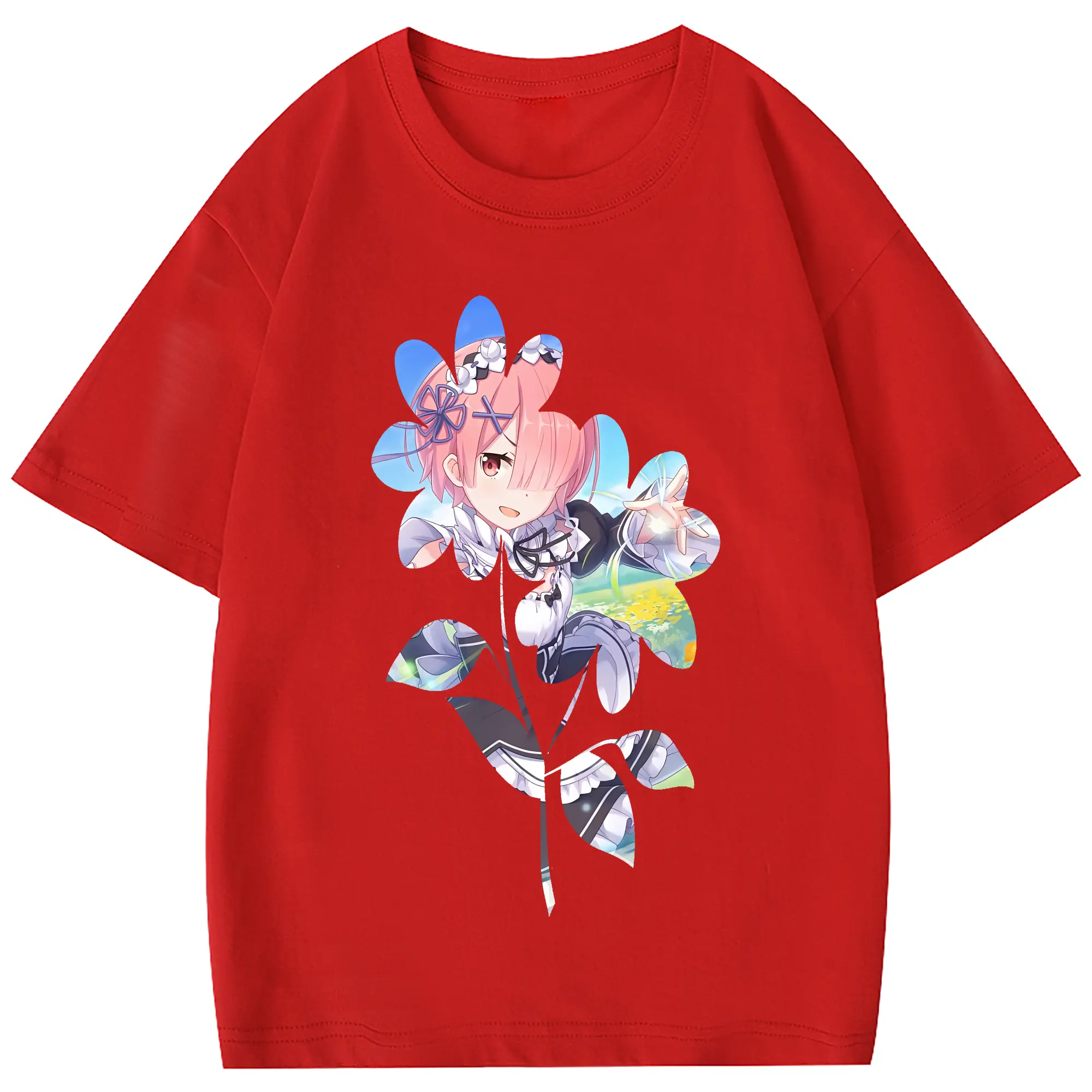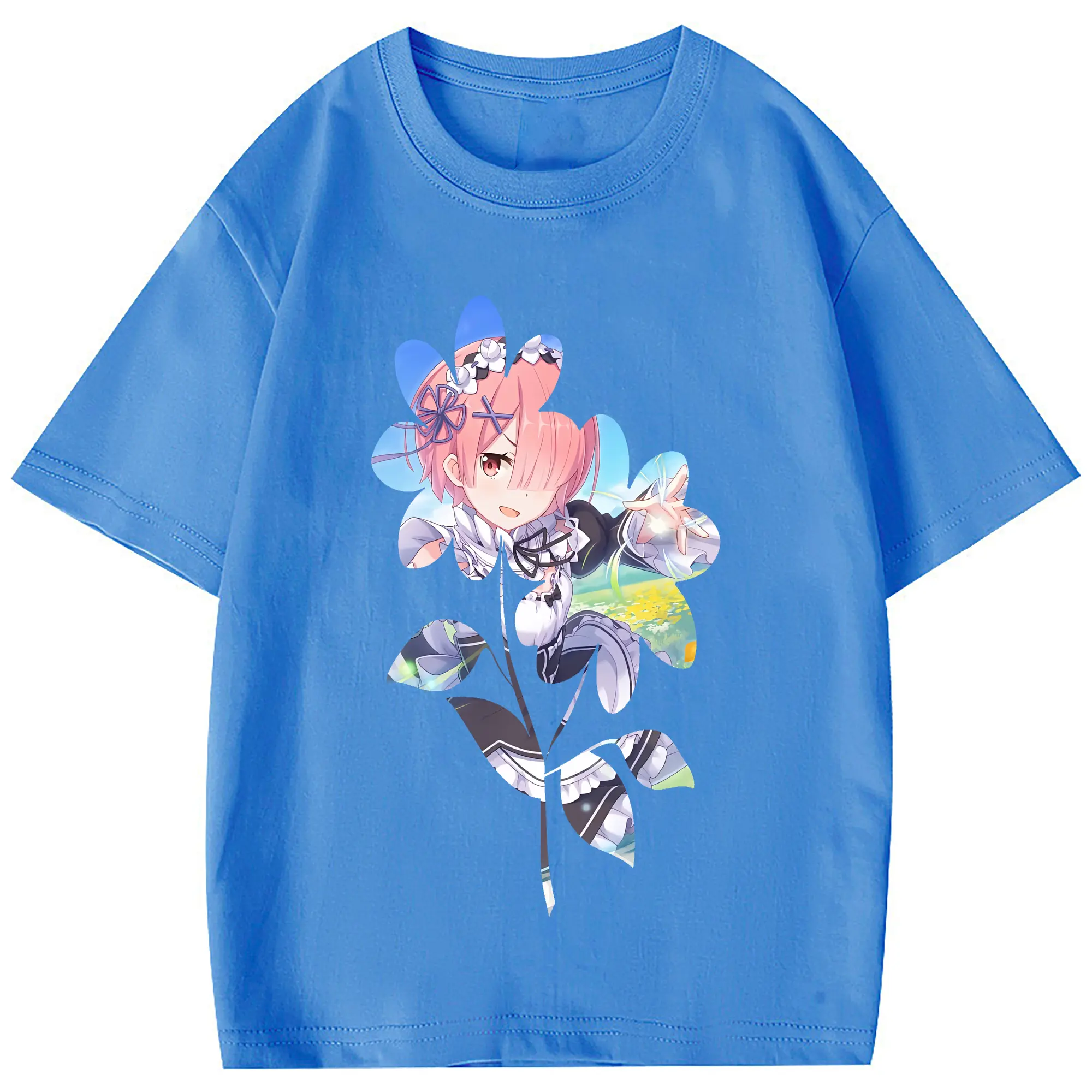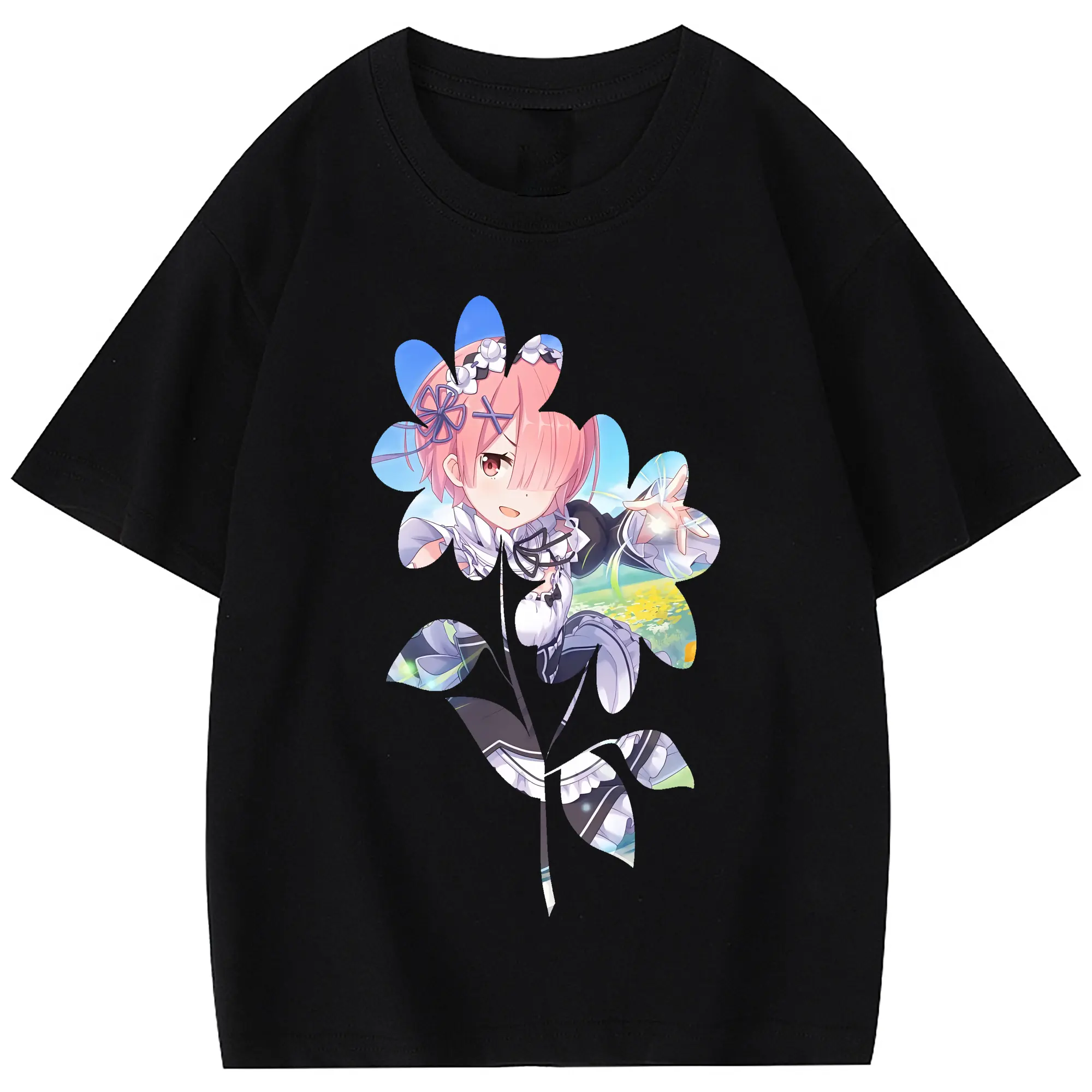 リゼロ グッズ ラム - 綿100% 半袖Tシャツ ・ フロントプリント ・ 快適 通気性 ・ 日常使い 散歩 スポーツ用