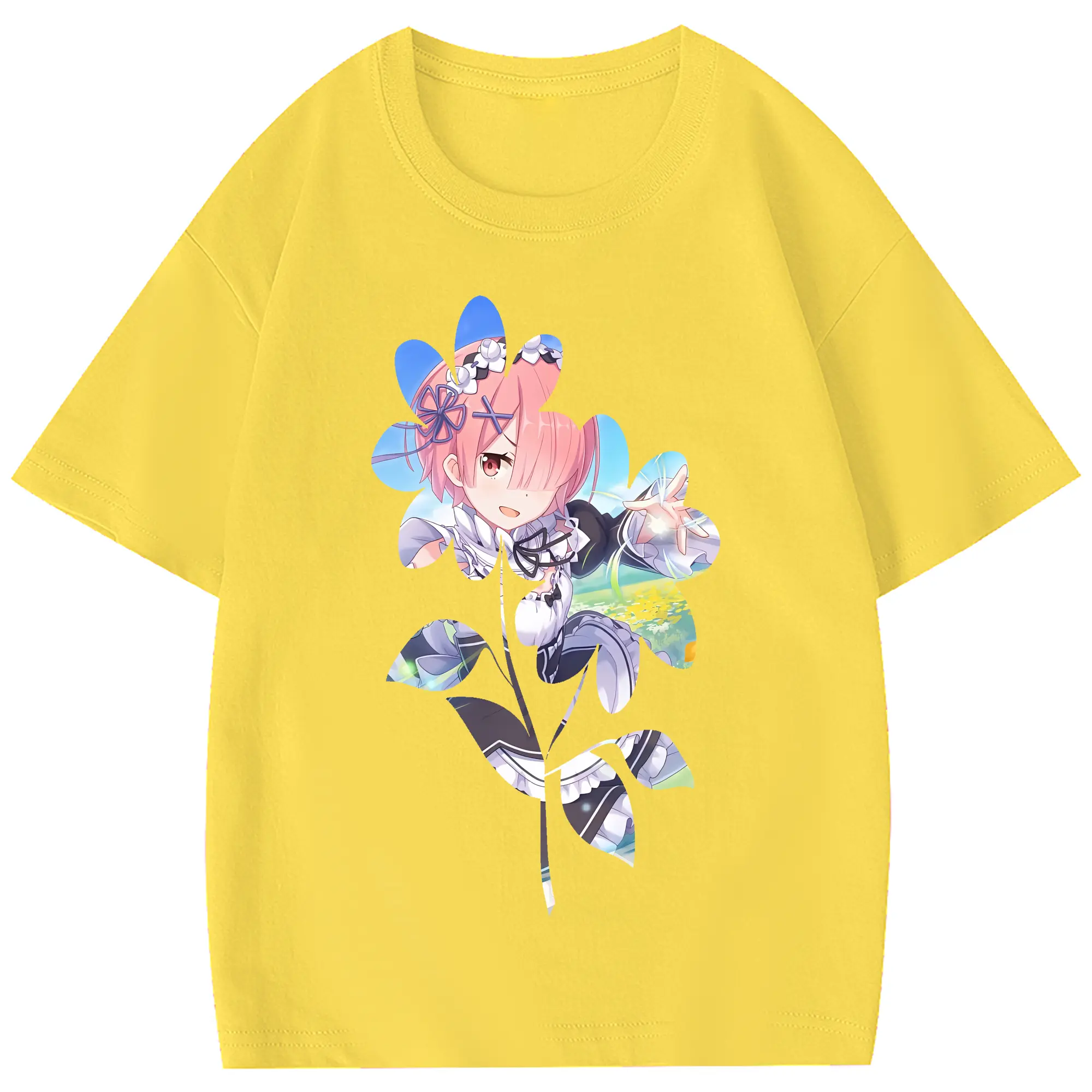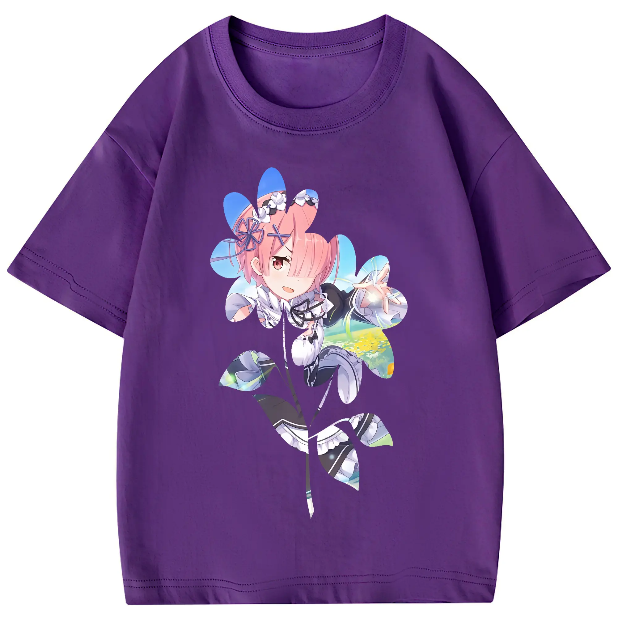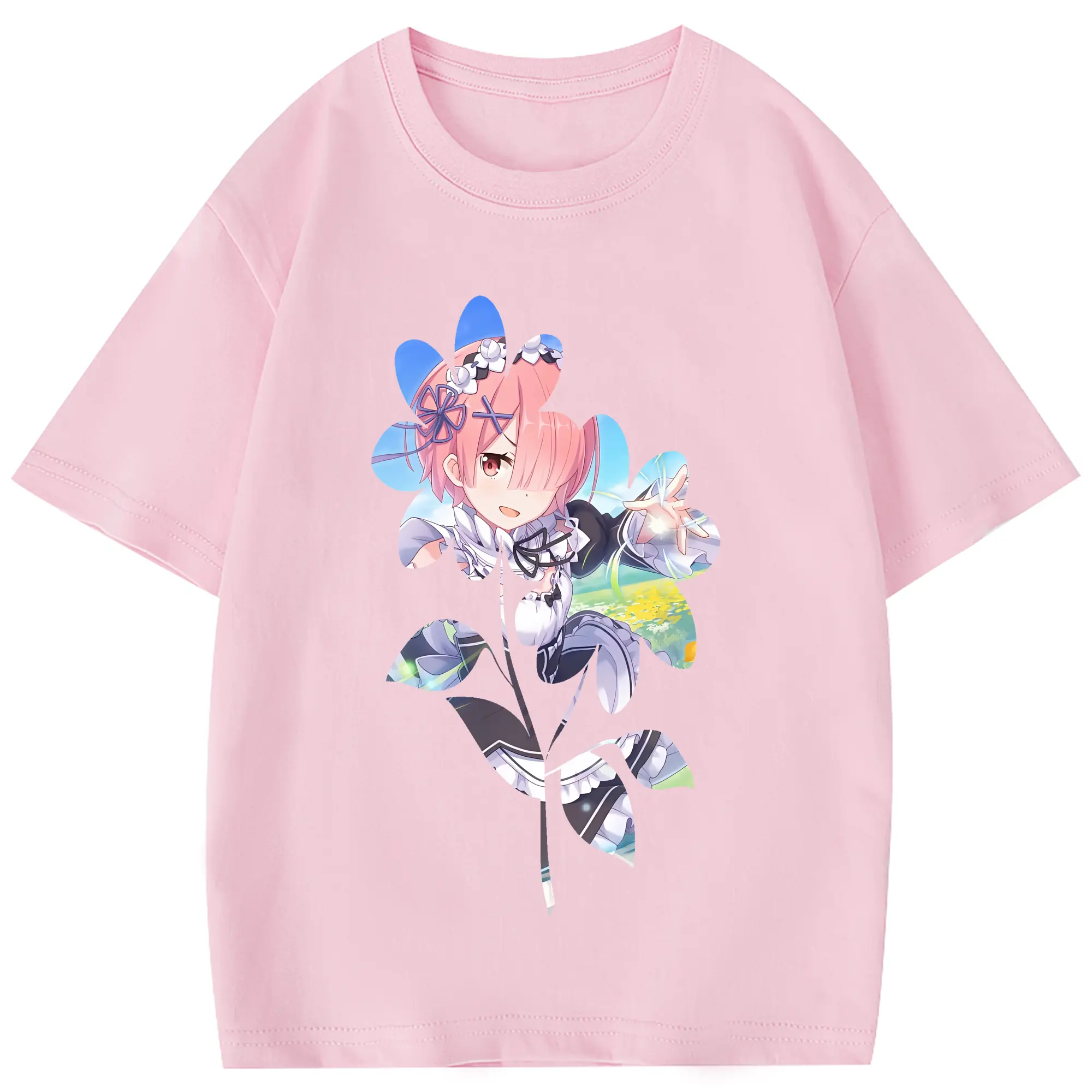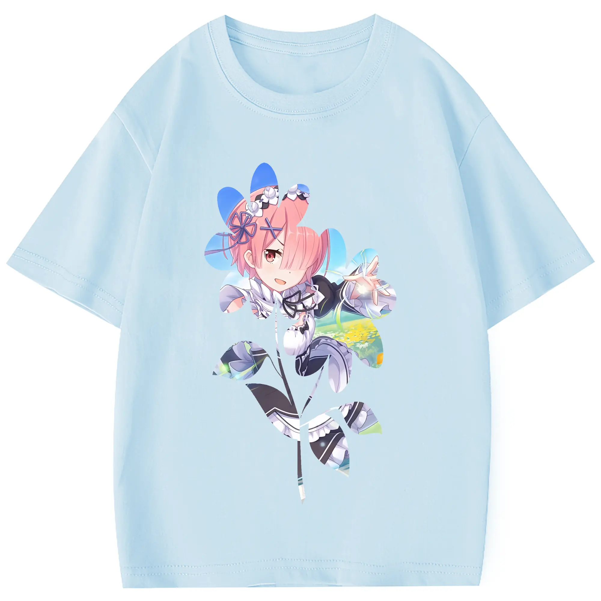 リゼロ グッズ ラム - 綿100% 半袖Tシャツ ・ フロントプリント ・ 快適 通気性 ・ 日常使い 散歩 スポーツ用