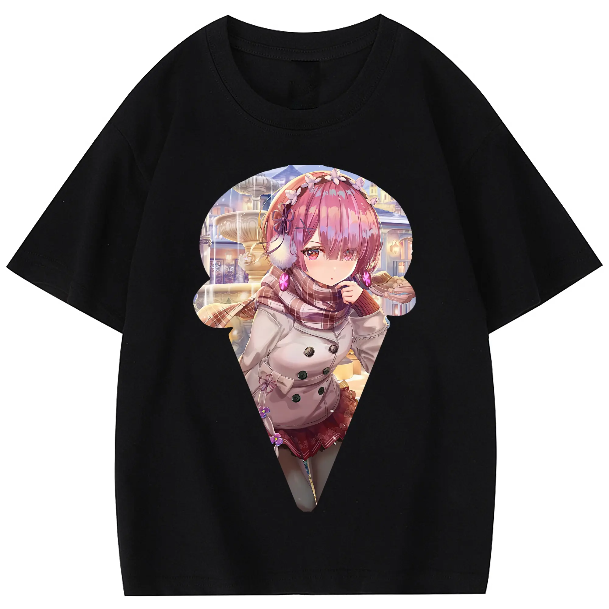 リゼロ グッズ ラム - 綿100% 半袖Tシャツ ・ フロントプリント ・ 快適 通気性 ・ 日常使い 散歩 スポーツ用