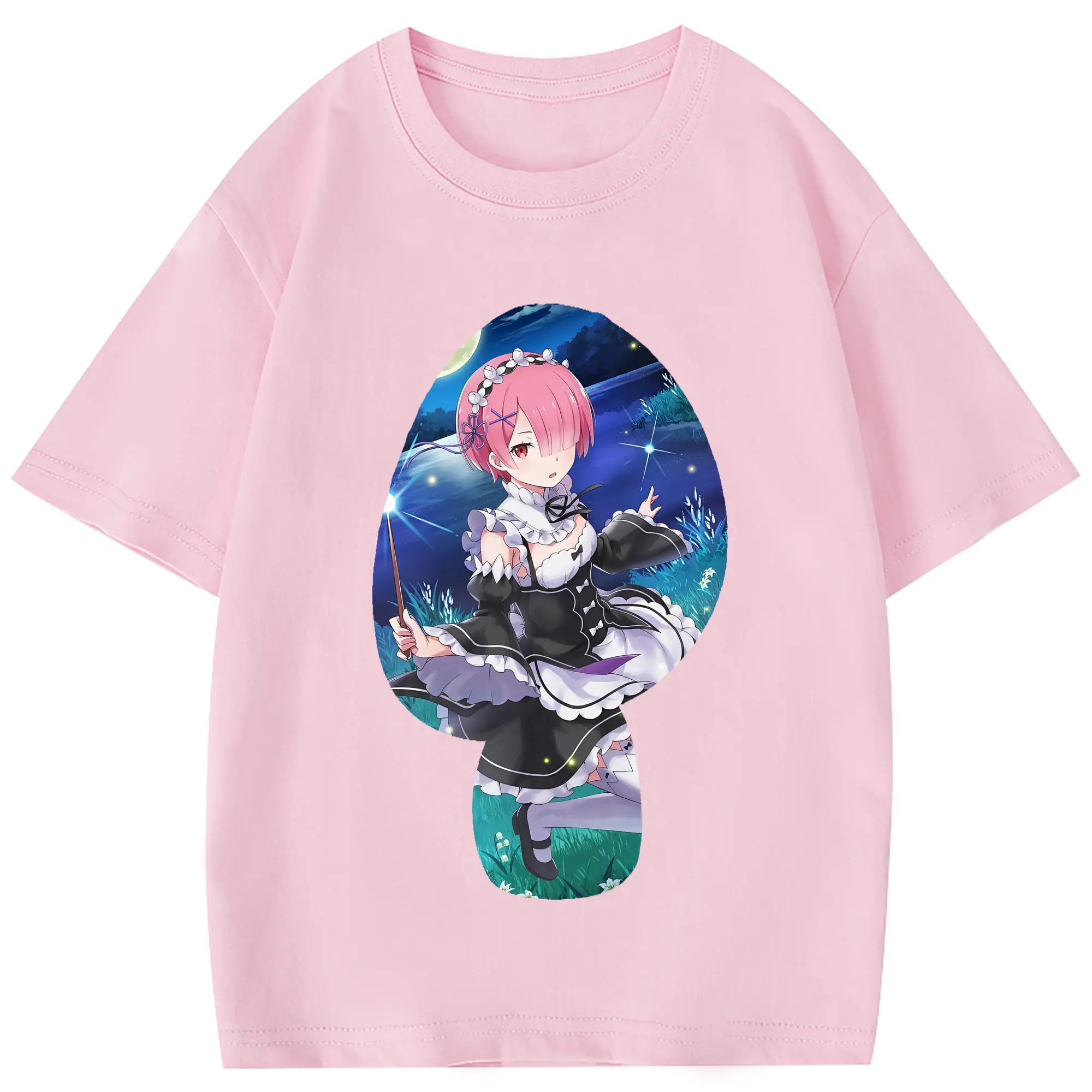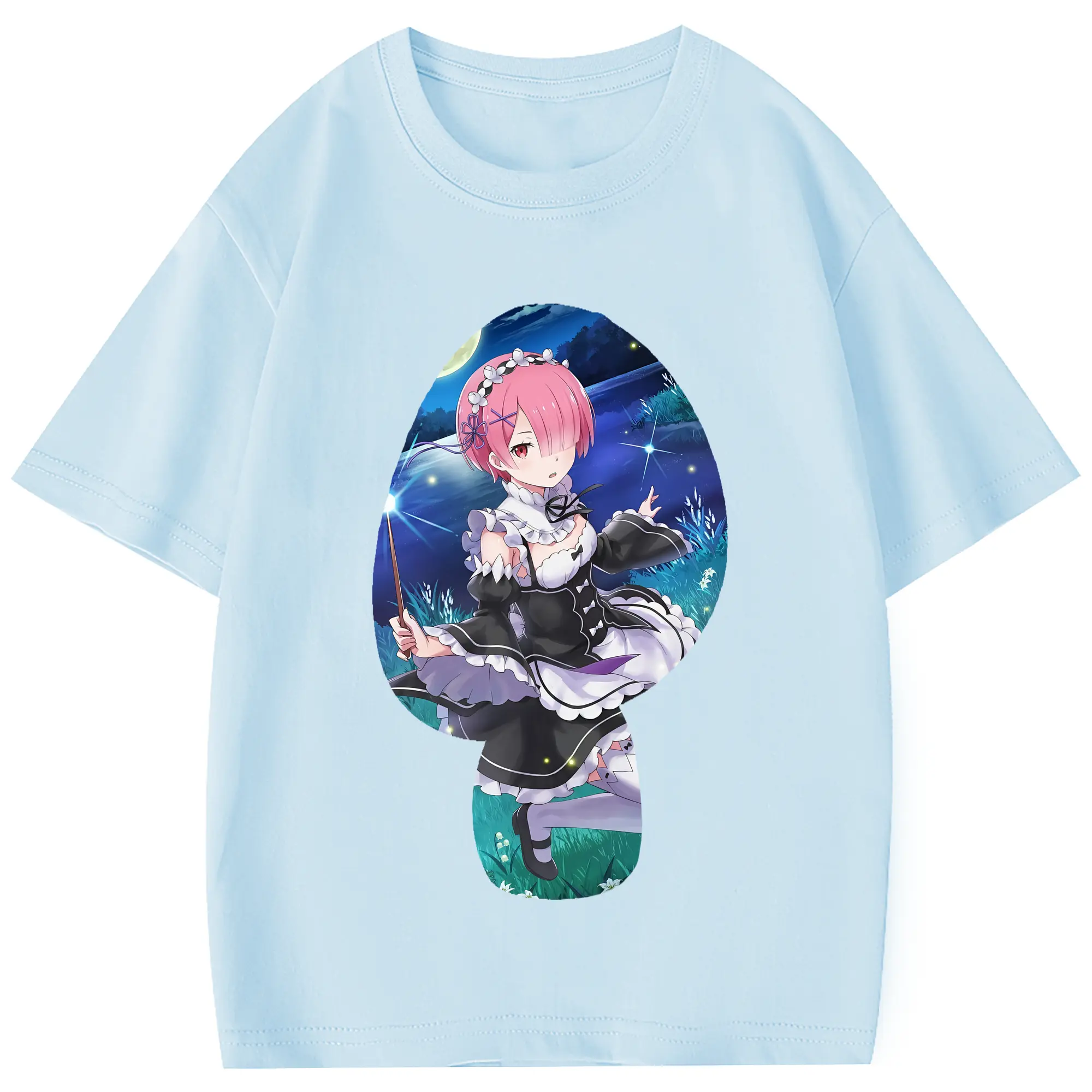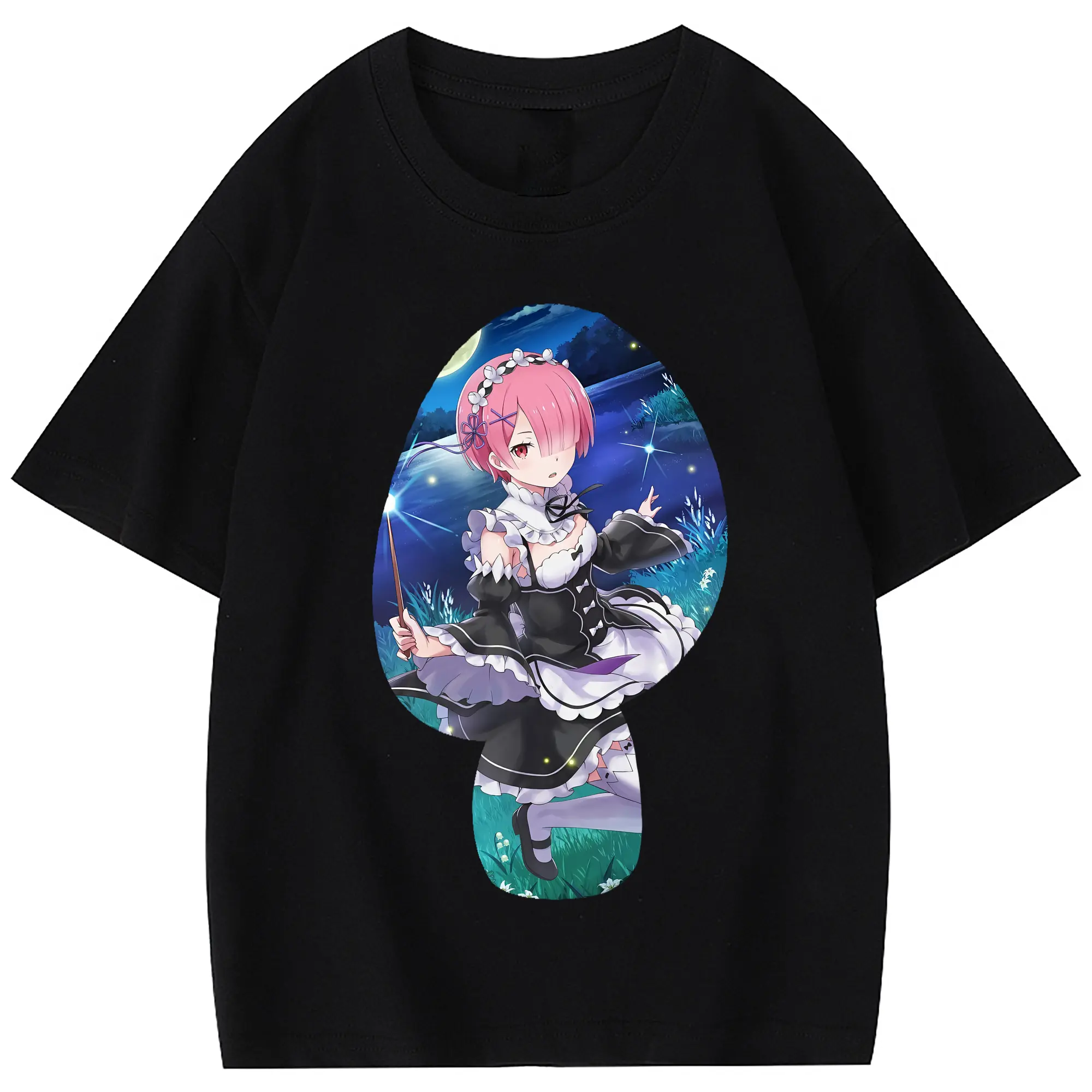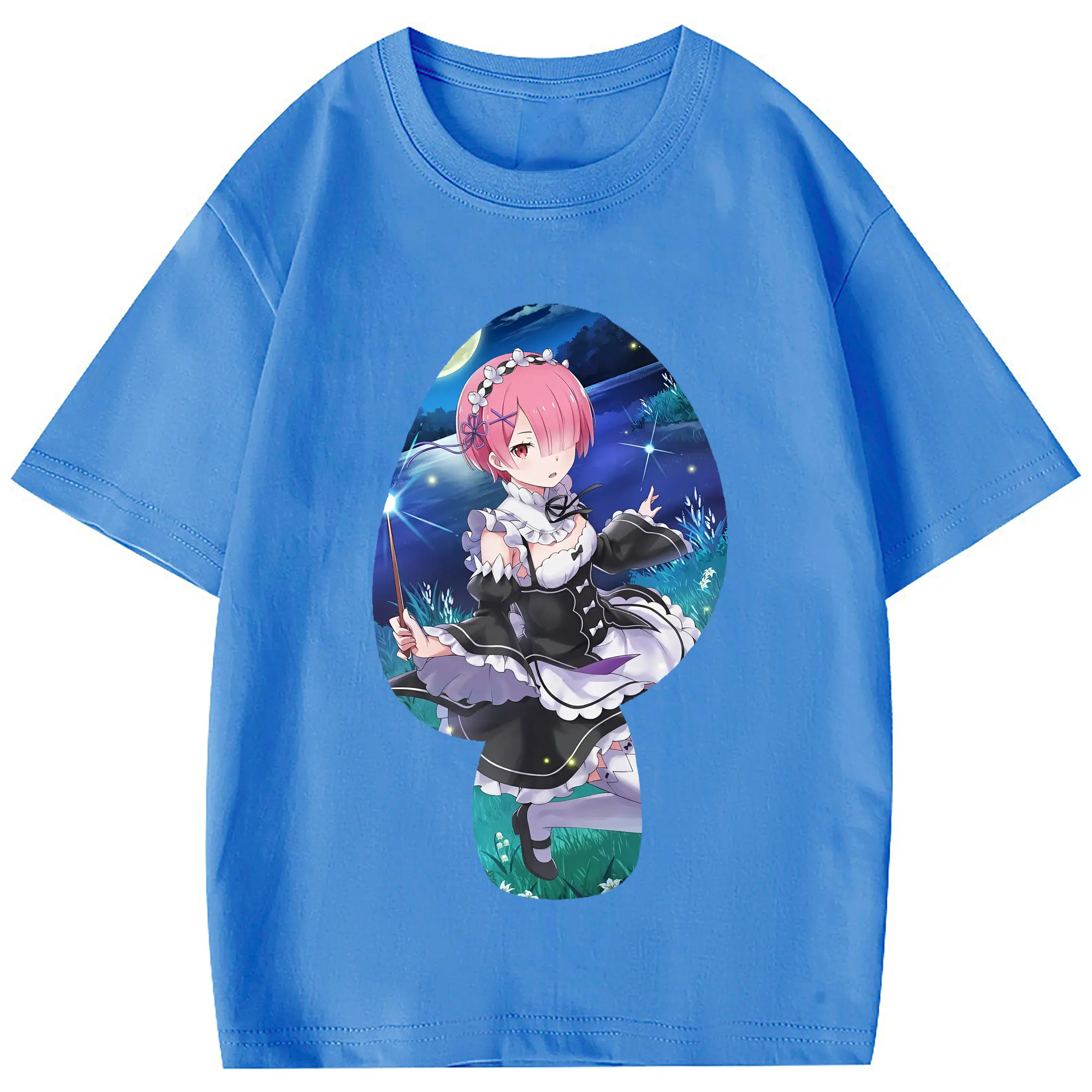 リゼロ グッズ ラム - 綿100% 半袖Tシャツ ・ フロントプリント ・ 快適 通気性 ・ 日常使い 散歩 スポーツ用