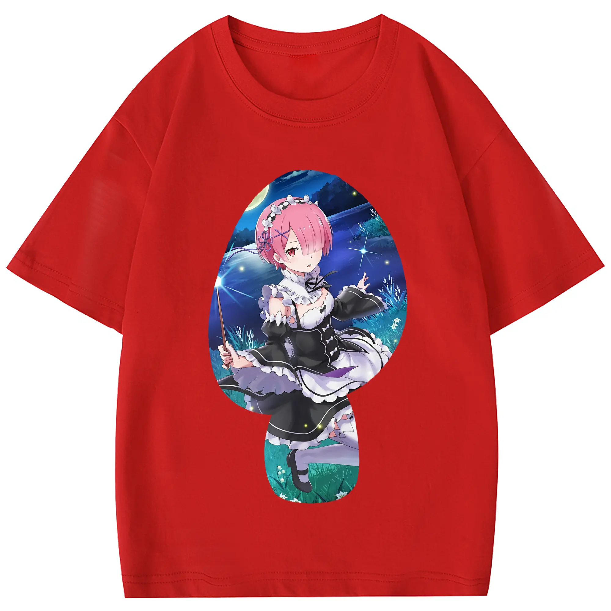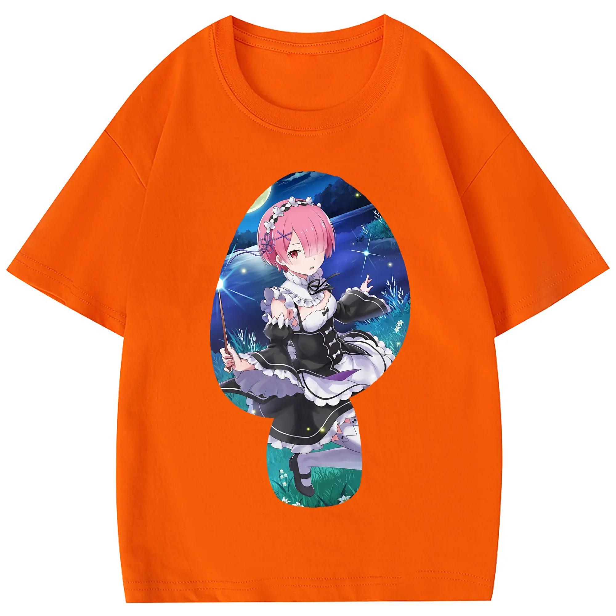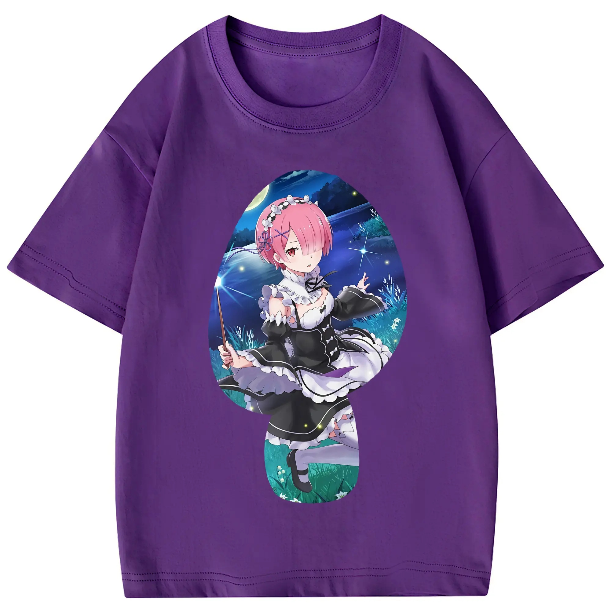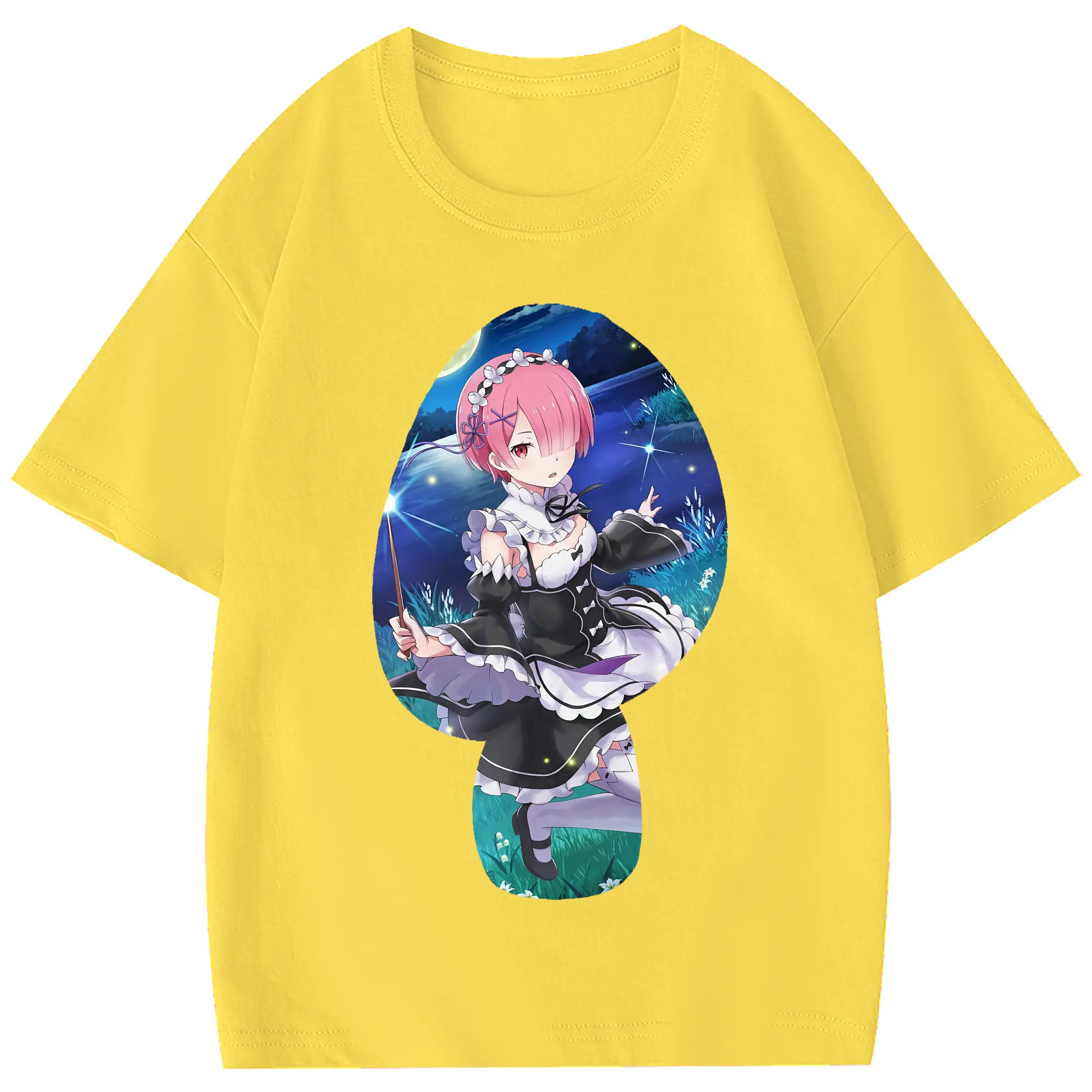 リゼロ グッズ ラム - 綿100% 半袖Tシャツ ・ フロントプリント ・ 快適 通気性 ・ 日常使い 散歩 スポーツ用