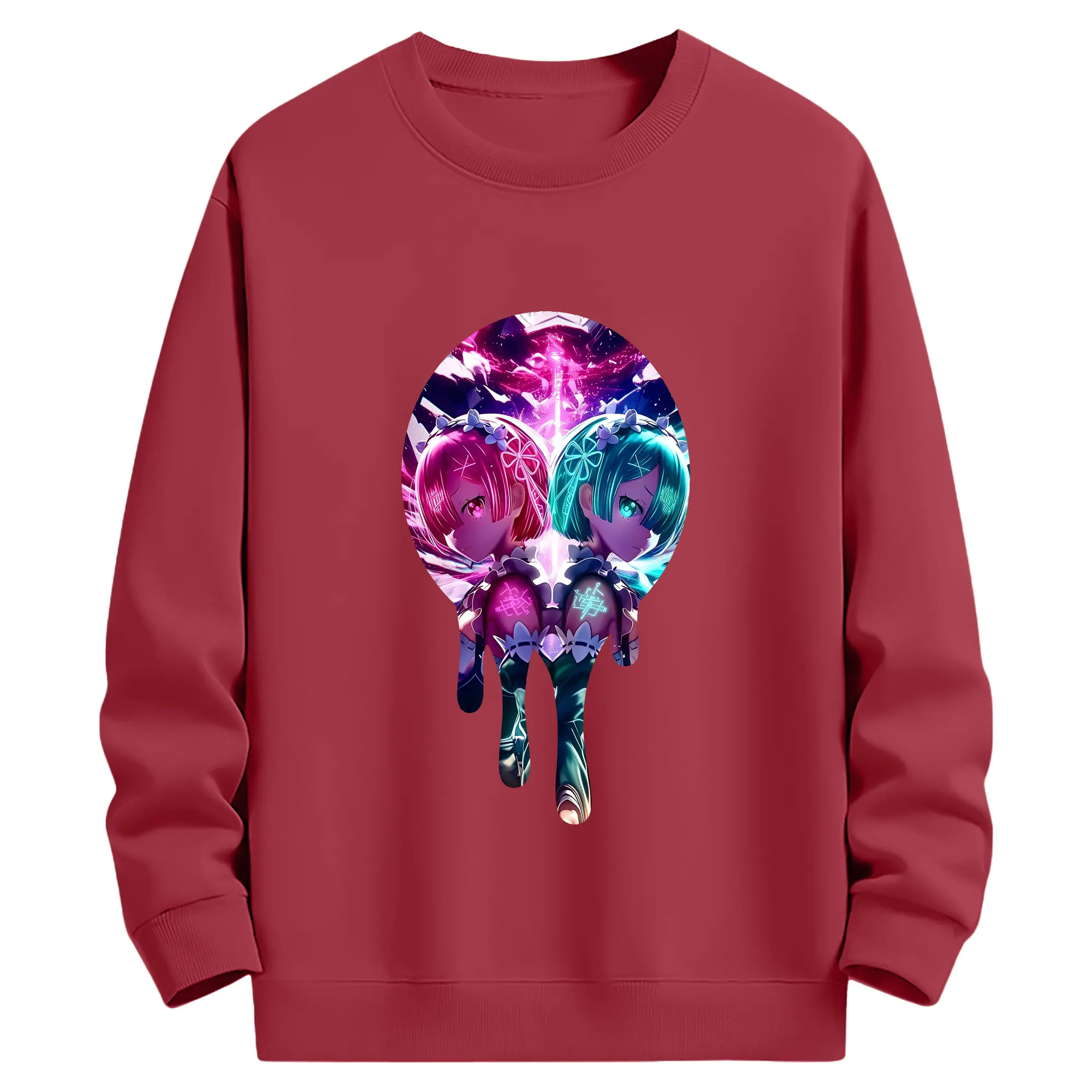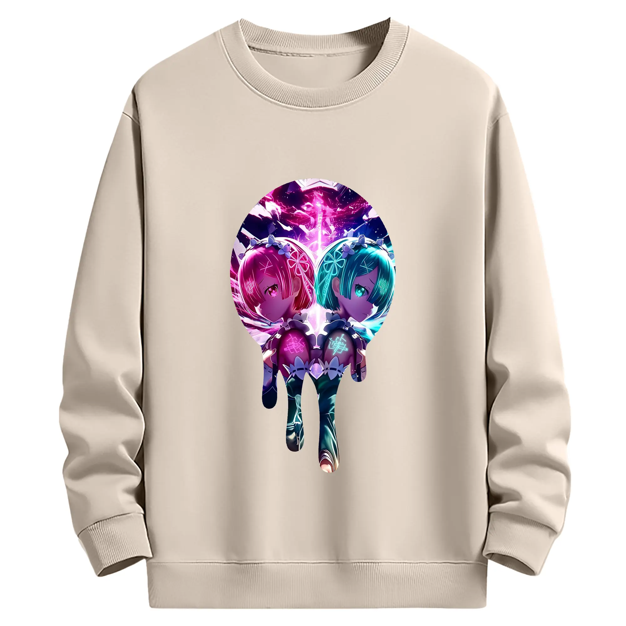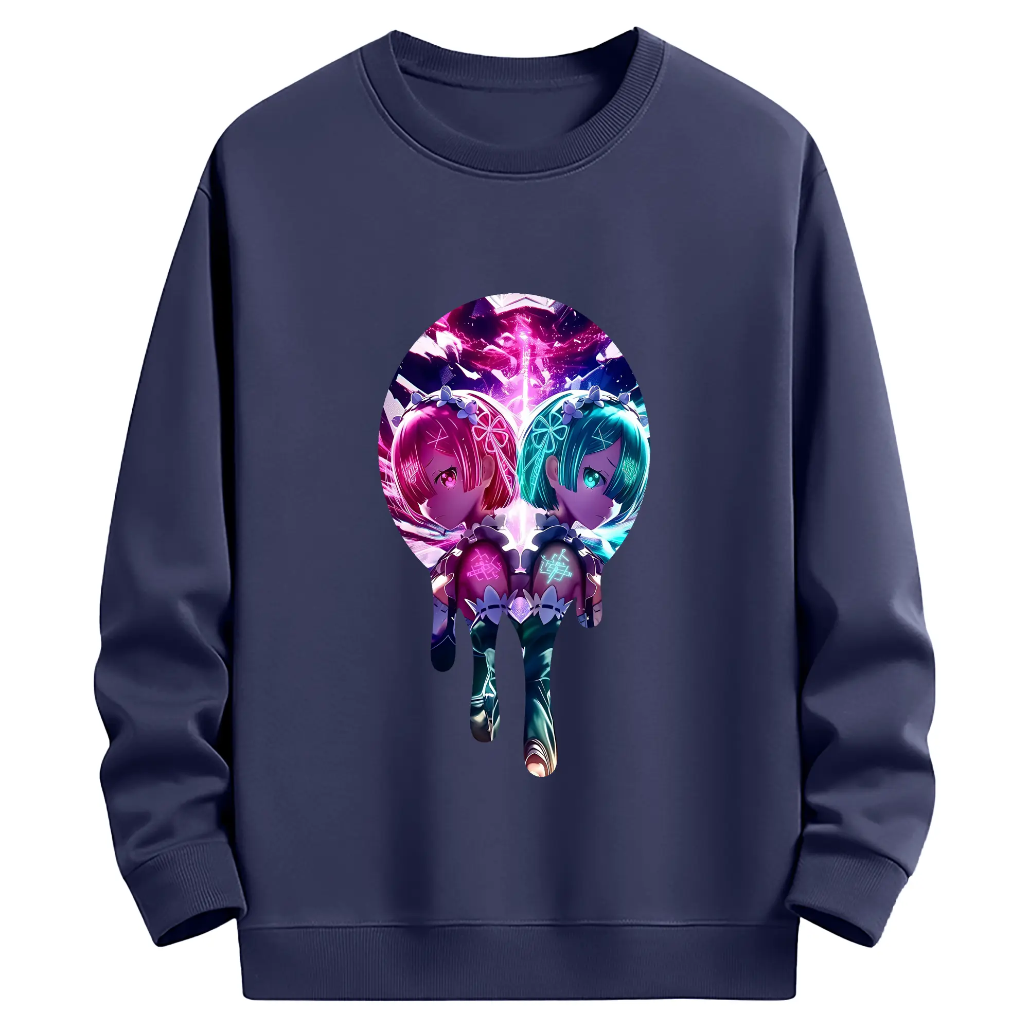 リゼロ グッズ ラム - 薄手 クルーネック スウェット 裏毛260g · ポリエステル 春秋向け カジュアル 男女兼用 · トレーナー デイリー スポーツ 散歩に最適