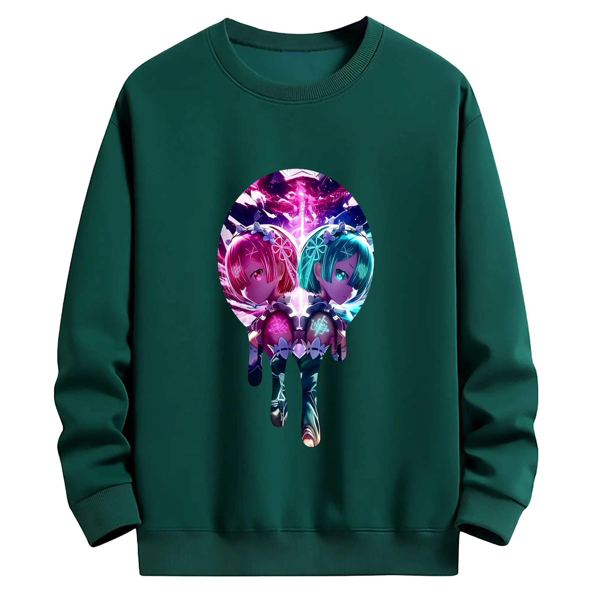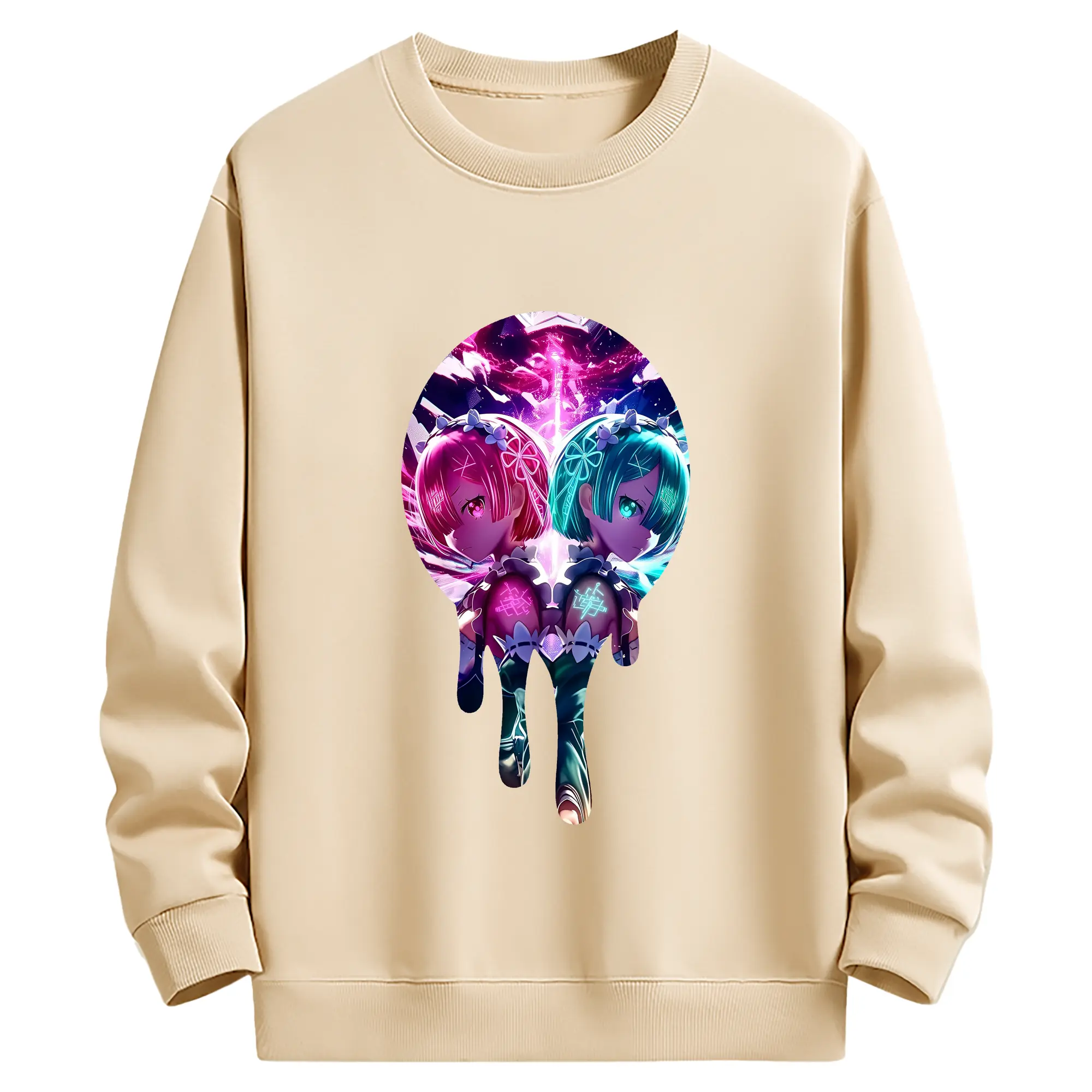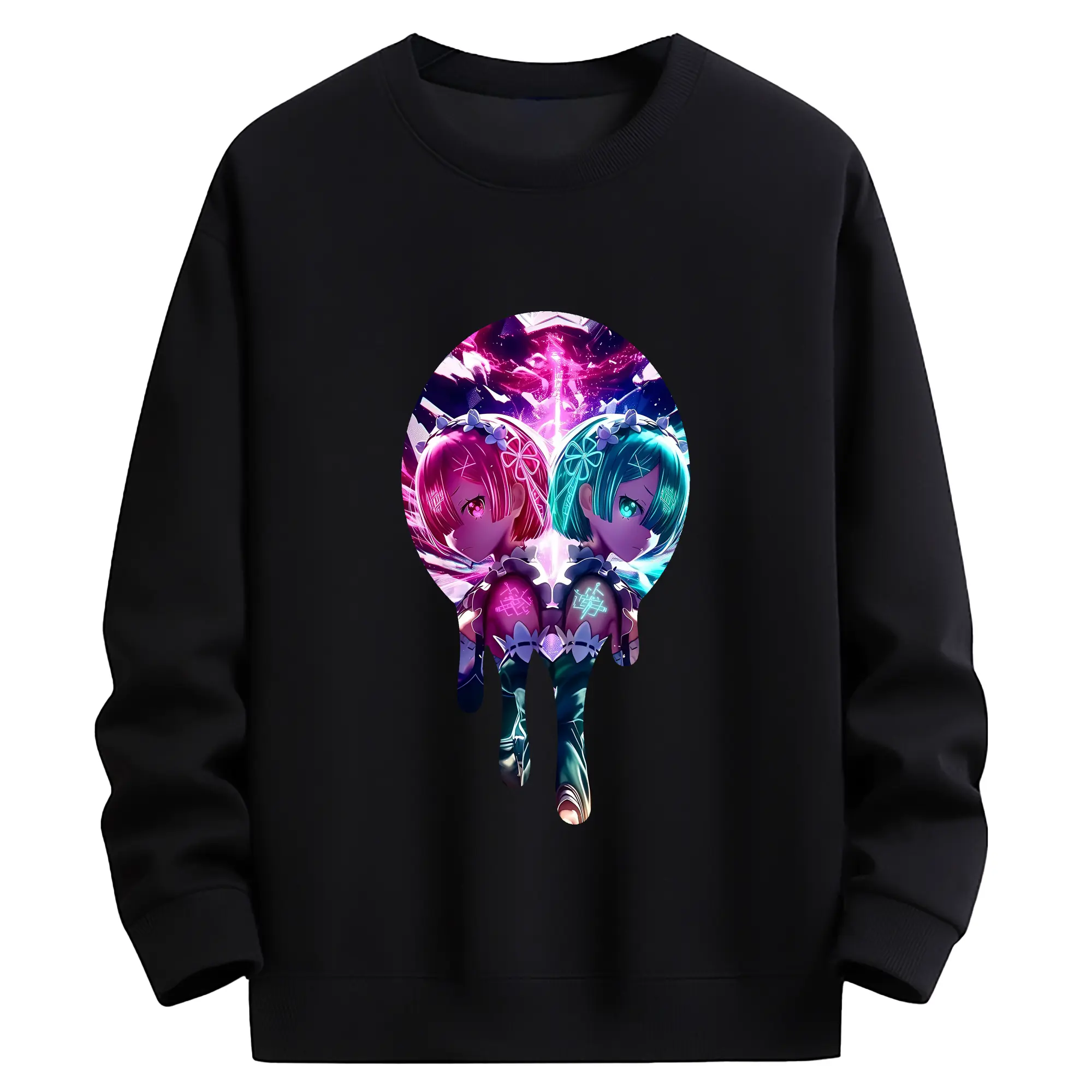 リゼロ グッズ ラム - 薄手 クルーネック スウェット 裏毛260g · ポリエステル 春秋向け カジュアル 男女兼用 · トレーナー デイリー スポーツ 散歩に最適