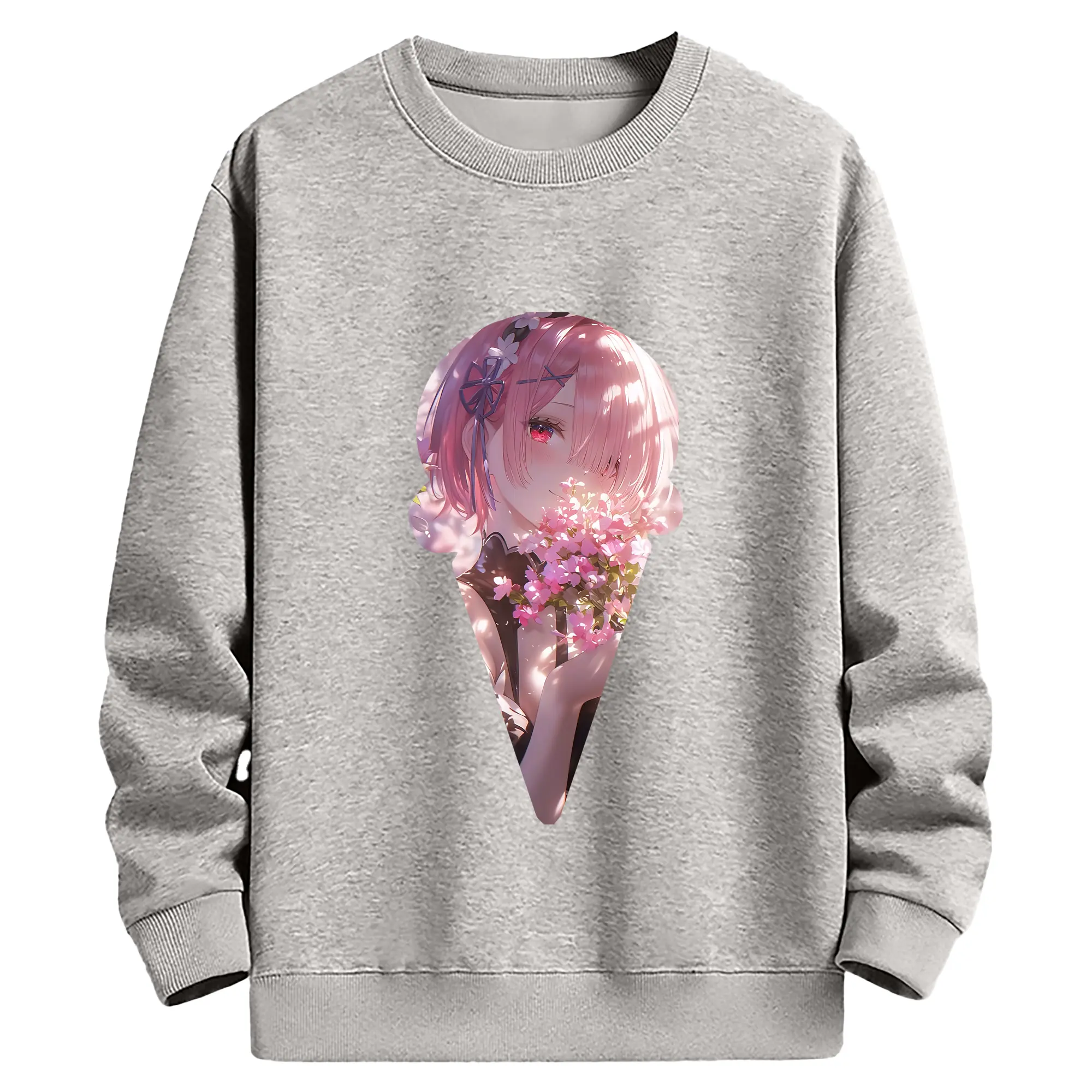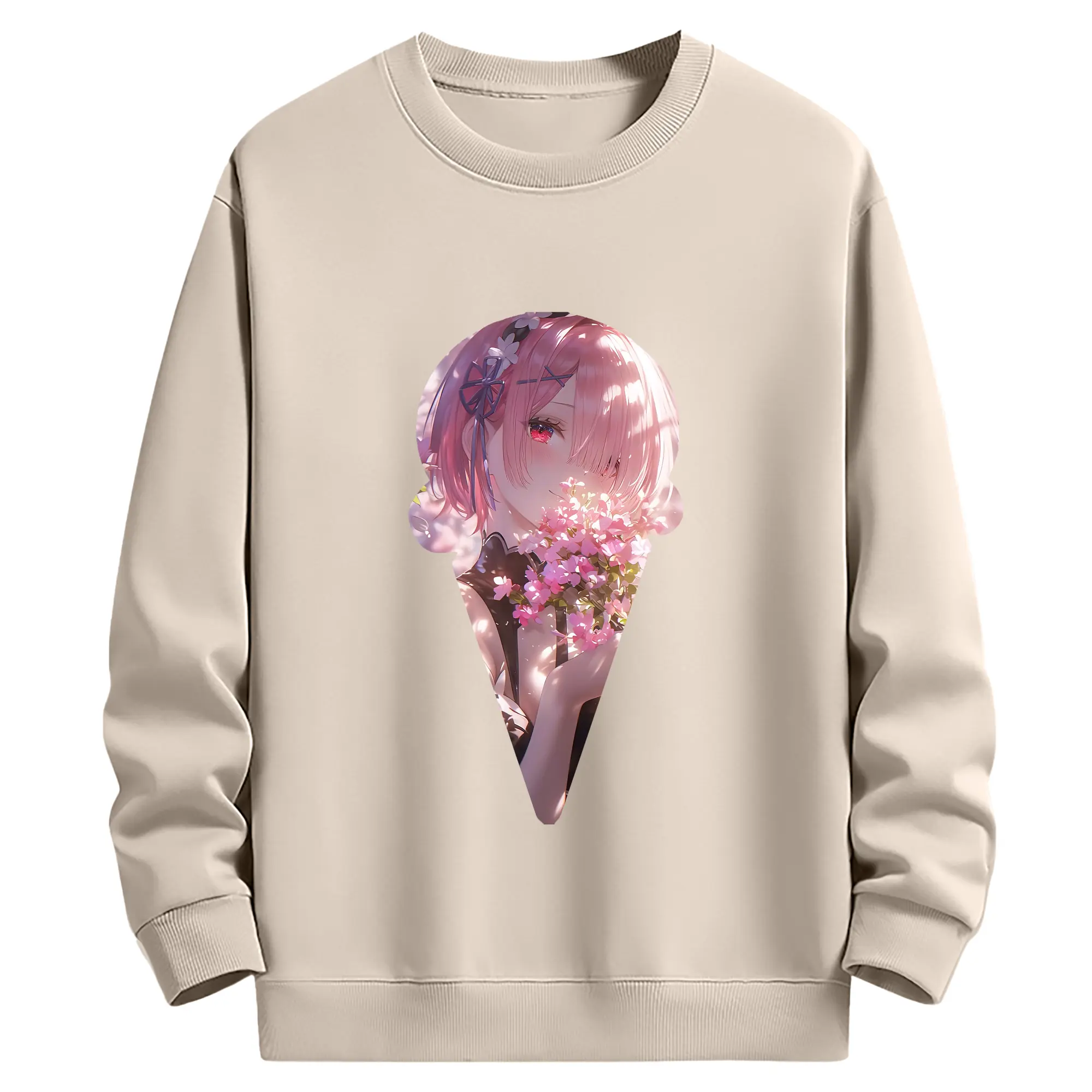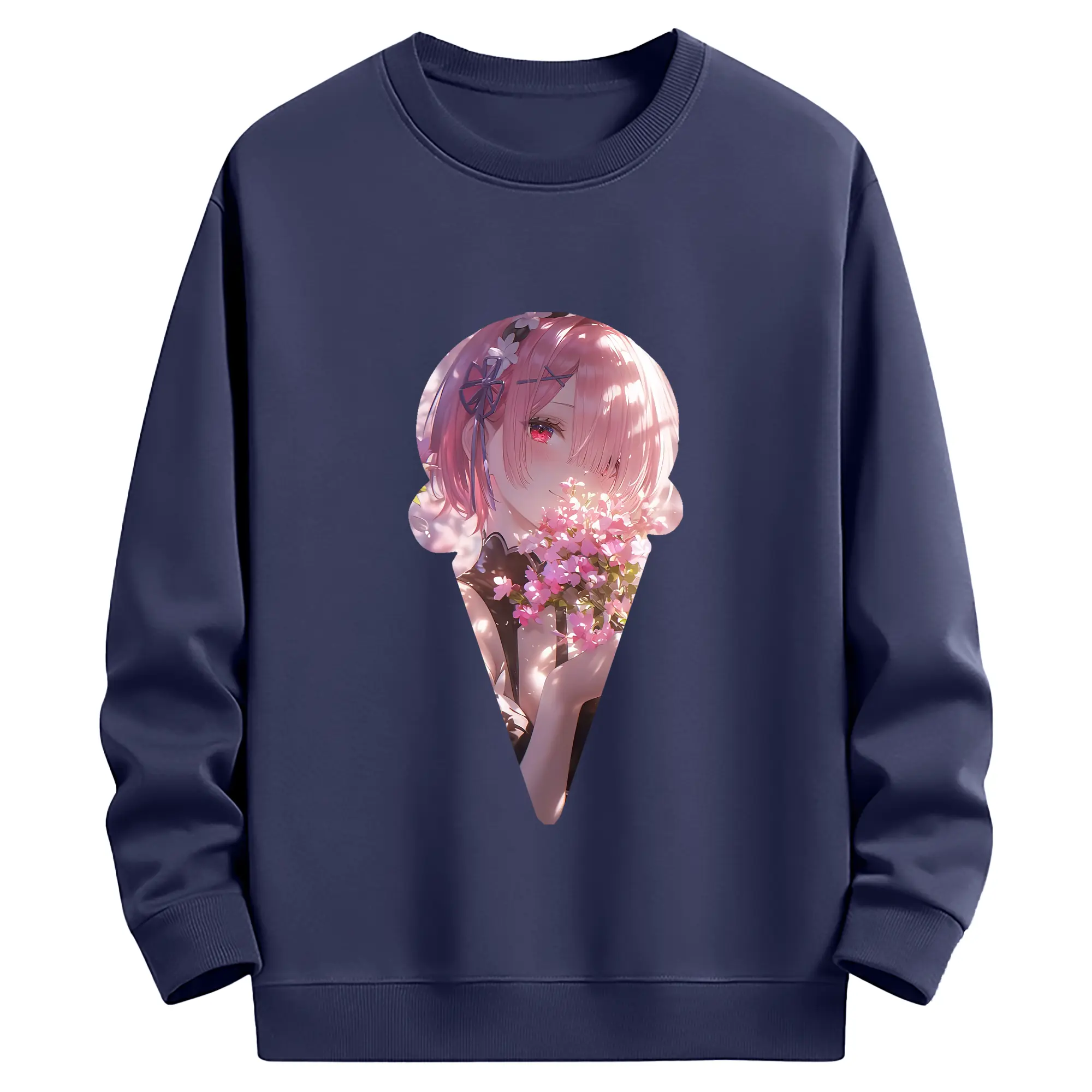 リゼロ グッズ ラム - 薄手 クルーネック スウェット 裏毛260g · ポリエステル 春秋向け カジュアル 男女兼用 · トレーナー デイリー スポーツ 散歩に最適