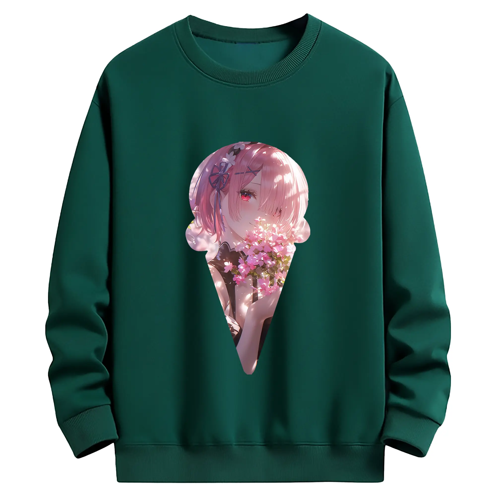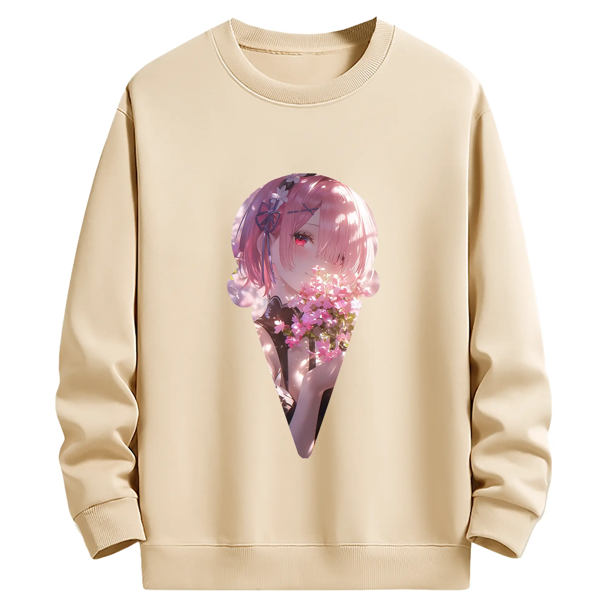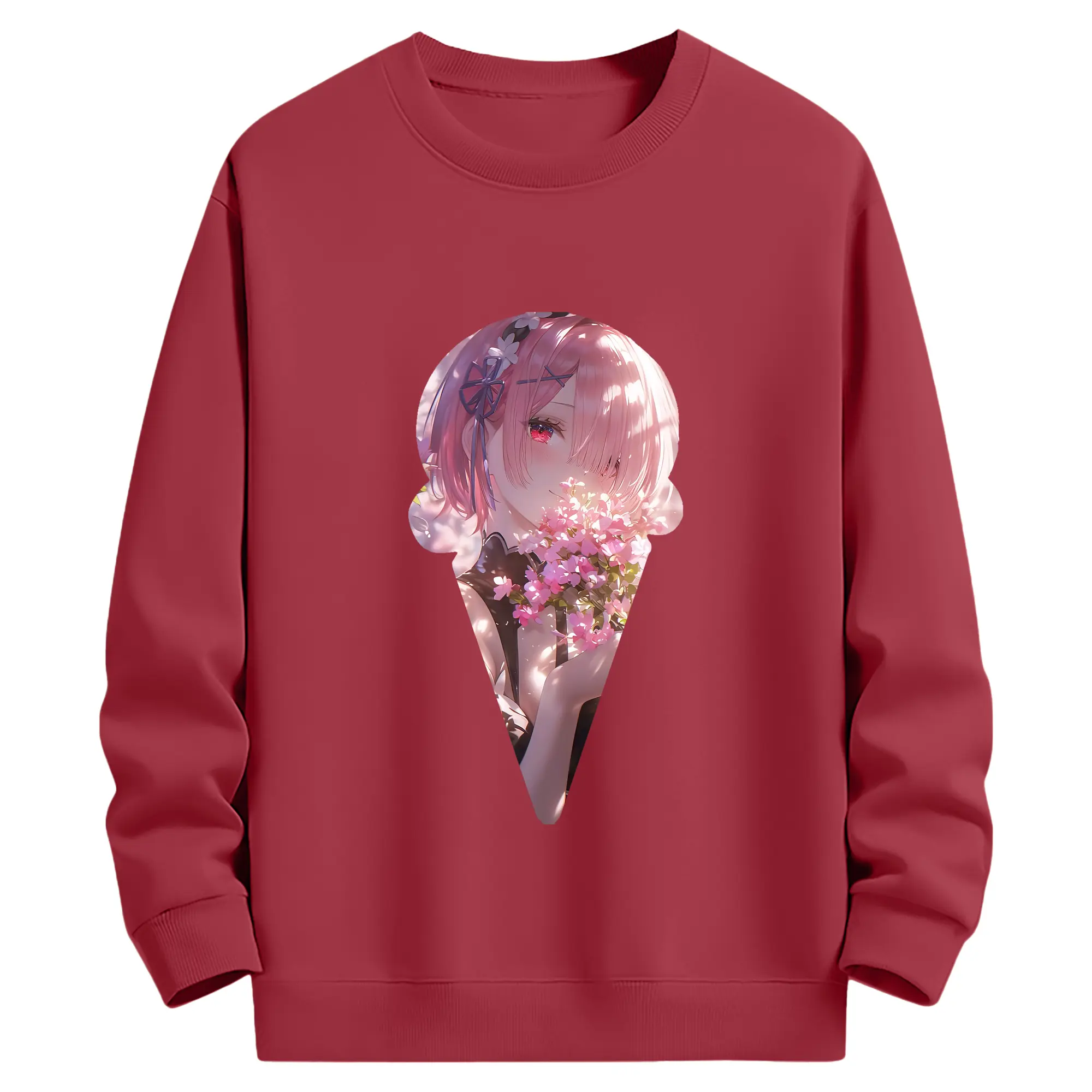 リゼロ グッズ ラム - 薄手 クルーネック スウェット 裏毛260g · ポリエステル 春秋向け カジュアル 男女兼用 · トレーナー デイリー スポーツ 散歩に最適