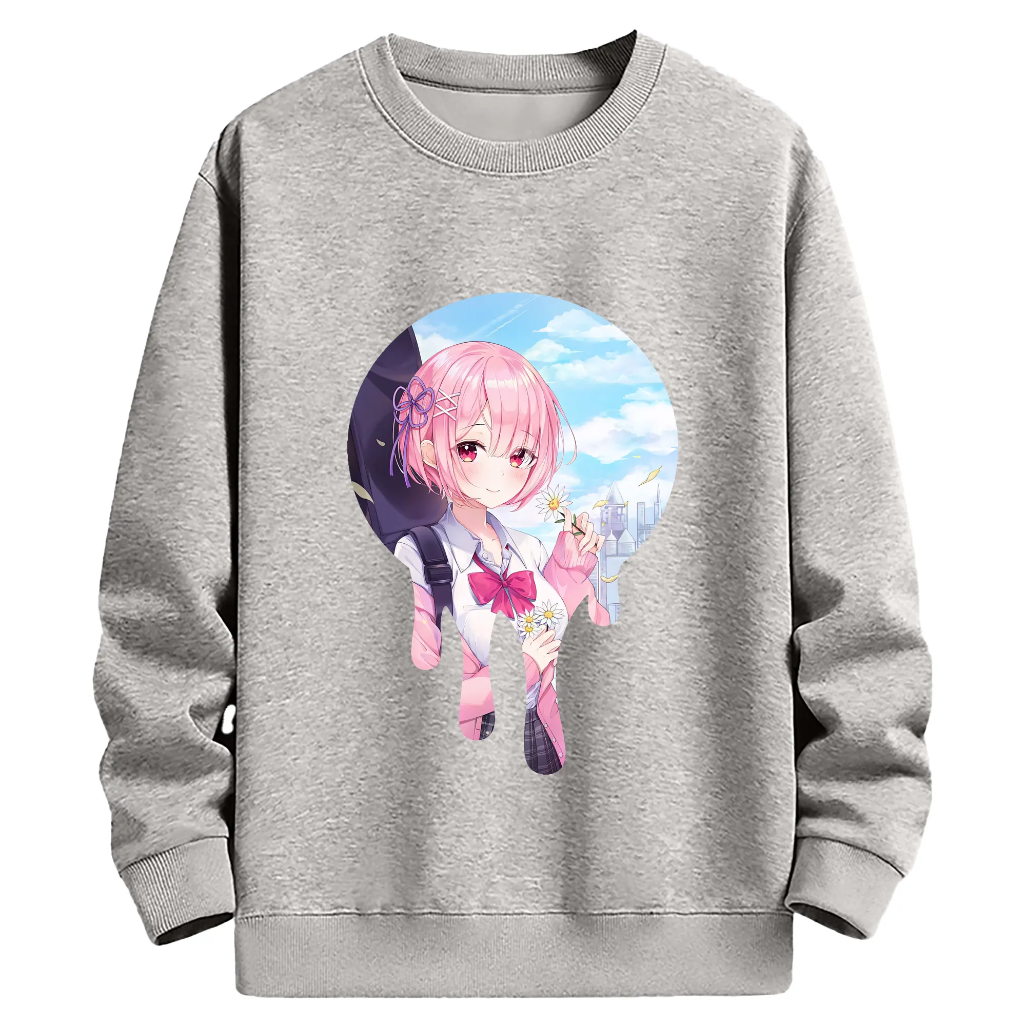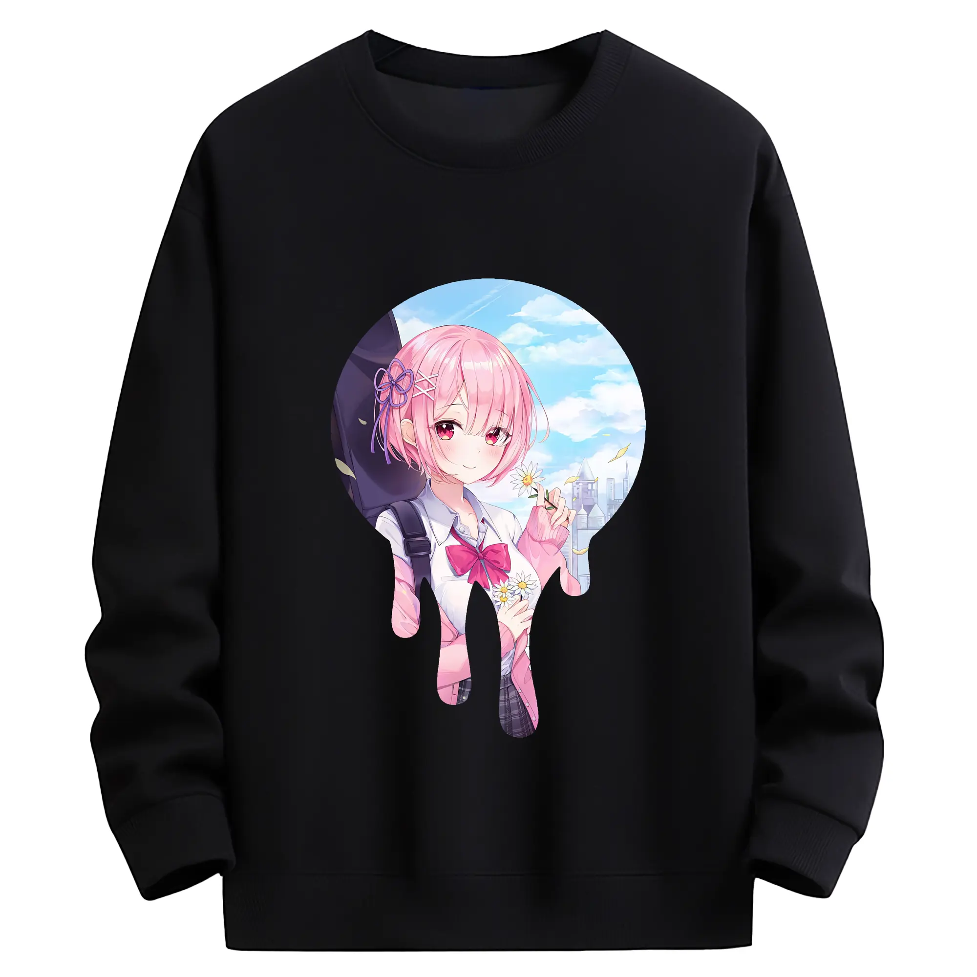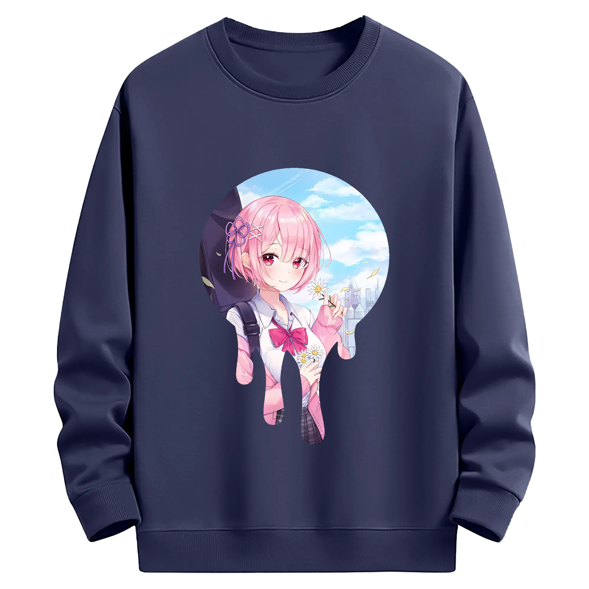 リゼロ グッズ ラム - 薄手 クルーネック スウェット 裏毛260g · ポリエステル 春秋向け カジュアル 男女兼用 · トレーナー デイリー スポーツ 散歩に最適